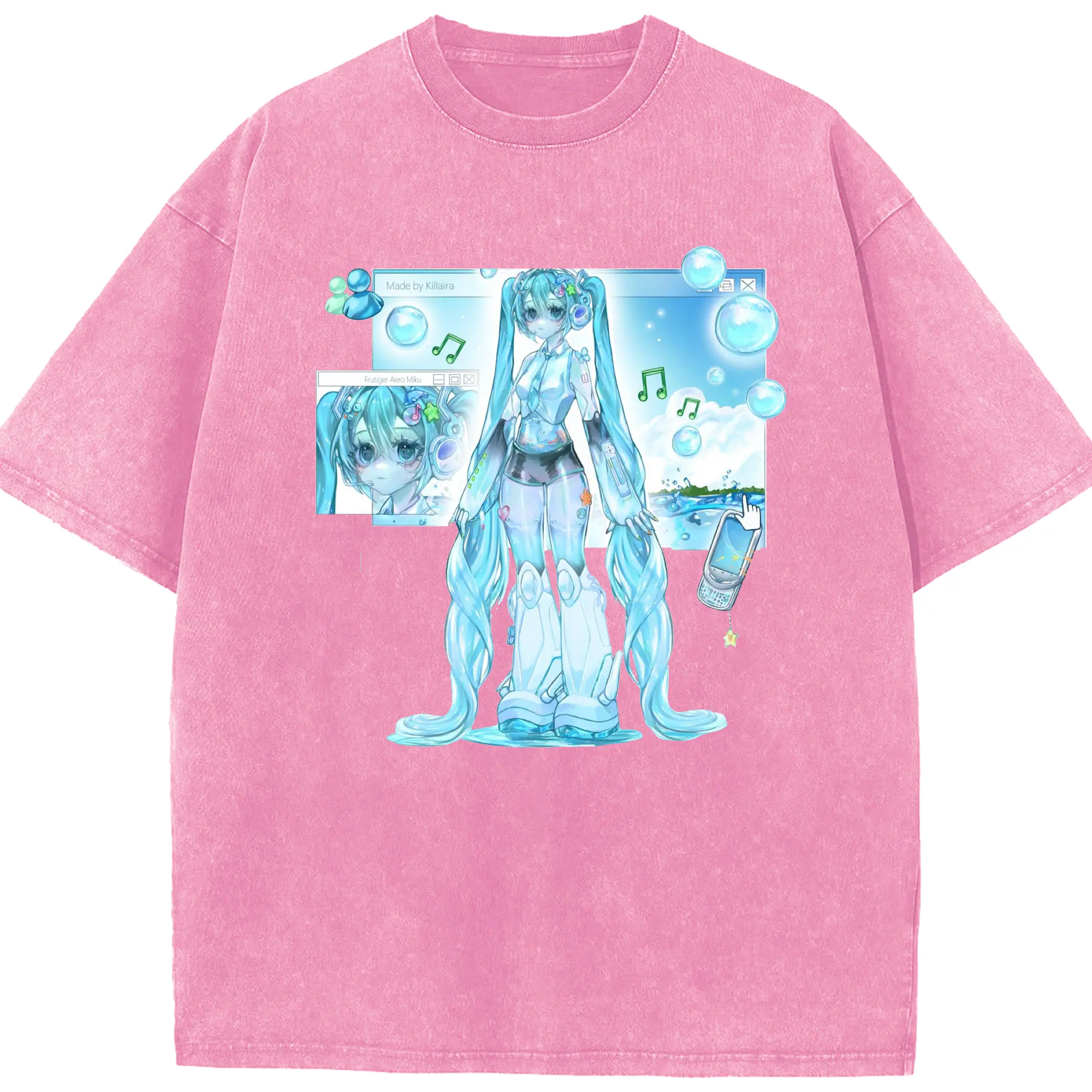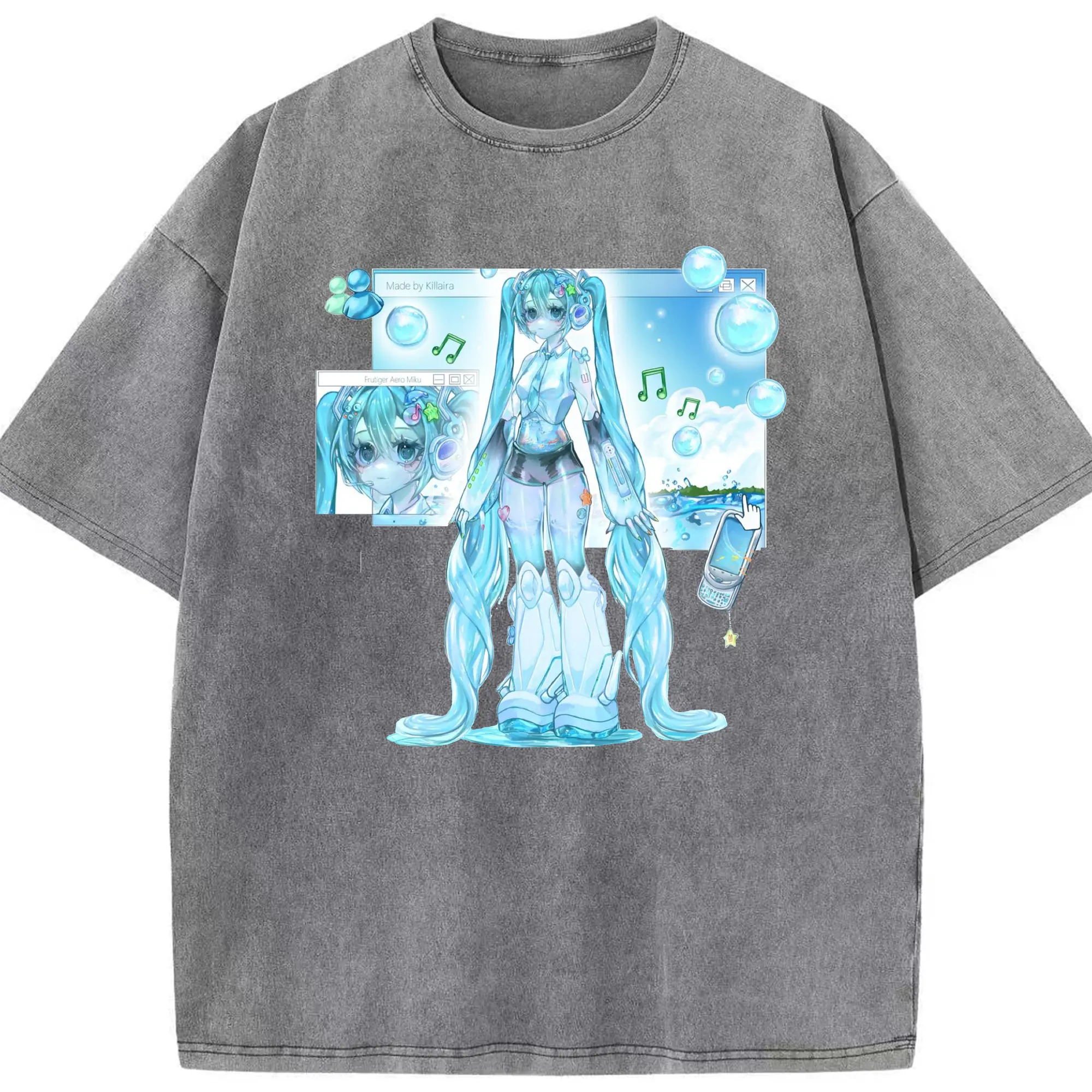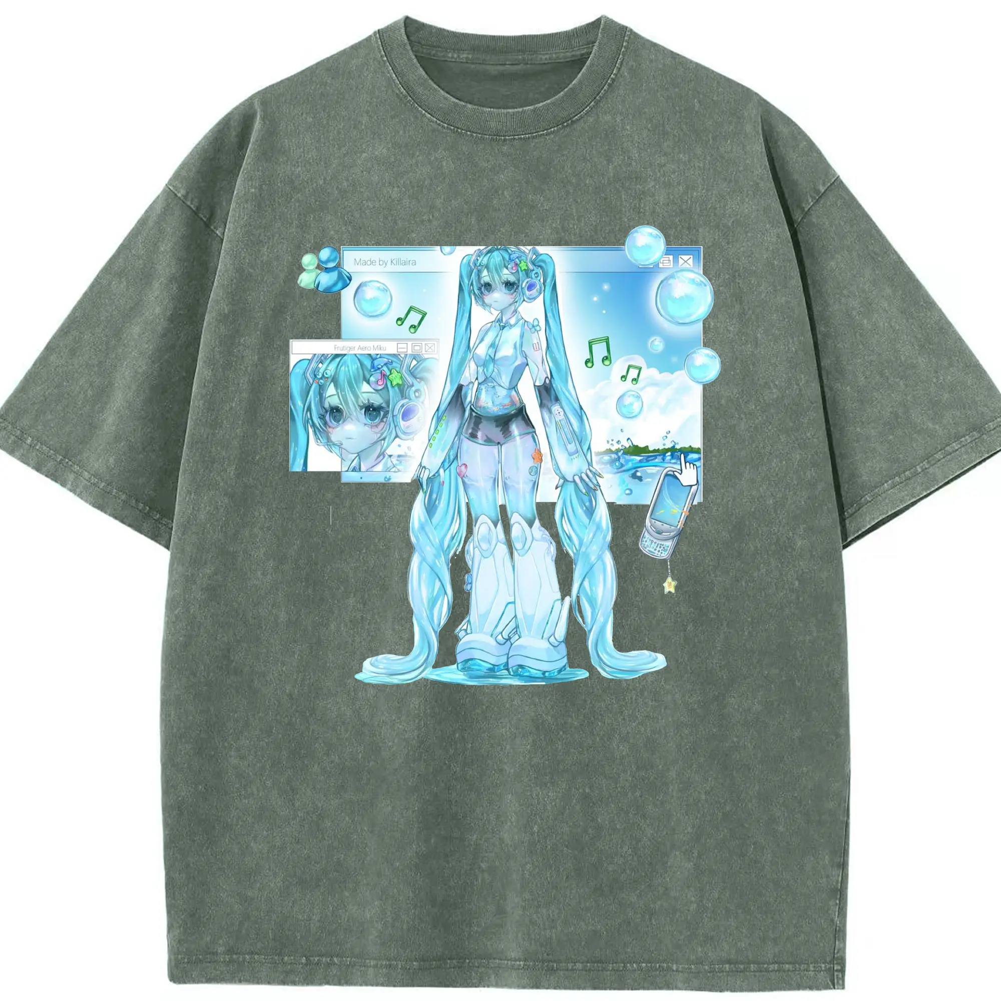 初音ミク 面白いデザイン - 綿100% 半袖Tシャツ ・ フロントプリント ・ 快適 通気性 ・ 日常使い 散歩 スポーツ用