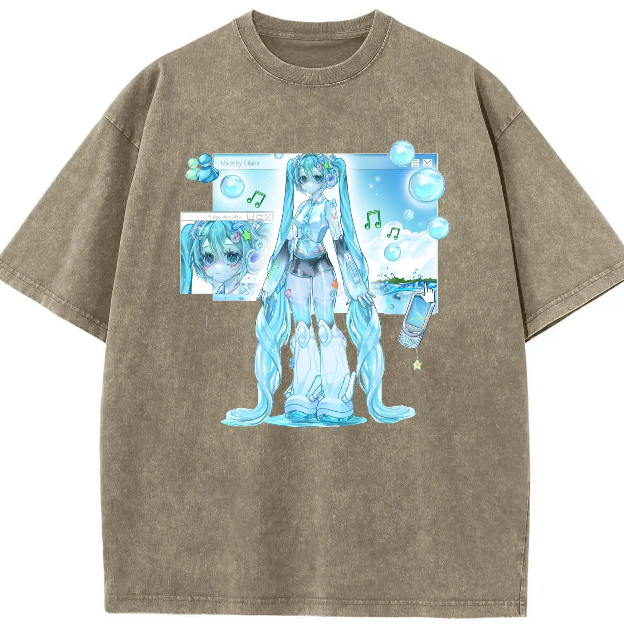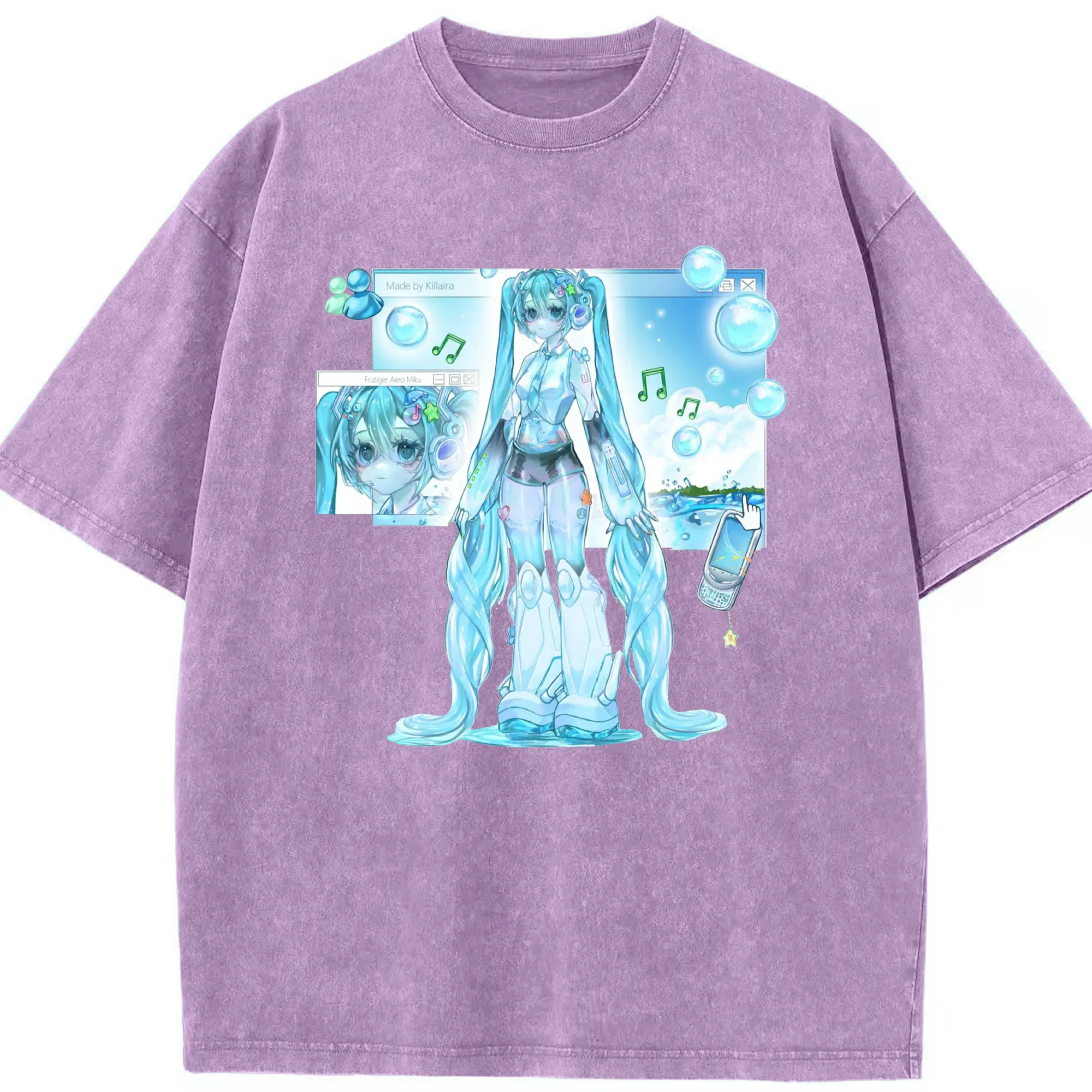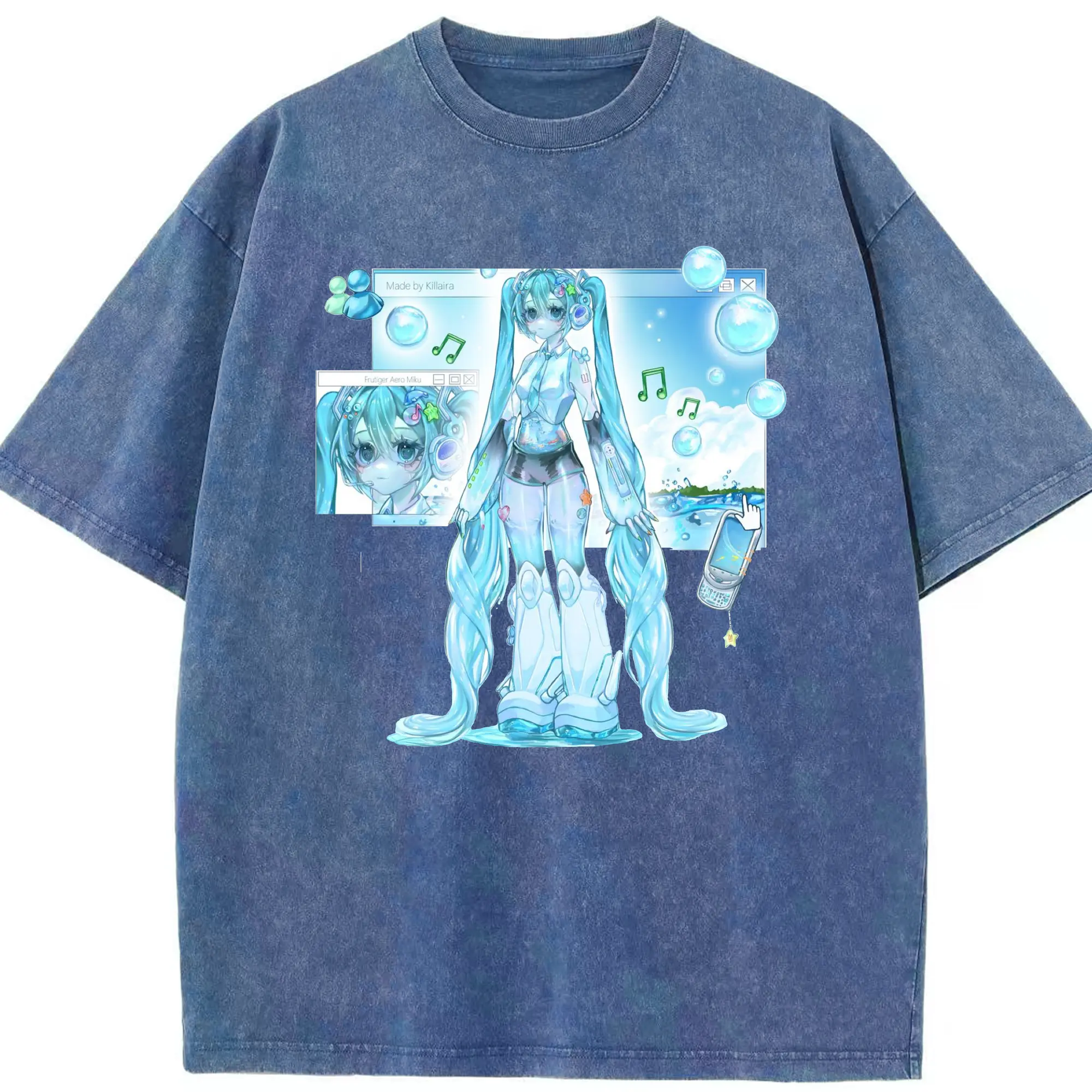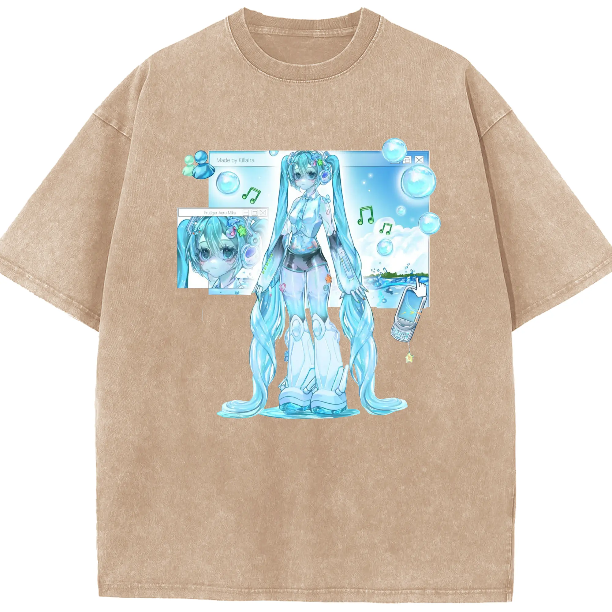 初音ミク 面白いデザイン - 綿100% 半袖Tシャツ ・ フロントプリント ・ 快適 通気性 ・ 日常使い 散歩 スポーツ用