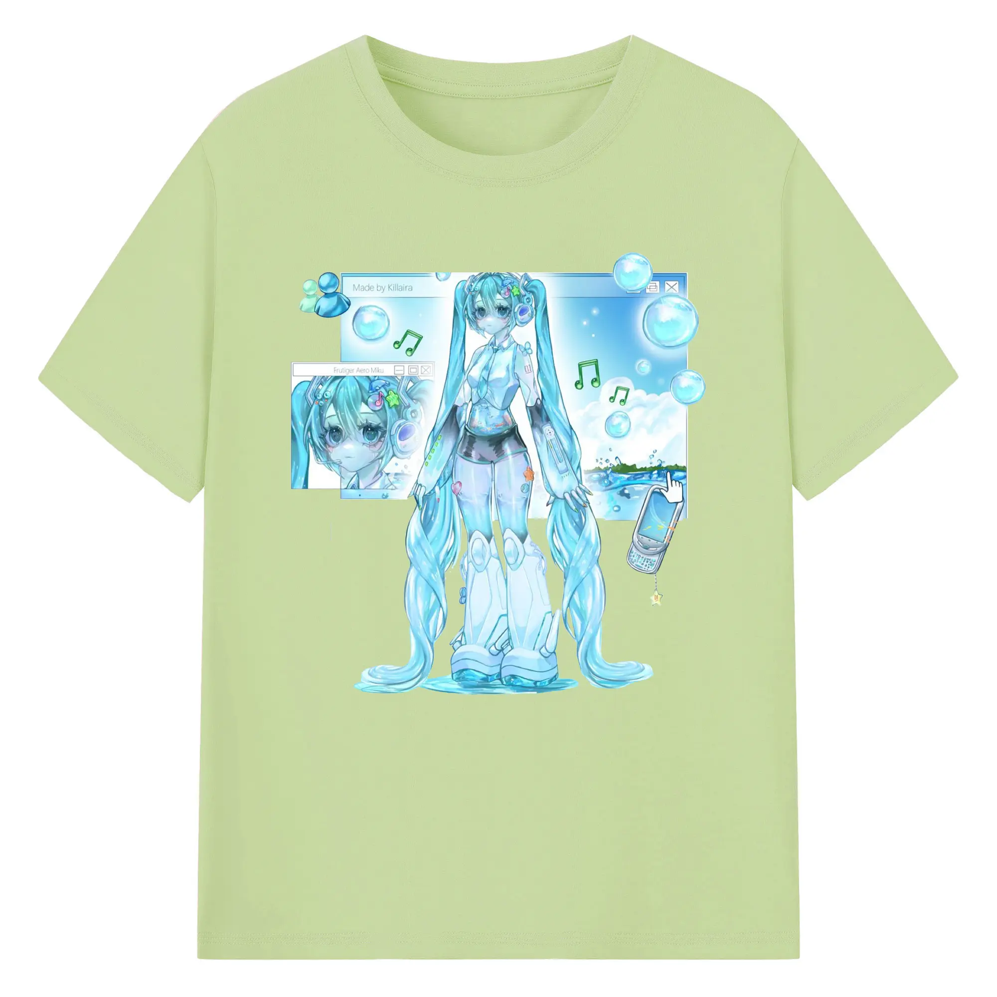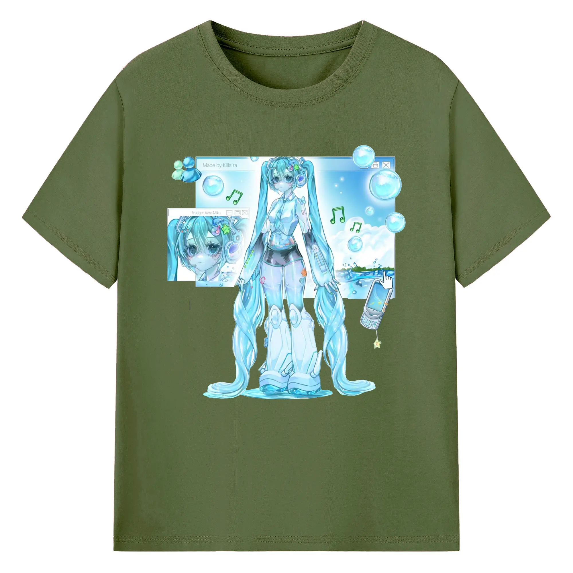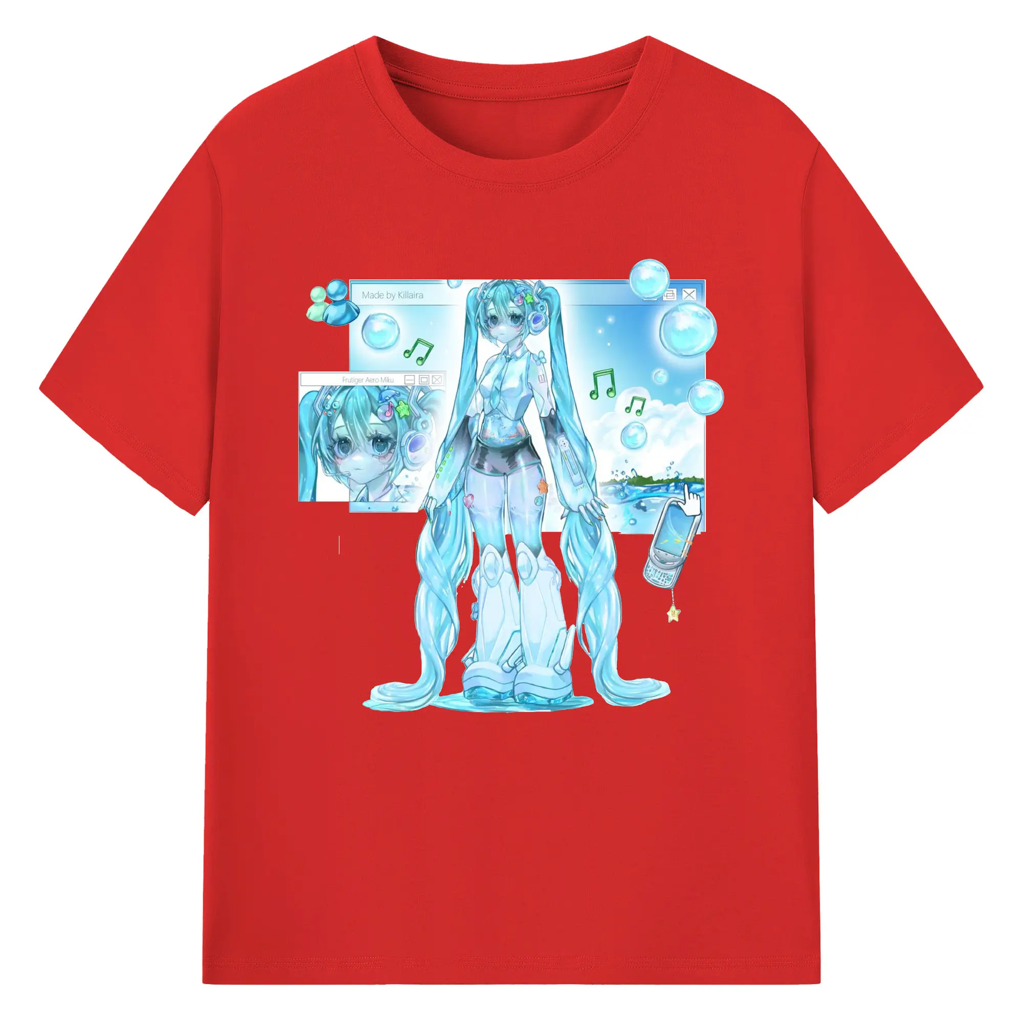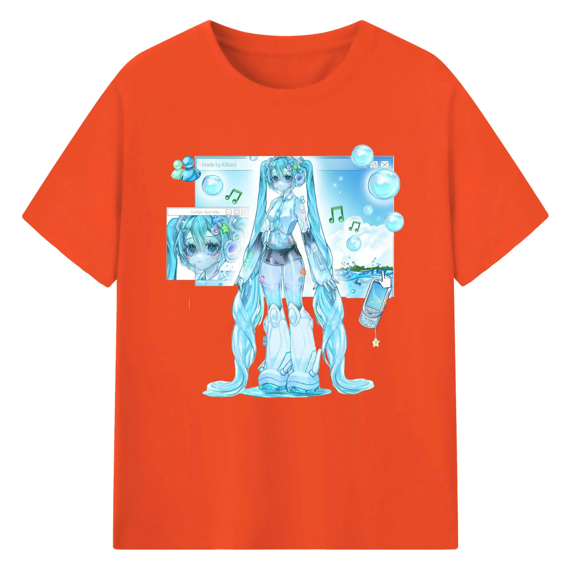 初音ミク 面白いデザイン - 綿100% ヴィンテージ風 半袖Tシャツ ・ フロントプリント ・ 柔らか肌触り ・ 通気性 快適 ・ スポーツ カジュアル 外出用