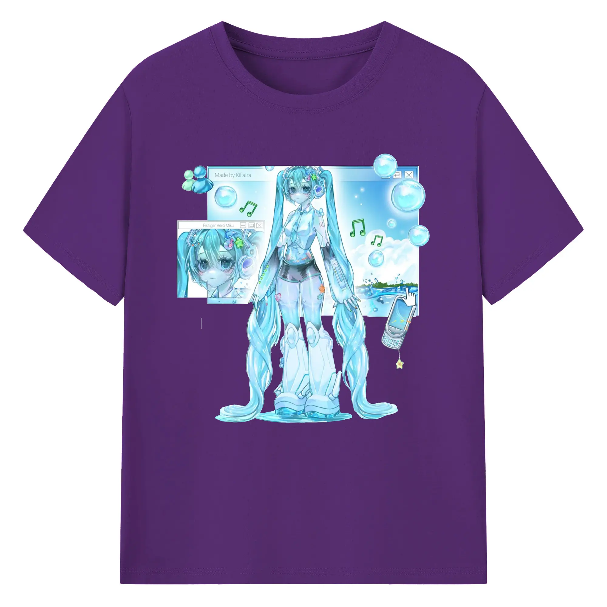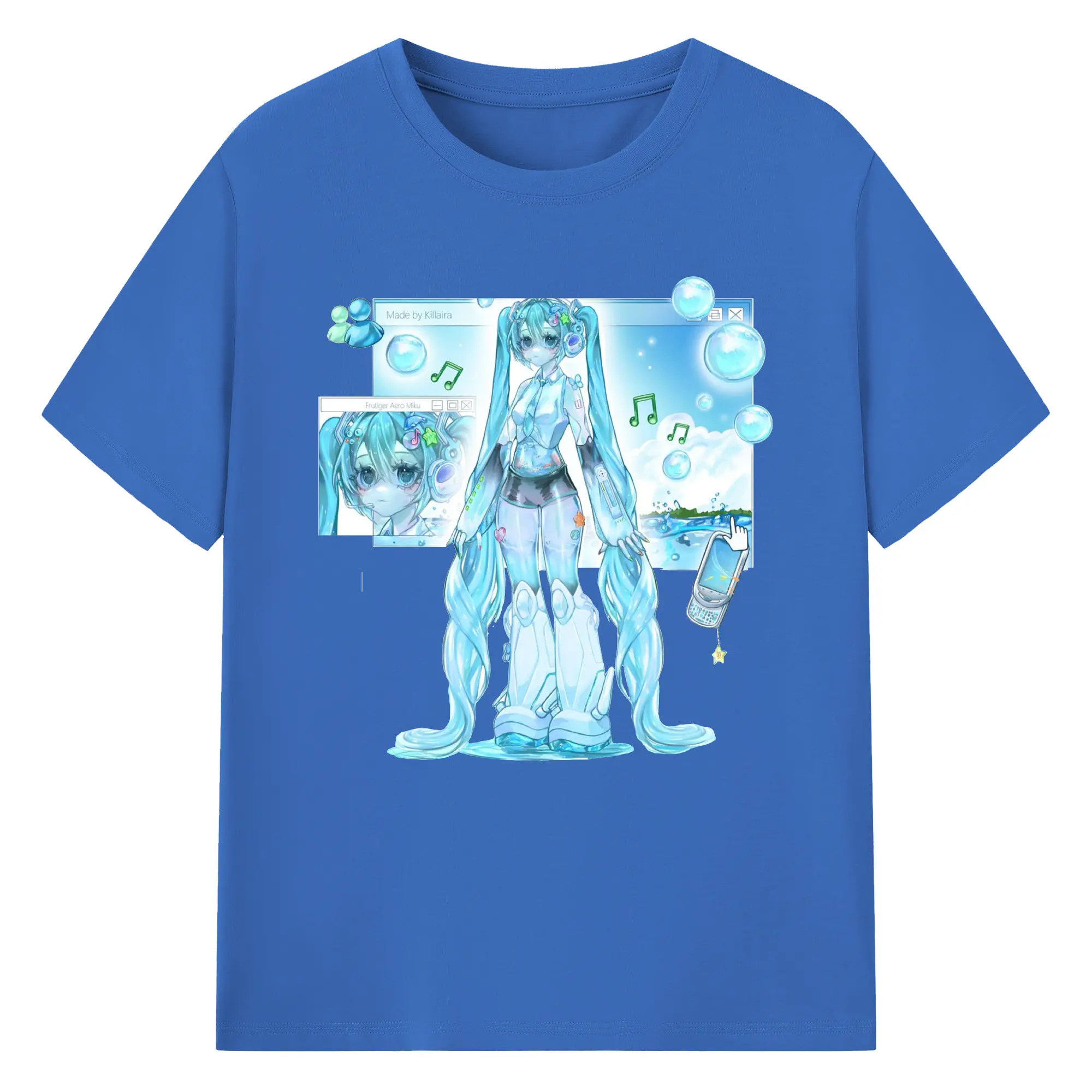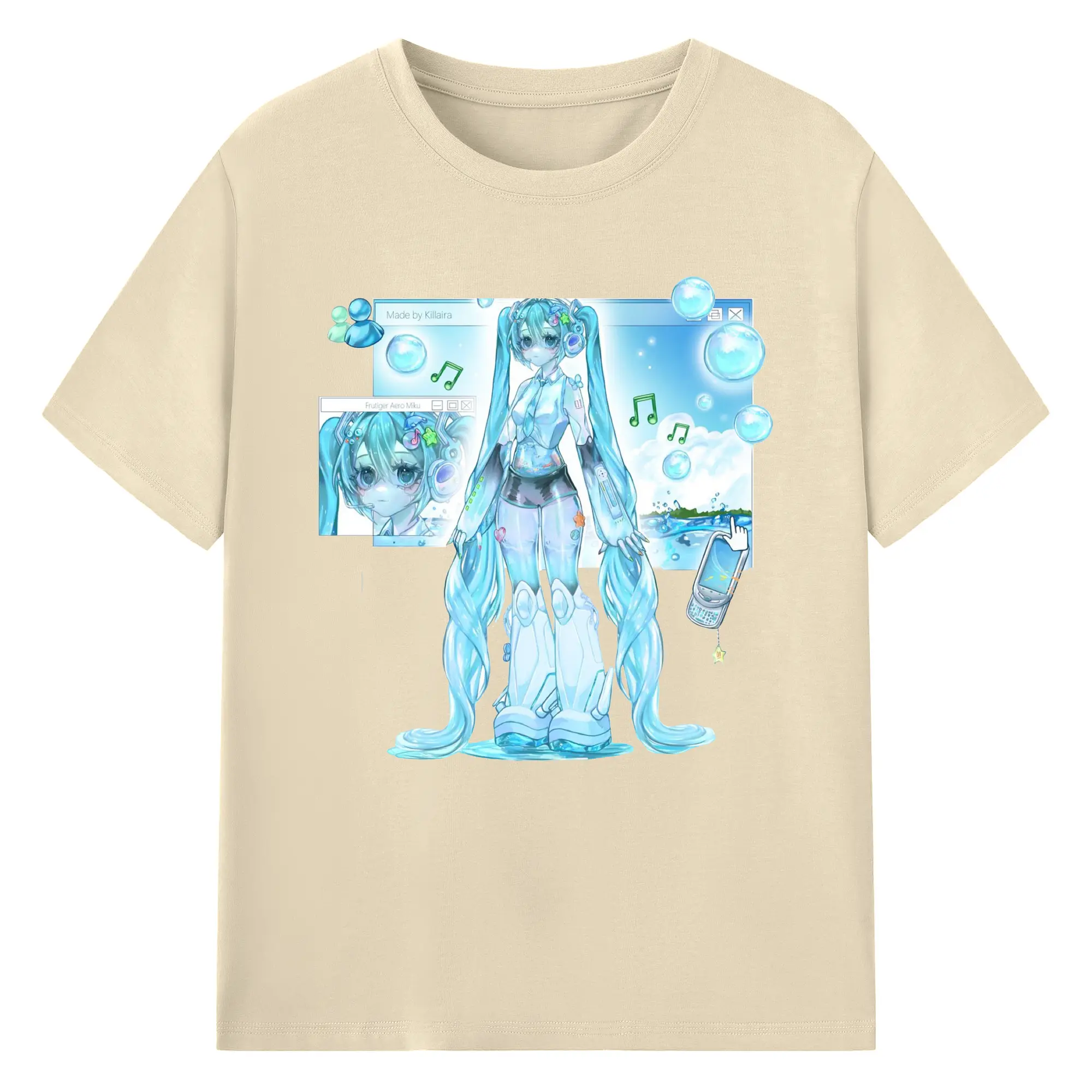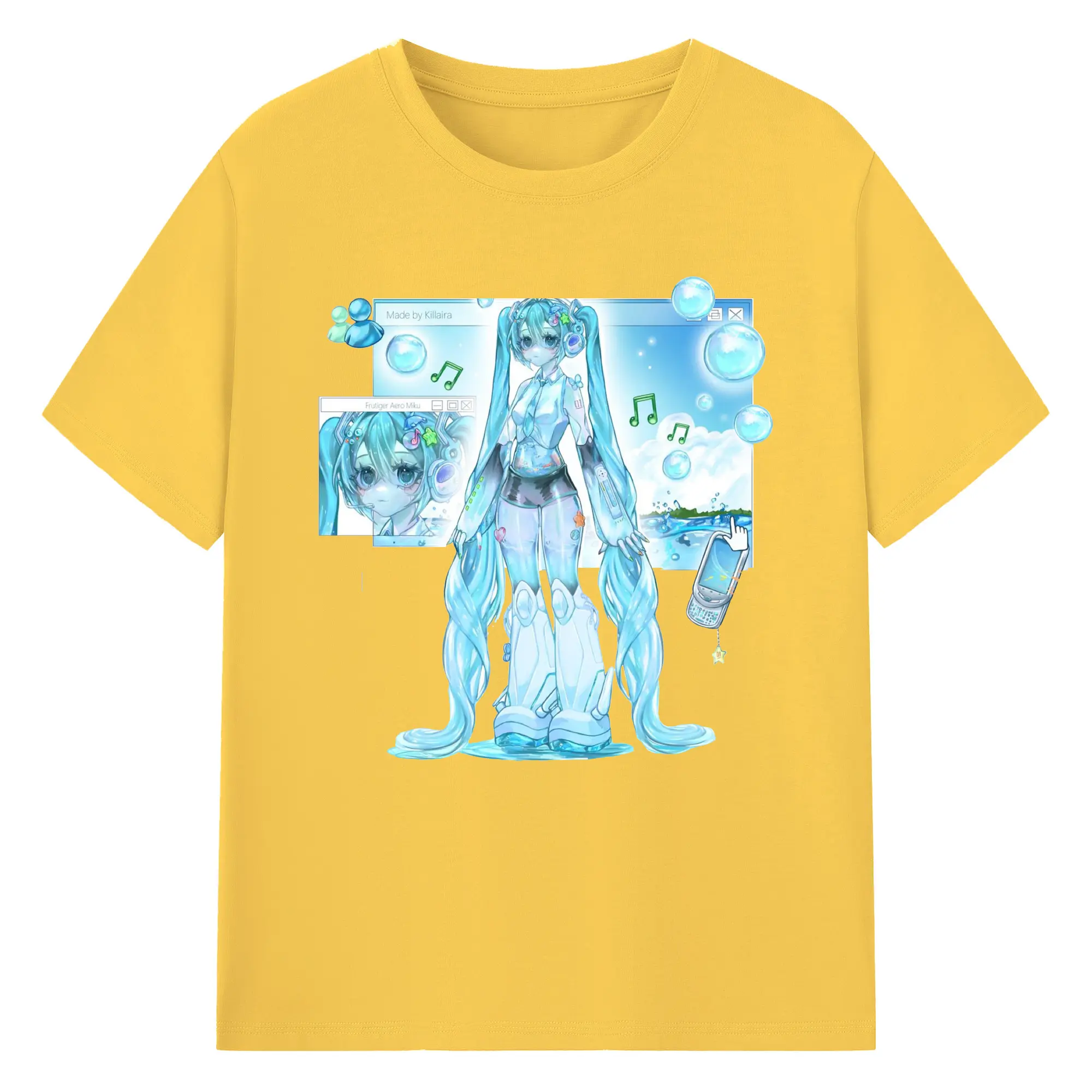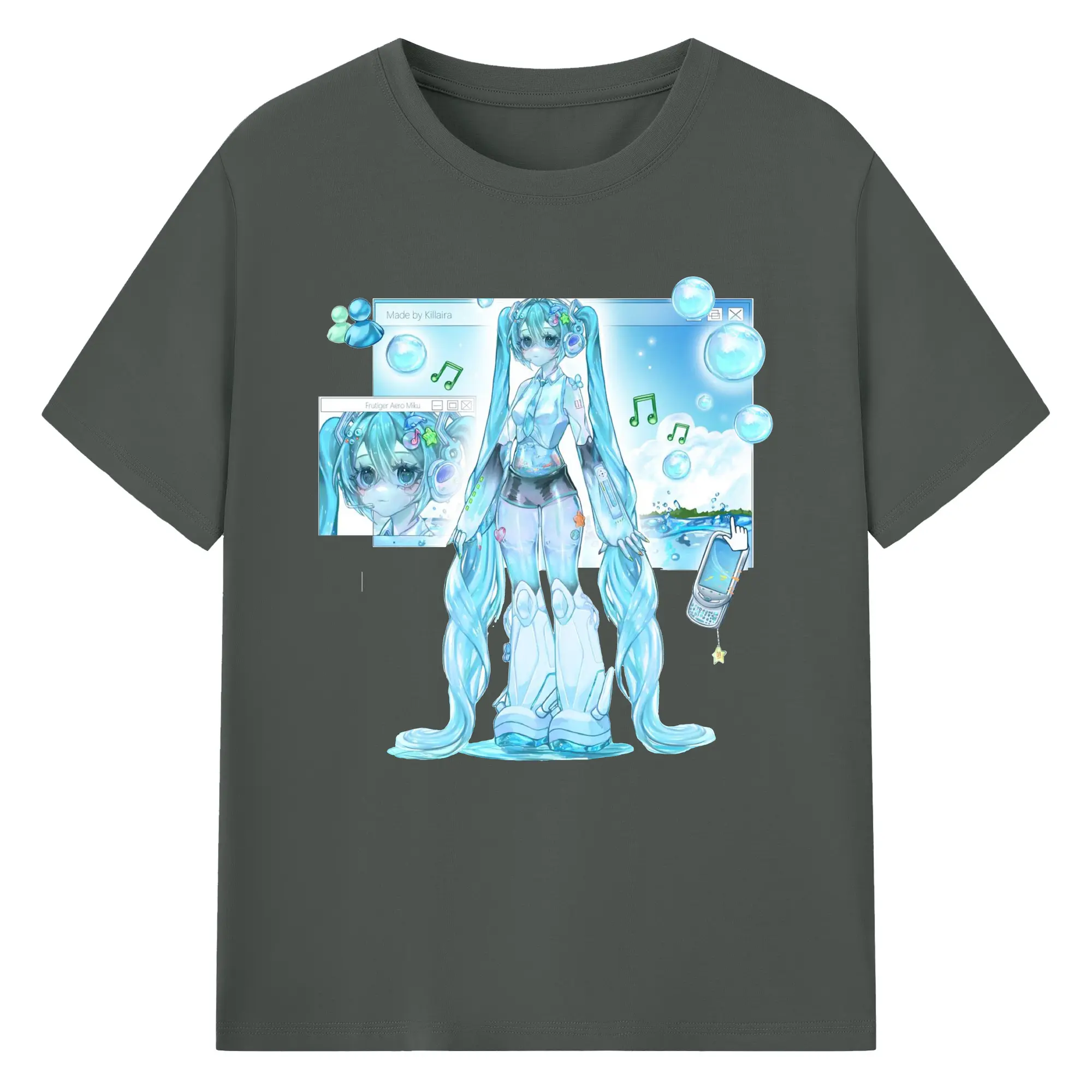 初音ミク 面白いデザイン - 綿100% ヴィンテージ風 半袖Tシャツ ・ フロントプリント ・ 柔らか肌触り ・ 通気性 快適 ・ スポーツ カジュアル 外出用