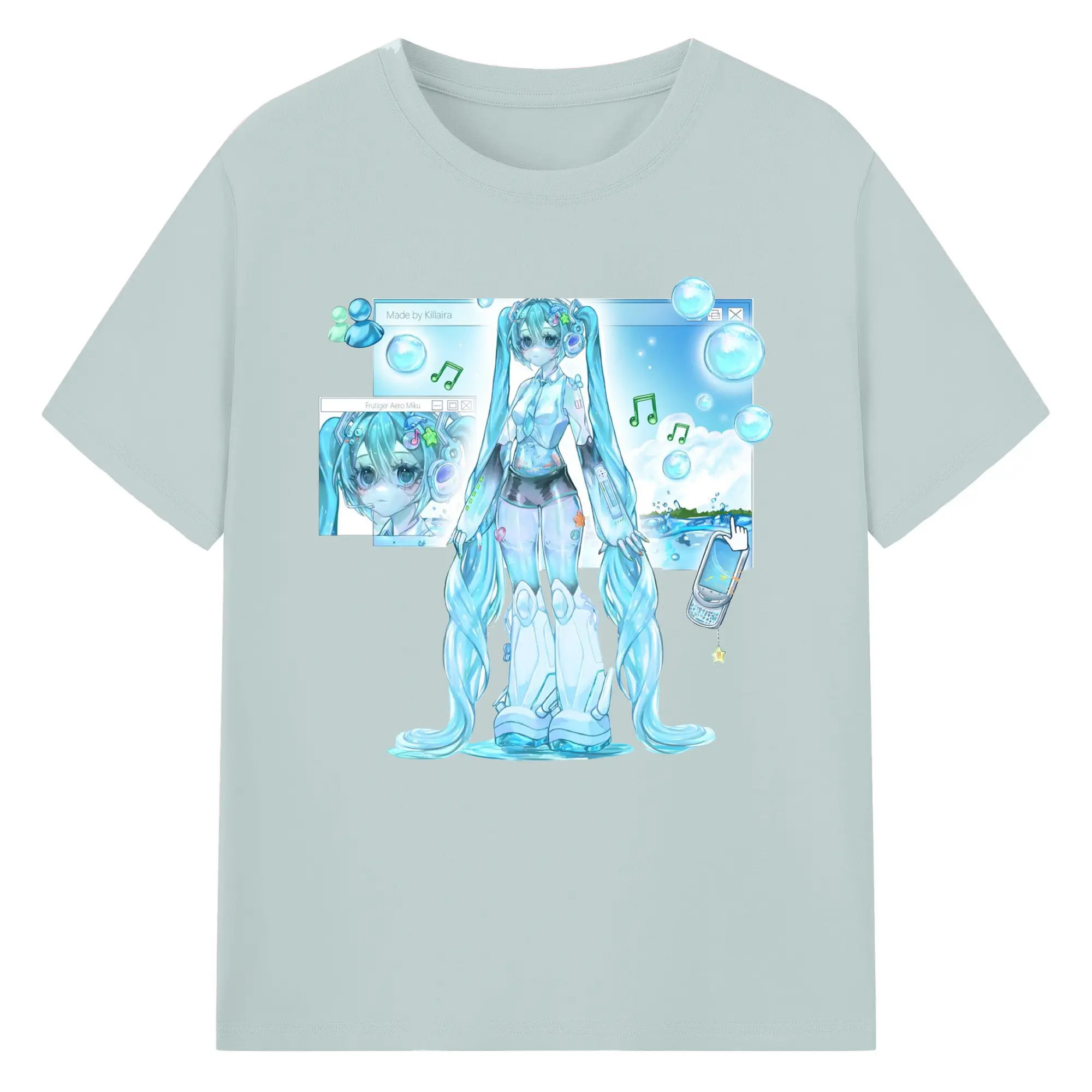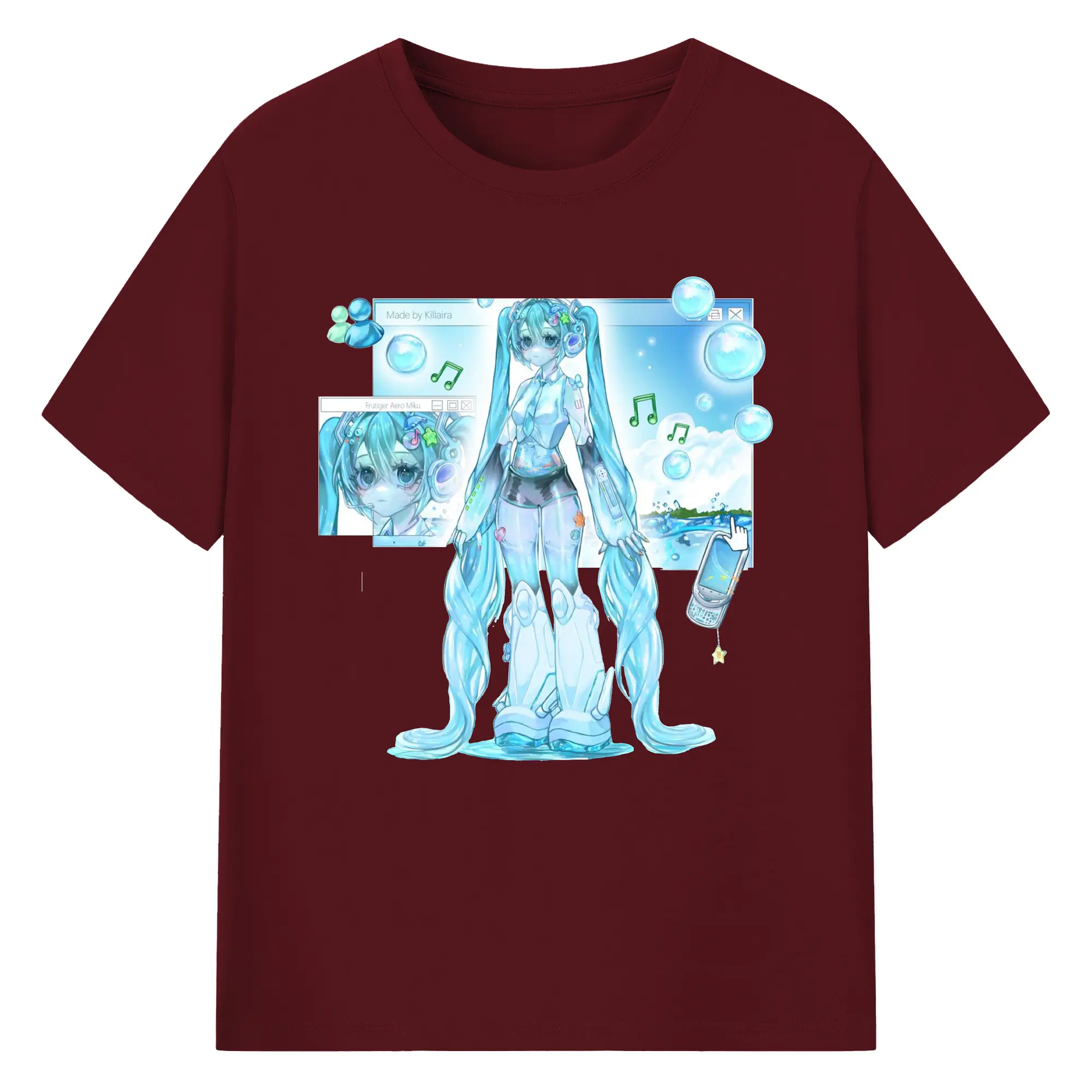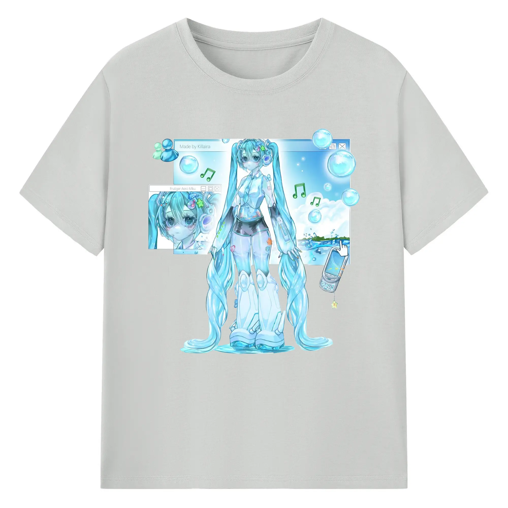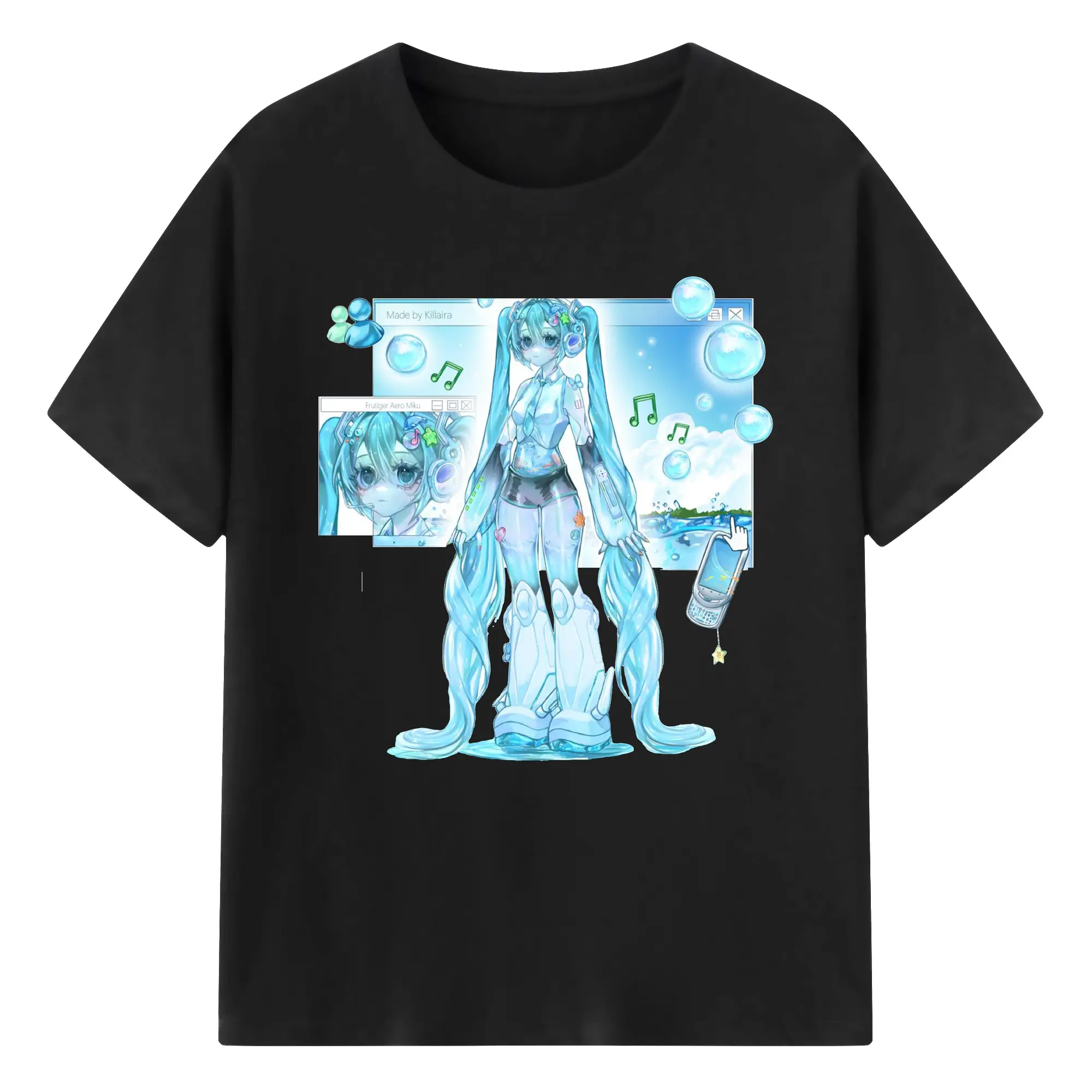 初音ミク 面白いデザイン - 綿100% ヴィンテージ風 半袖Tシャツ ・ フロントプリント ・ 柔らか肌触り ・ 通気性 快適 ・ スポーツ カジュアル 外出用