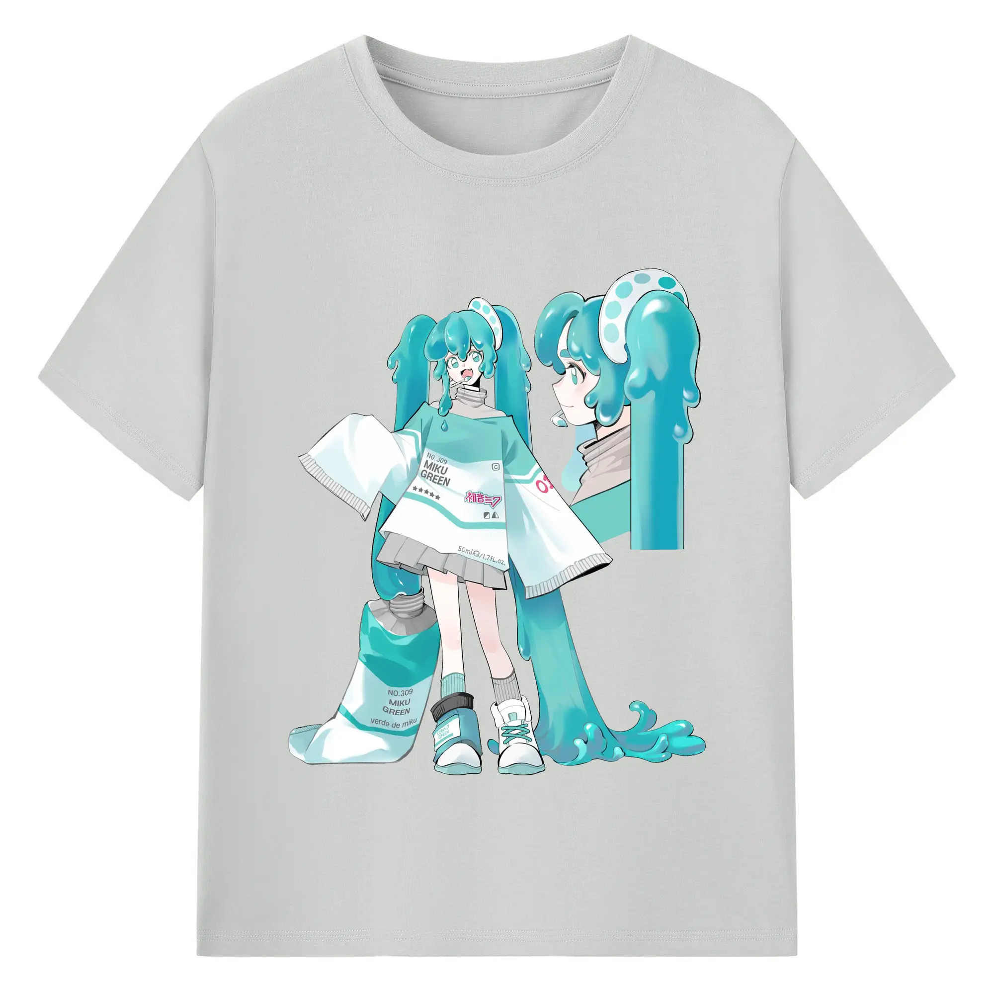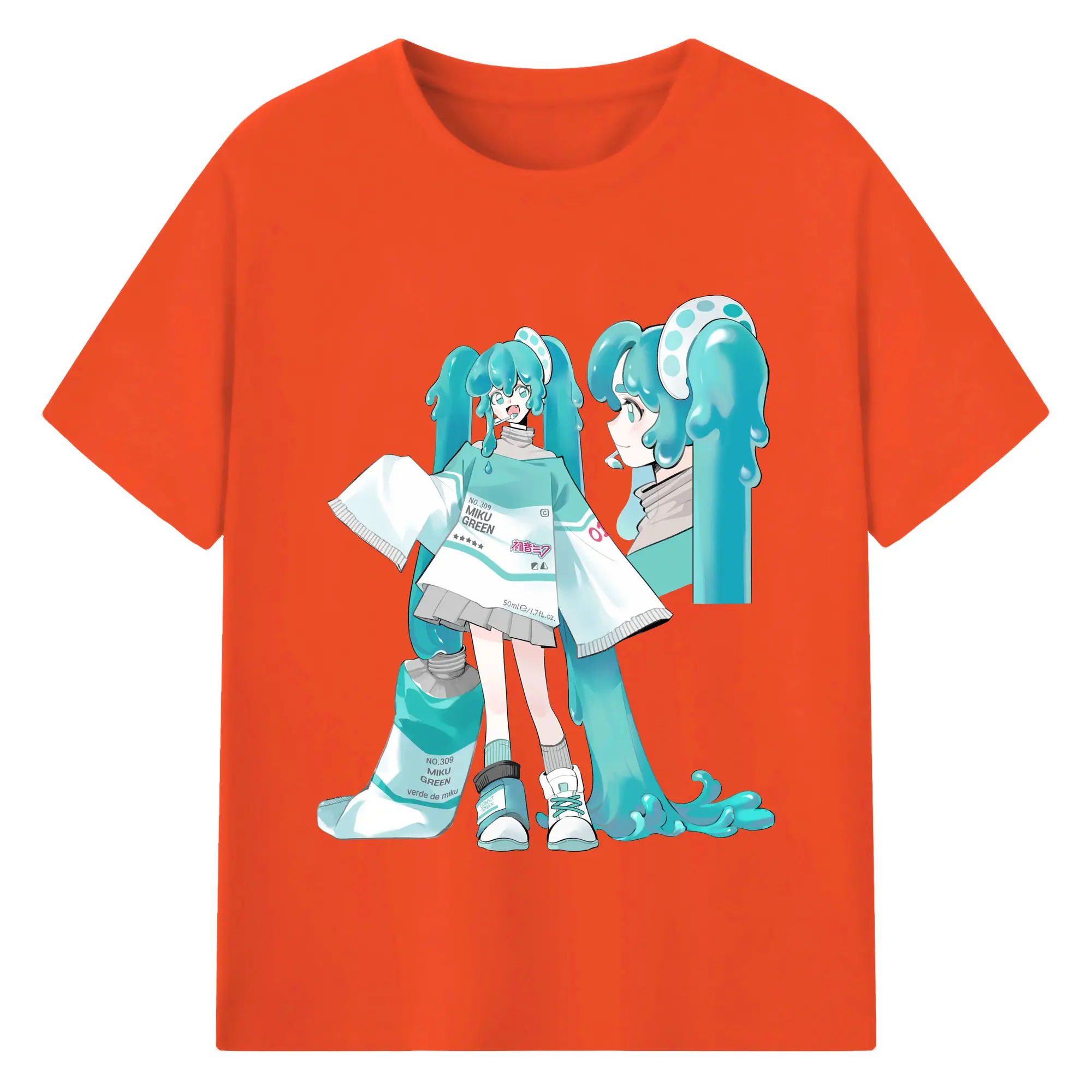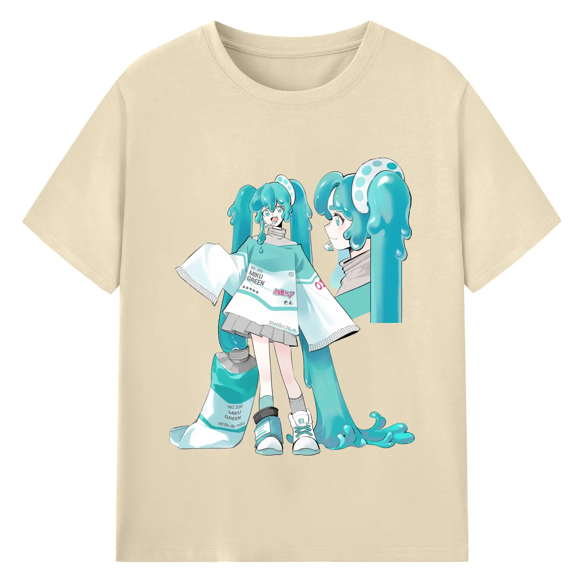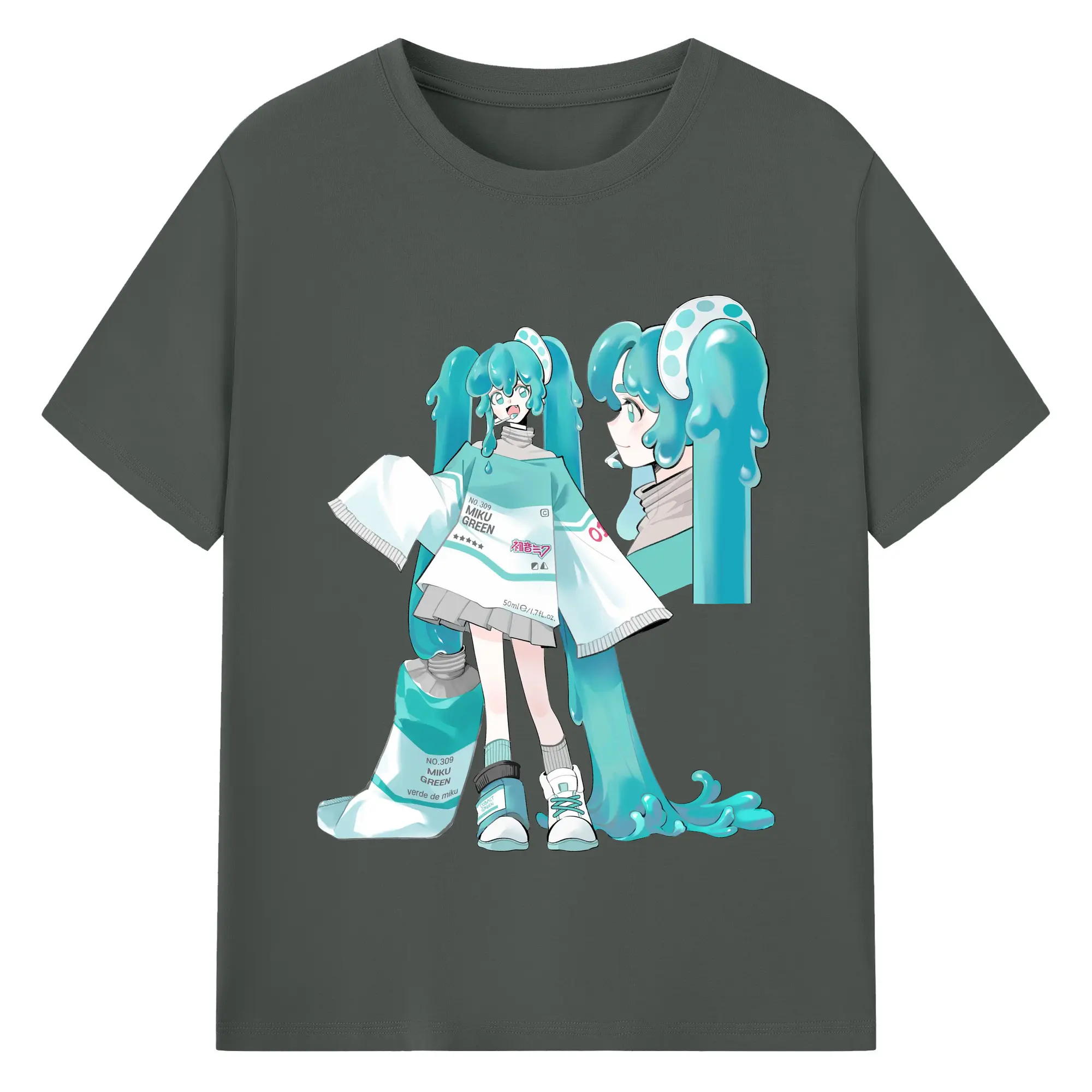 初音ミク 面白いデザイン - 綿100% ヴィンテージ風 半袖Tシャツ ・ フロントプリント ・ 柔らか肌触り ・ 通気性 快適 ・ スポーツ カジュアル 外出用