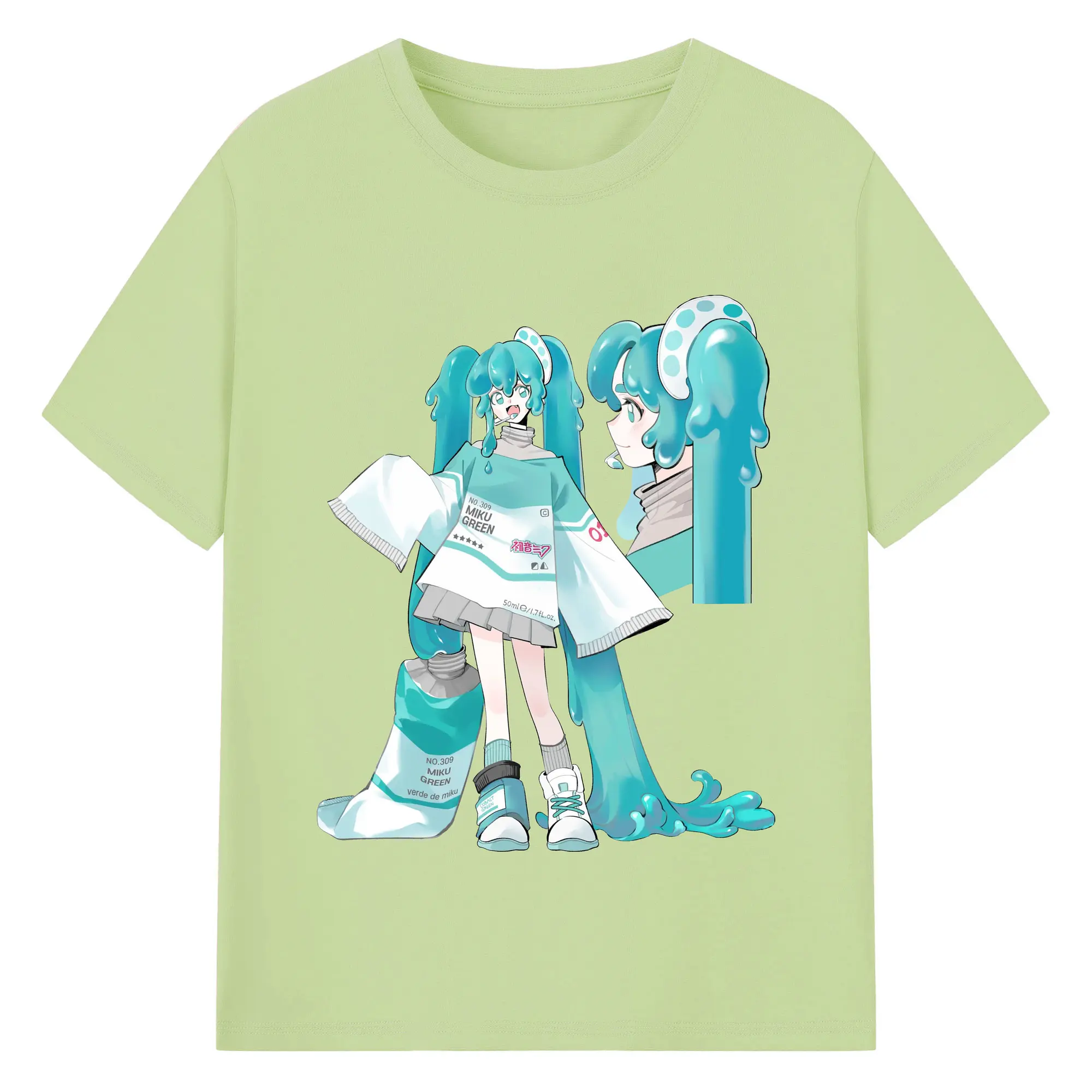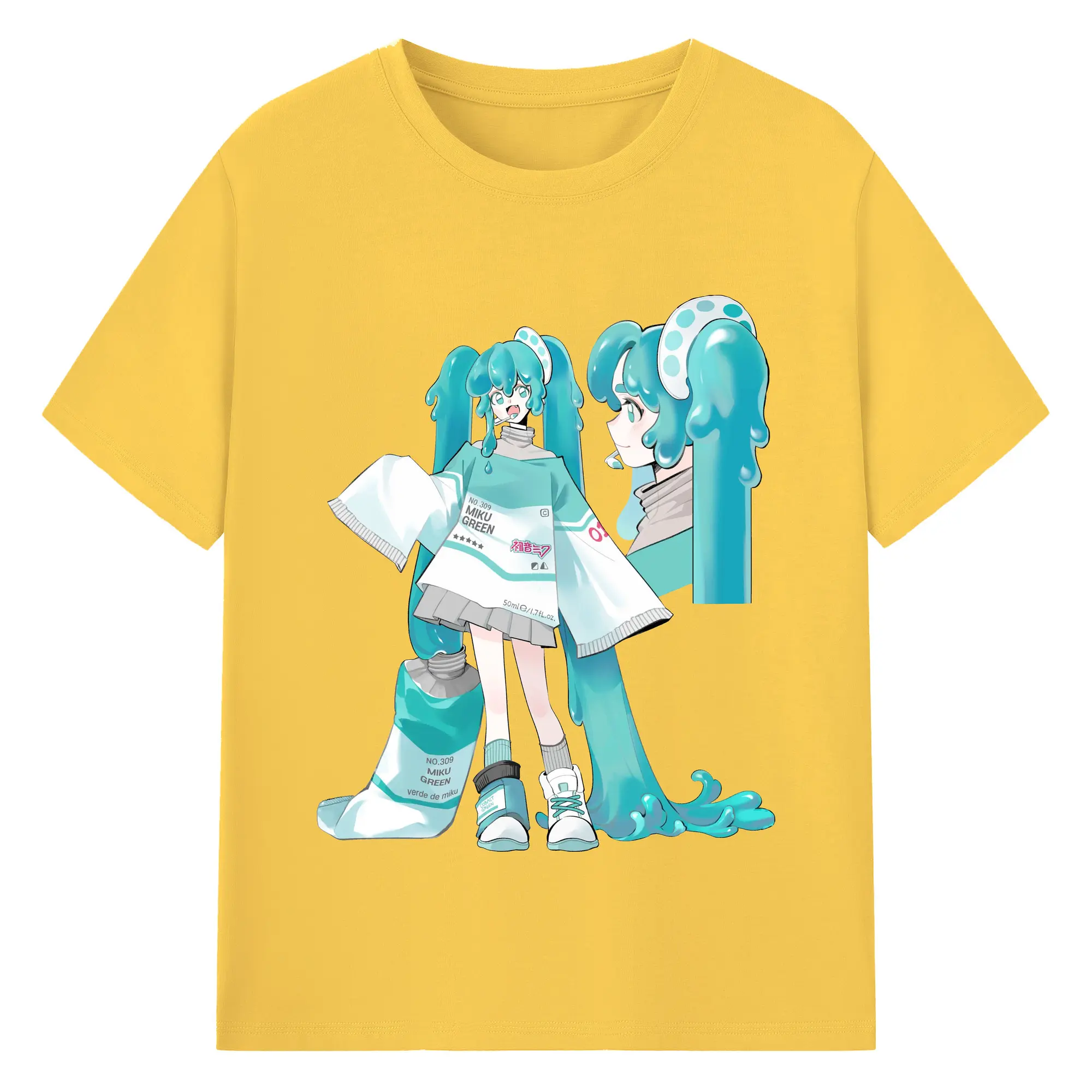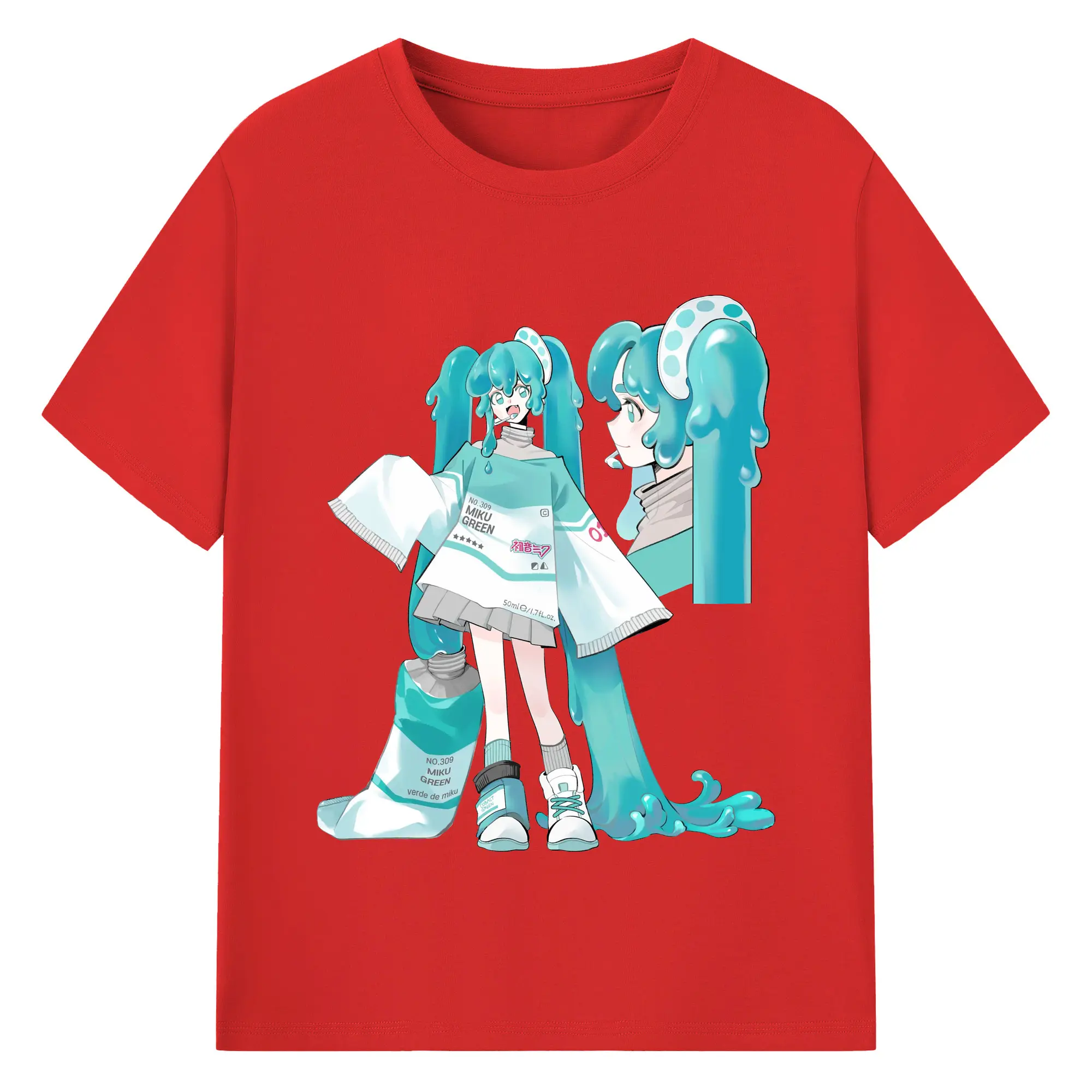 初音ミク 面白いデザイン - 綿100% ヴィンテージ風 半袖Tシャツ ・ フロントプリント ・ 柔らか肌触り ・ 通気性 快適 ・ スポーツ カジュアル 外出用