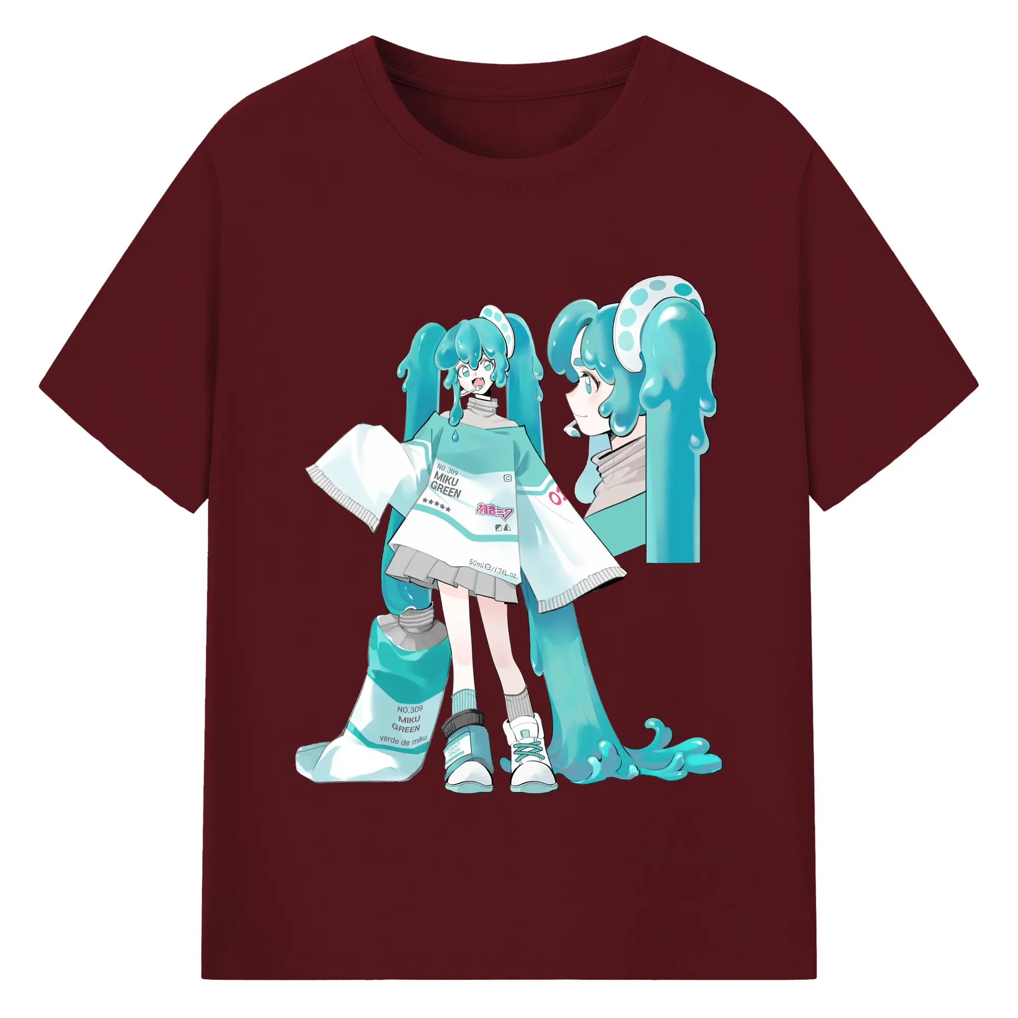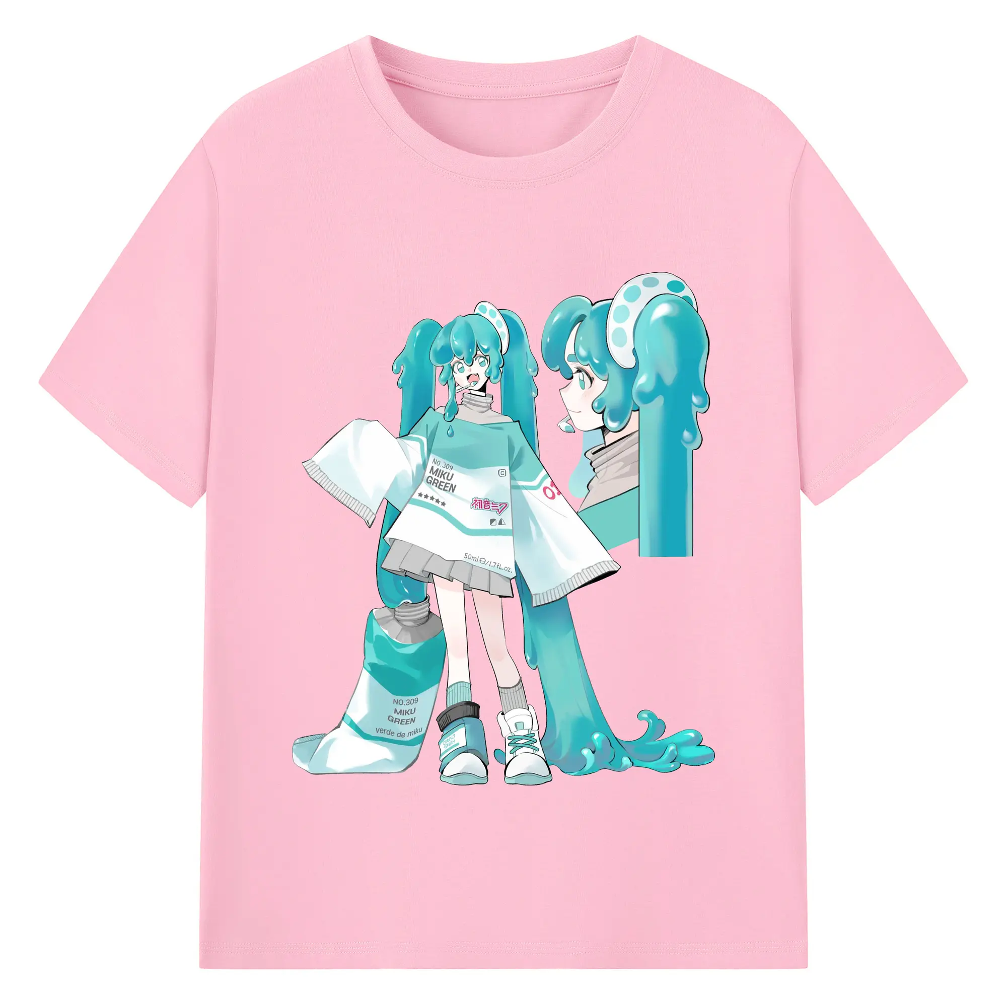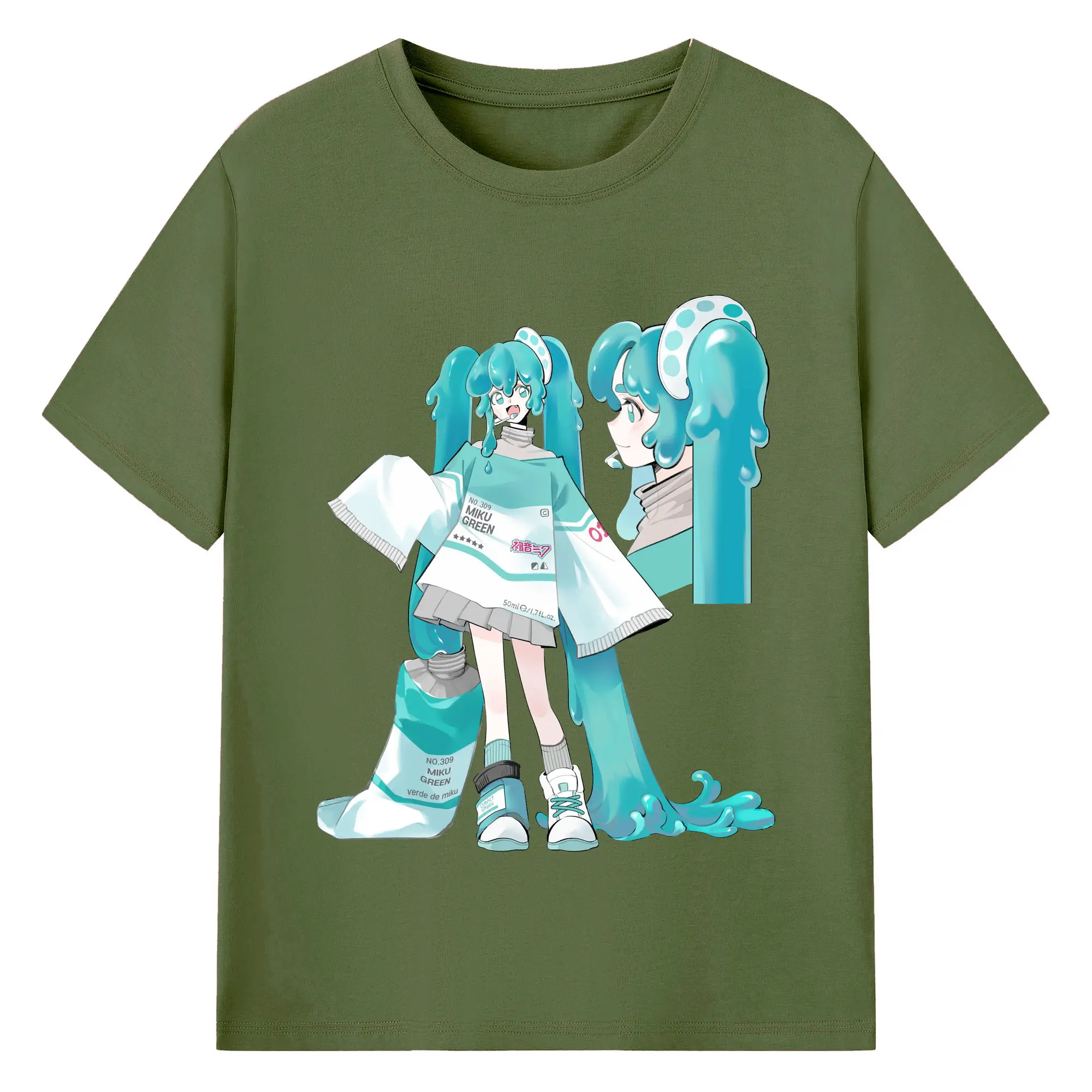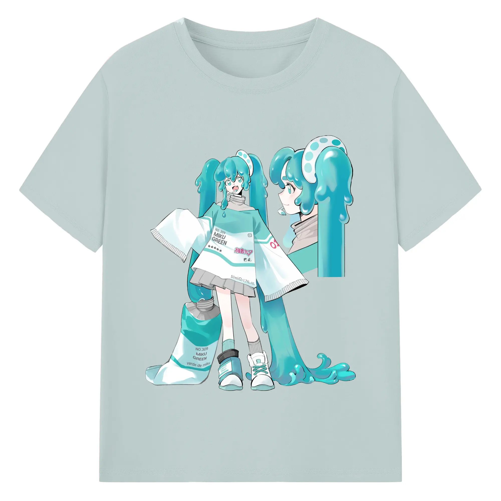 初音ミク 面白いデザイン - 綿100% ヴィンテージ風 半袖Tシャツ ・ フロントプリント ・ 柔らか肌触り ・ 通気性 快適 ・ スポーツ カジュアル 外出用