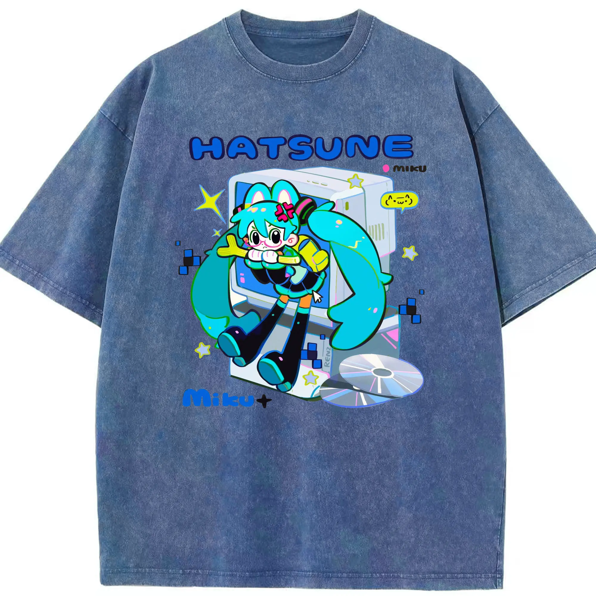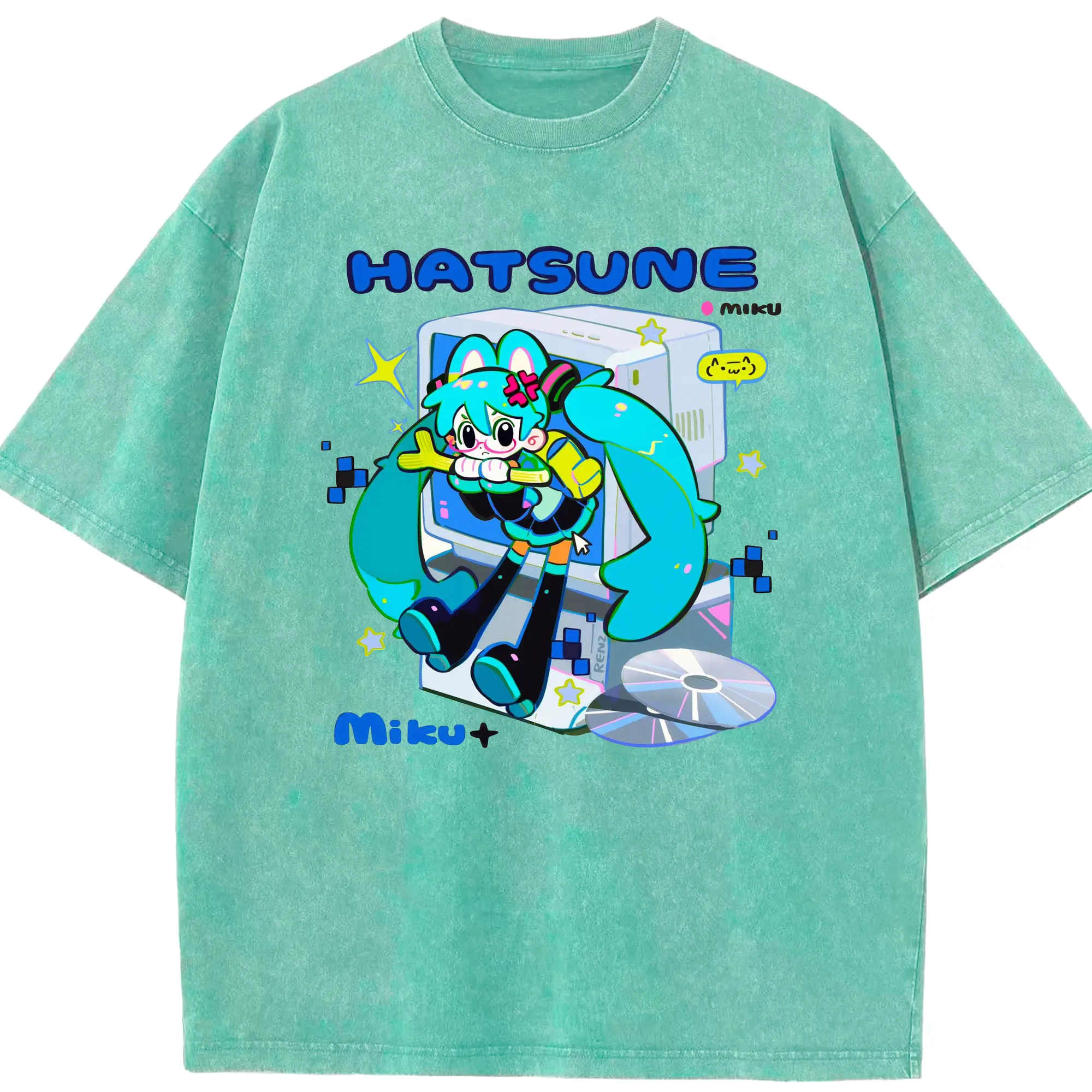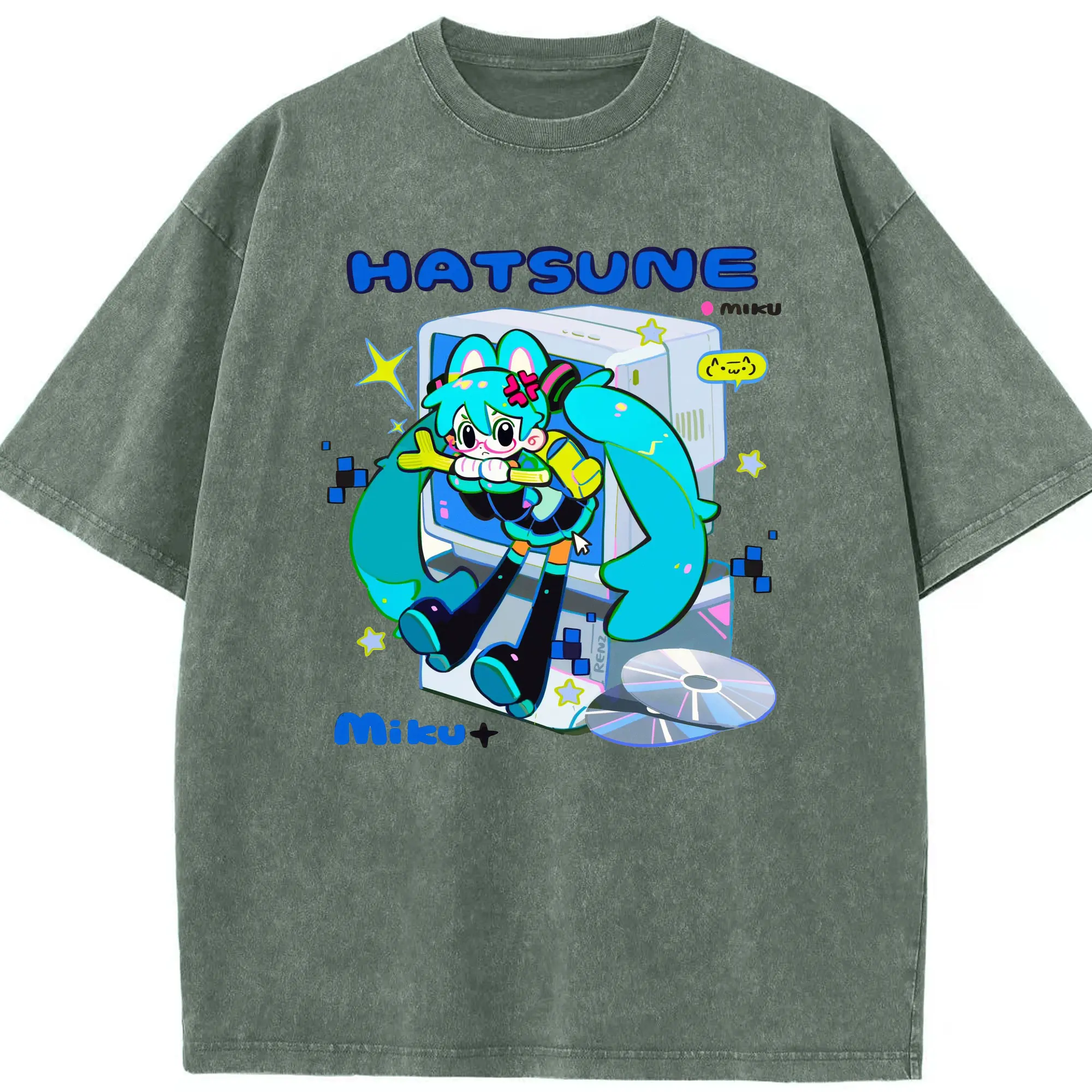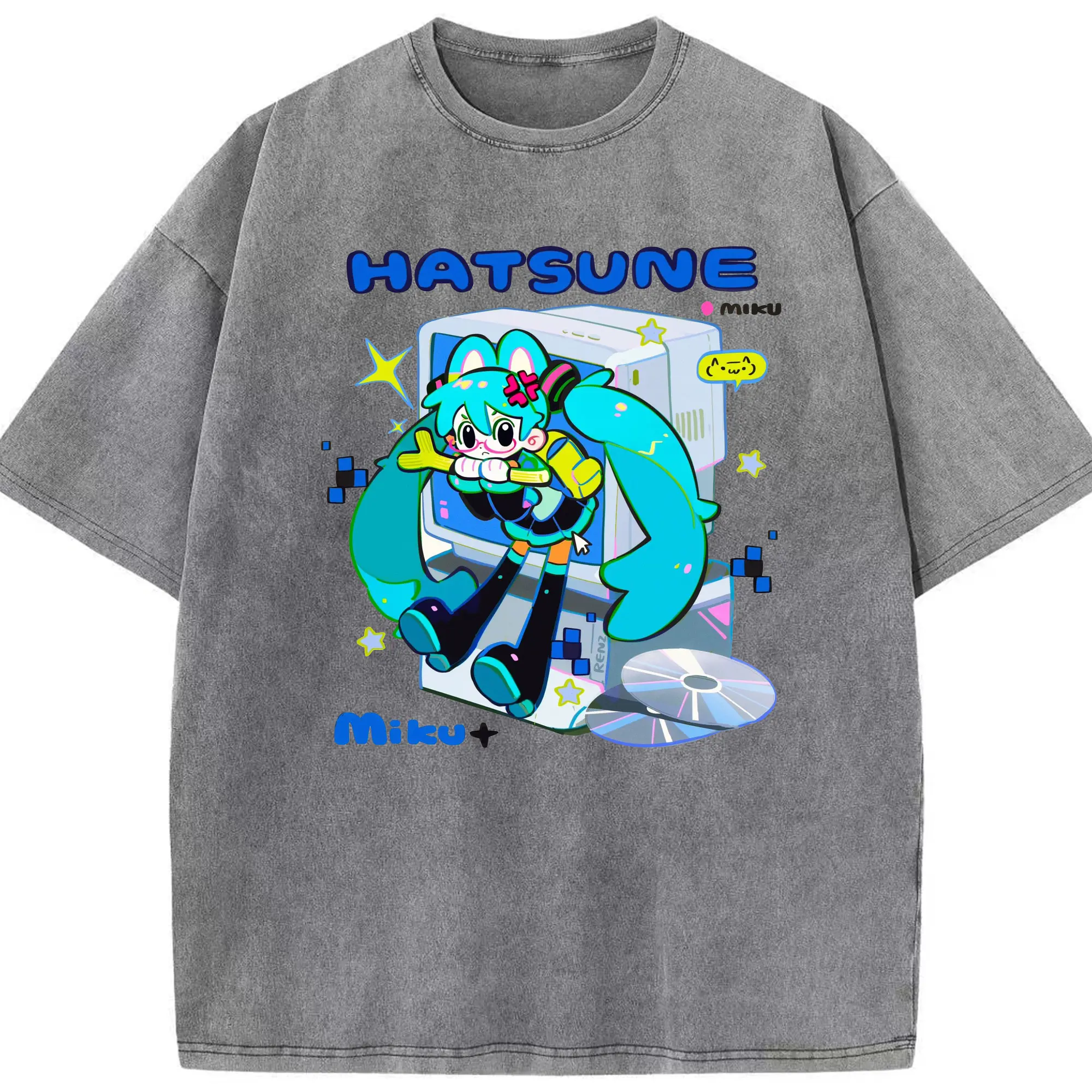 初音ミク CD マンガ - 綿100% 半袖Tシャツ ・ フロントプリント ・ 快適 通気性 ・ 日常使い 散歩 スポーツ用