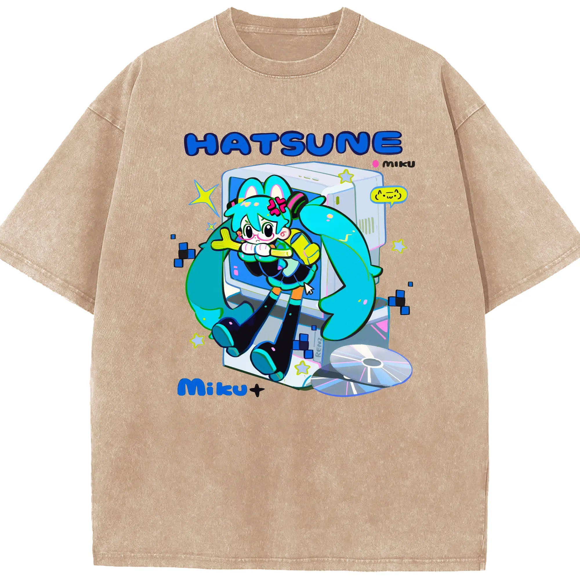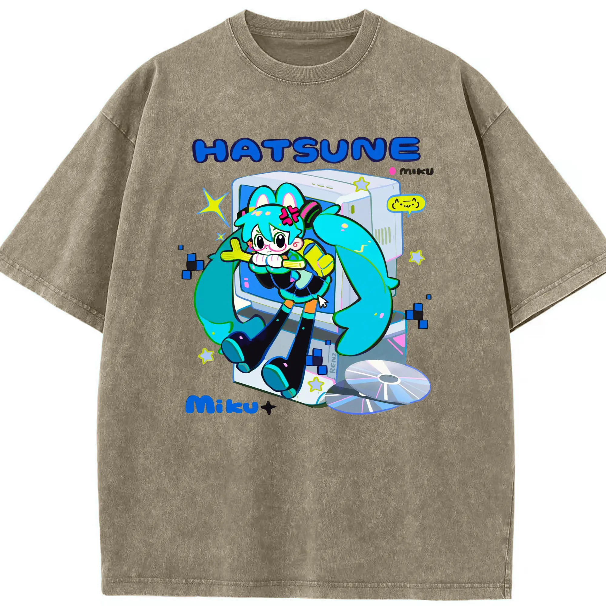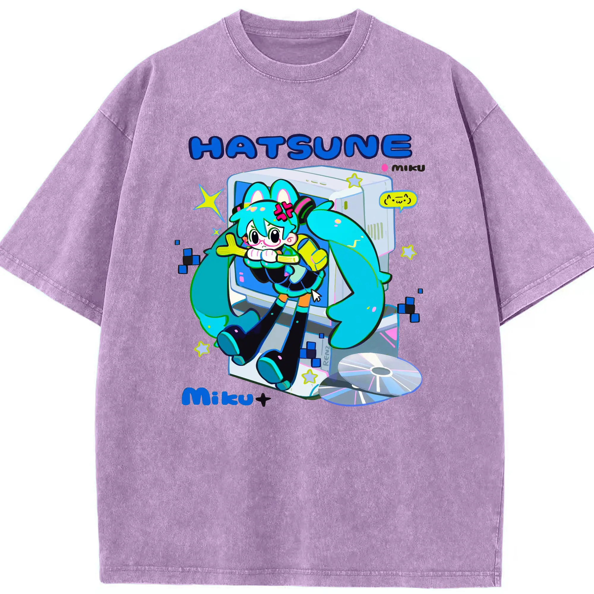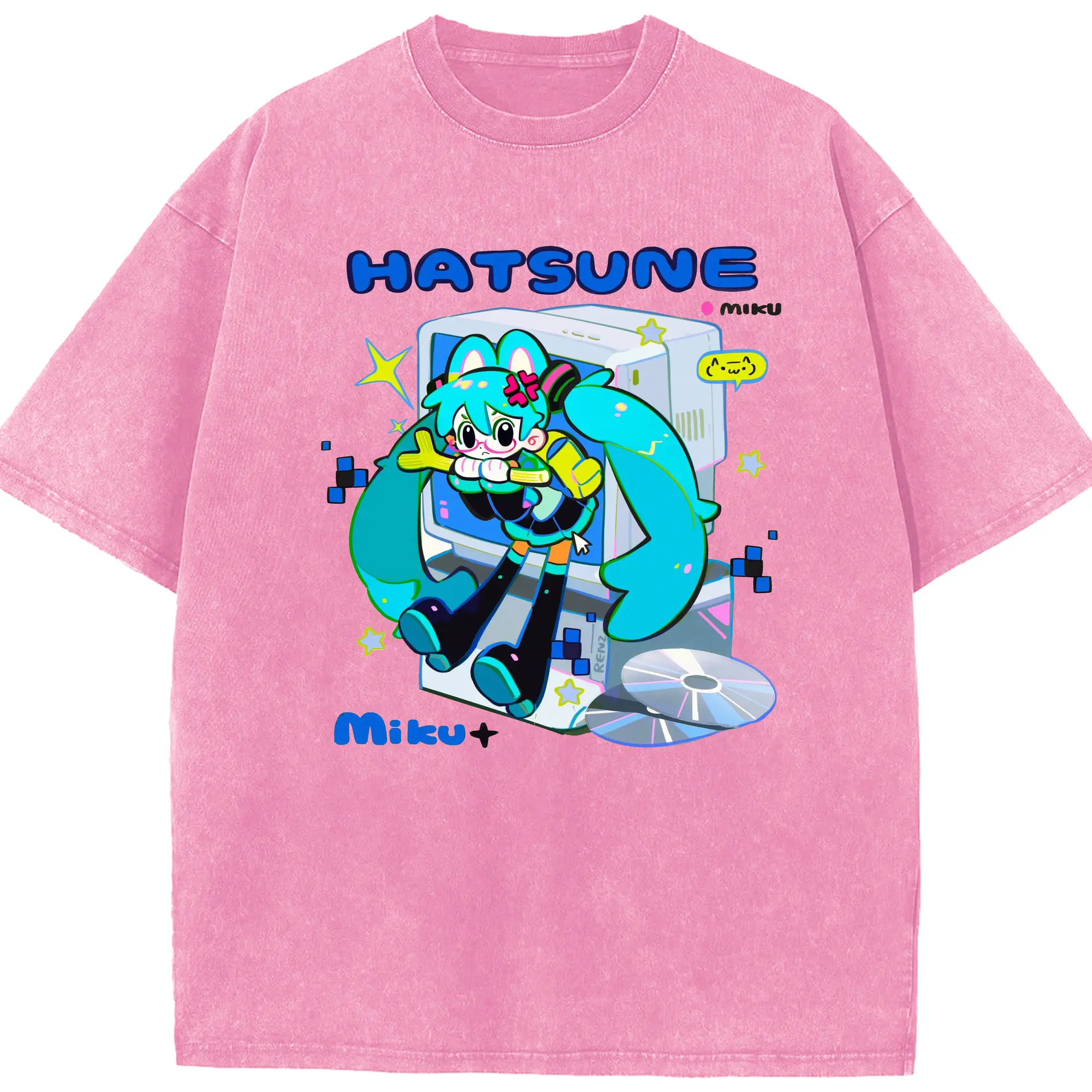 初音ミク CD マンガ - 綿100% 半袖Tシャツ ・ フロントプリント ・ 快適 通気性 ・ 日常使い 散歩 スポーツ用
