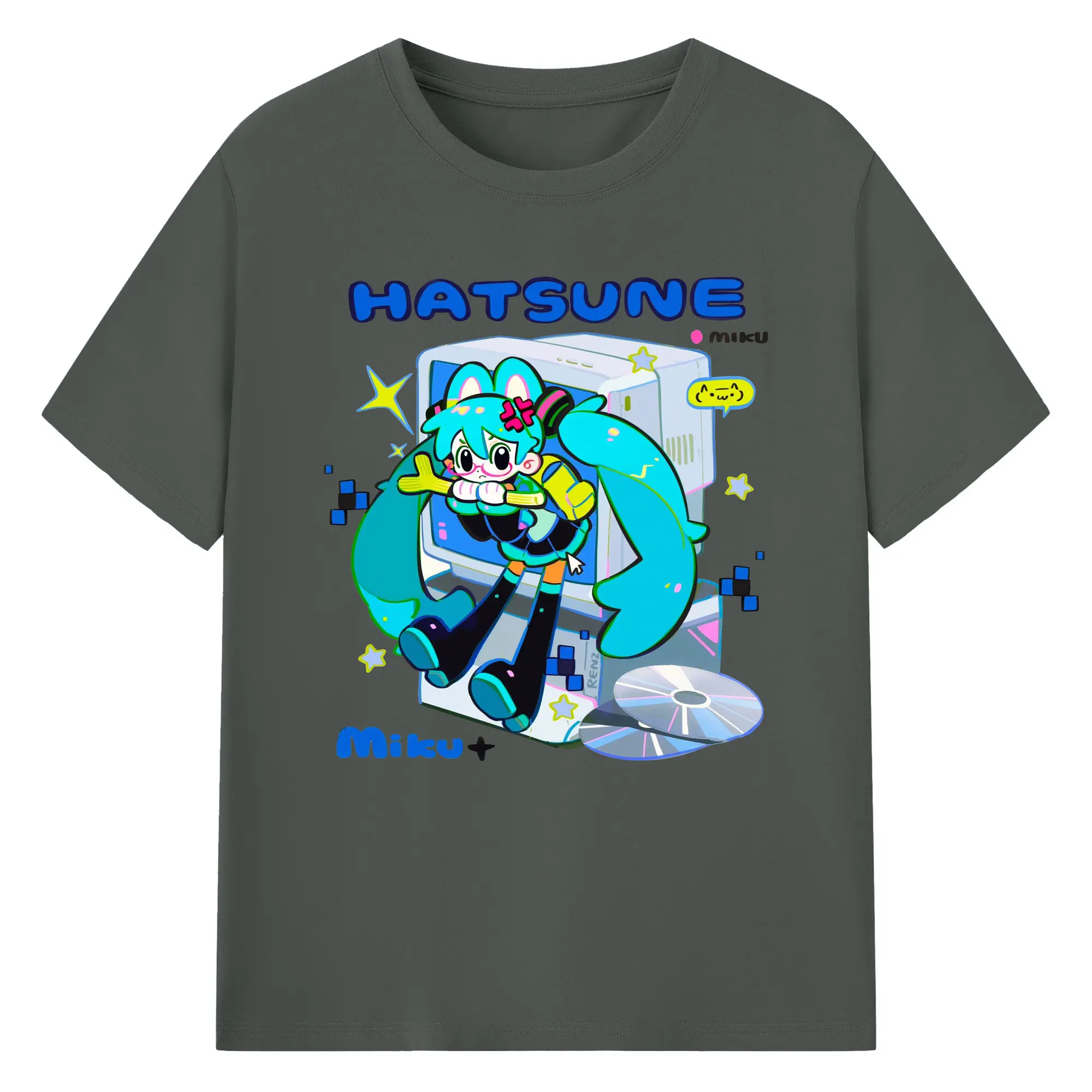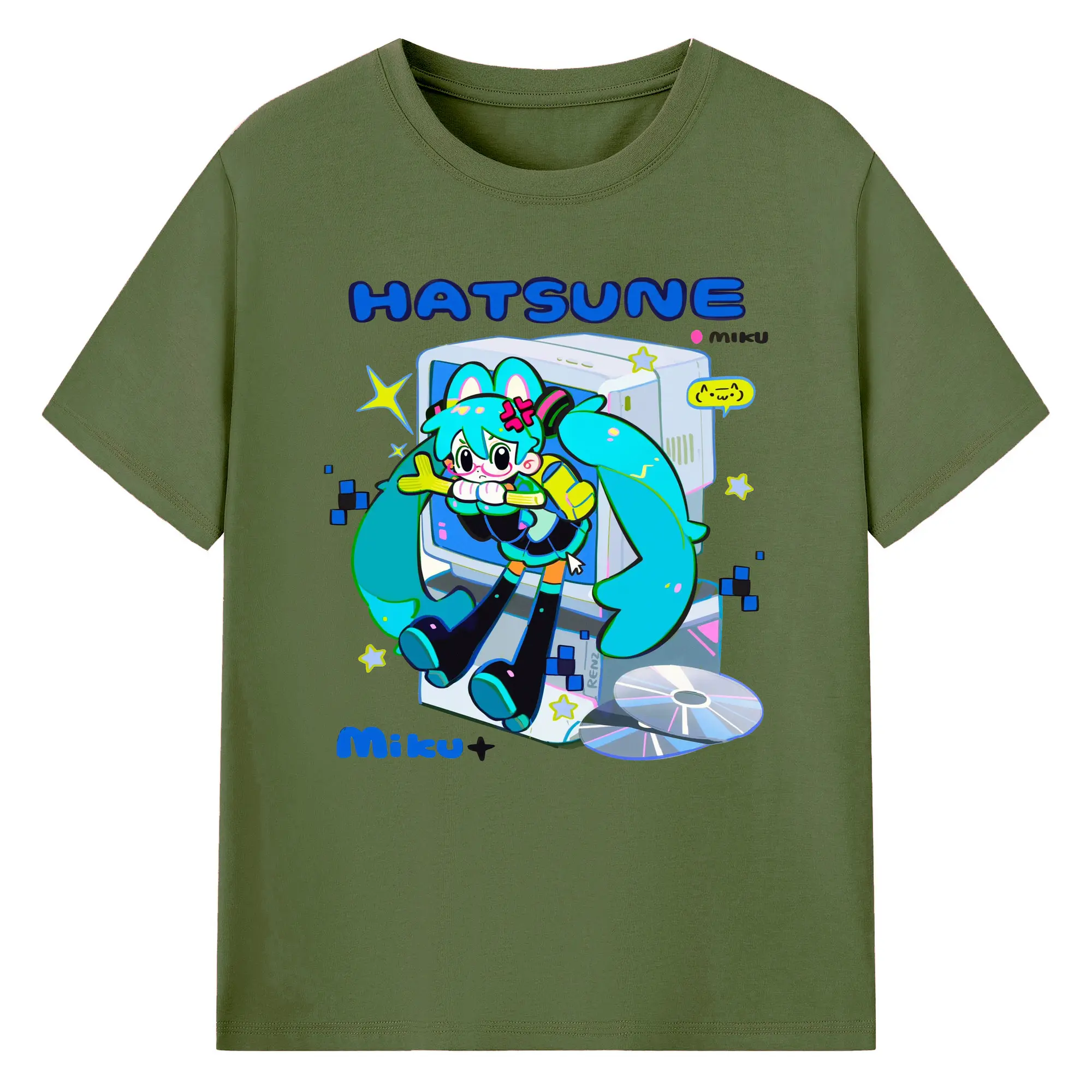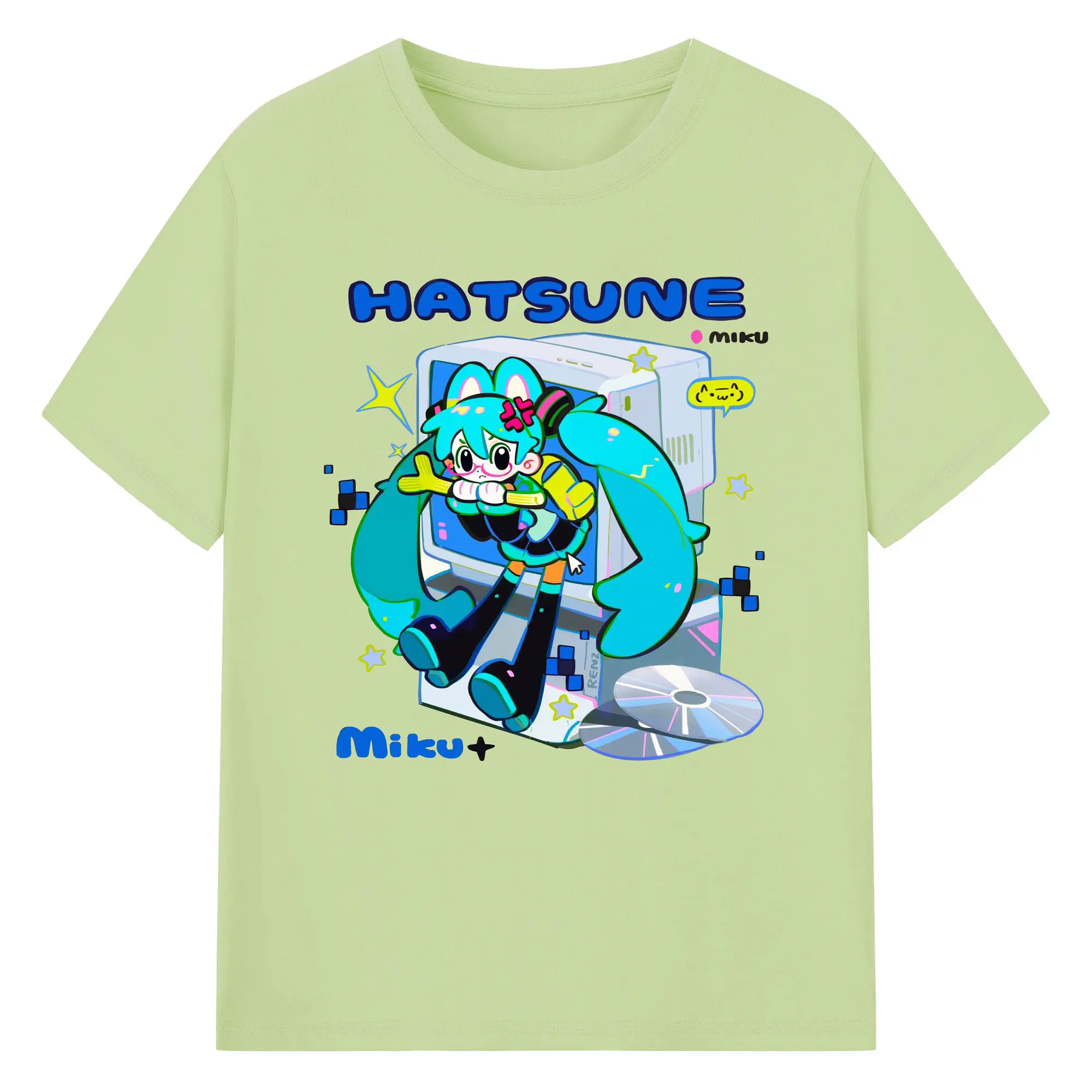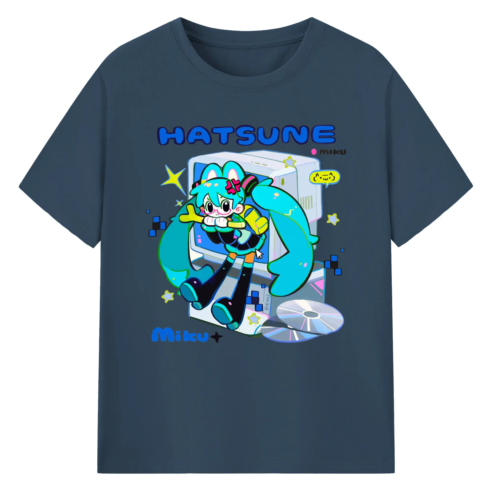 初音ミク CD マンガ - 綿100% ヴィンテージ風 半袖Tシャツ ・ フロントプリント ・ 柔らか肌触り ・ 通気性 快適 ・ スポーツ カジュアル 外出用