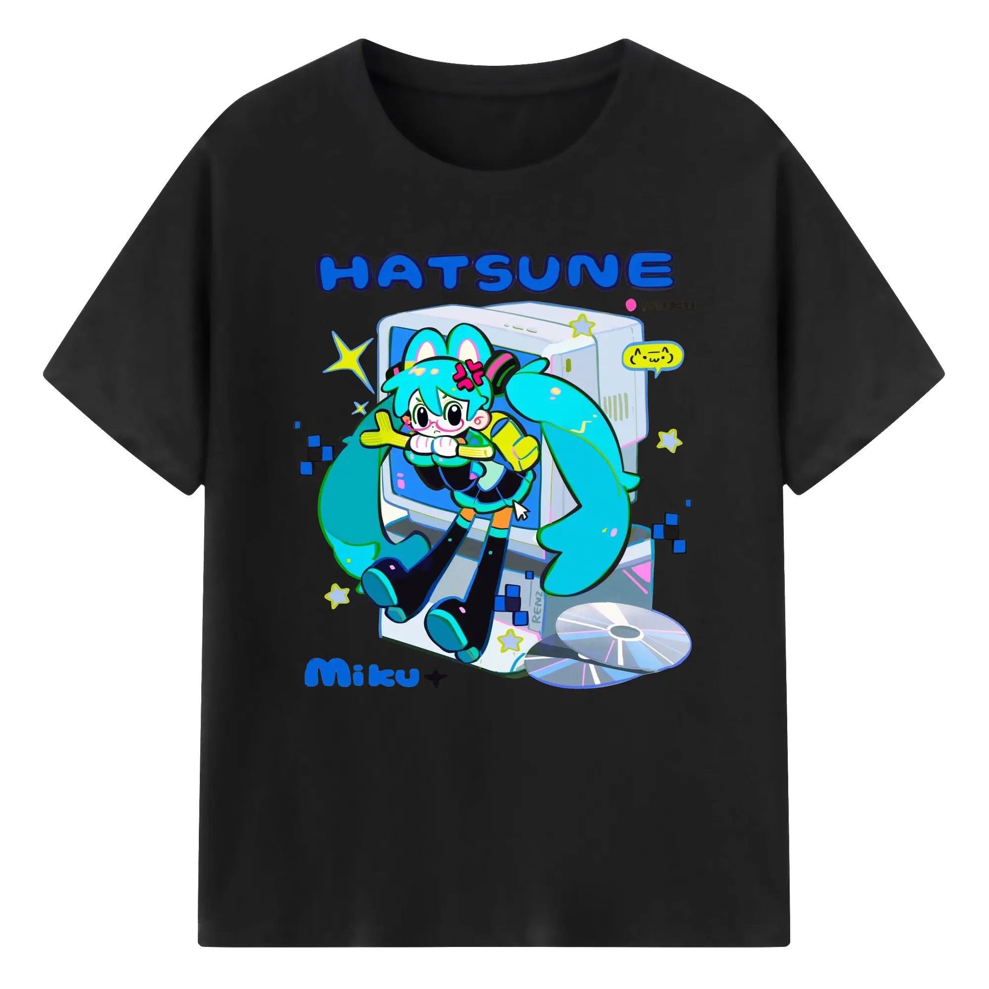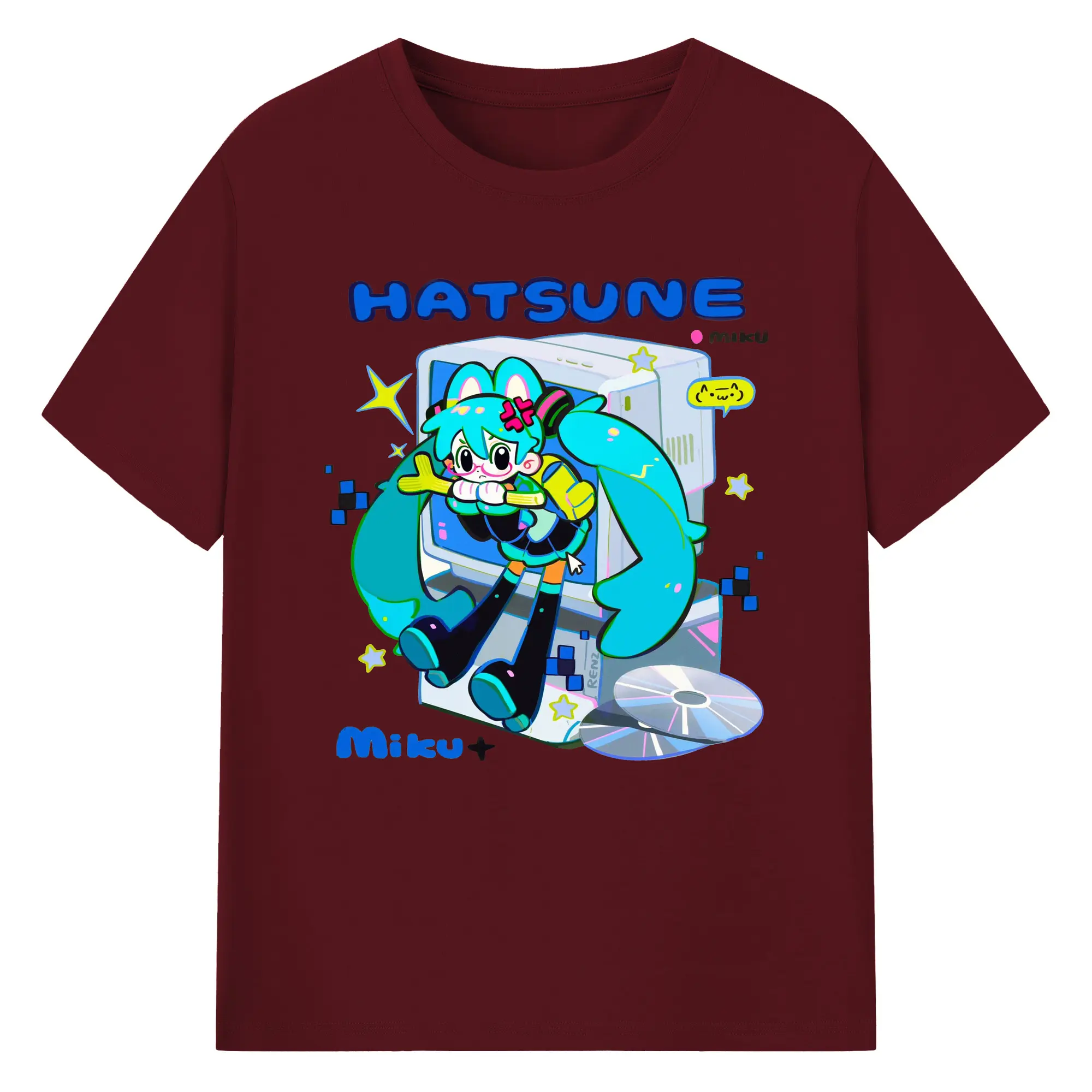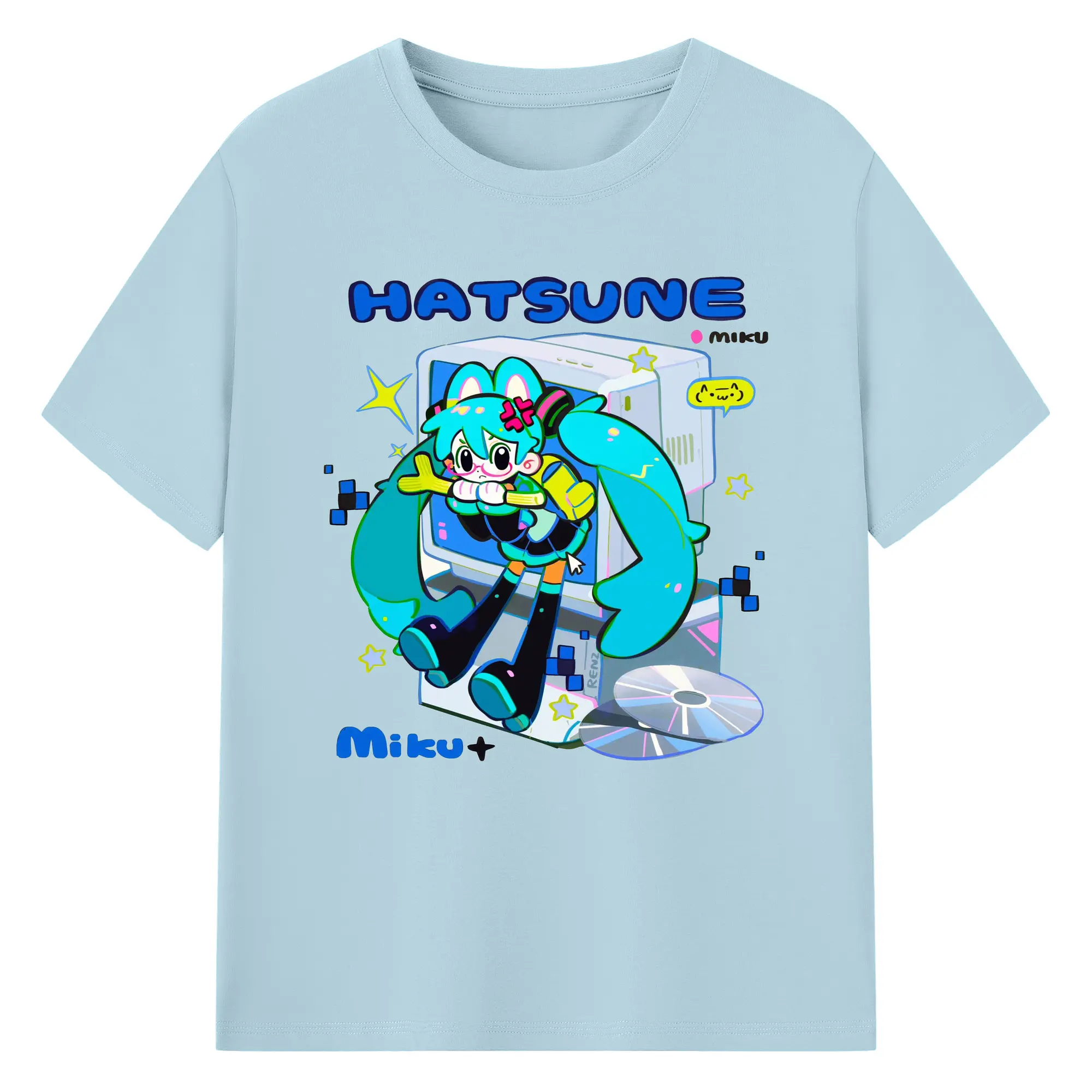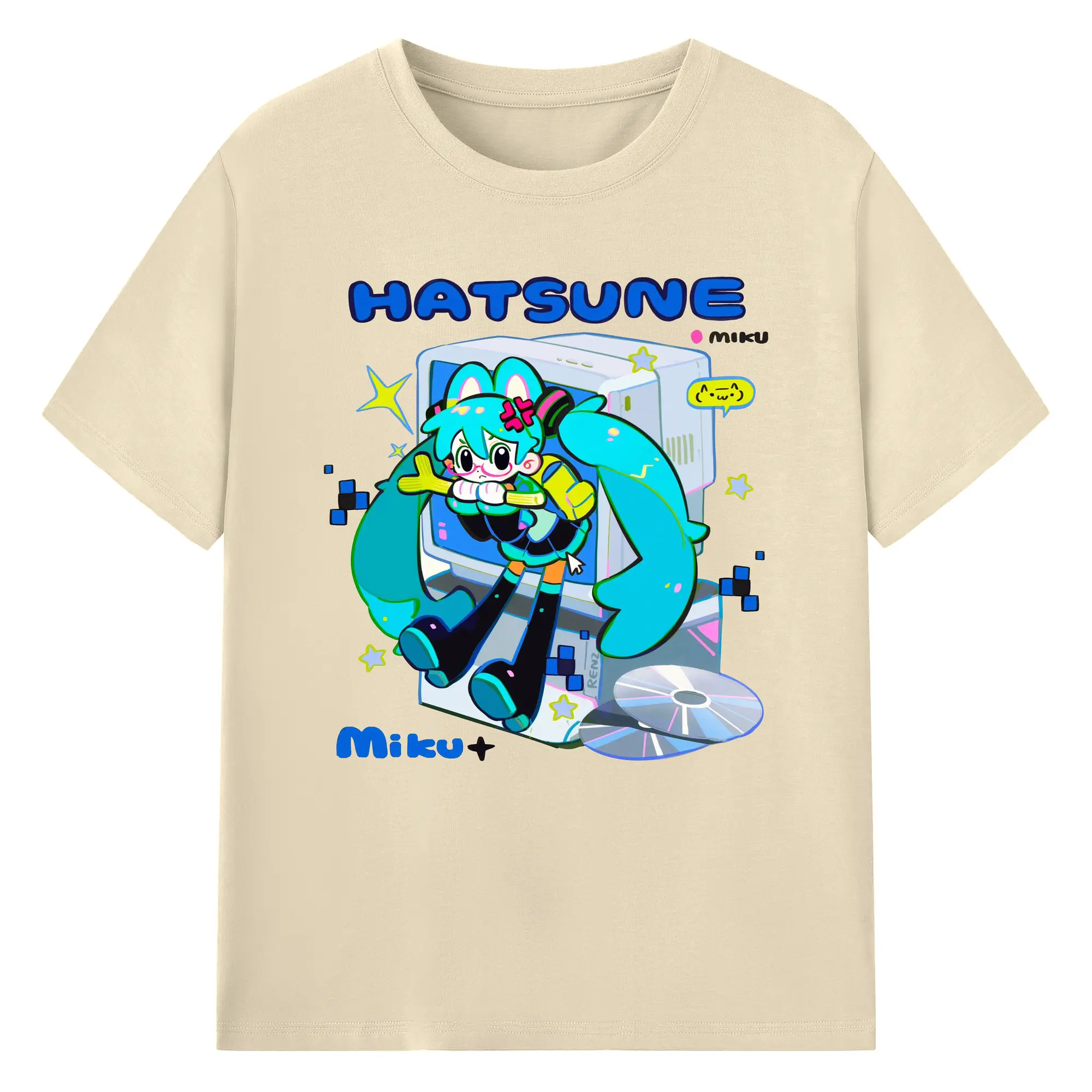 初音ミク CD マンガ - 綿100% ヴィンテージ風 半袖Tシャツ ・ フロントプリント ・ 柔らか肌触り ・ 通気性 快適 ・ スポーツ カジュアル 外出用