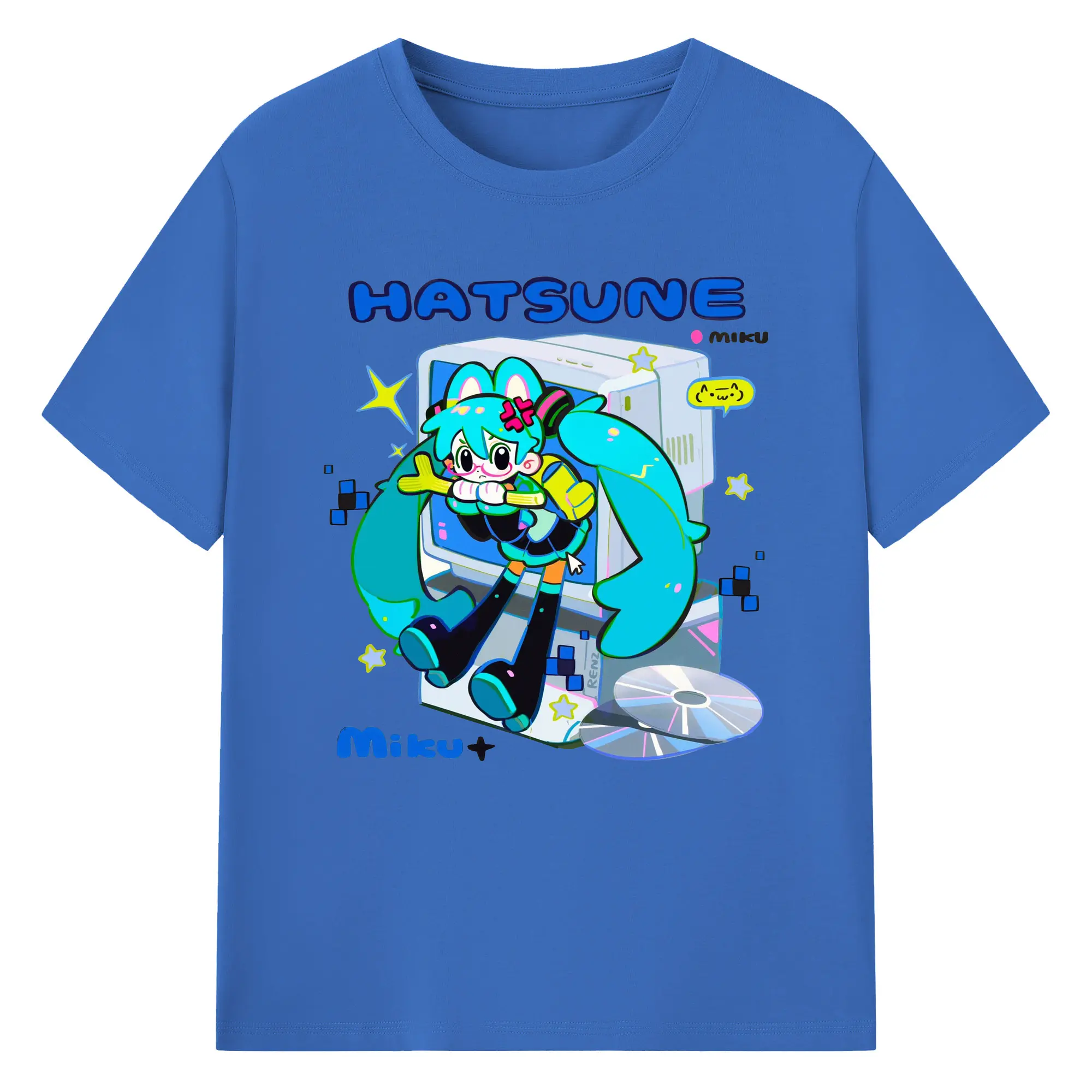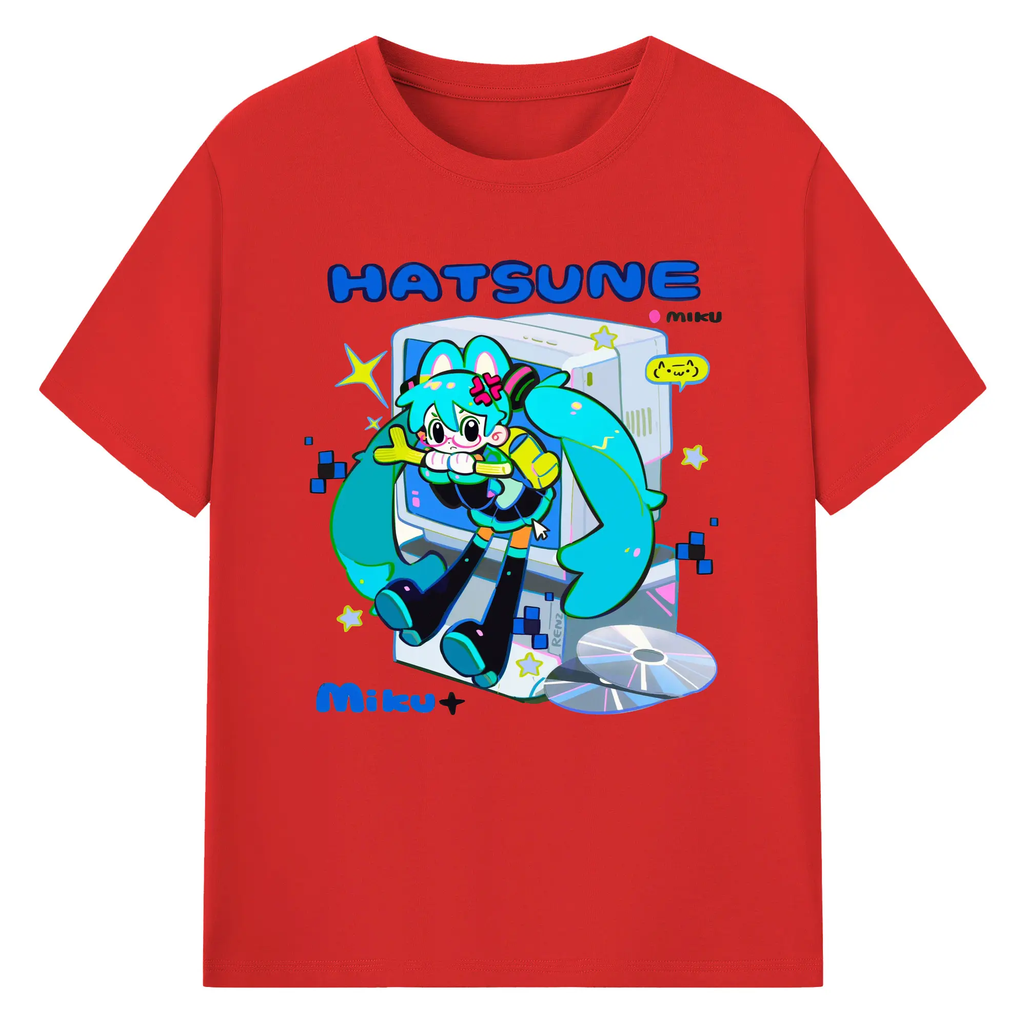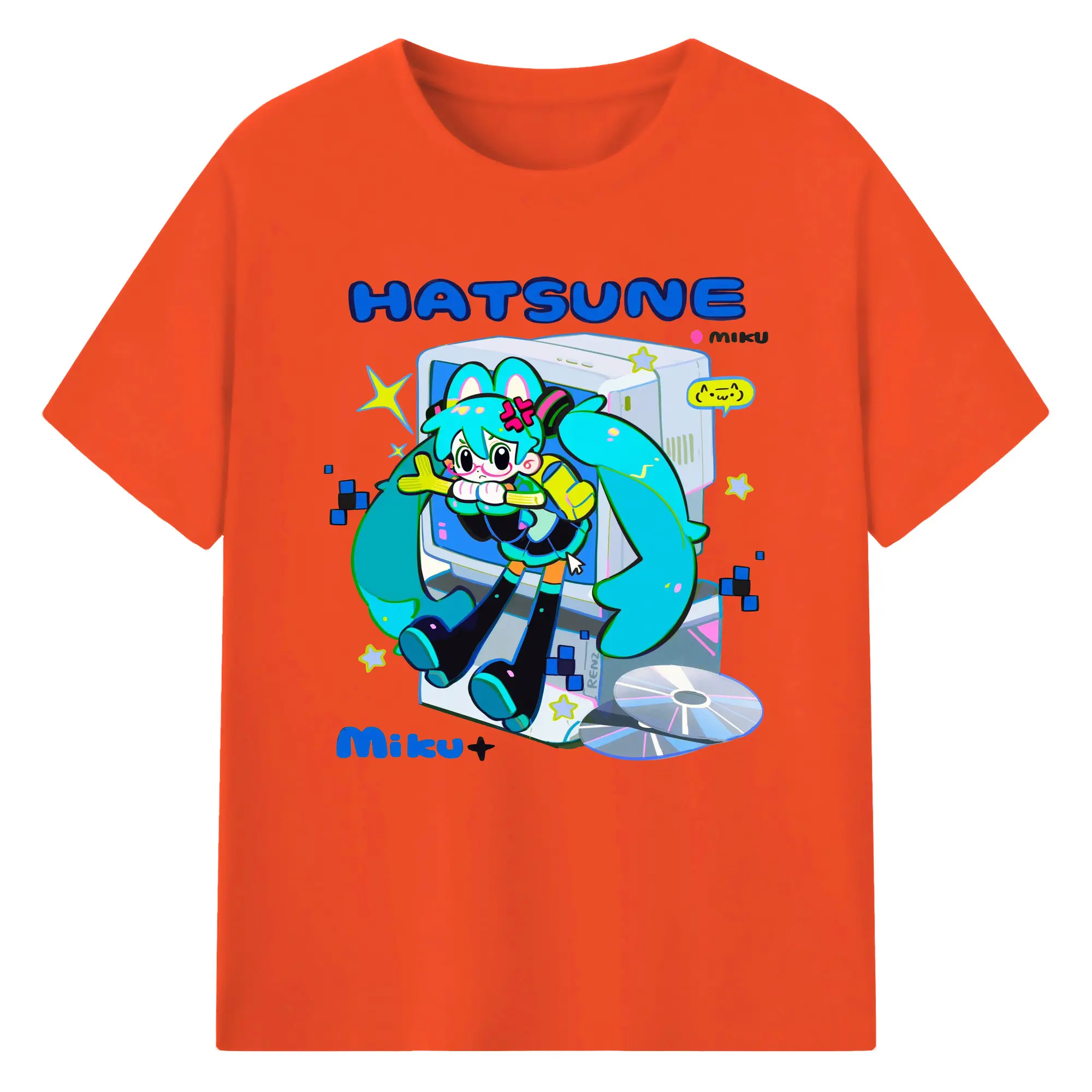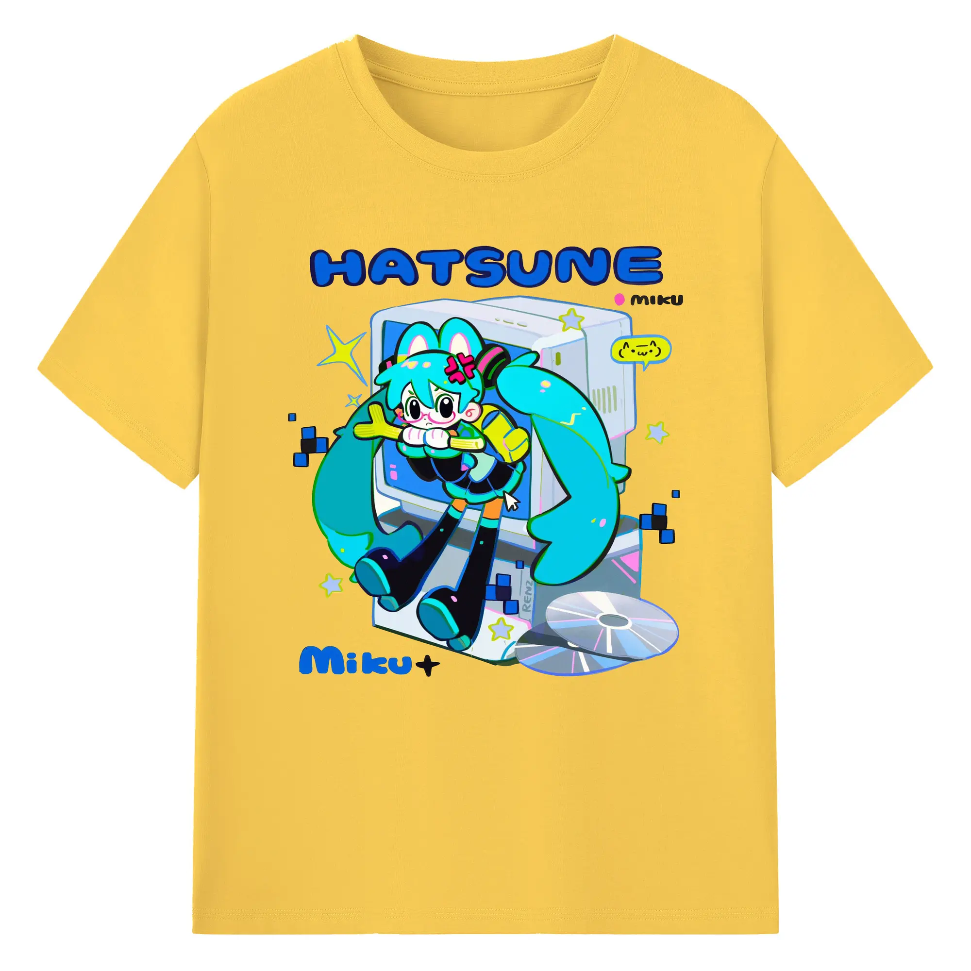 初音ミク CD マンガ - 綿100% ヴィンテージ風 半袖Tシャツ ・ フロントプリント ・ 柔らか肌触り ・ 通気性 快適 ・ スポーツ カジュアル 外出用