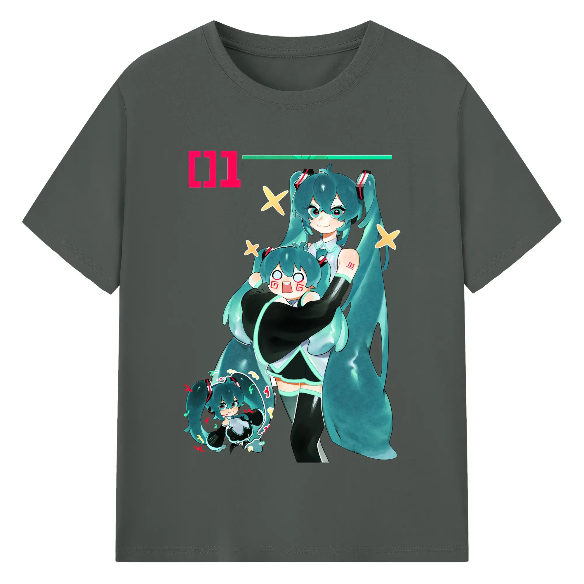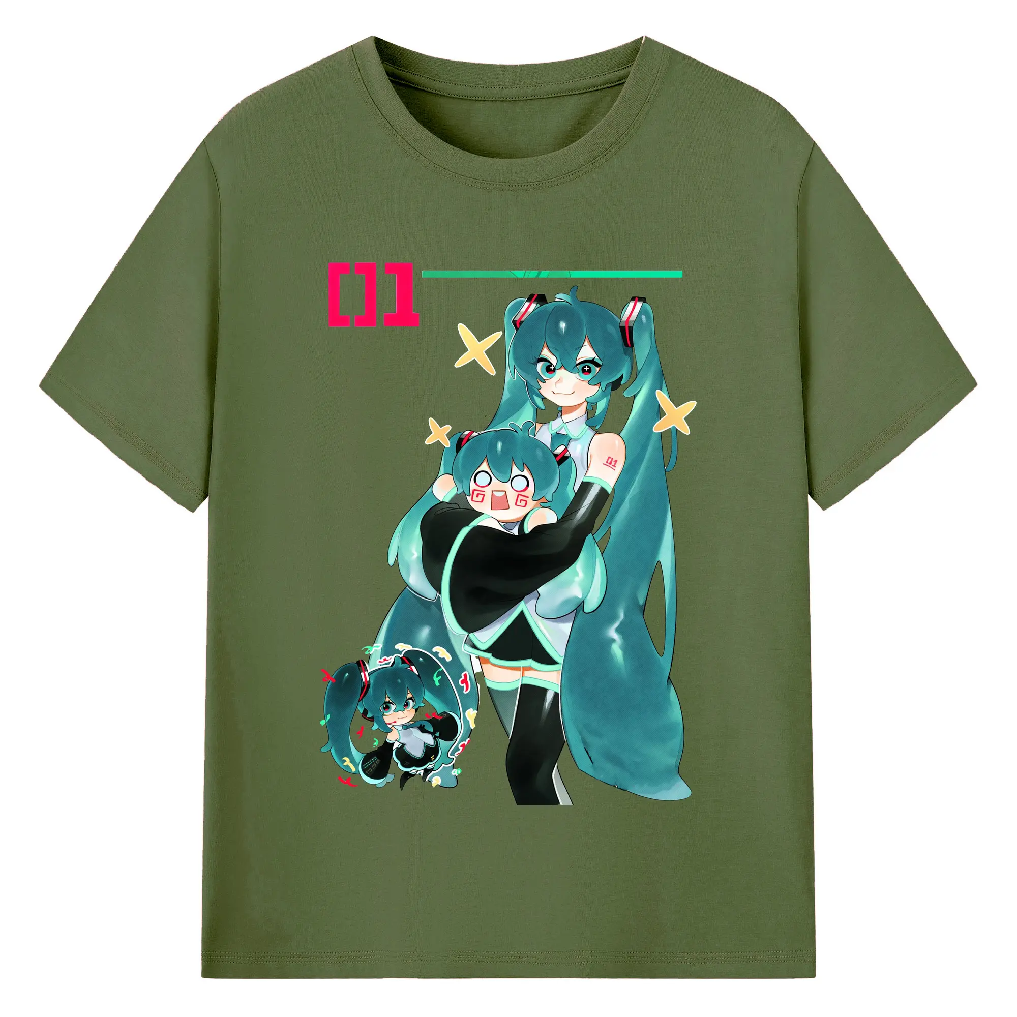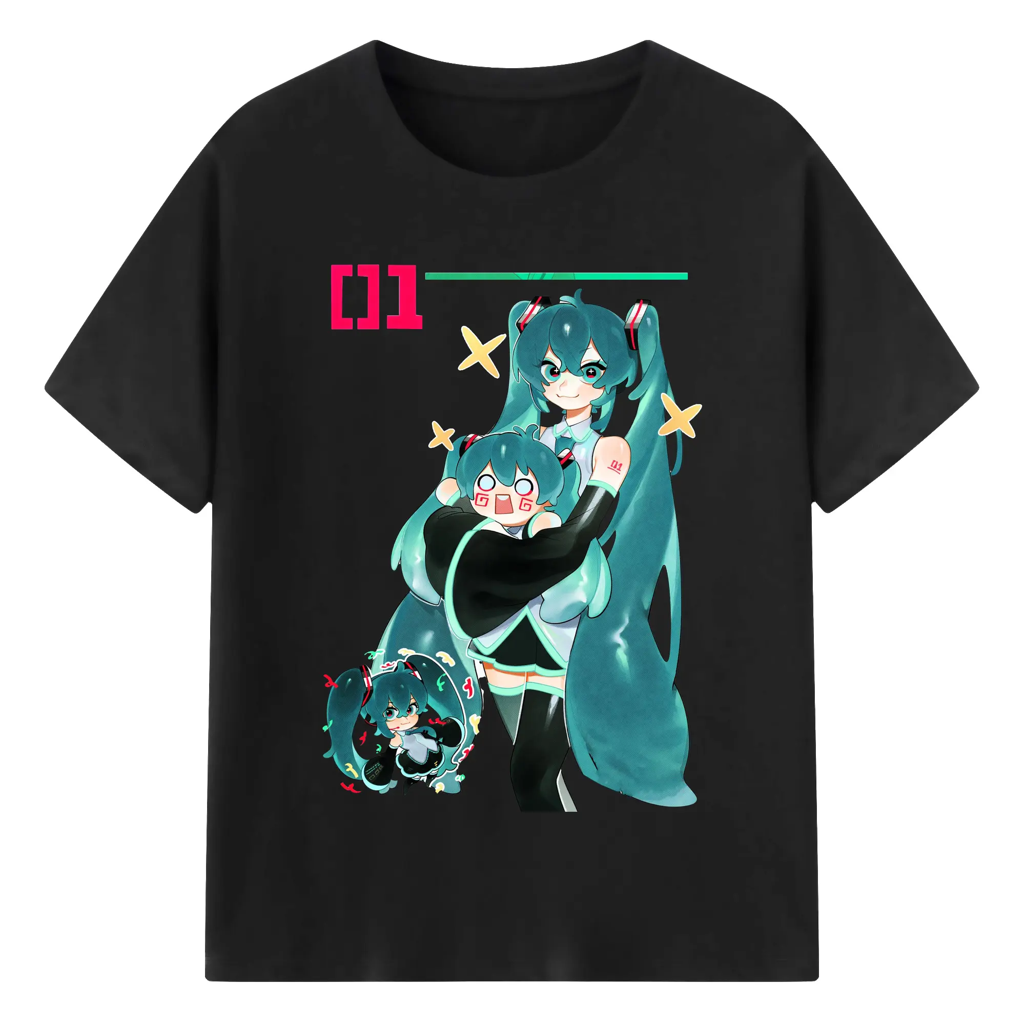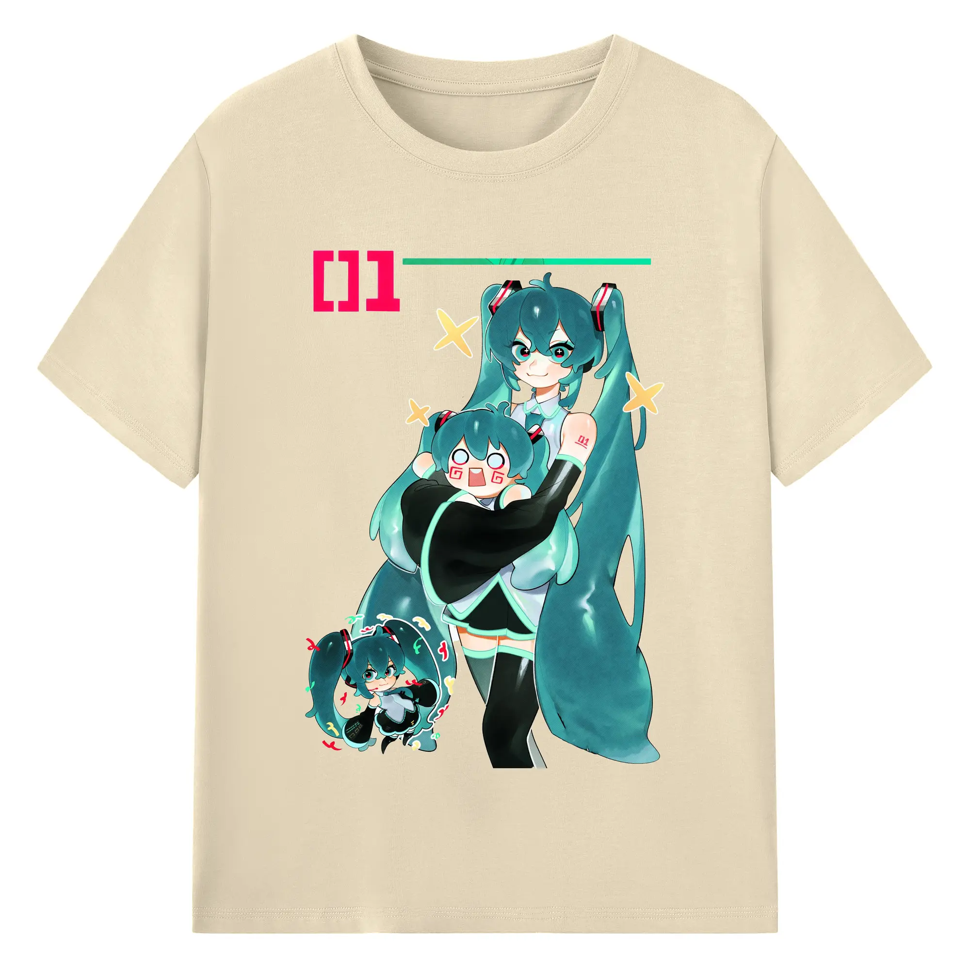 初音ミク01 - 綿100% ヴィンテージ風 半袖Tシャツ ・ フロントプリント ・ 柔らか肌触り ・ 通気性 快適 ・ スポーツ カジュアル 外出用