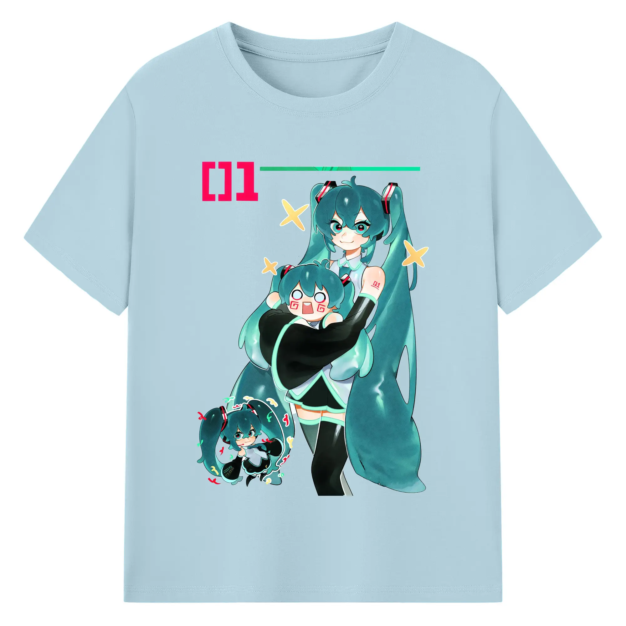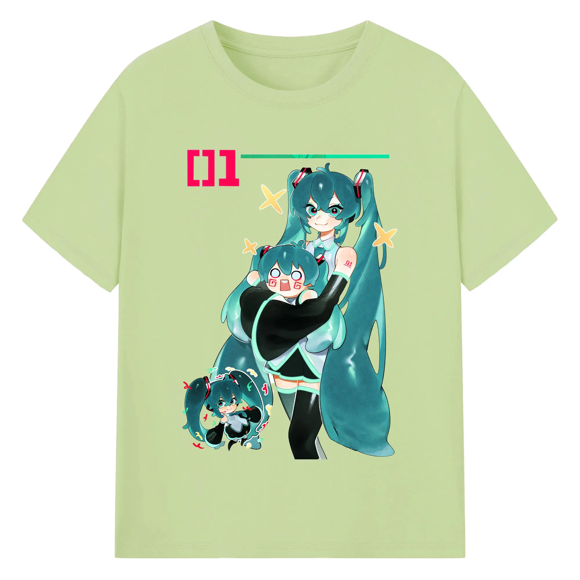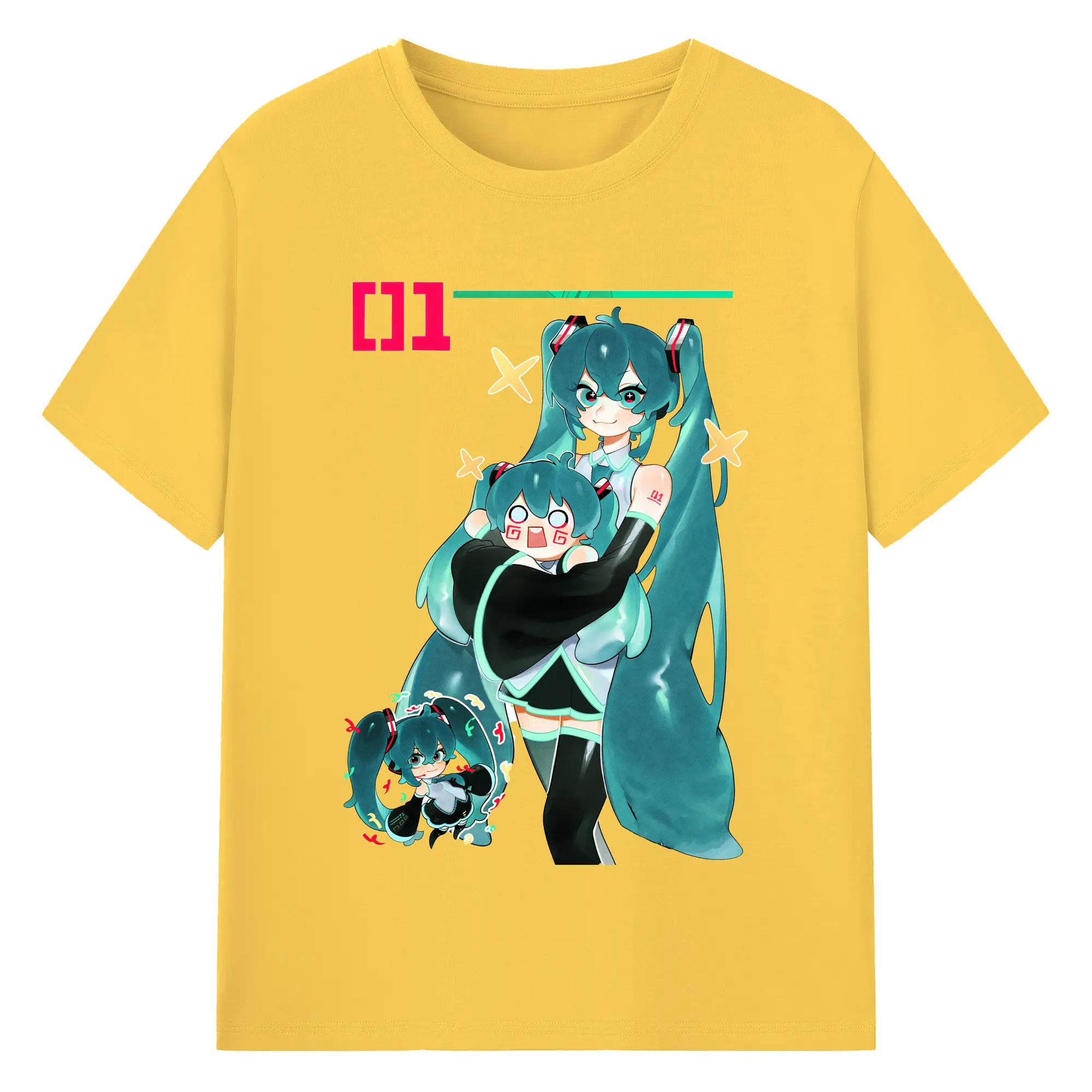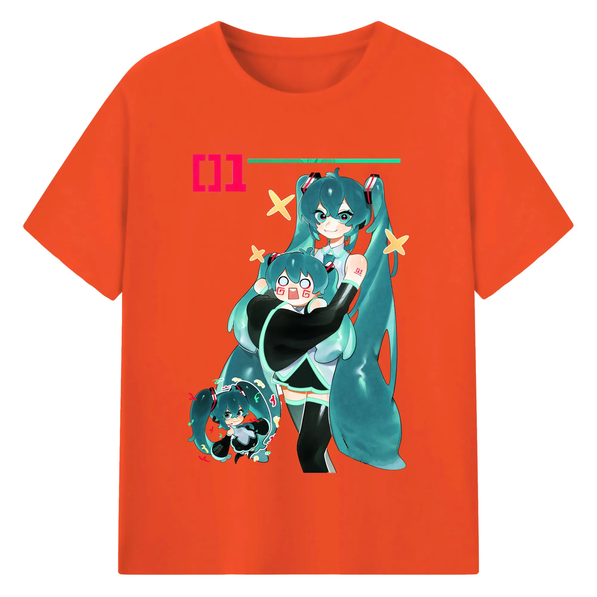 初音ミク01 - 綿100% ヴィンテージ風 半袖Tシャツ ・ フロントプリント ・ 柔らか肌触り ・ 通気性 快適 ・ スポーツ カジュアル 外出用