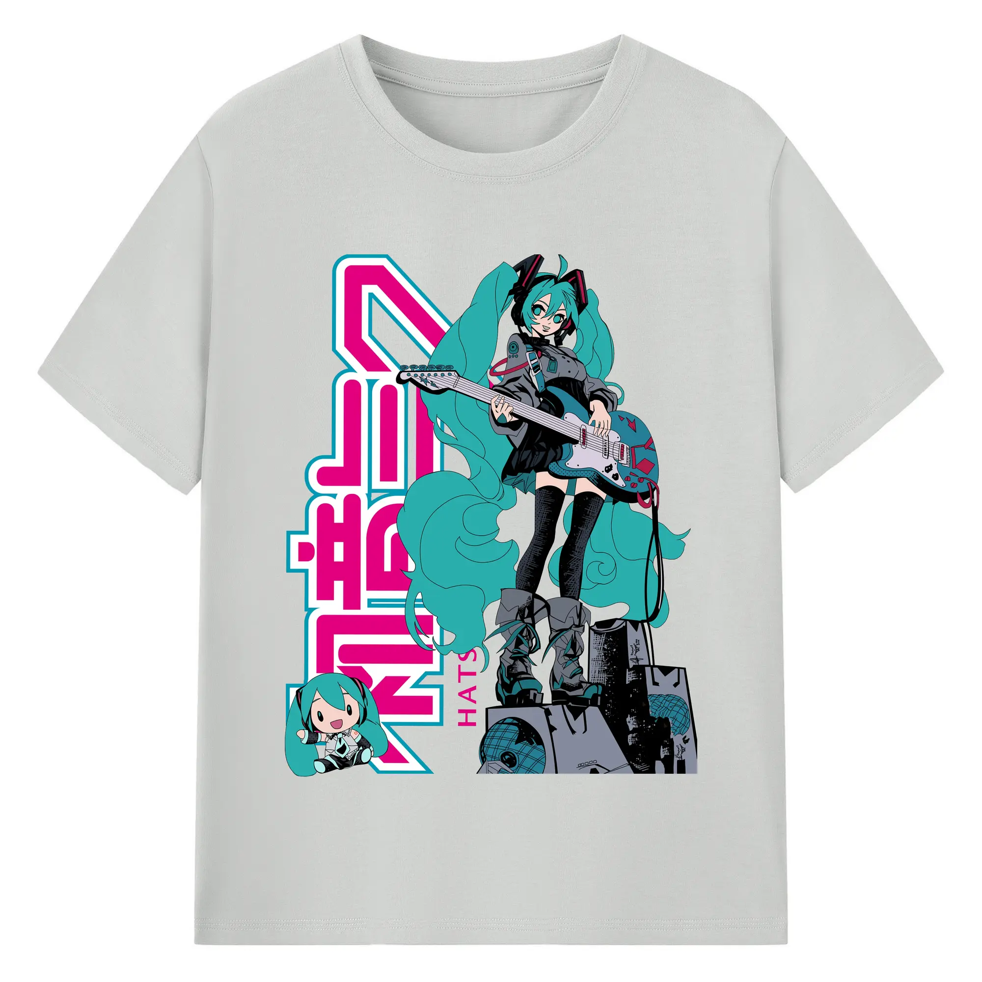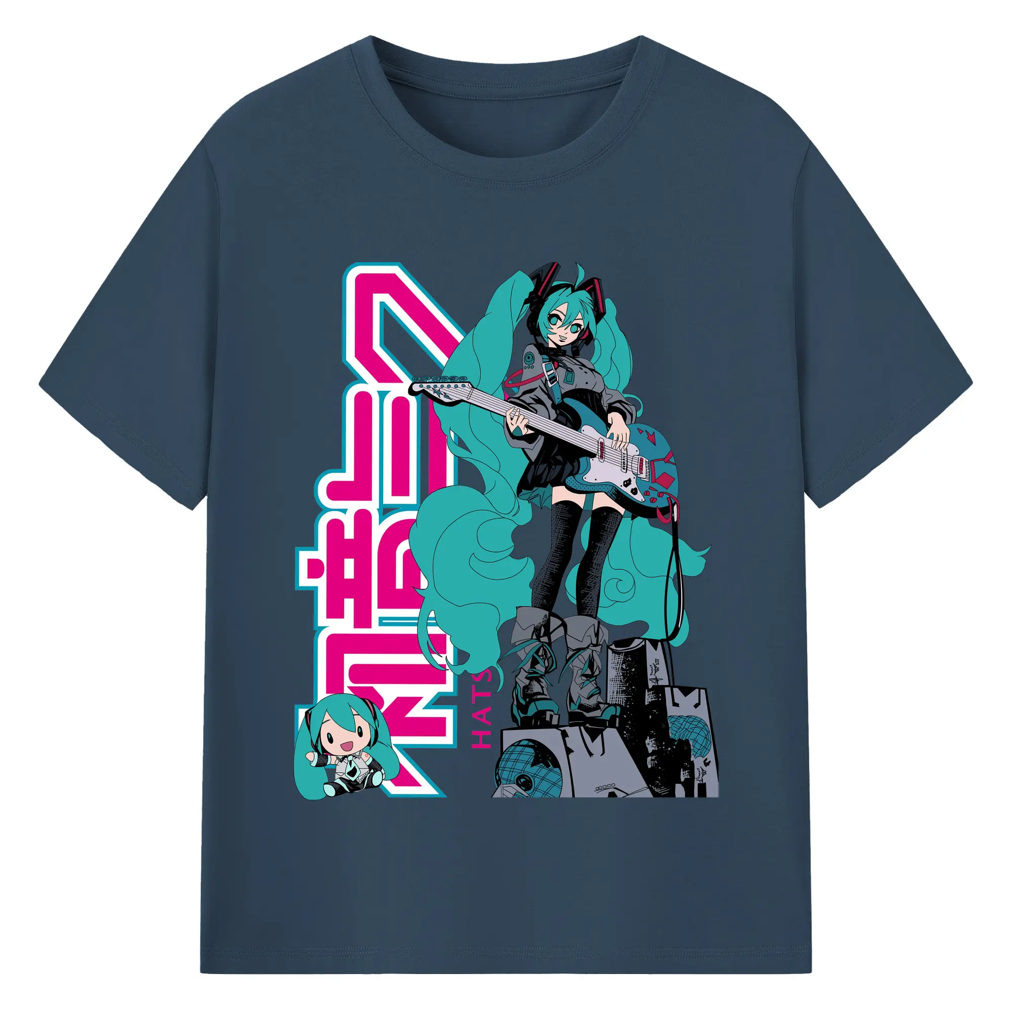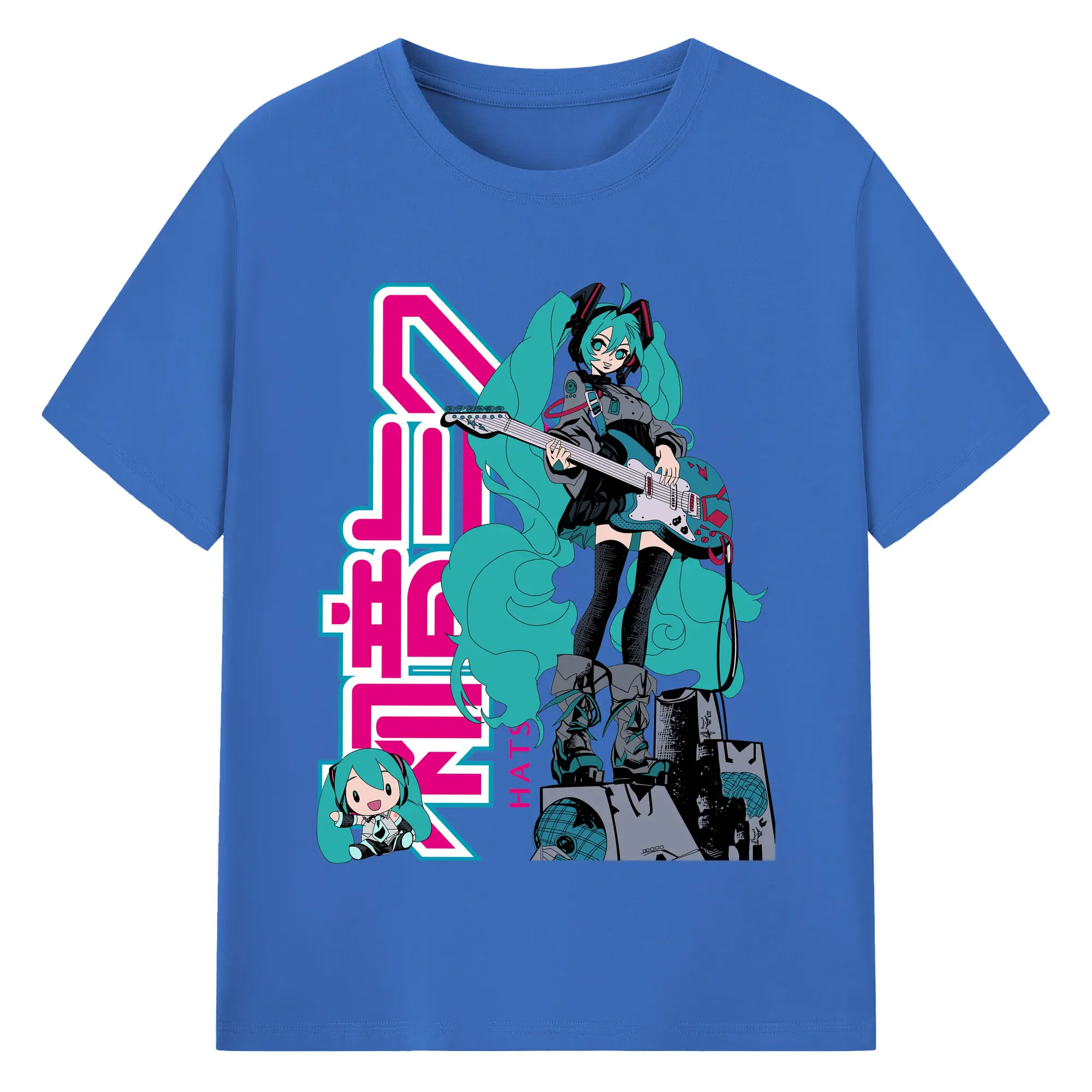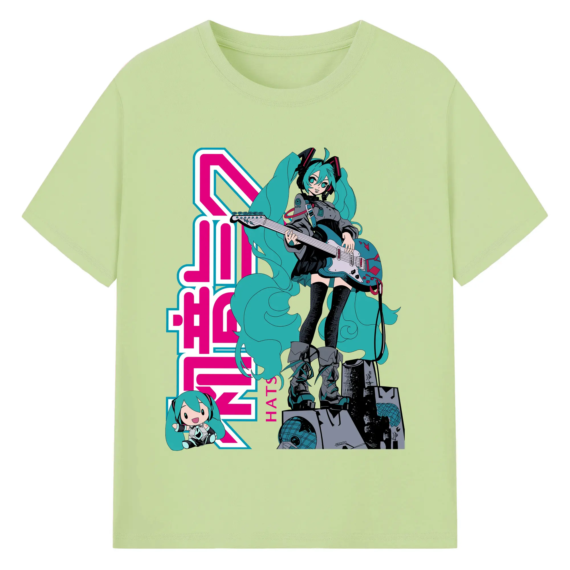 初音ミク コラボ アニメ 二次元 - 綿100% 半袖Tシャツ ・ フロントプリント ・ 快適 通気性 ・ 日常使い 散歩 スポーツ用
