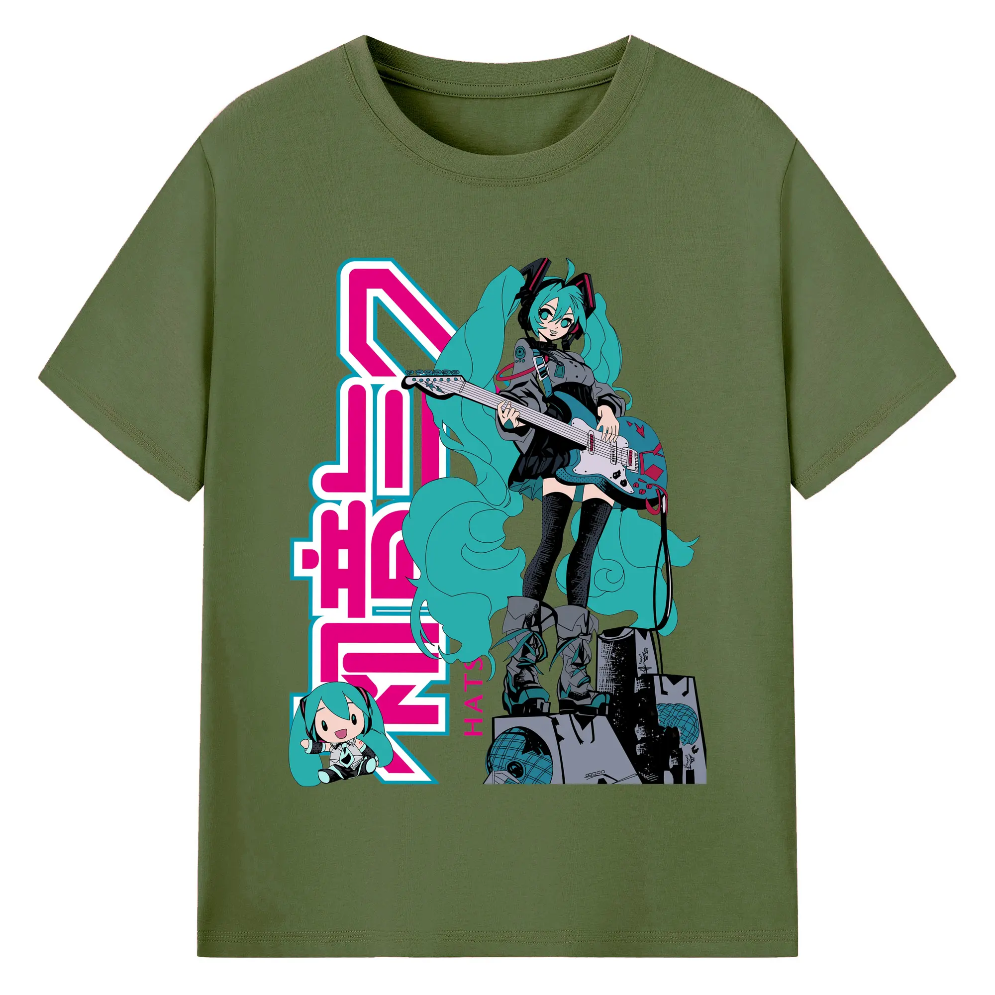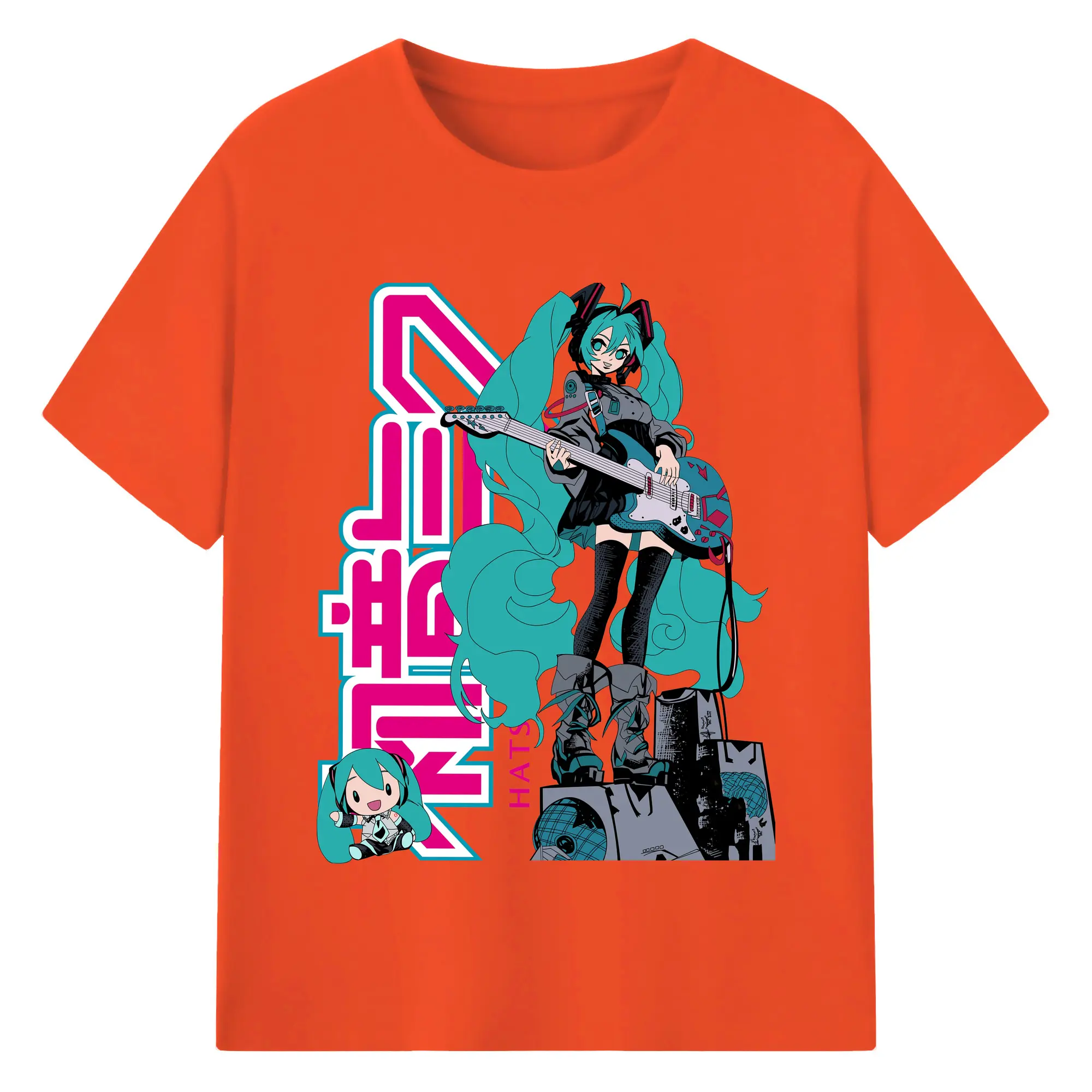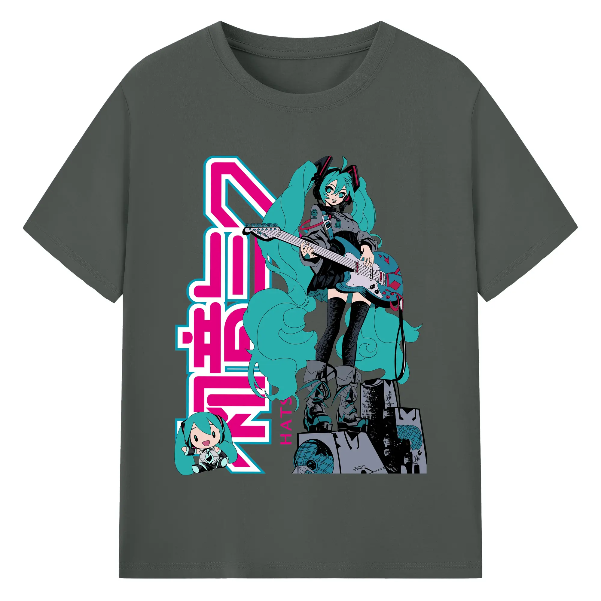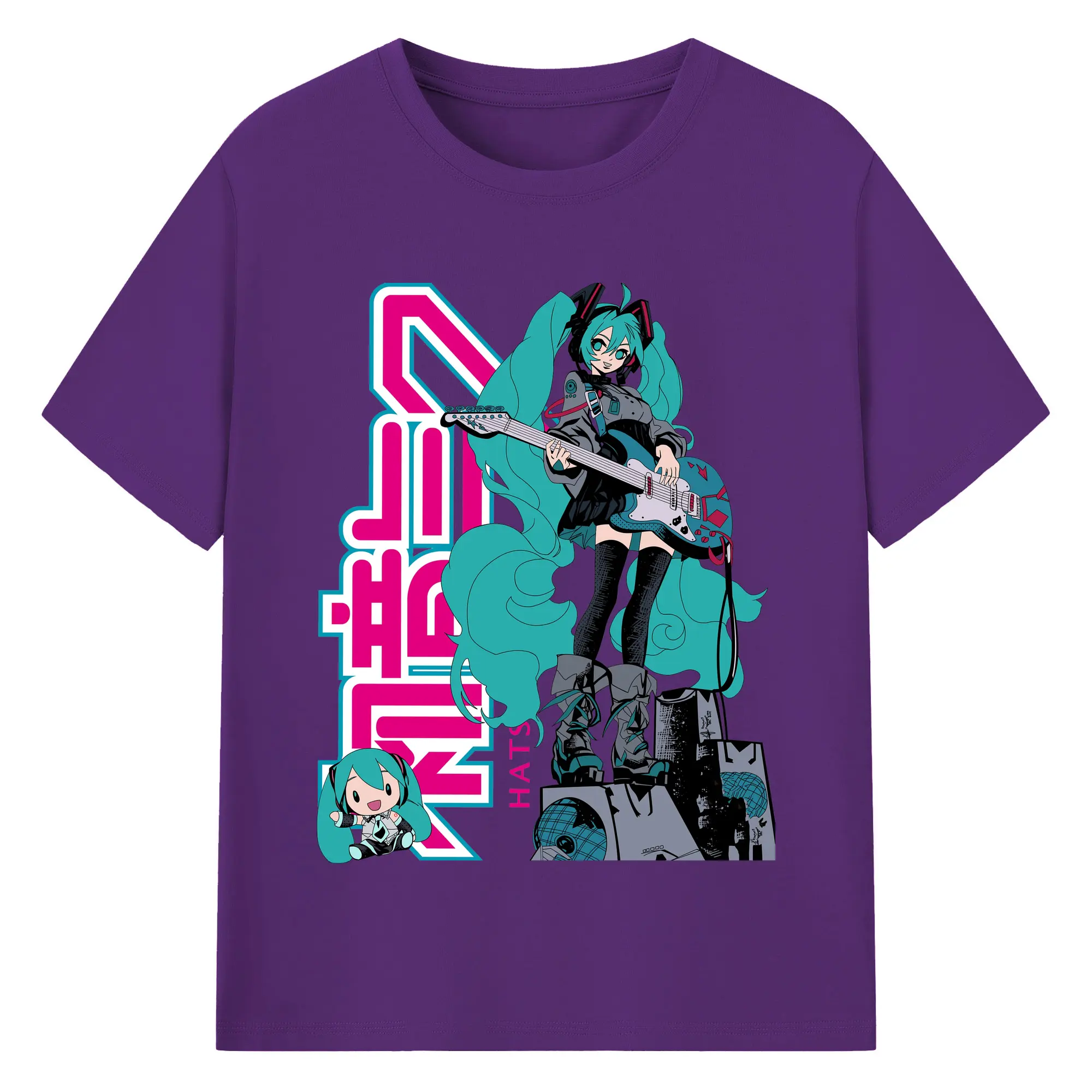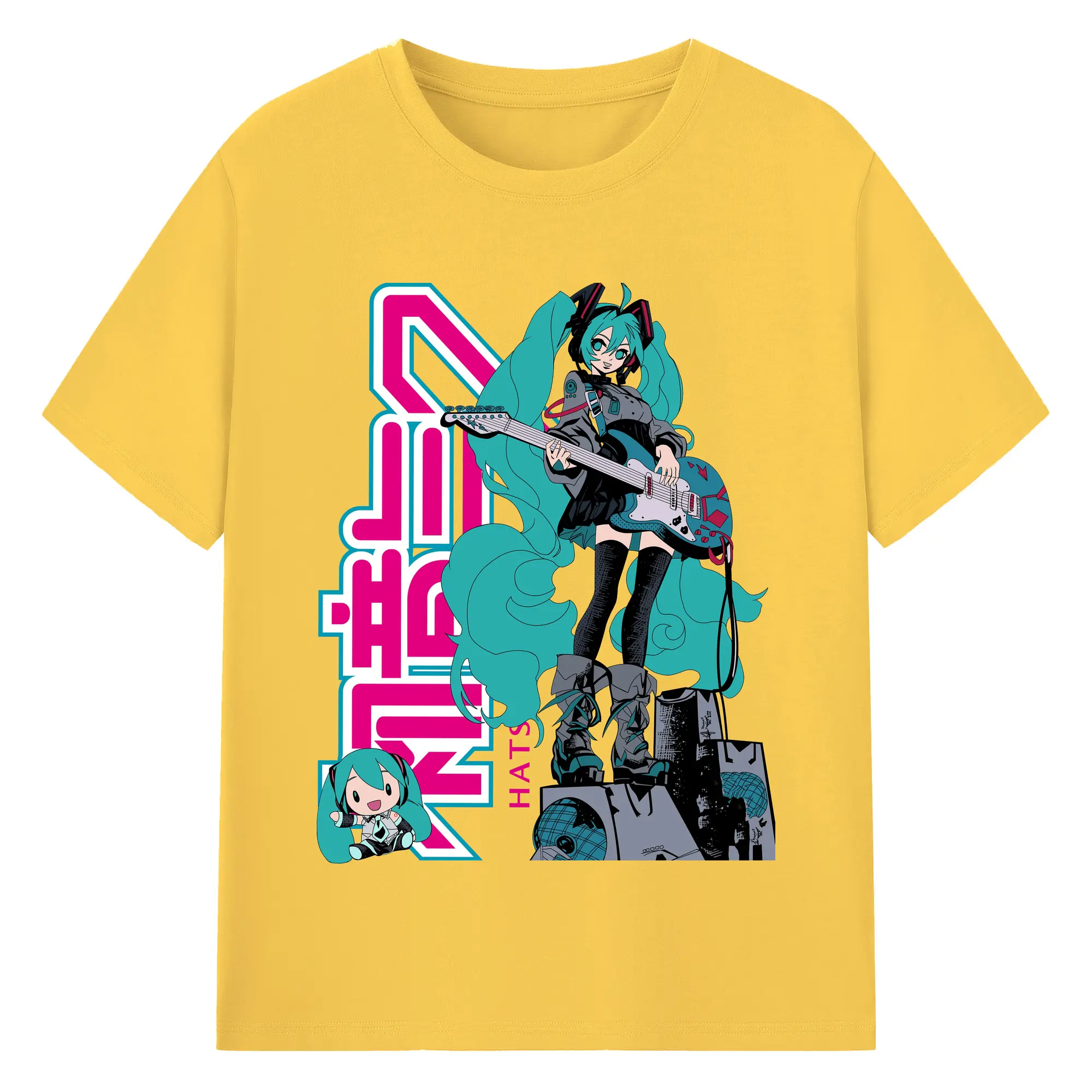 初音ミク コラボ アニメ 二次元 - 綿100% 半袖Tシャツ ・ フロントプリント ・ 快適 通気性 ・ 日常使い 散歩 スポーツ用