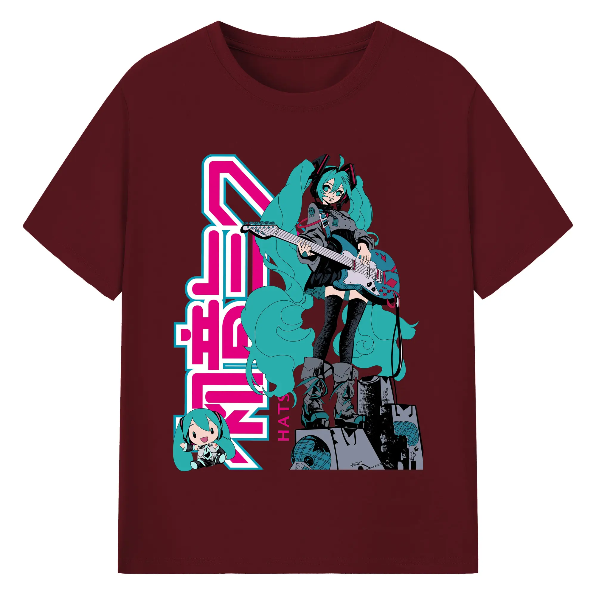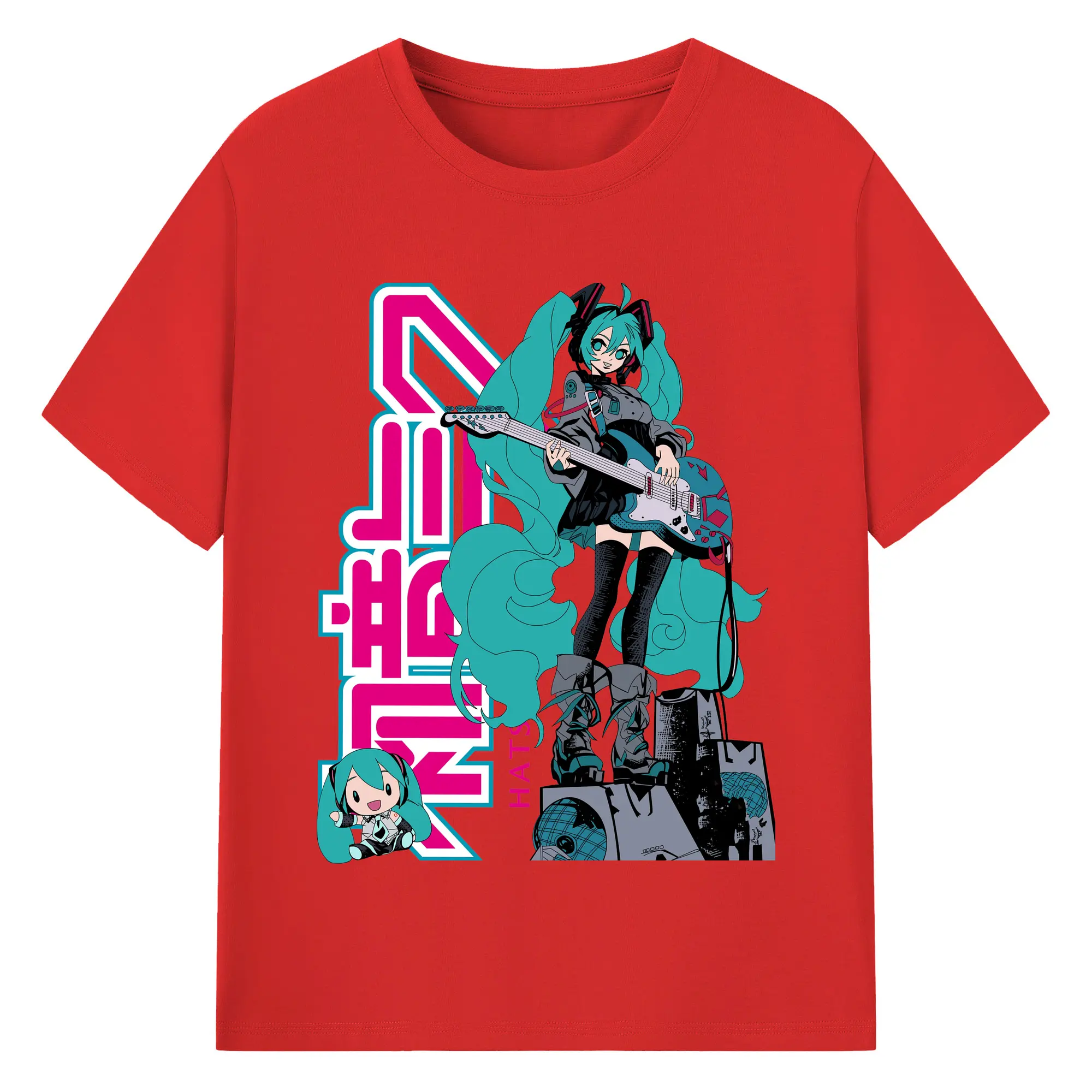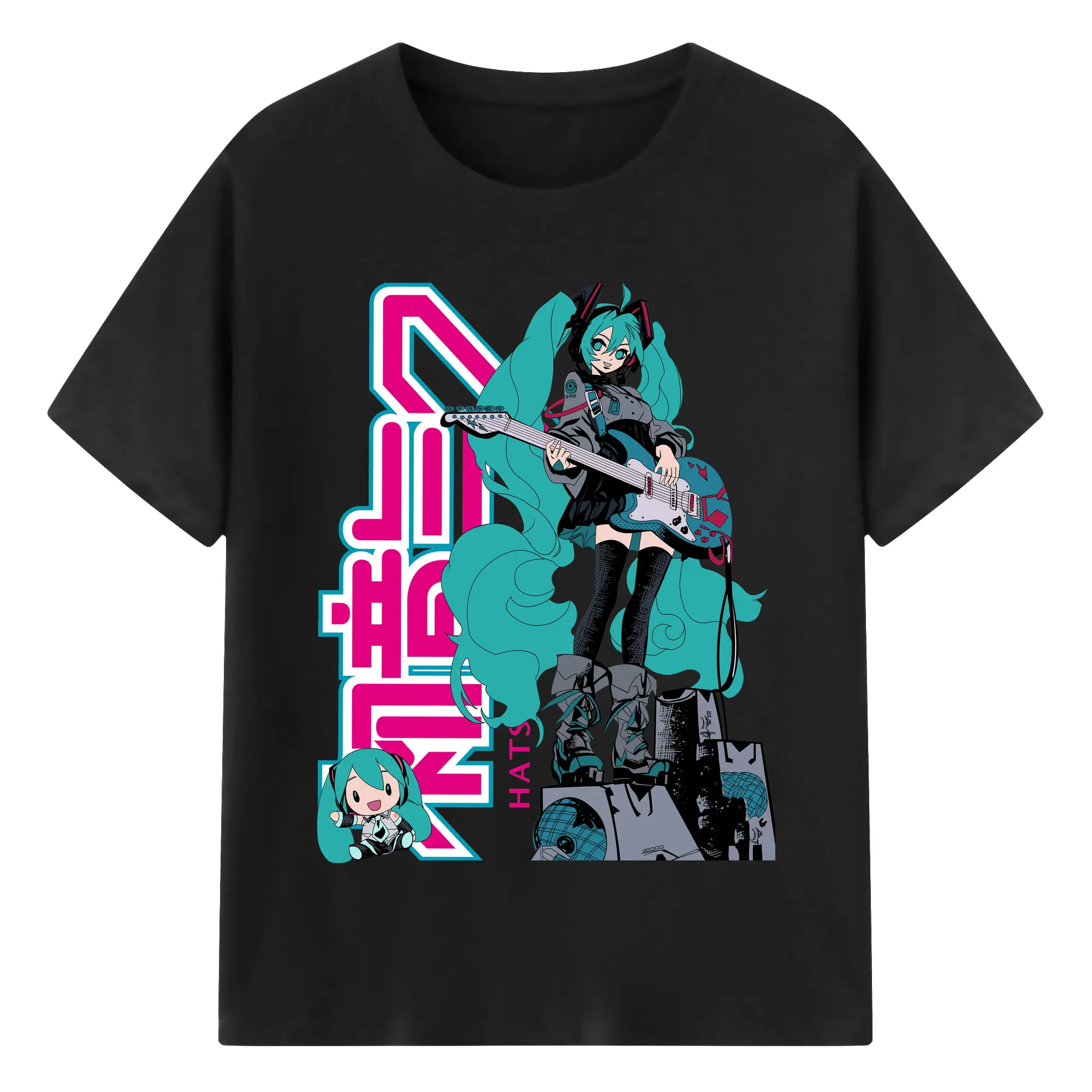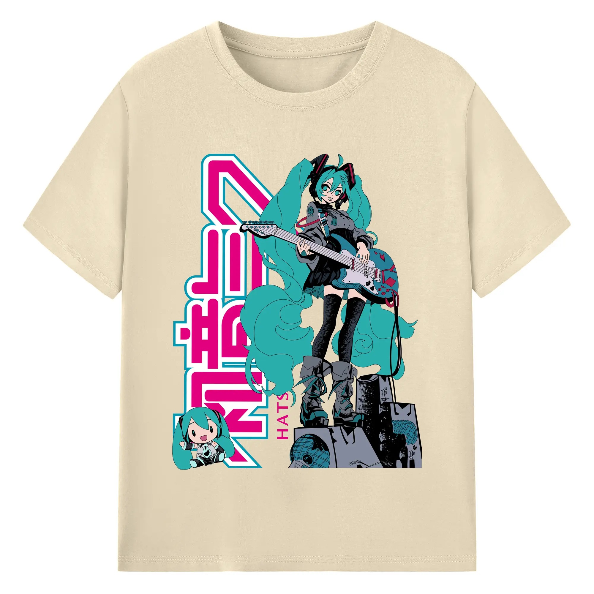 Hatsune Miku LOVE MUSIC - 綿100% 半袖Tシャツ ・ フロントプリント ・ 快適 通気性 ・ 日常使い 散歩 スポーツ用