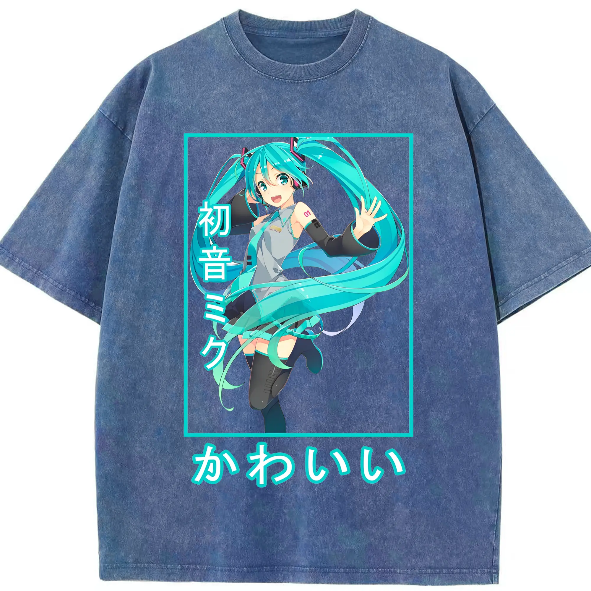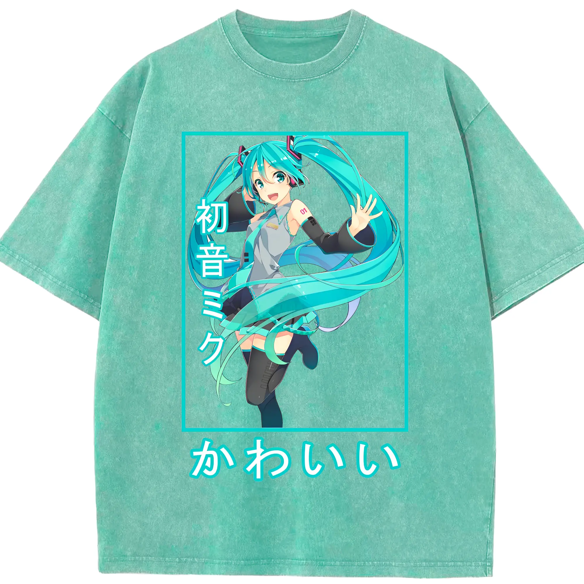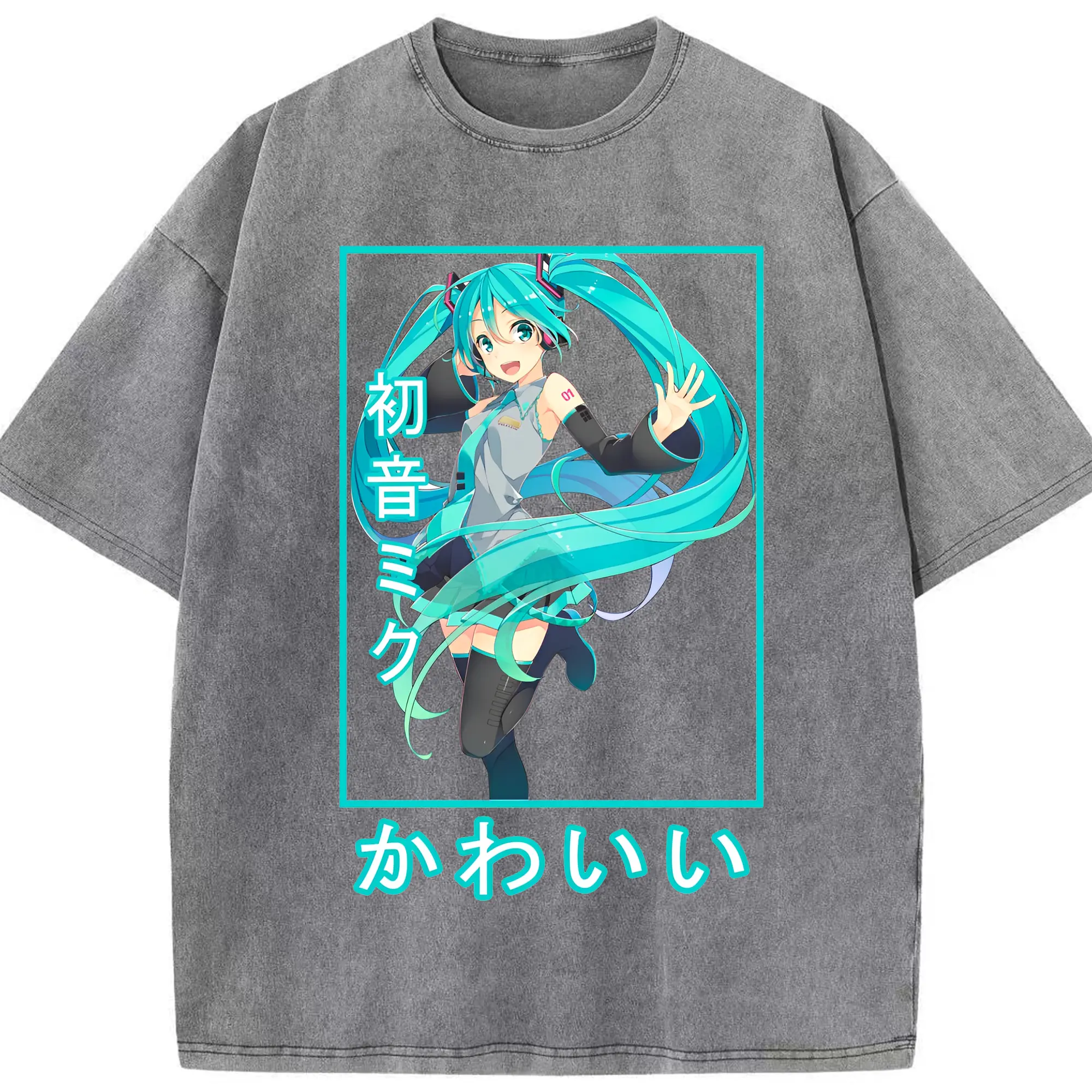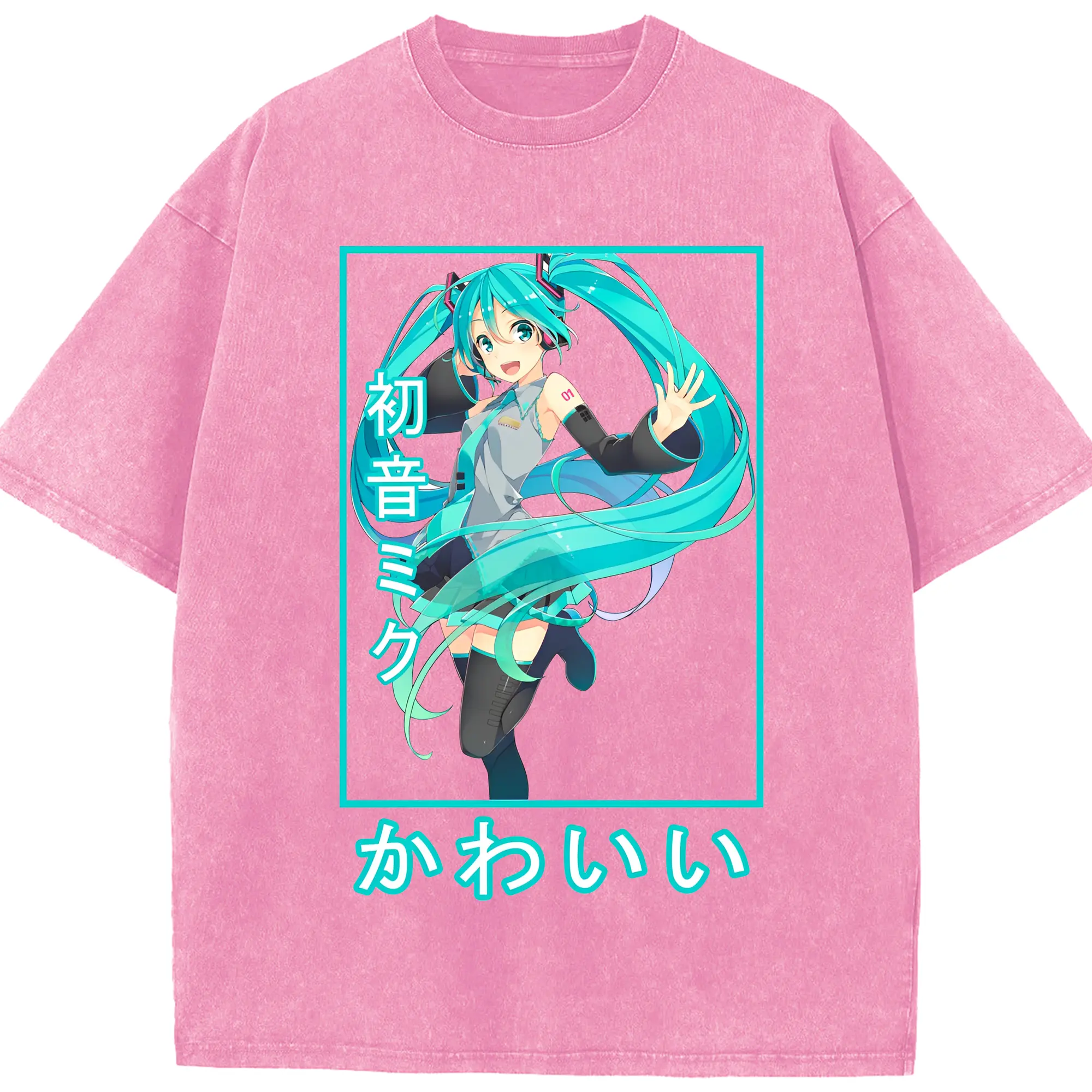 初音ミクHatsune Miku かわいい - 綿100% 半袖Tシャツ ・ フロントプリント ・ 快適 通気性 ・ 日常使い 散歩 スポーツ用