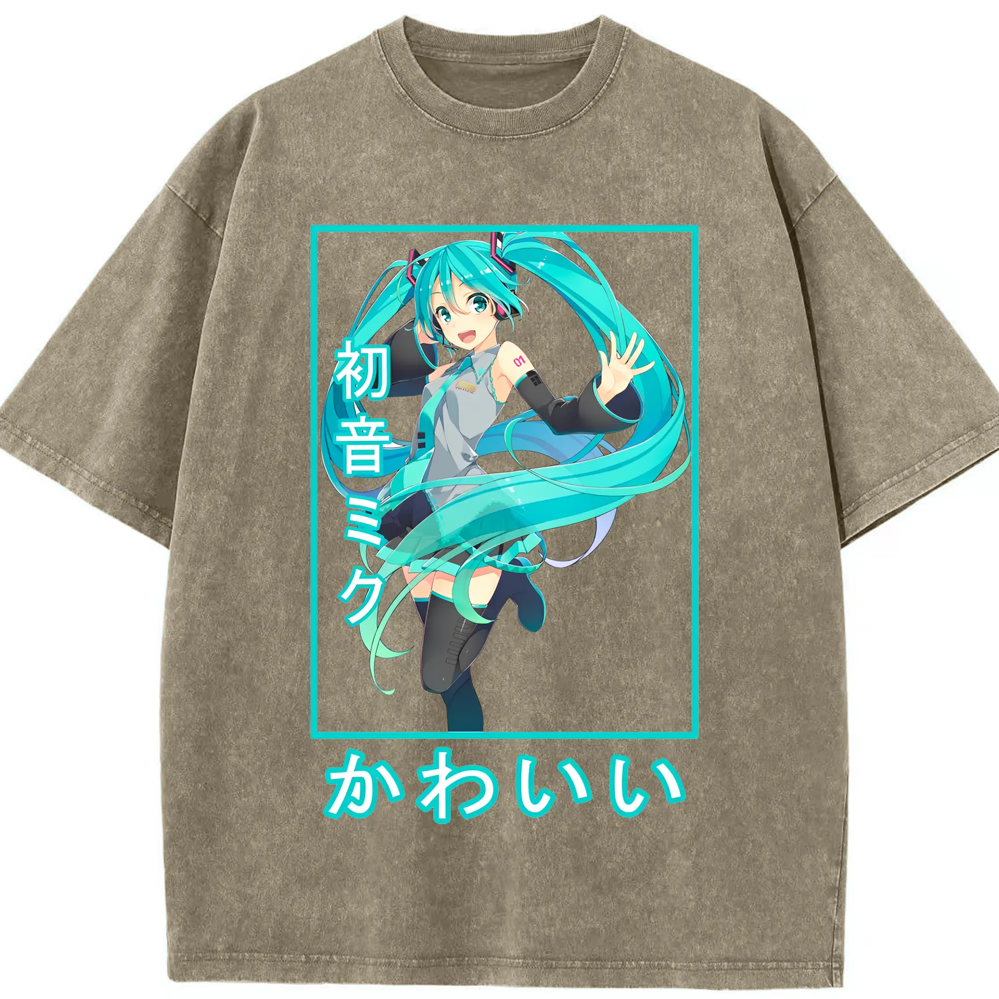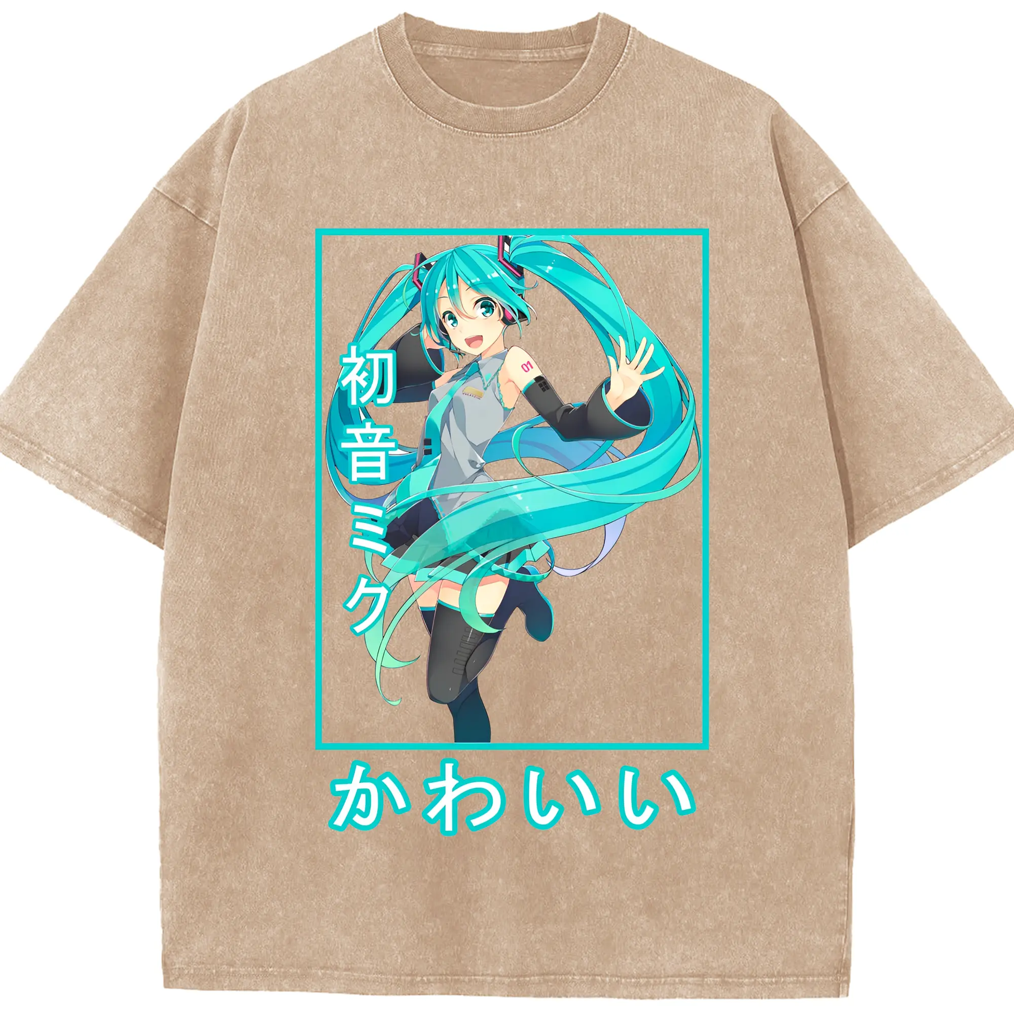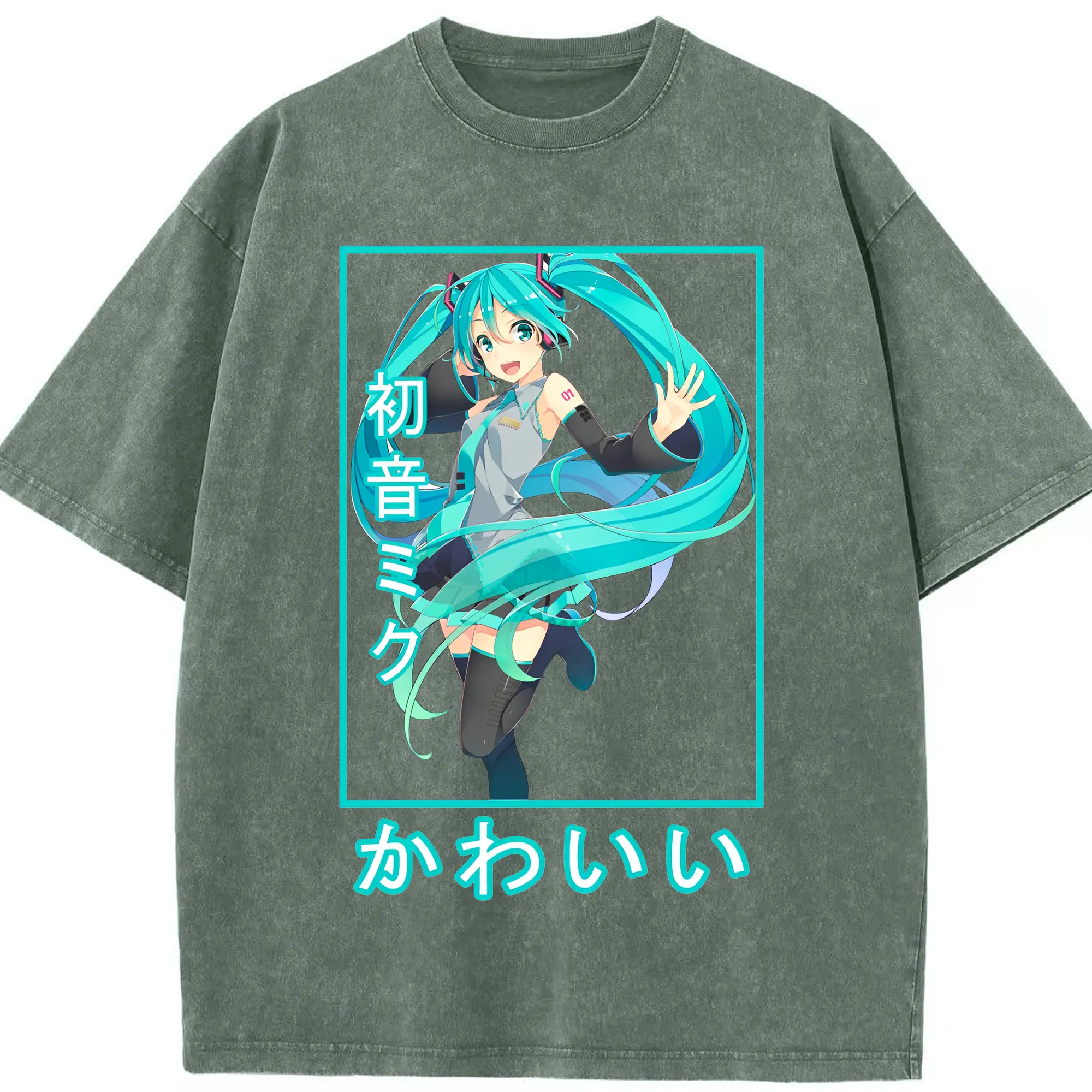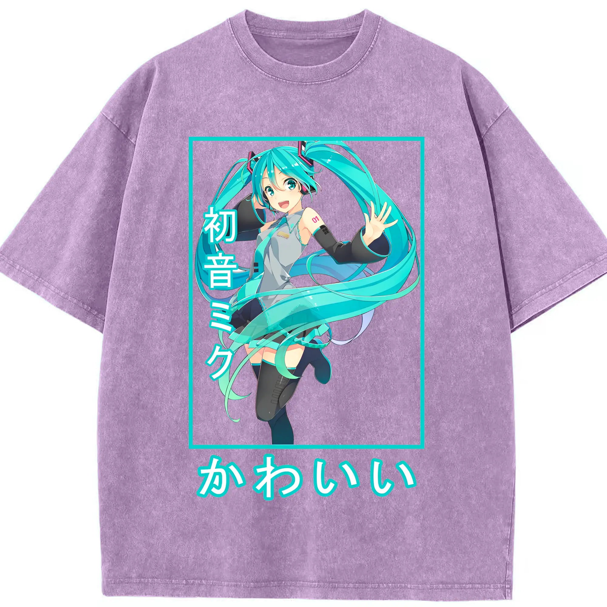 初音ミクHatsune Miku かわいい - 綿100% 半袖Tシャツ ・ フロントプリント ・ 快適 通気性 ・ 日常使い 散歩 スポーツ用