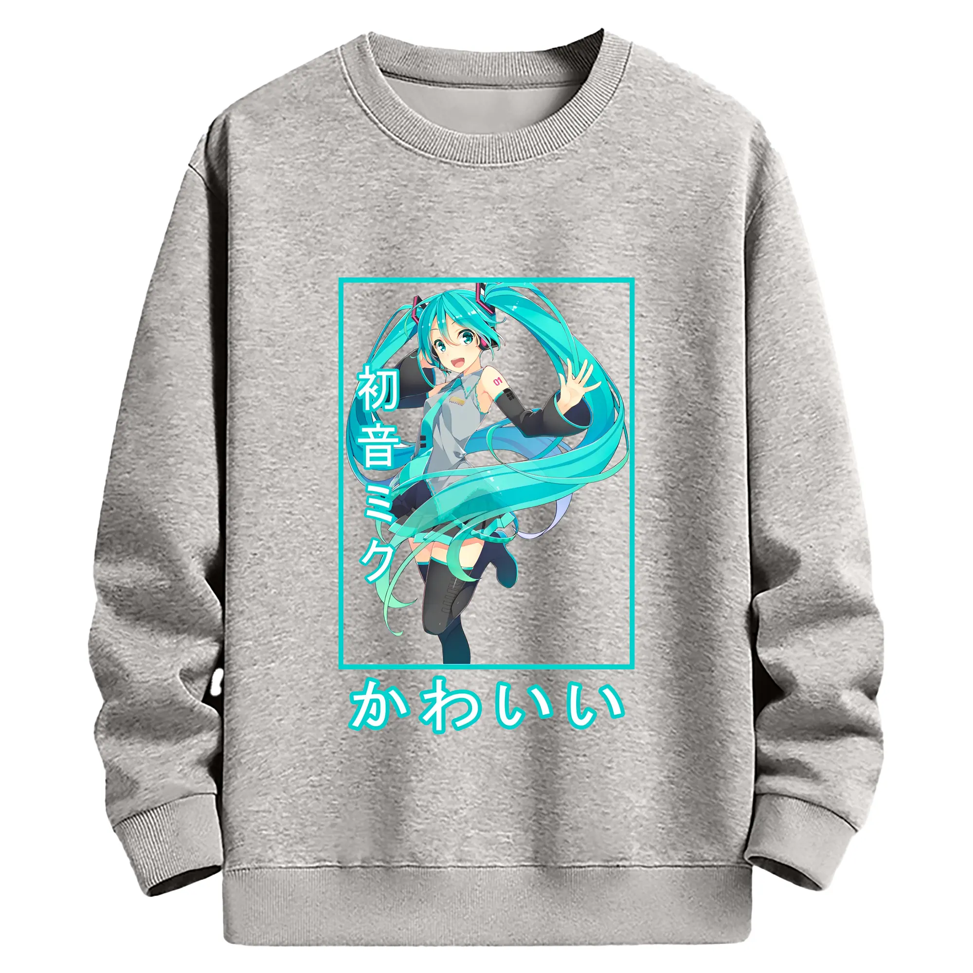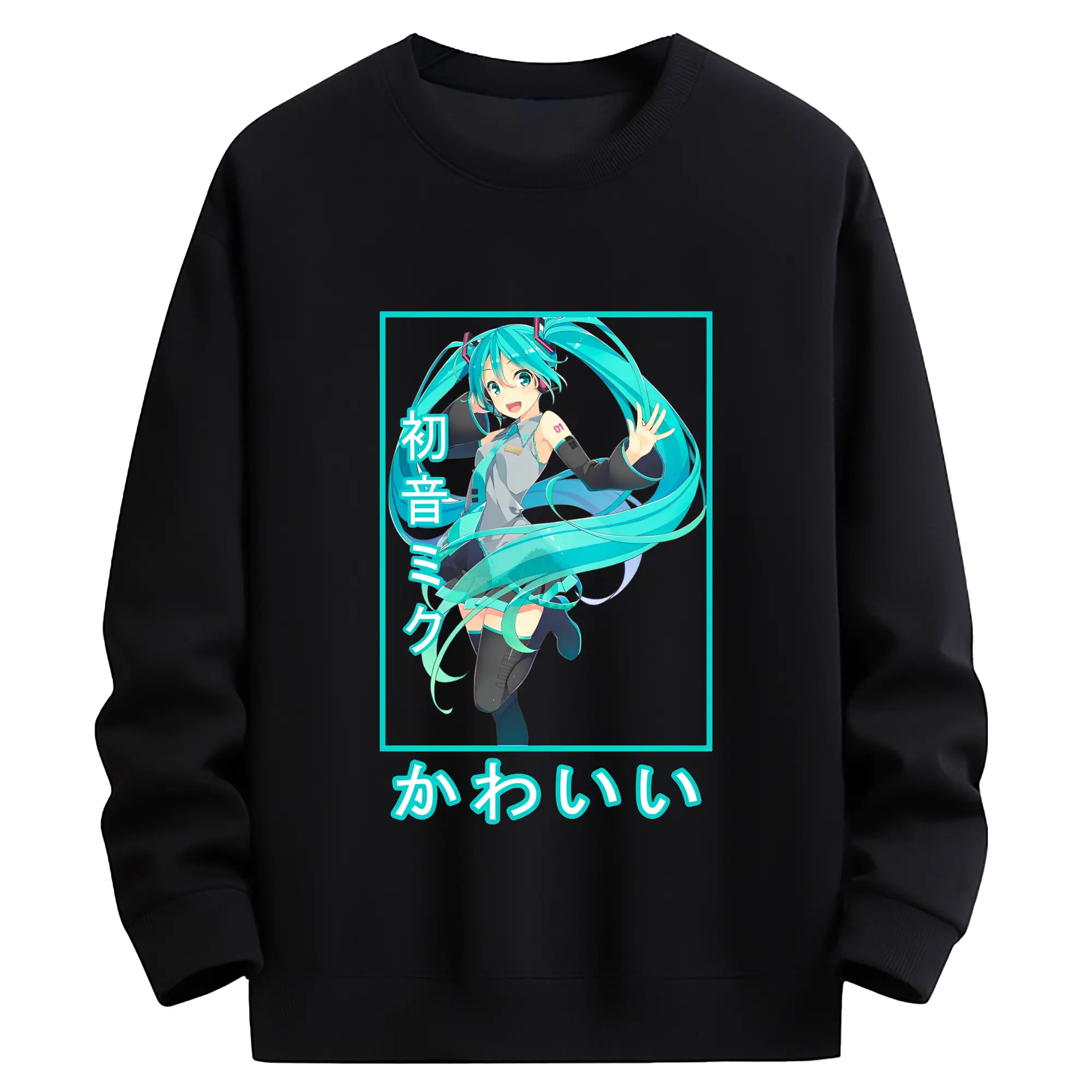 初音ミクHatsune Miku かわいい - 綿100% 半袖Tシャツ ・ フロントプリント ・ 快適 通気性 ・ 日常使い 散歩 スポーツ用
