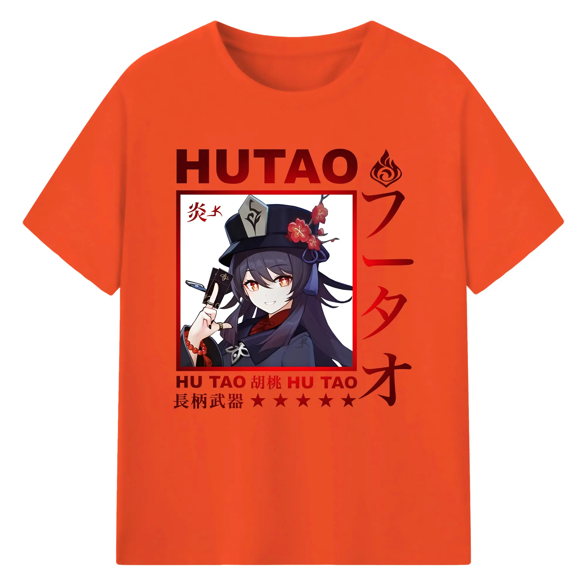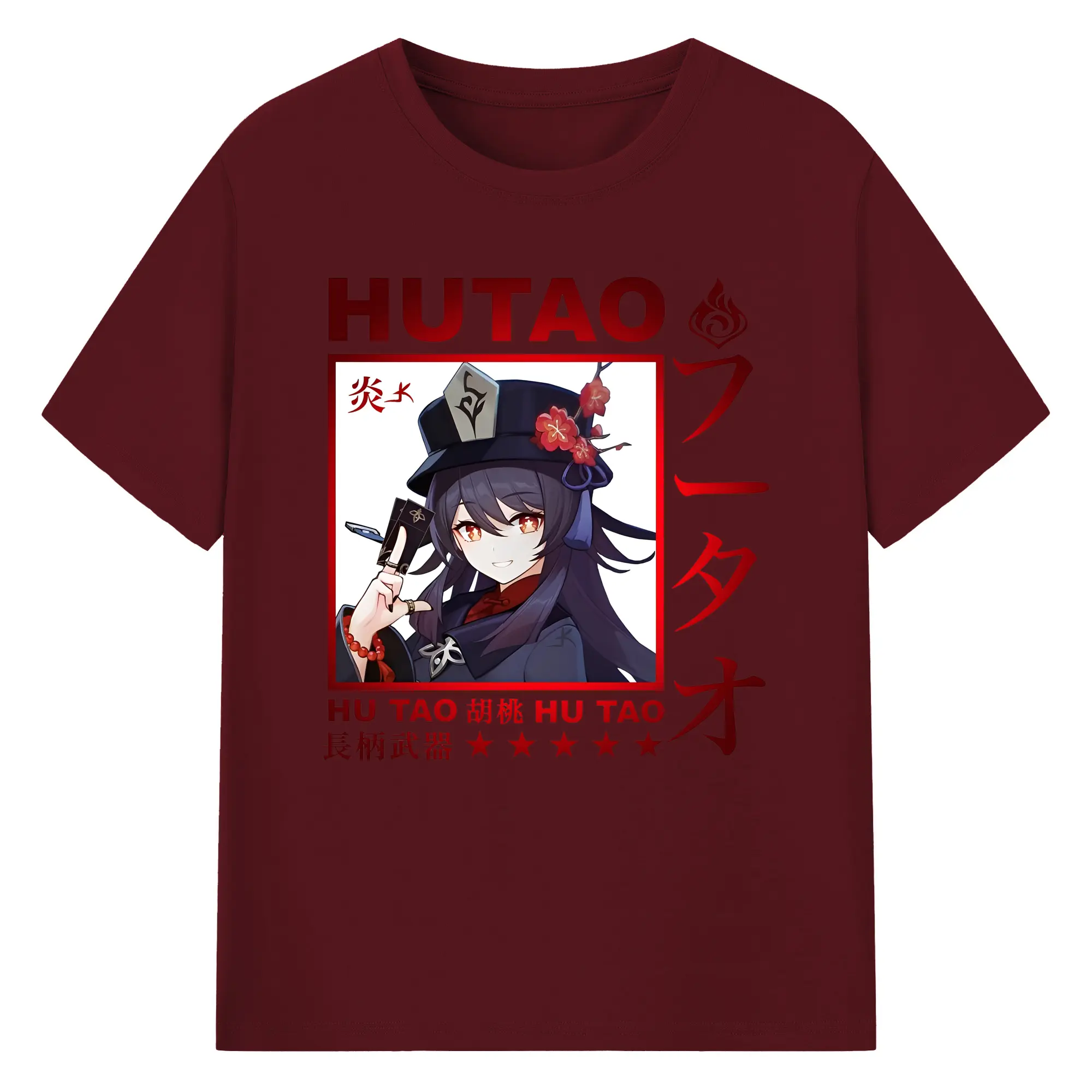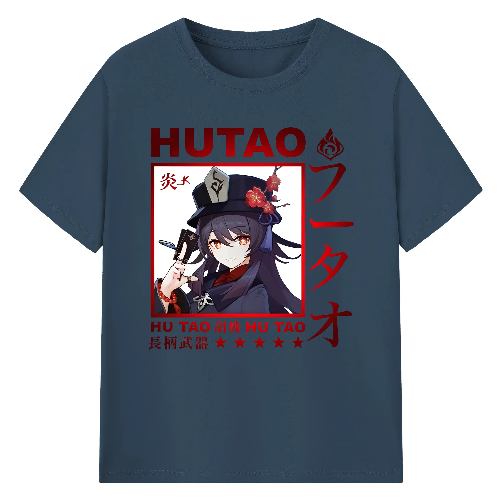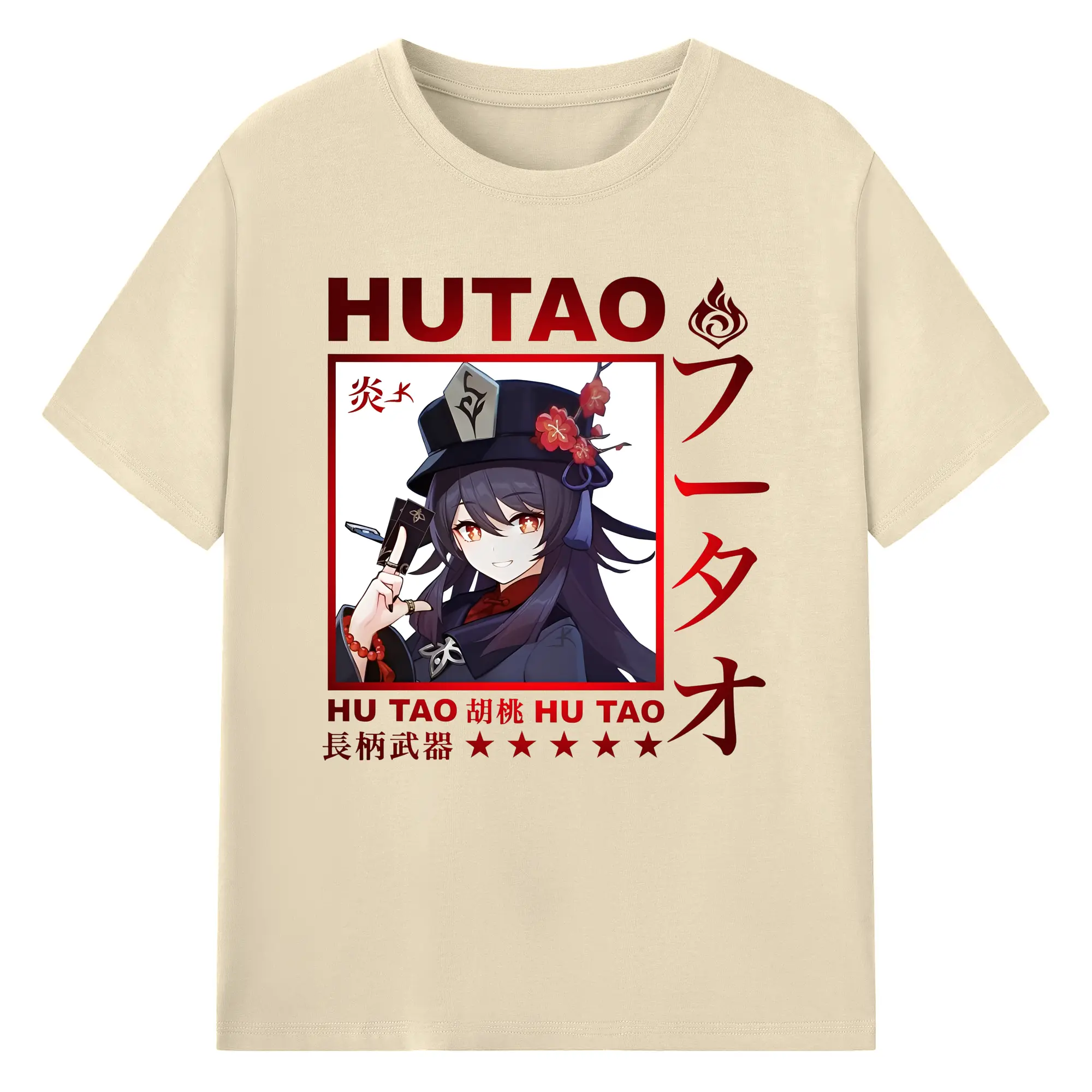 原神胡桃 Hu Tao大人気 キャラクターグッズ 周辺 - 綿100% ヴィンテージ風 半袖Tシャツ ・ フロントプリント ・ 柔らか肌触り ・ 通気性 快適 ・ スポーツ カジュアル 外出用