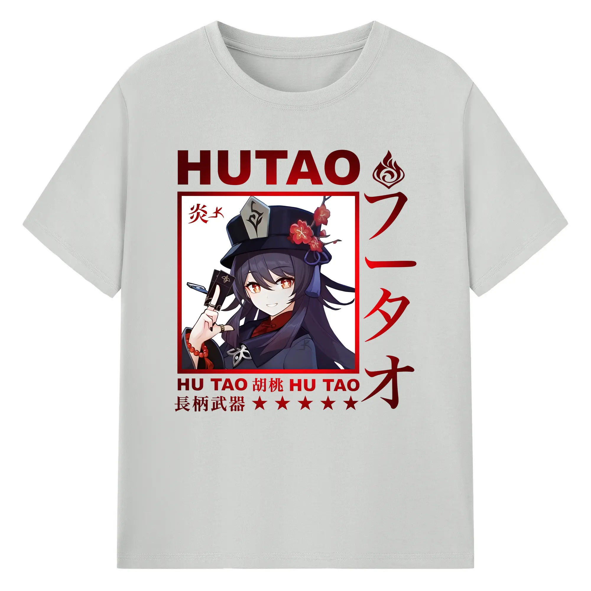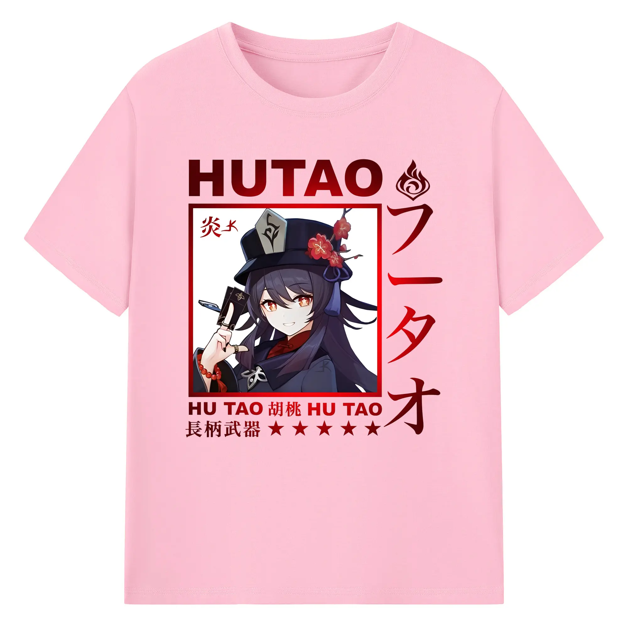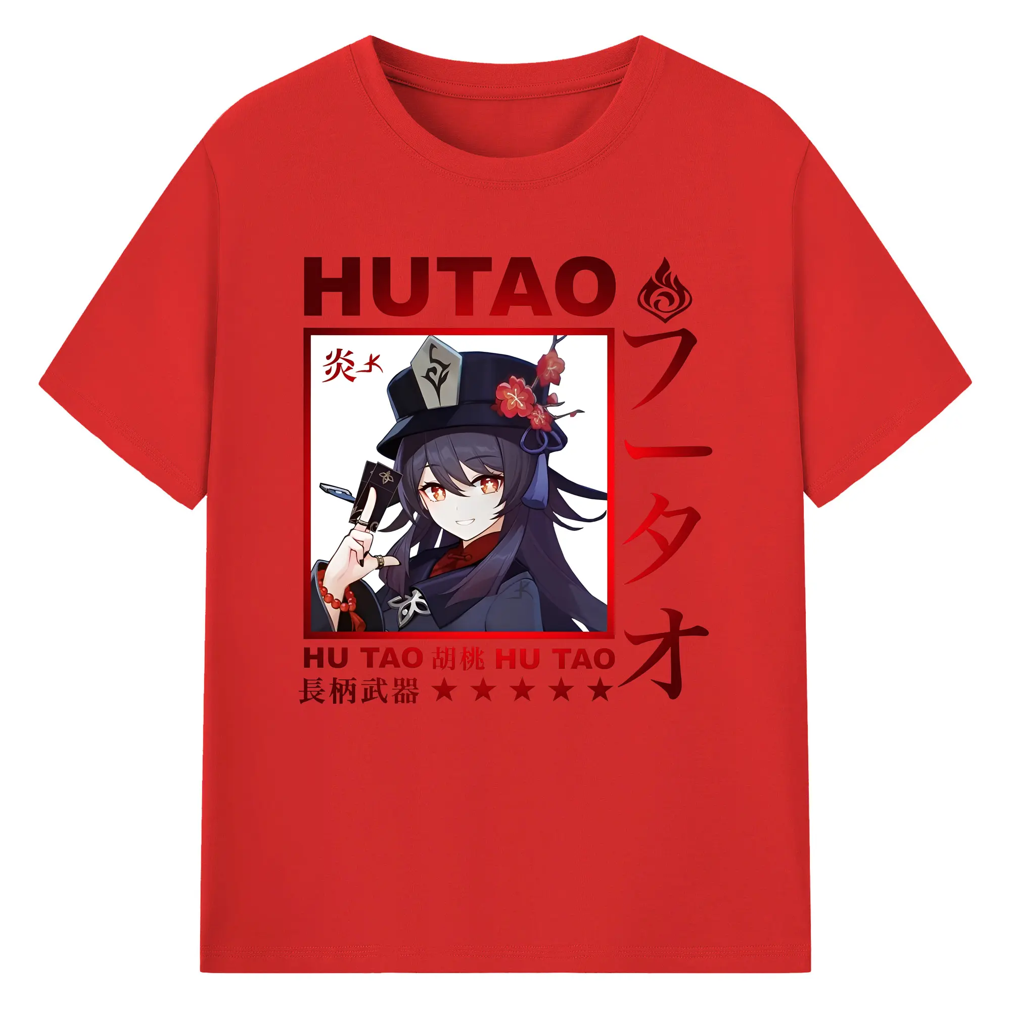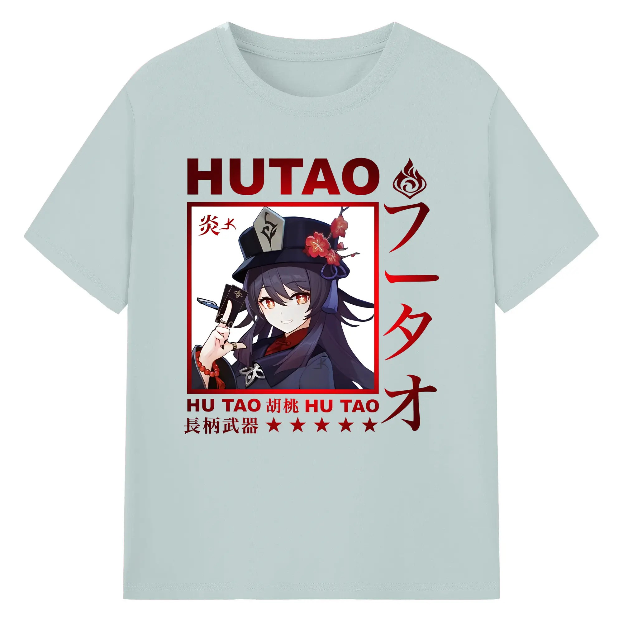 原神胡桃 Hu Tao大人気 キャラクターグッズ 周辺 - 綿100% ヴィンテージ風 半袖Tシャツ ・ フロントプリント ・ 柔らか肌触り ・ 通気性 快適 ・ スポーツ カジュアル 外出用