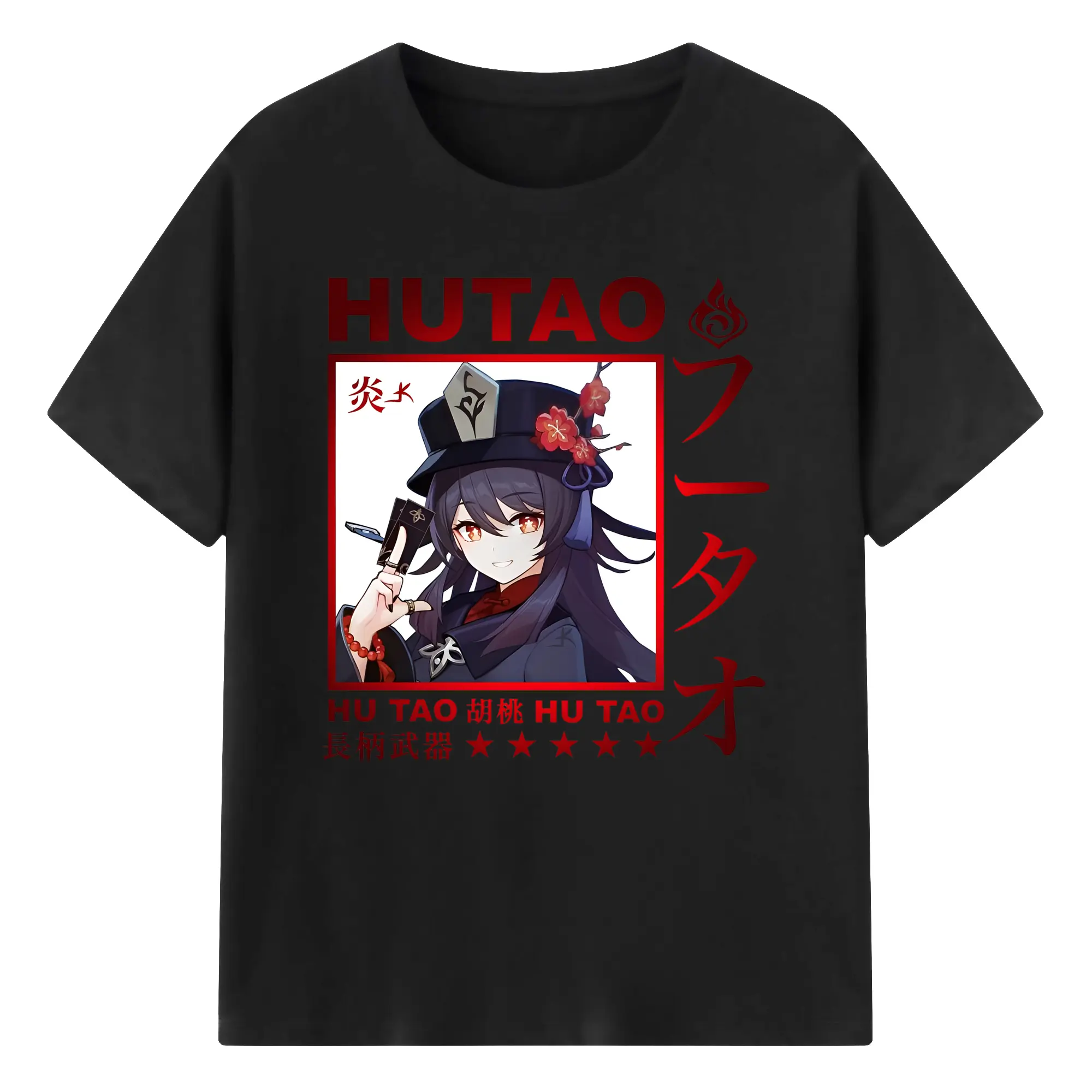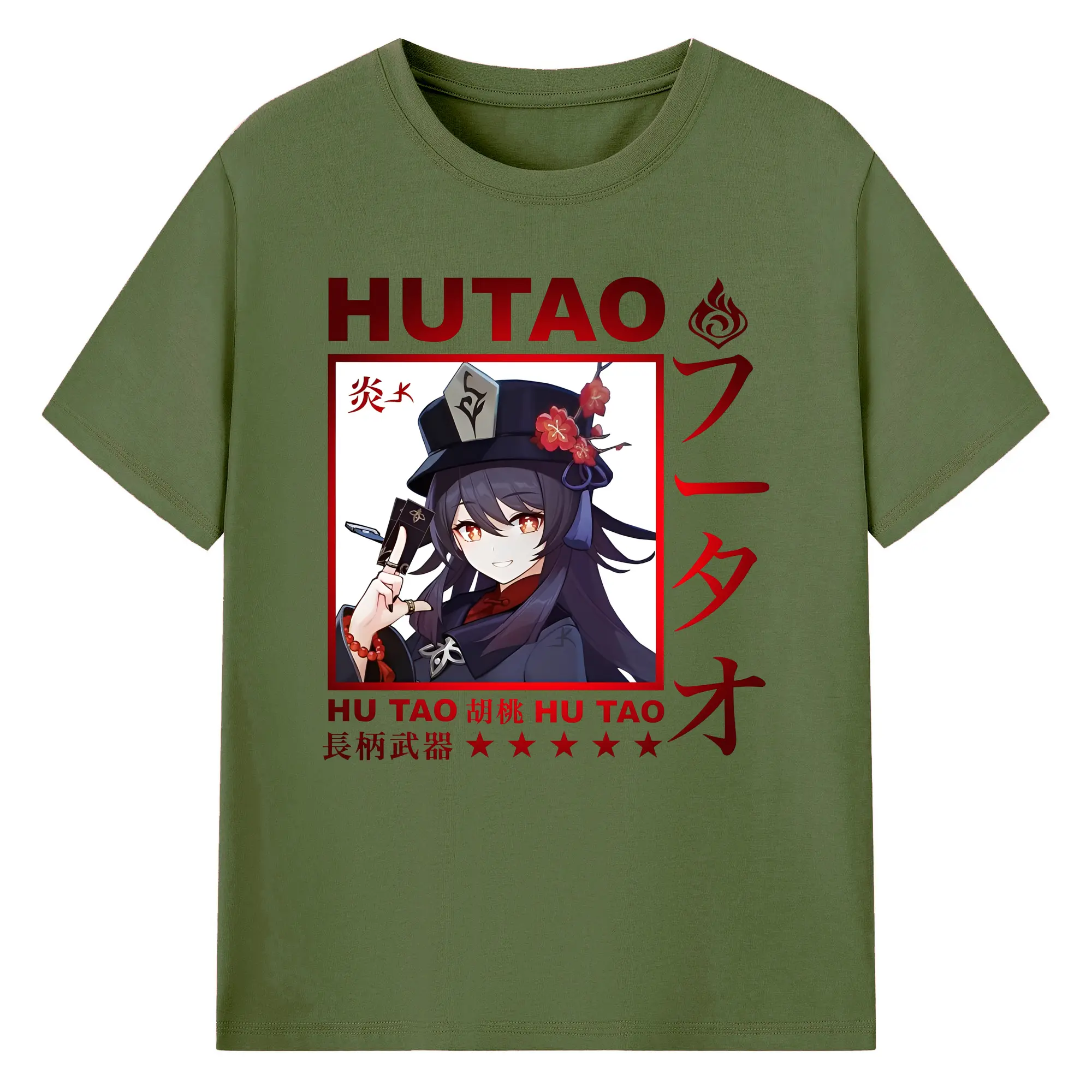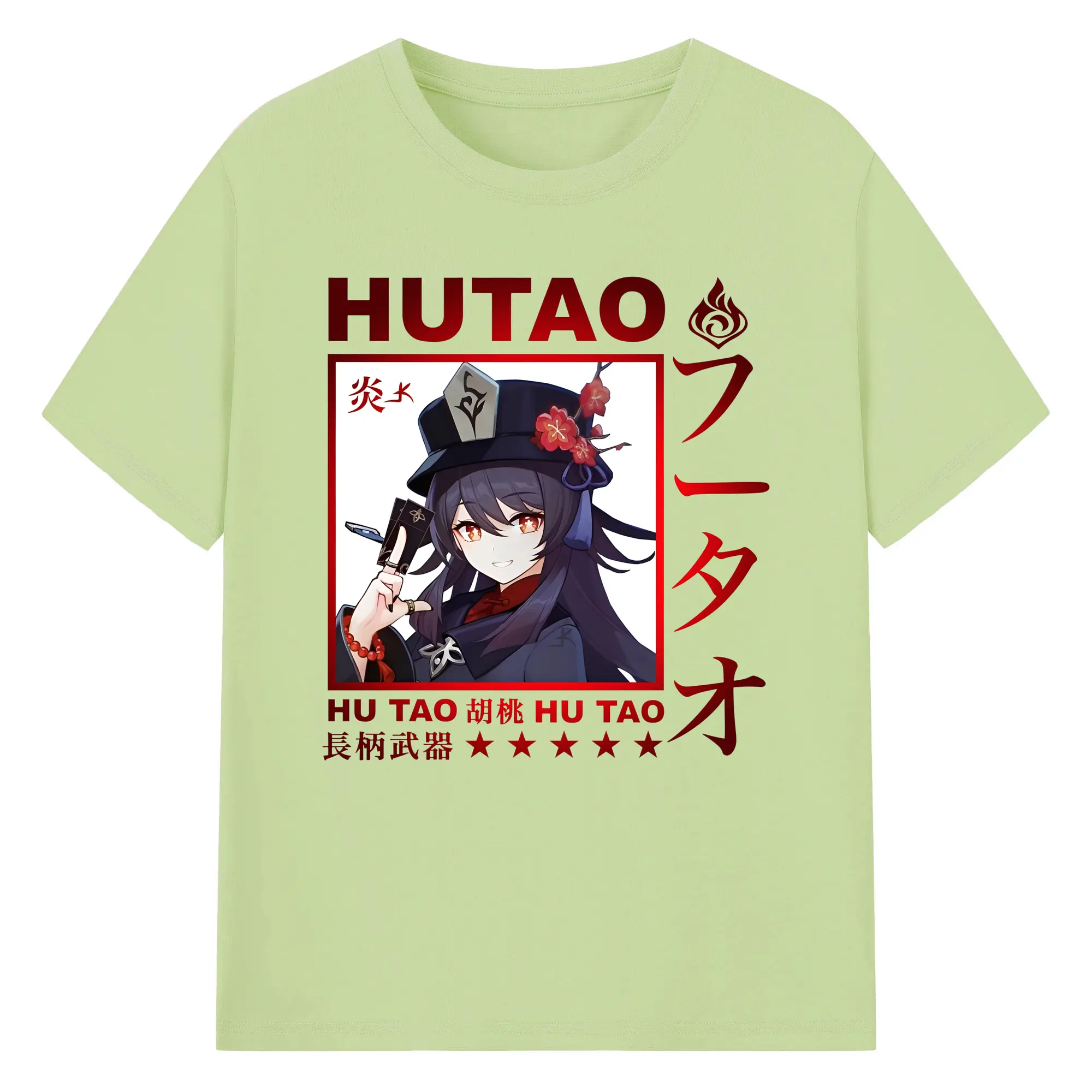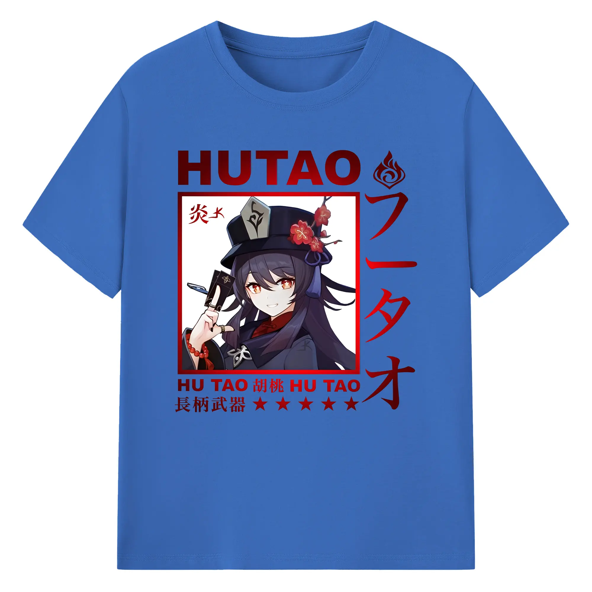 原神胡桃 Hu Tao大人気 キャラクターグッズ 周辺 - 綿100% ヴィンテージ風 半袖Tシャツ ・ フロントプリント ・ 柔らか肌触り ・ 通気性 快適 ・ スポーツ カジュアル 外出用