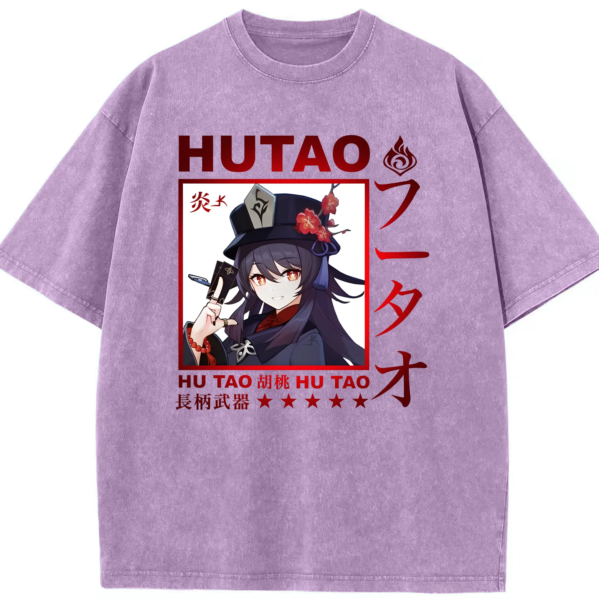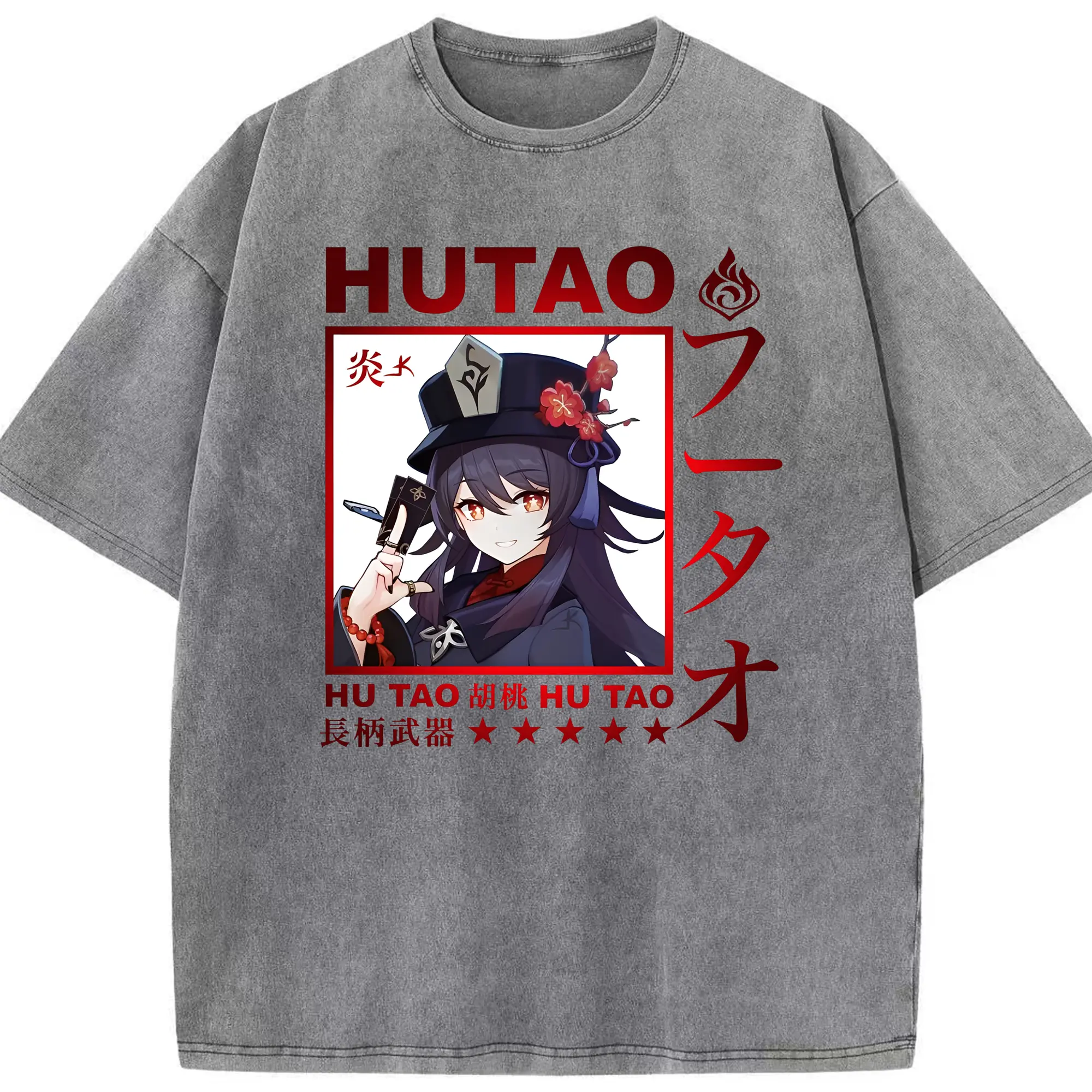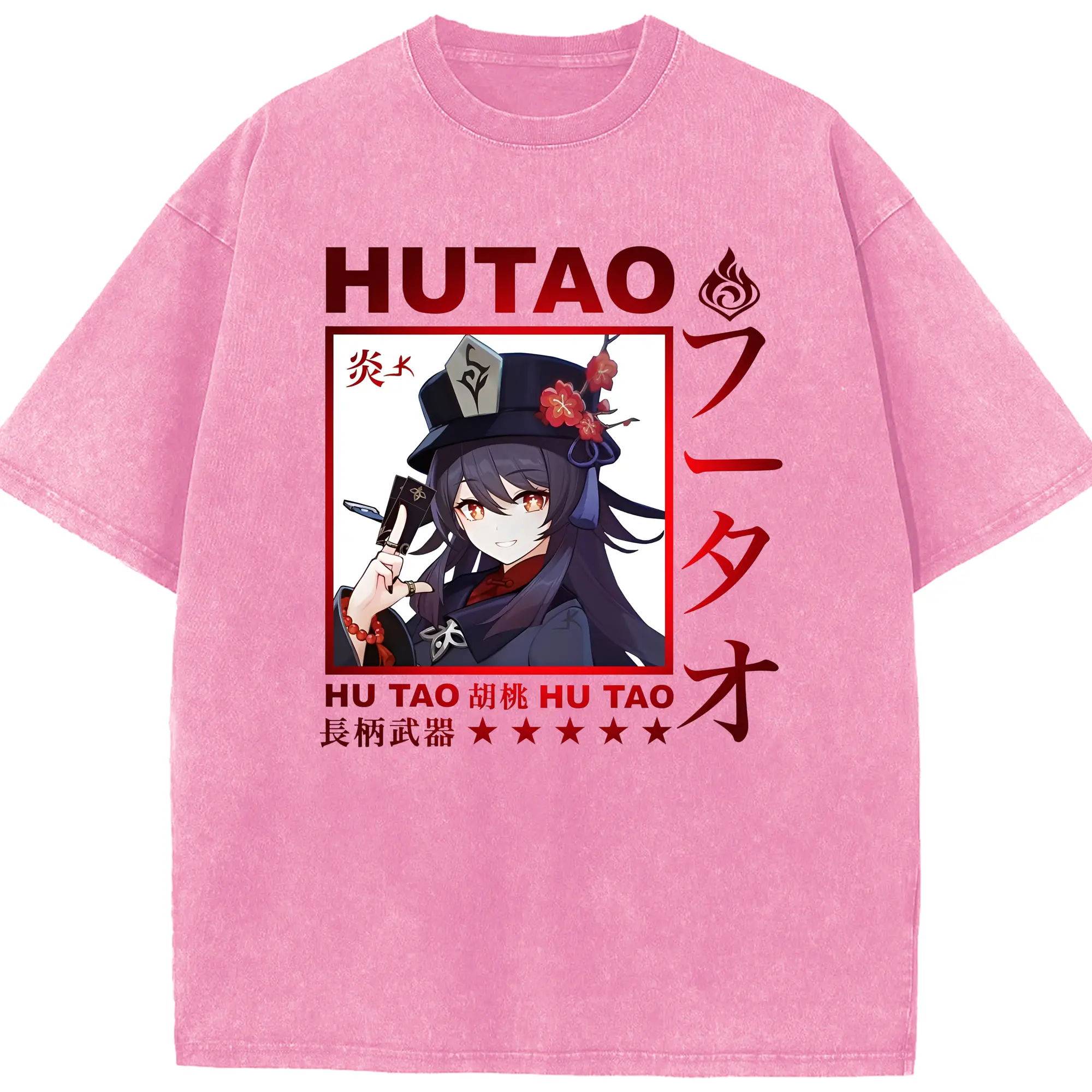 原神胡桃 Hu Tao大人気 キャラクターグッズ 周辺 - 綿100% 半袖Tシャツ ・ フロントプリント ・ 快適 通気性 ・ 日常使い 散歩 スポーツ用