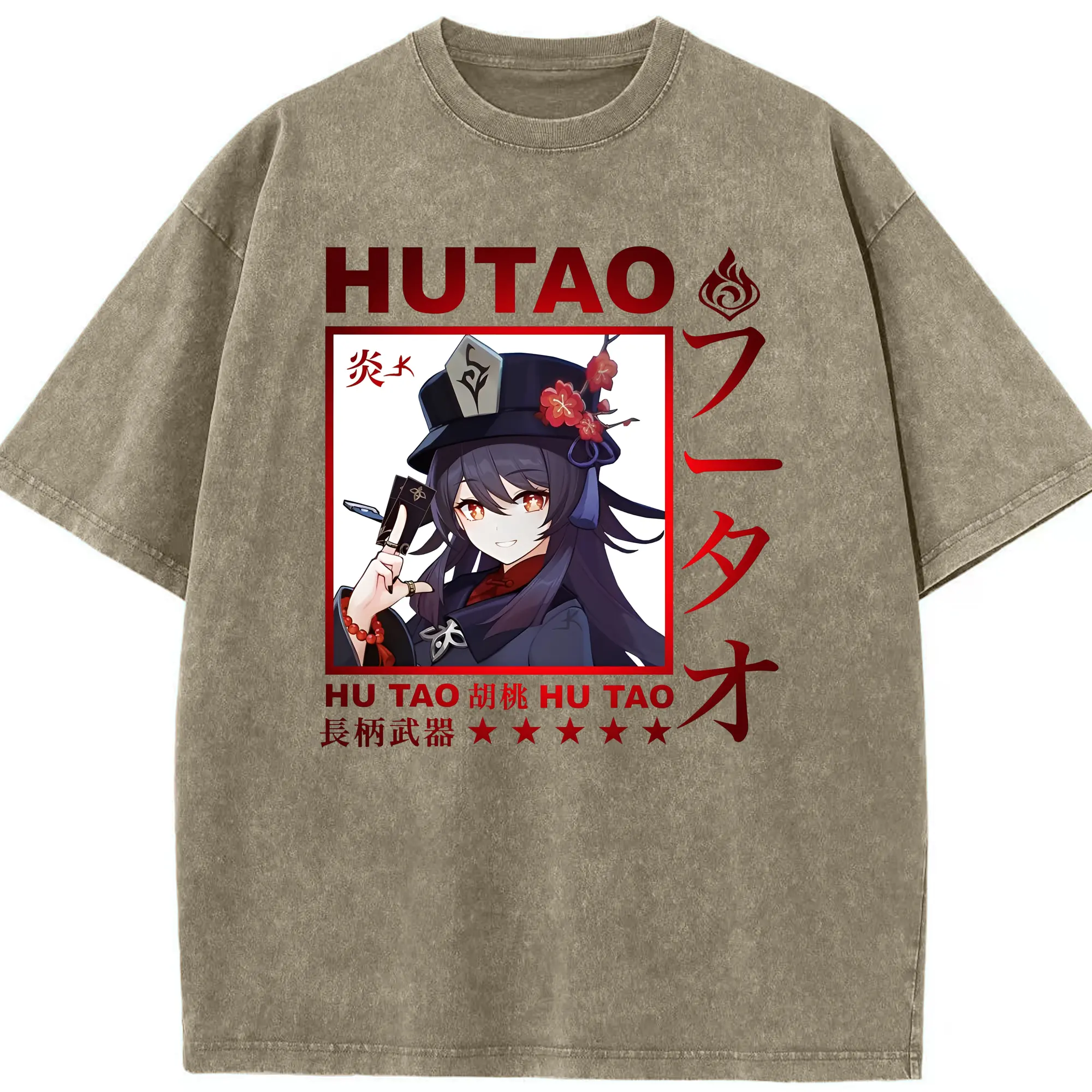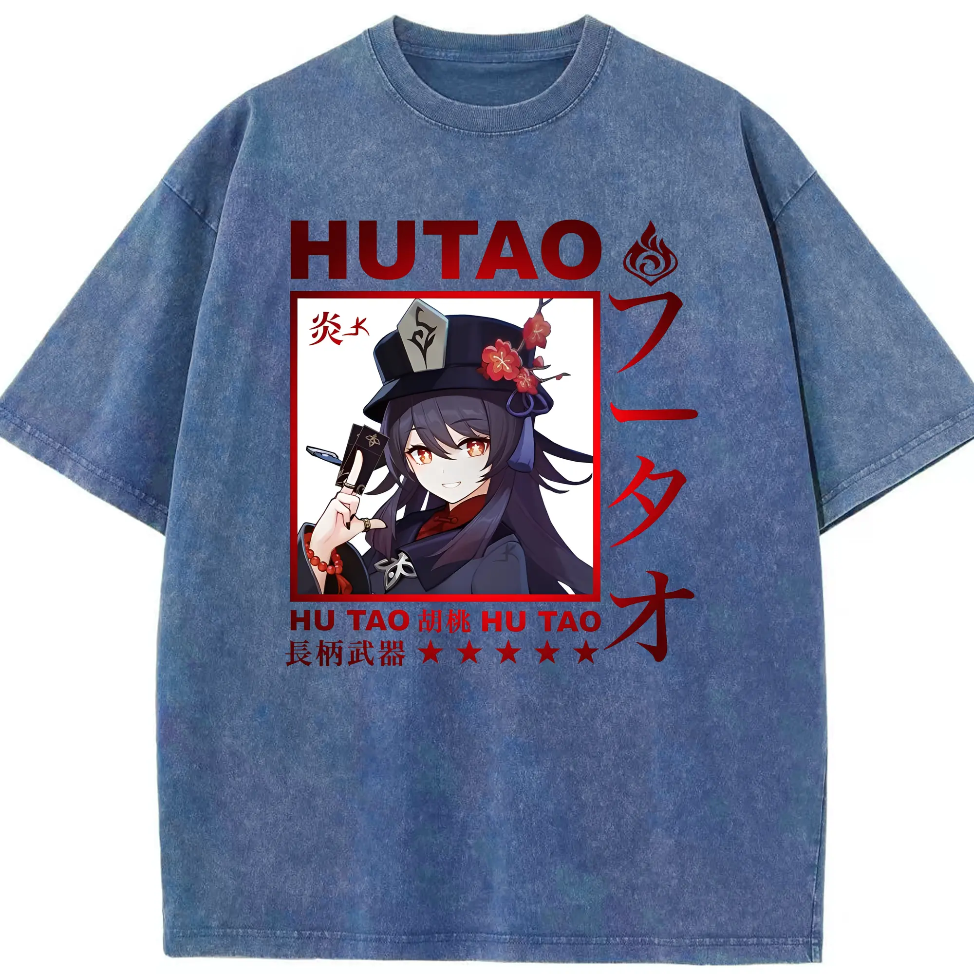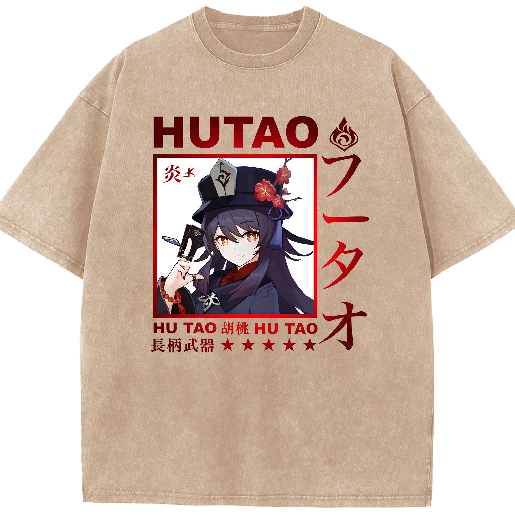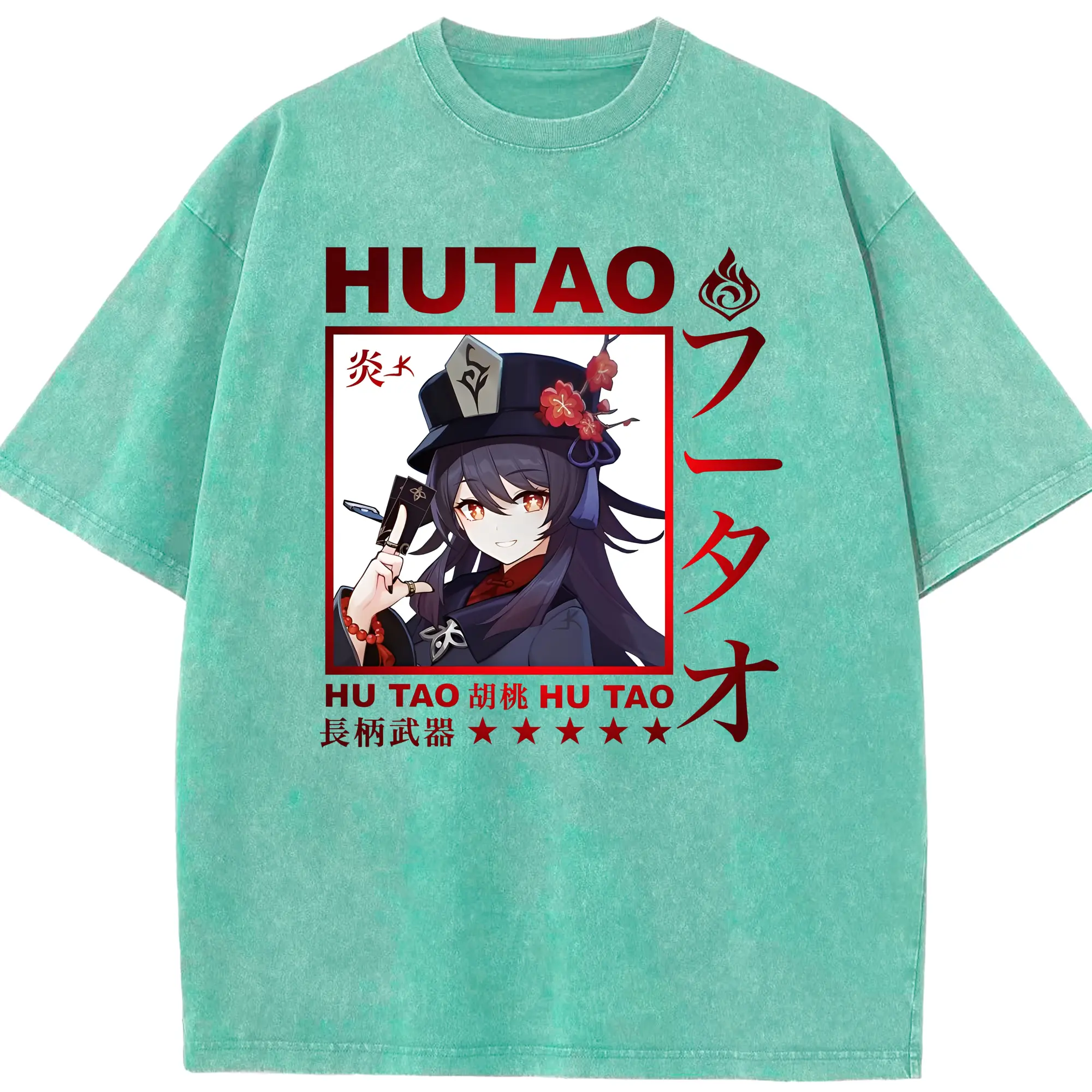 原神胡桃 Hu Tao大人気 キャラクターグッズ 周辺 - 綿100% 半袖Tシャツ ・ フロントプリント ・ 快適 通気性 ・ 日常使い 散歩 スポーツ用