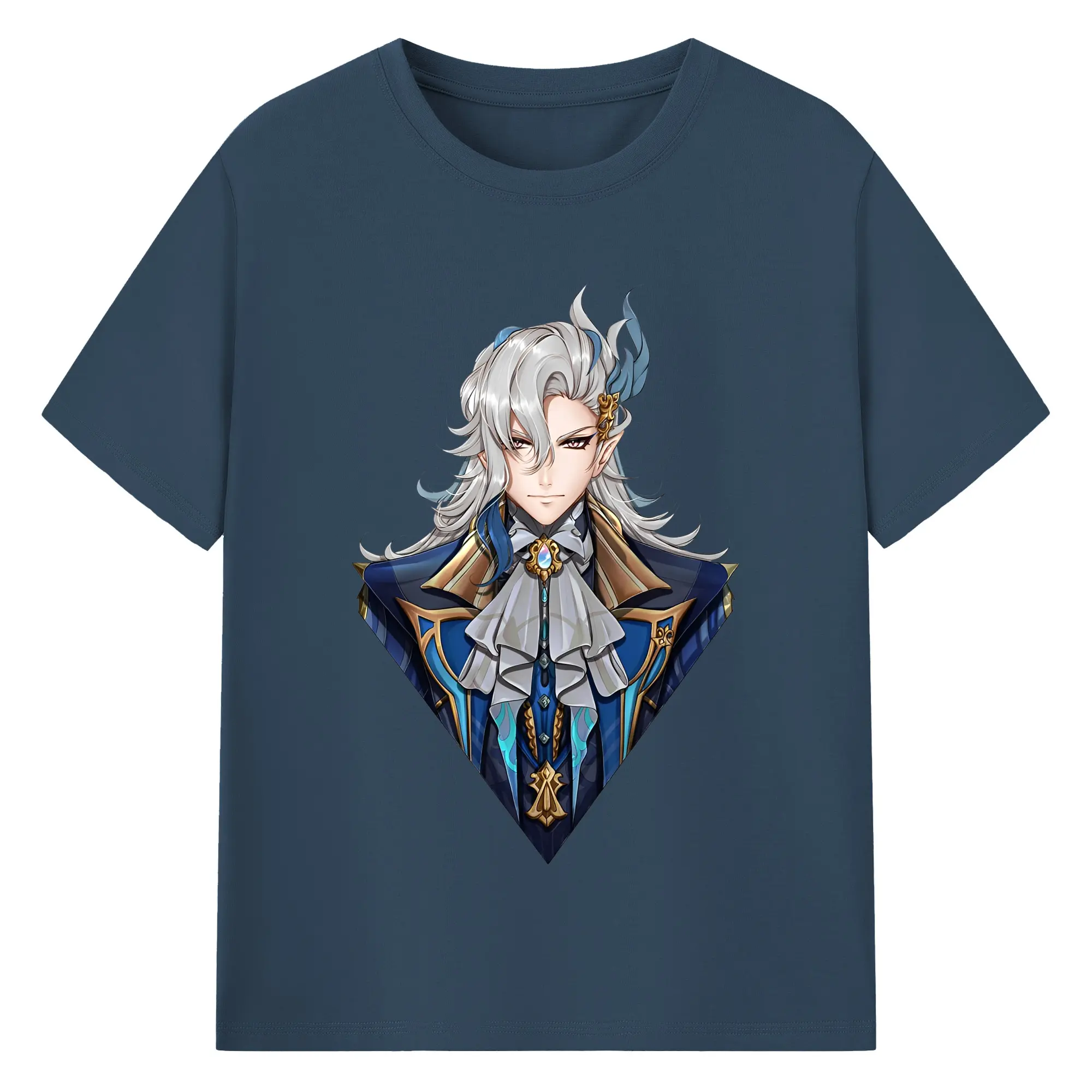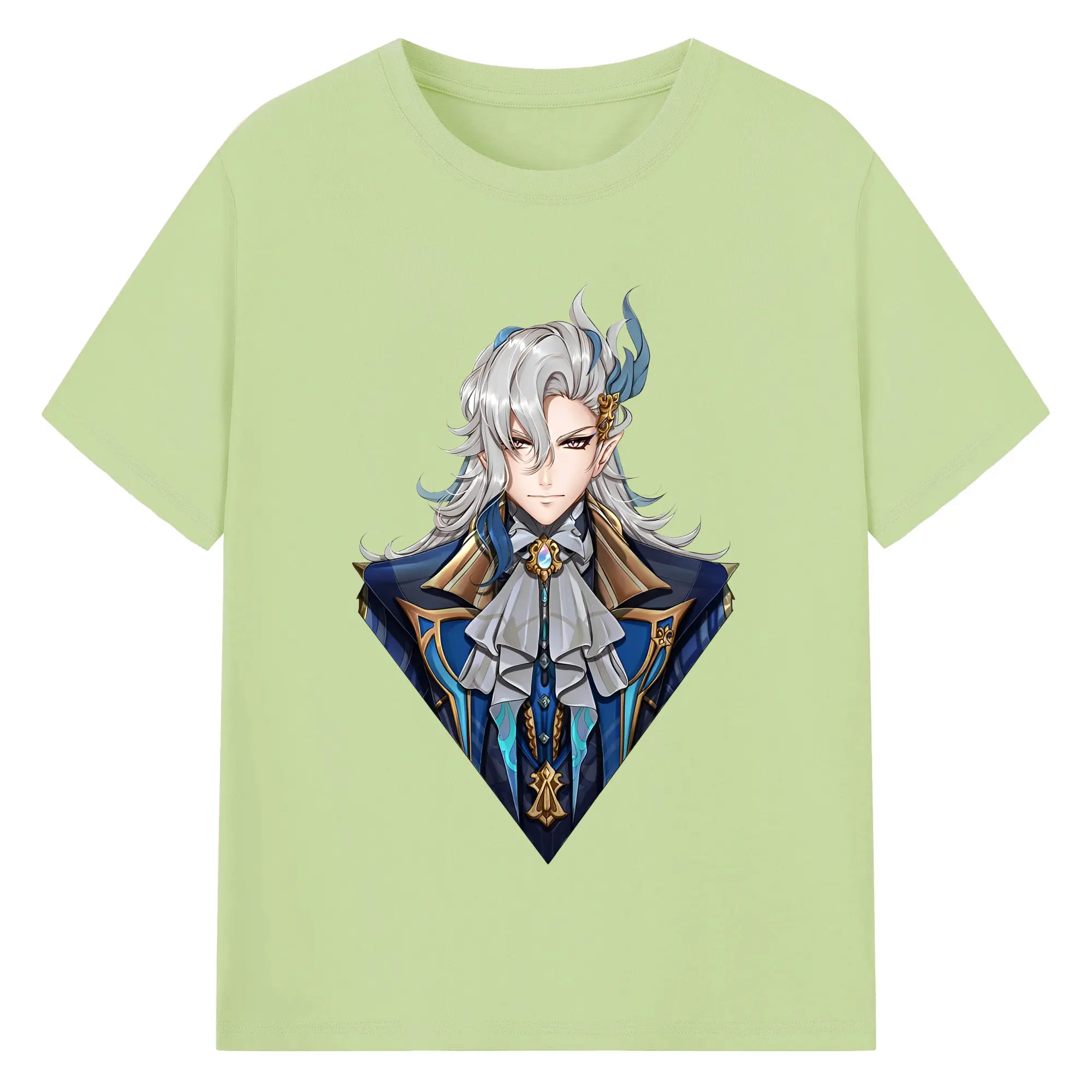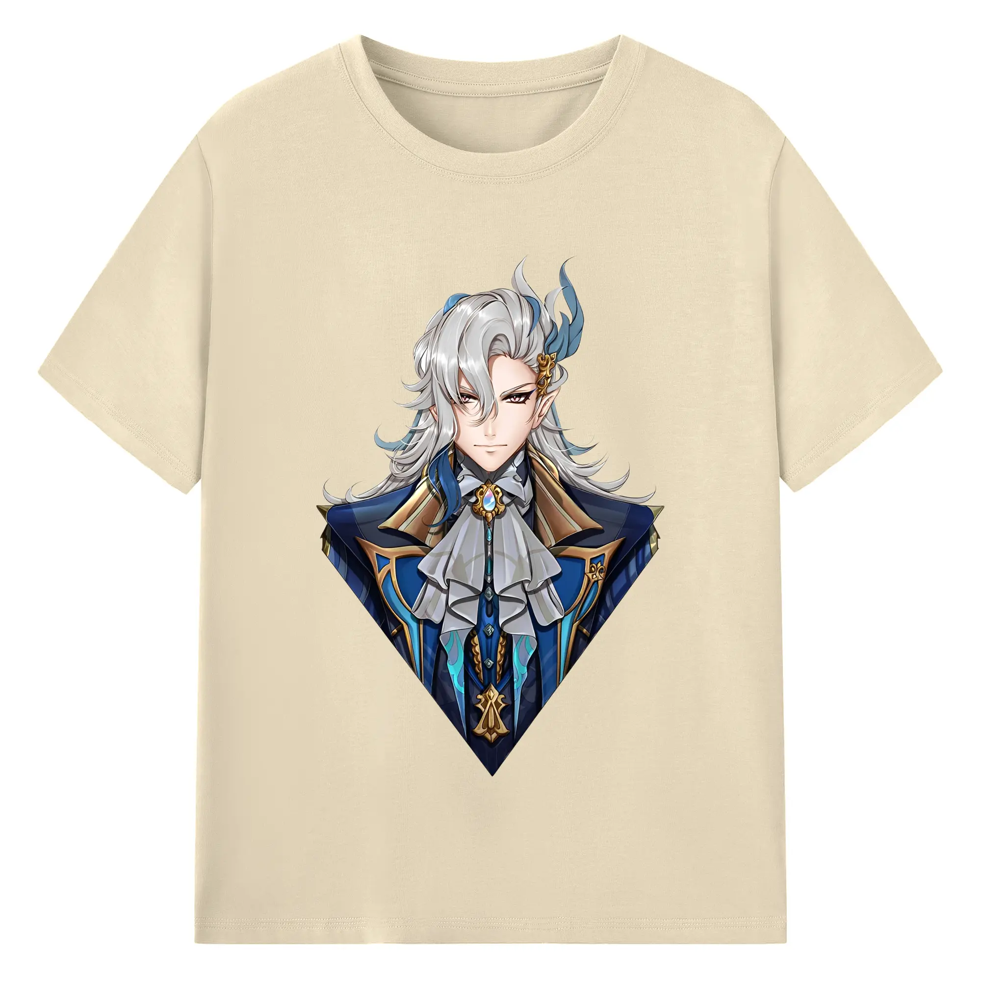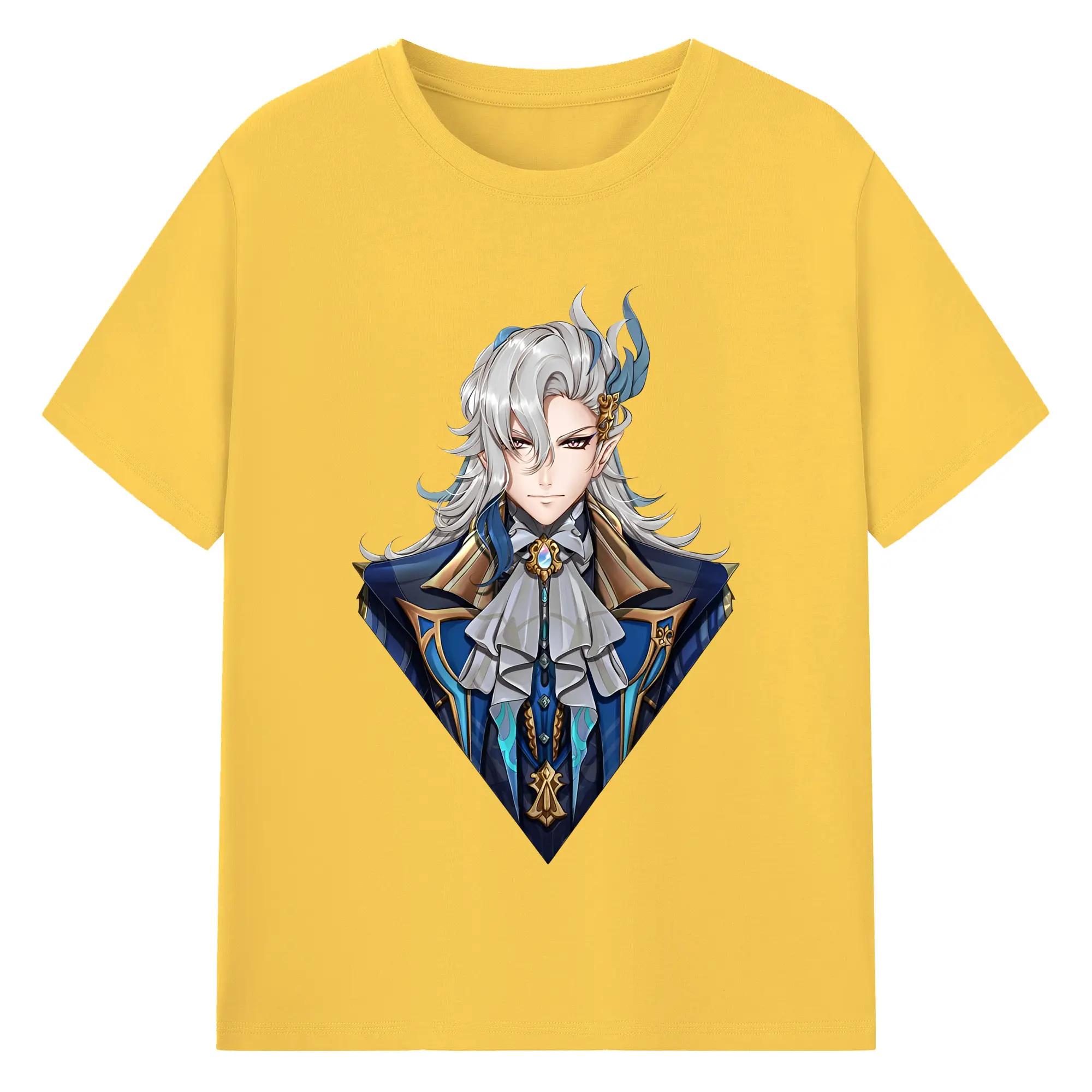 原神 ヌヴィレット 人気キャラクター 限定デザイン【2025新作】 - 綿100% ヴィンテージ風 半袖Tシャツ ・ フロントプリント ・ 柔らか肌触り ・ 通気性 快適 ・ スポーツ カジュアル 外出用