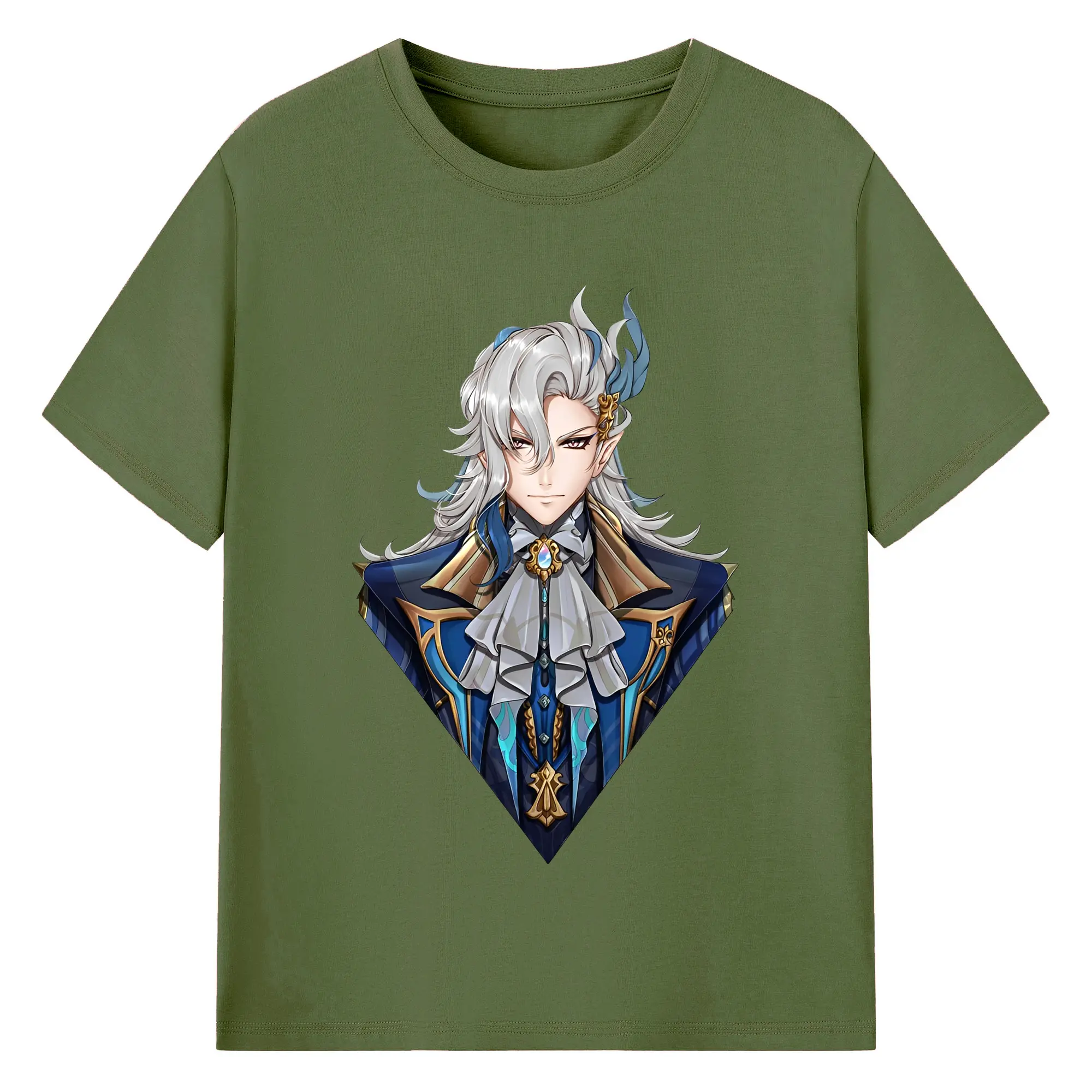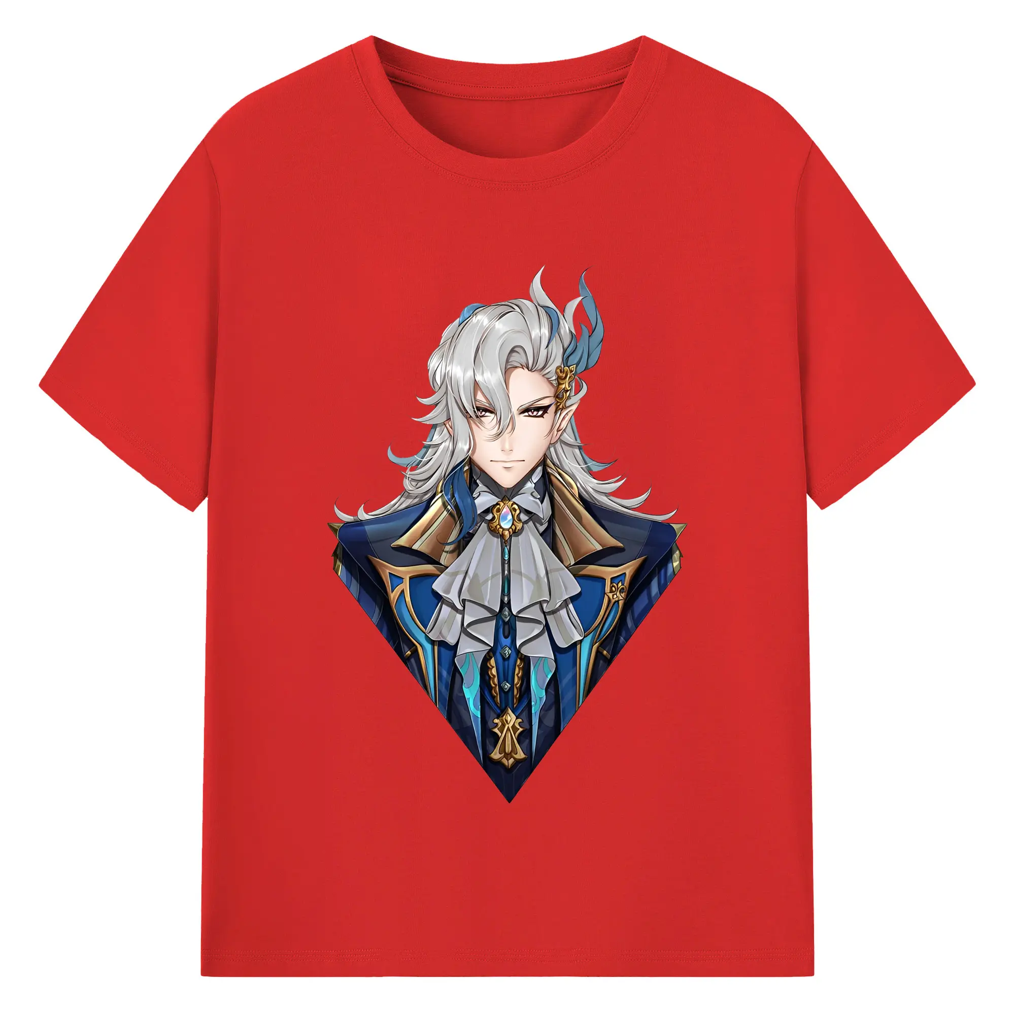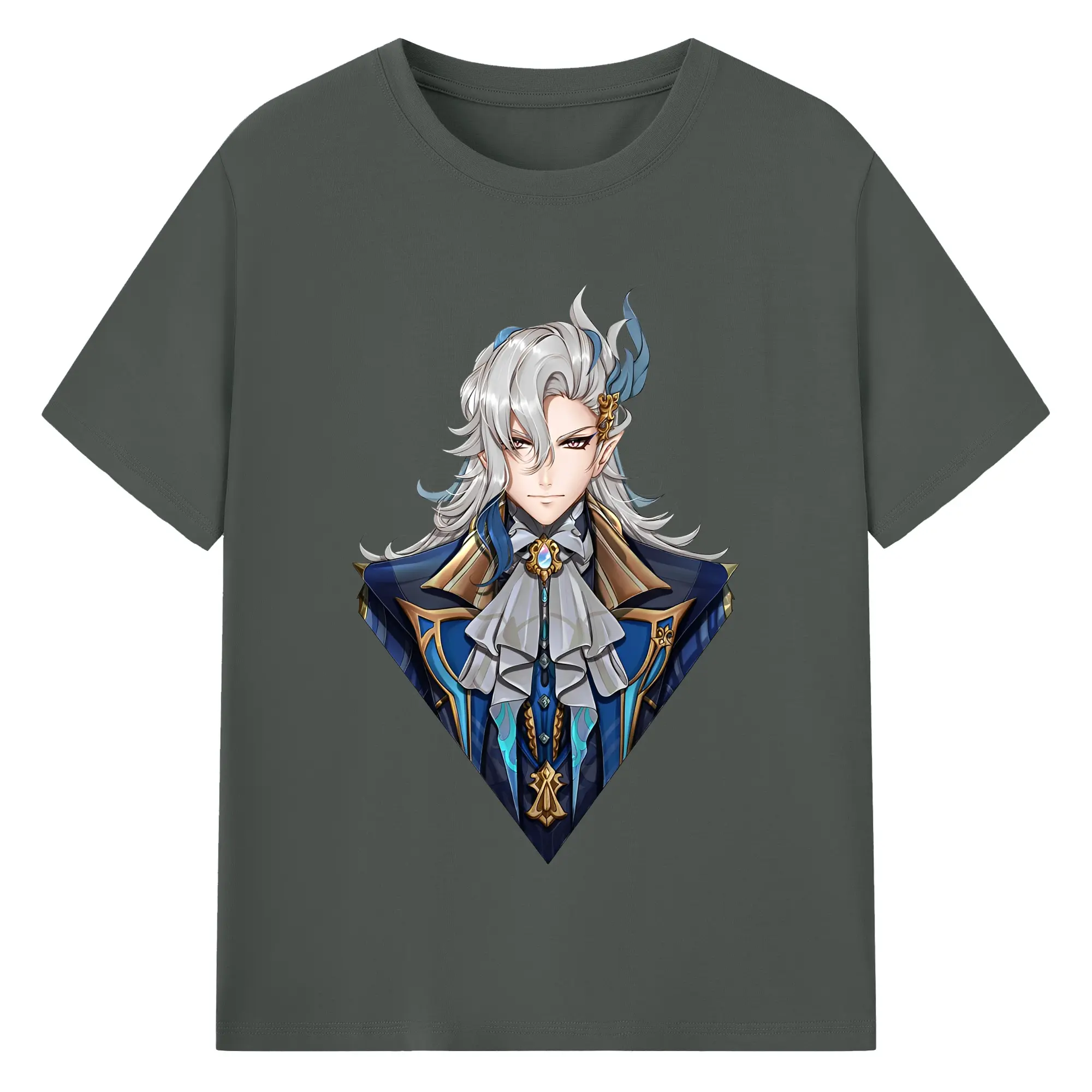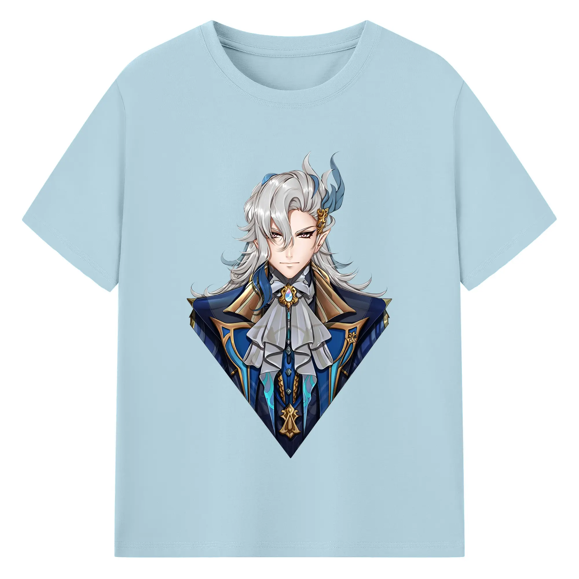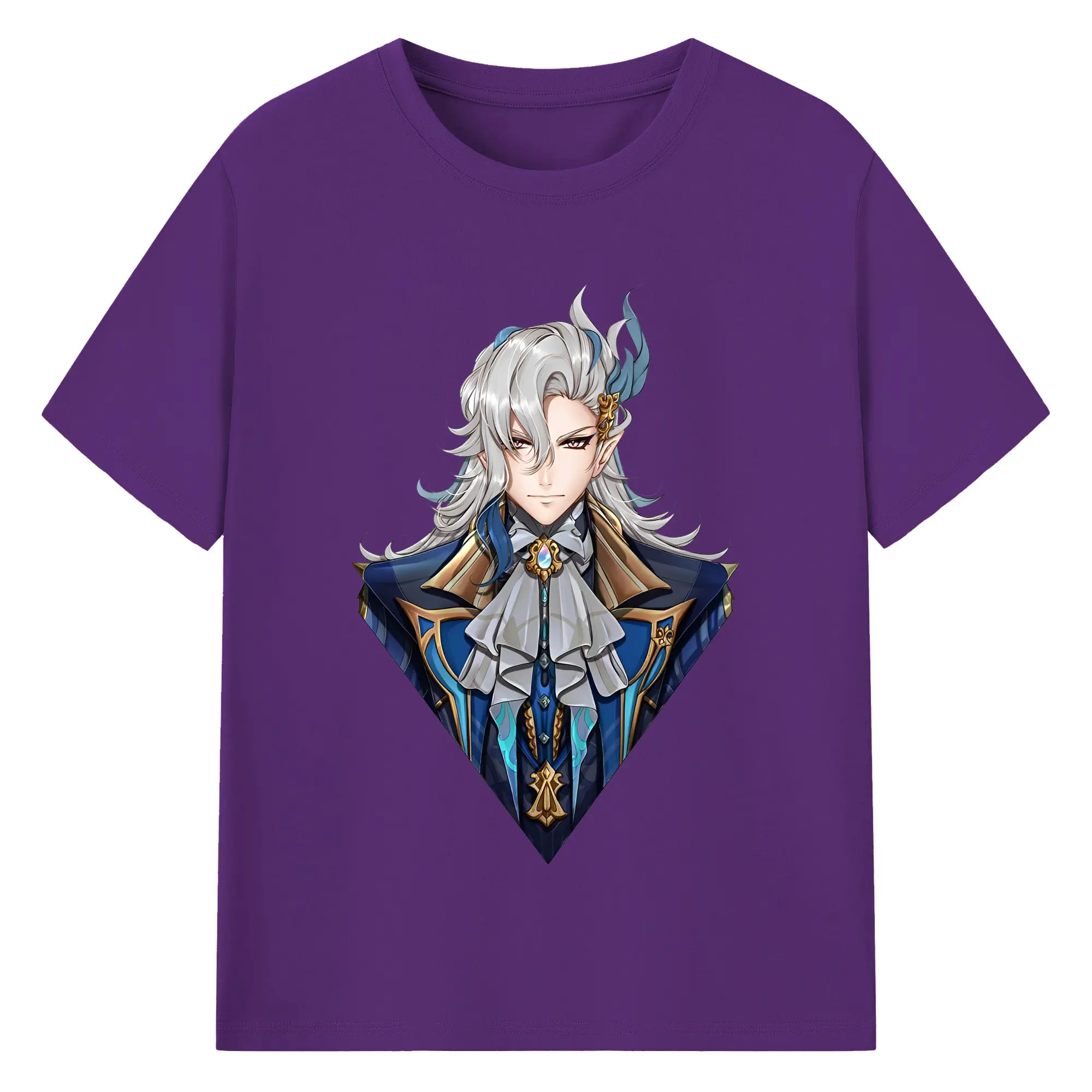 原神 ヌヴィレット 人気キャラクター 限定デザイン【2025新作】 - 綿100% ヴィンテージ風 半袖Tシャツ ・ フロントプリント ・ 柔らか肌触り ・ 通気性 快適 ・ スポーツ カジュアル 外出用