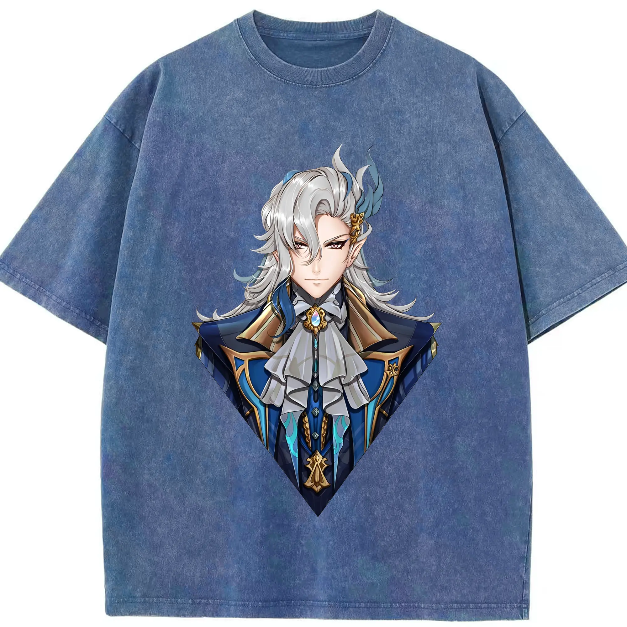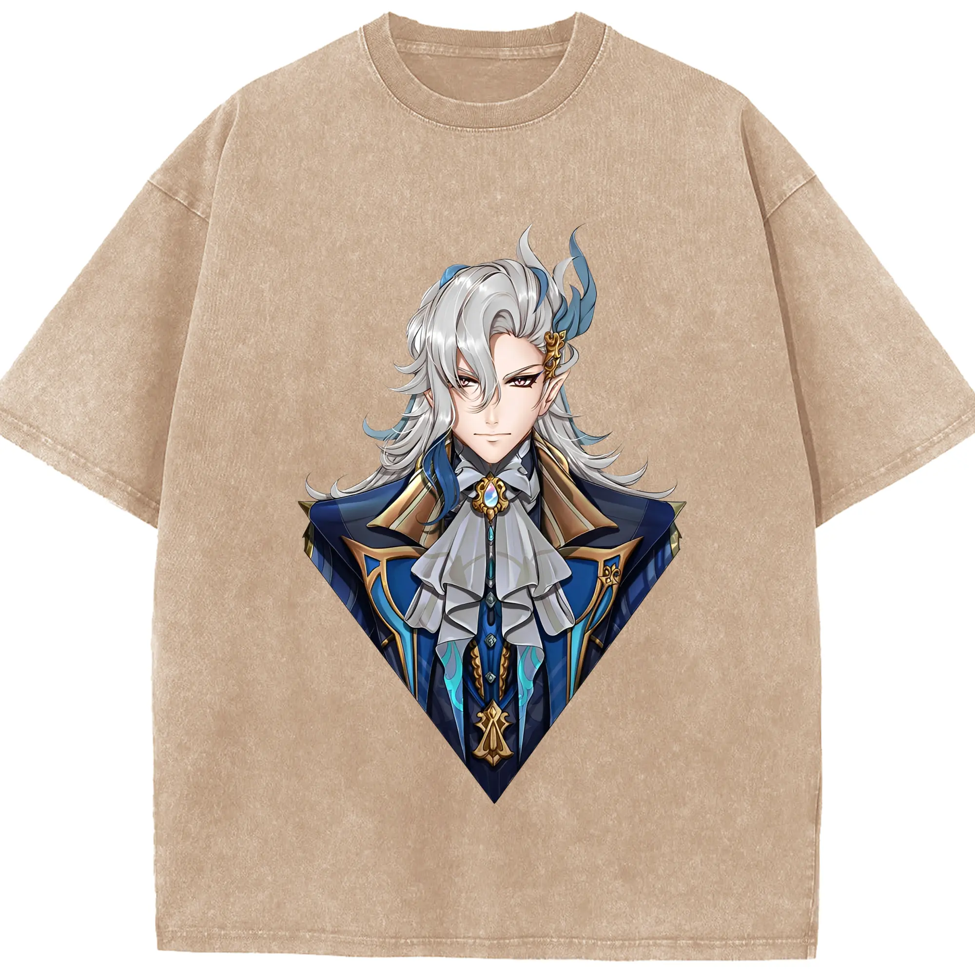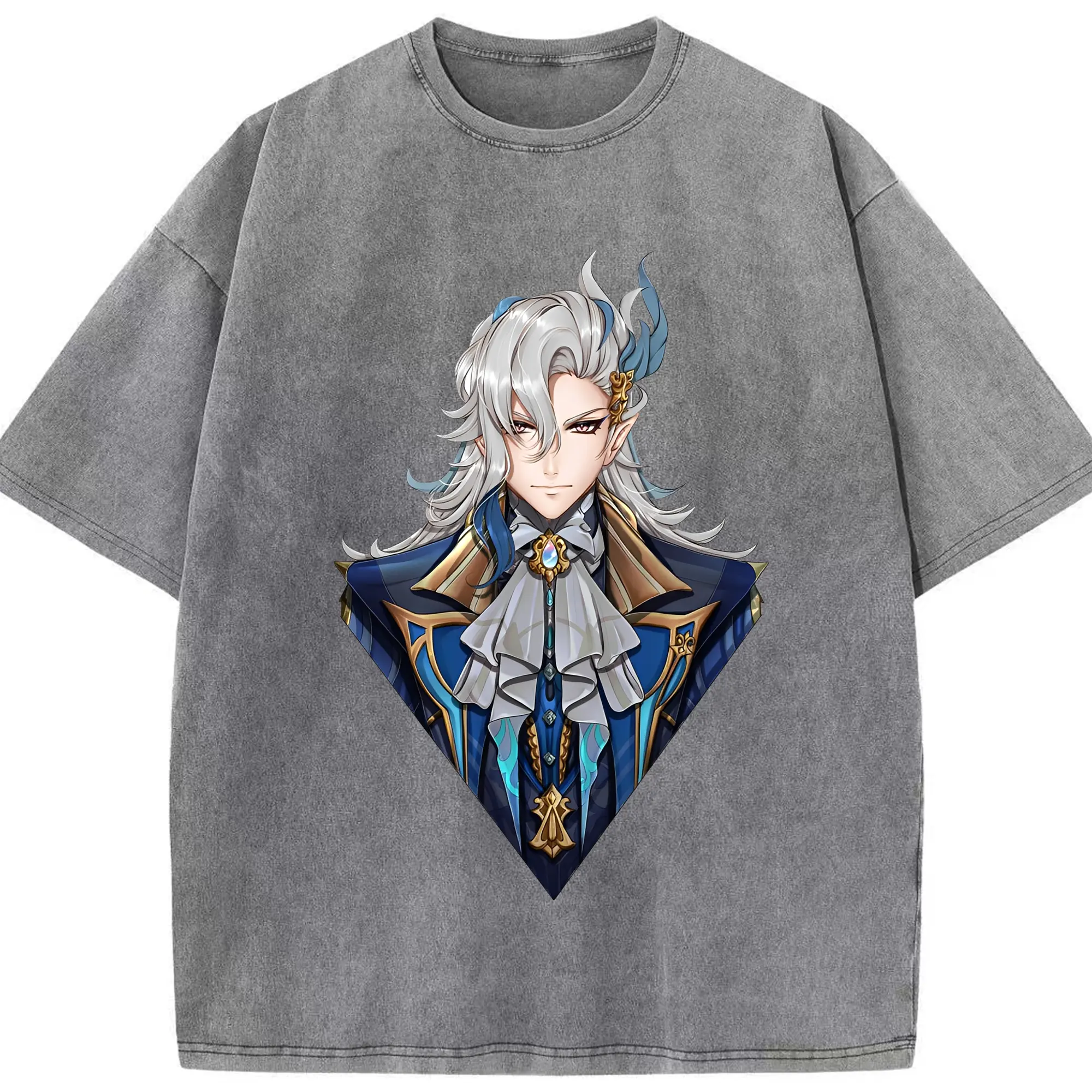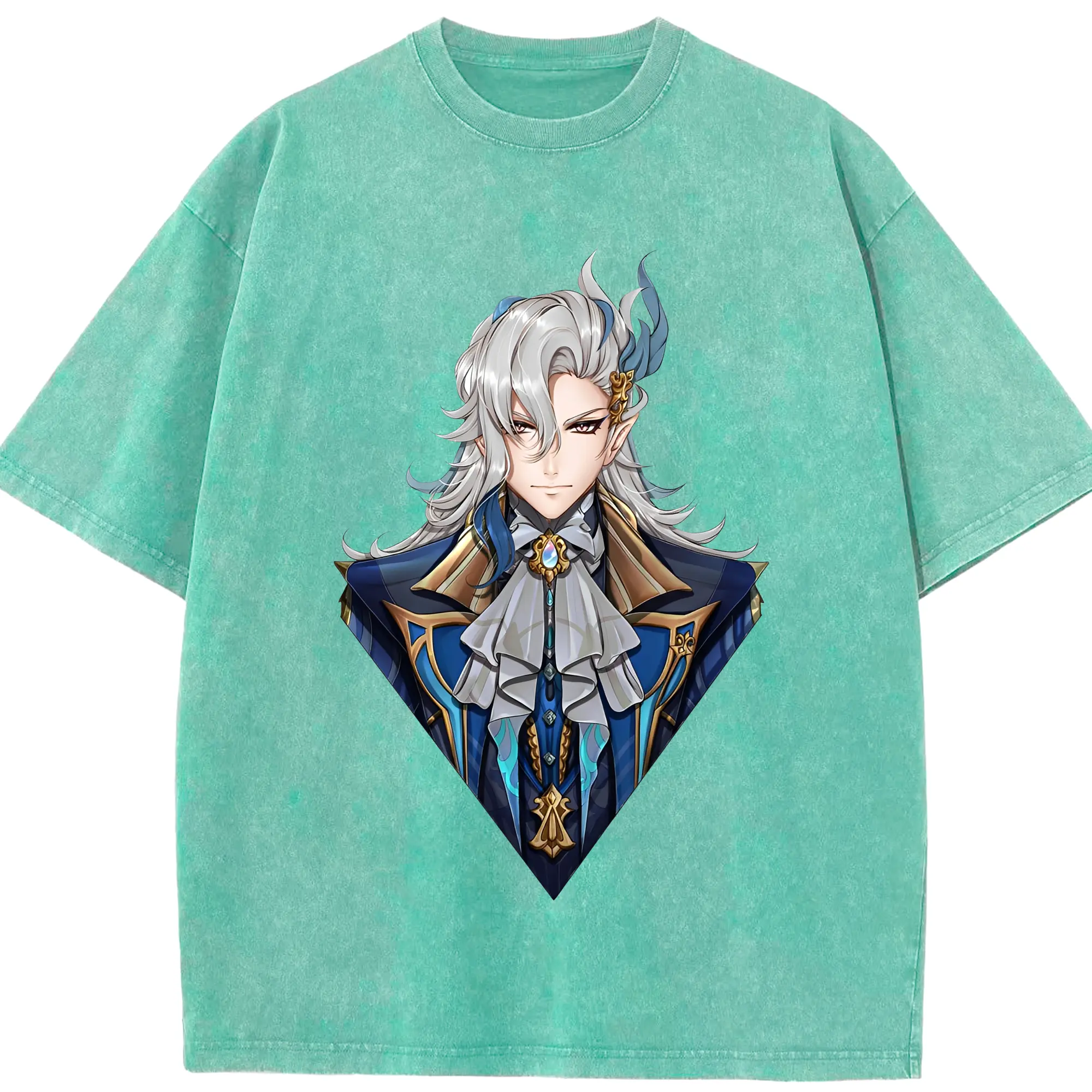 原神 ヌヴィレット トレンドデザイン ギフトにもおすすめ - 綿100% ヴィンテージ風 半袖Tシャツ ・ フロントプリント ・ 柔らか肌触り ・ 通気性 快適 ・ スポーツ カジュアル 外出用