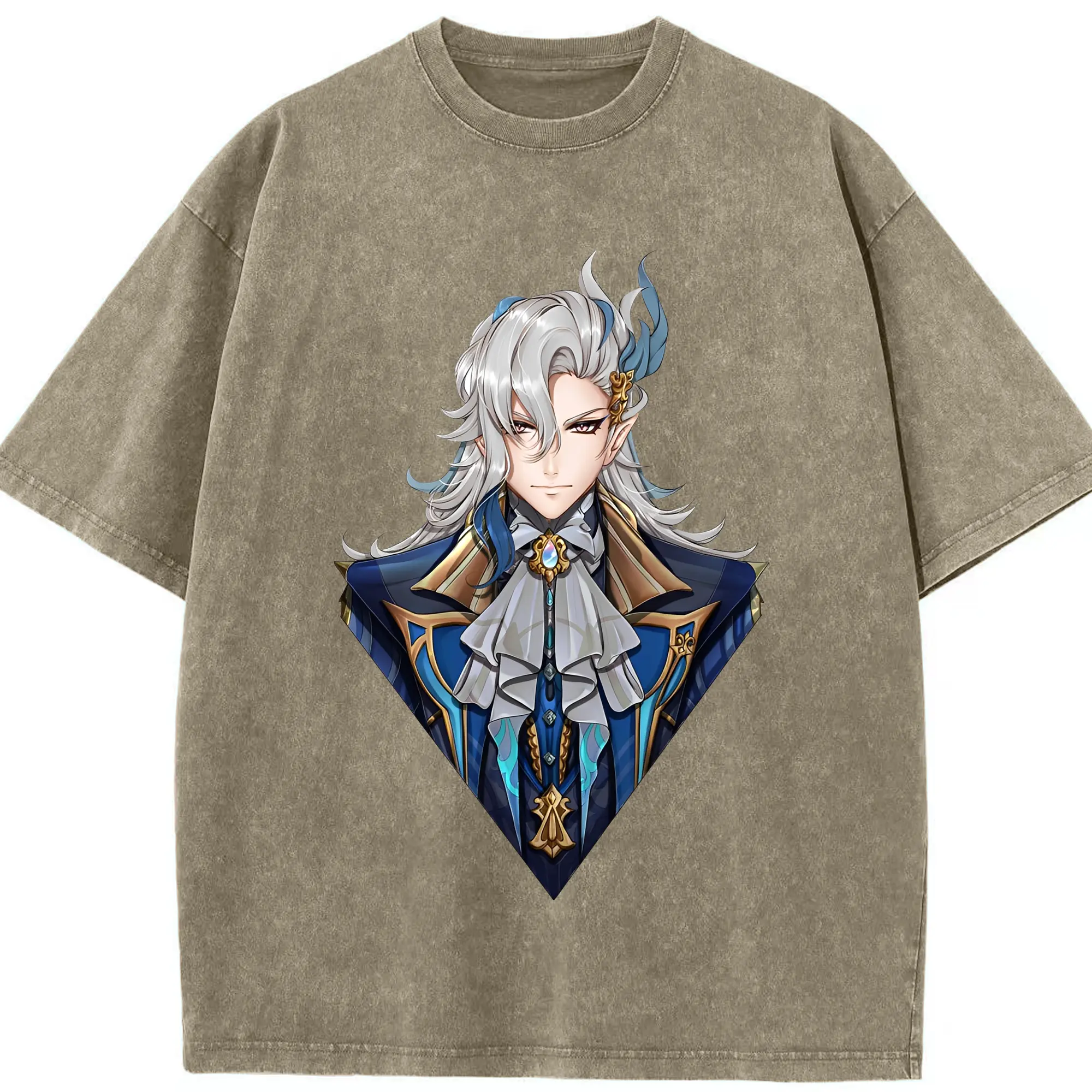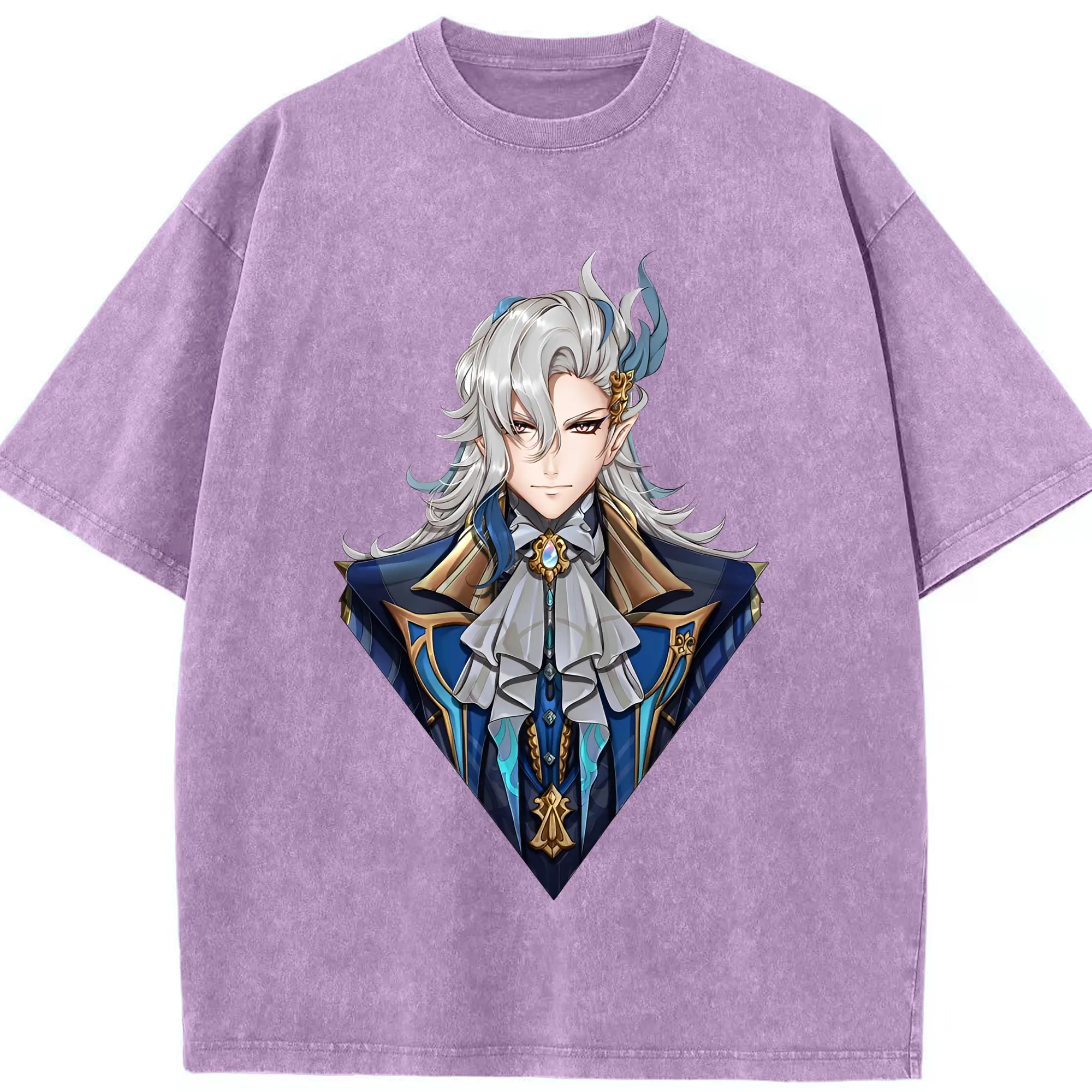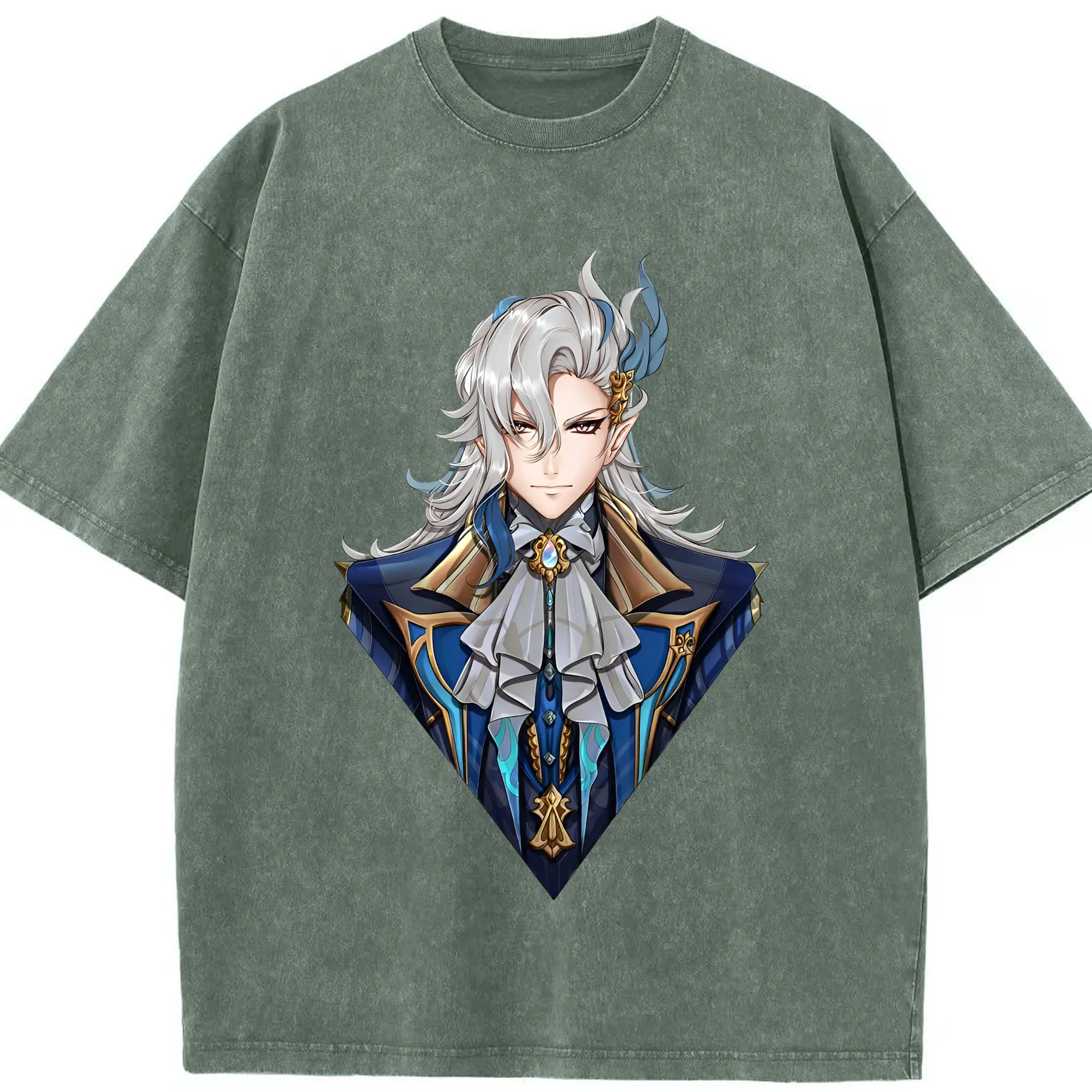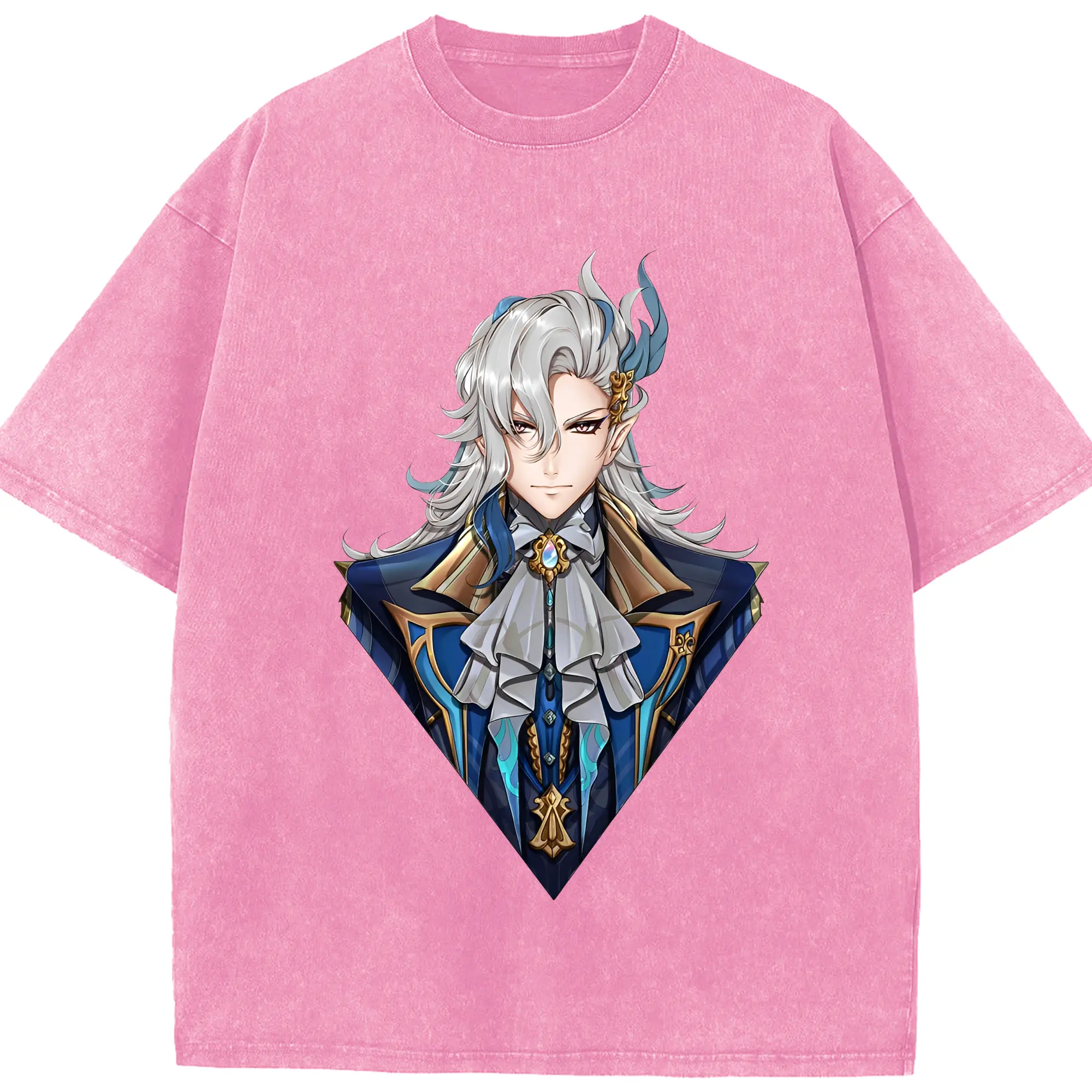原神 ヌヴィレット トレンドデザイン ギフトにもおすすめ - 綿100% ヴィンテージ風 半袖Tシャツ ・ フロントプリント ・ 柔らか肌触り ・ 通気性 快適 ・ スポーツ カジュアル 外出用