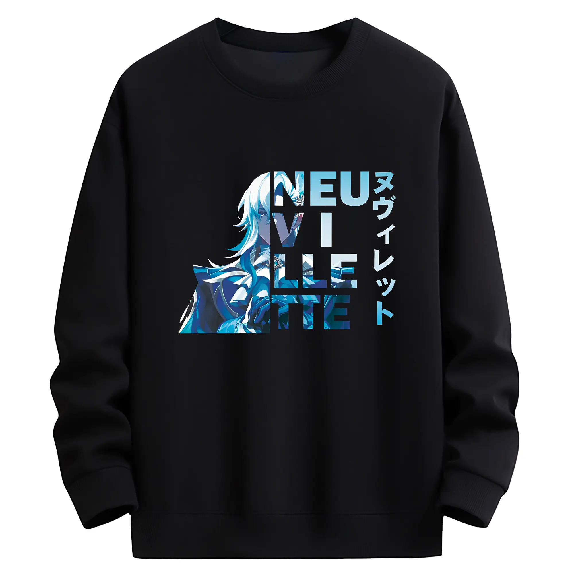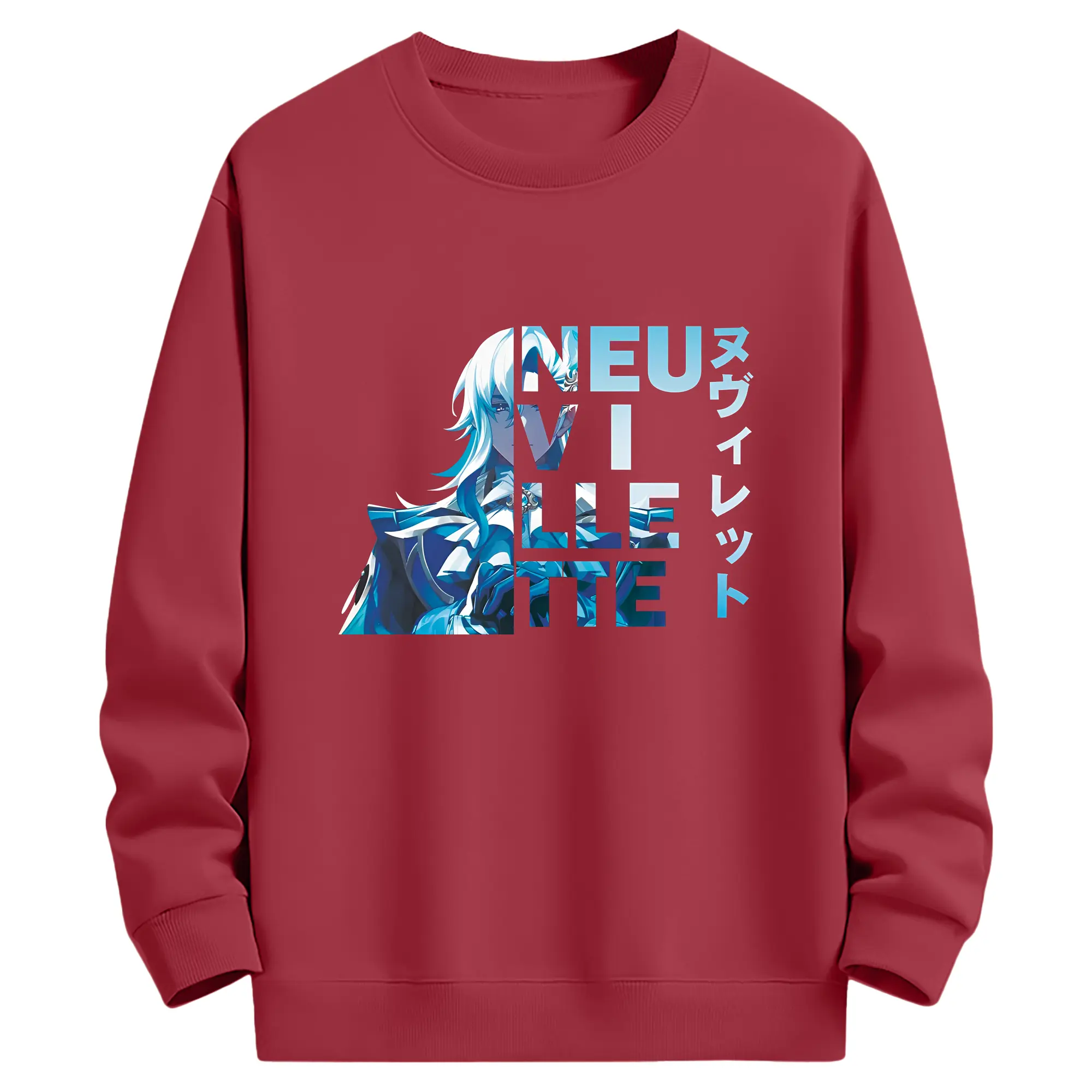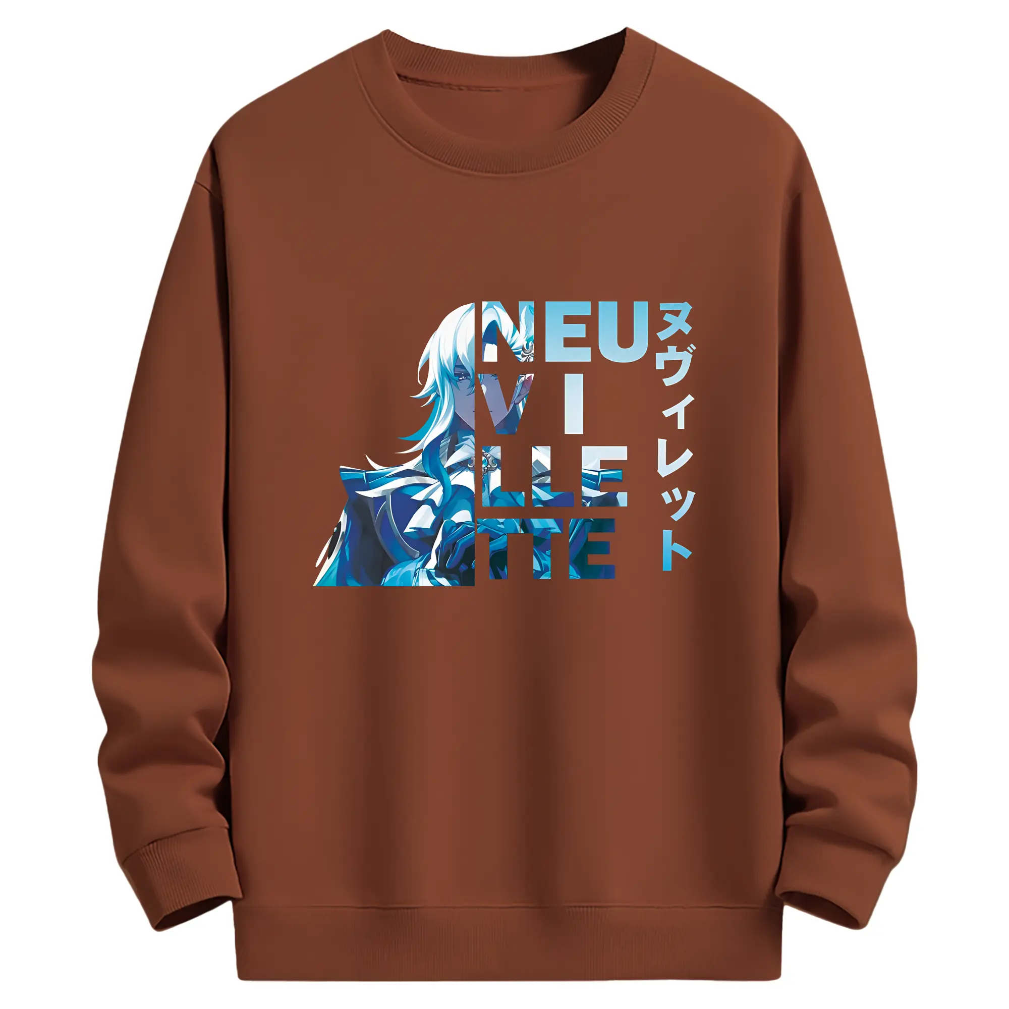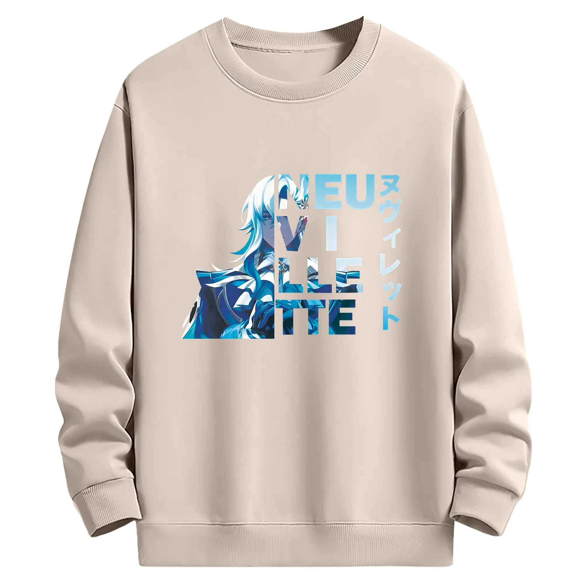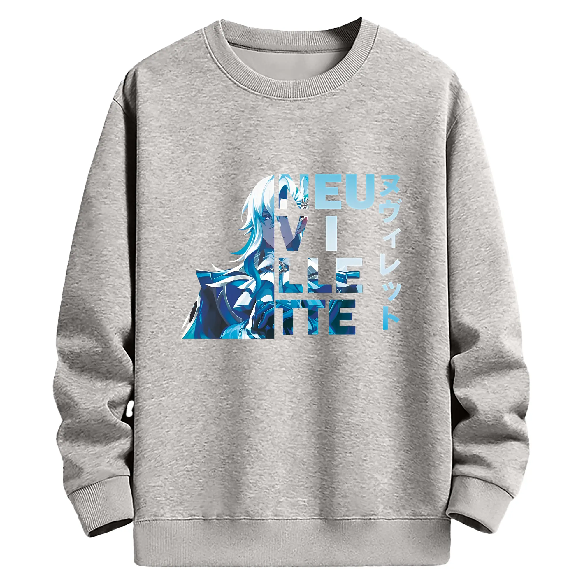 原神 ヌヴィレット アニメ風プリント 推し活グッズ - 高品質 クルーネック スウェット ・ コットン59% ポリエステル41% ・ ユニセックス 長袖 トレーナー ・ カジュアル デイリー スポーツ 散歩用