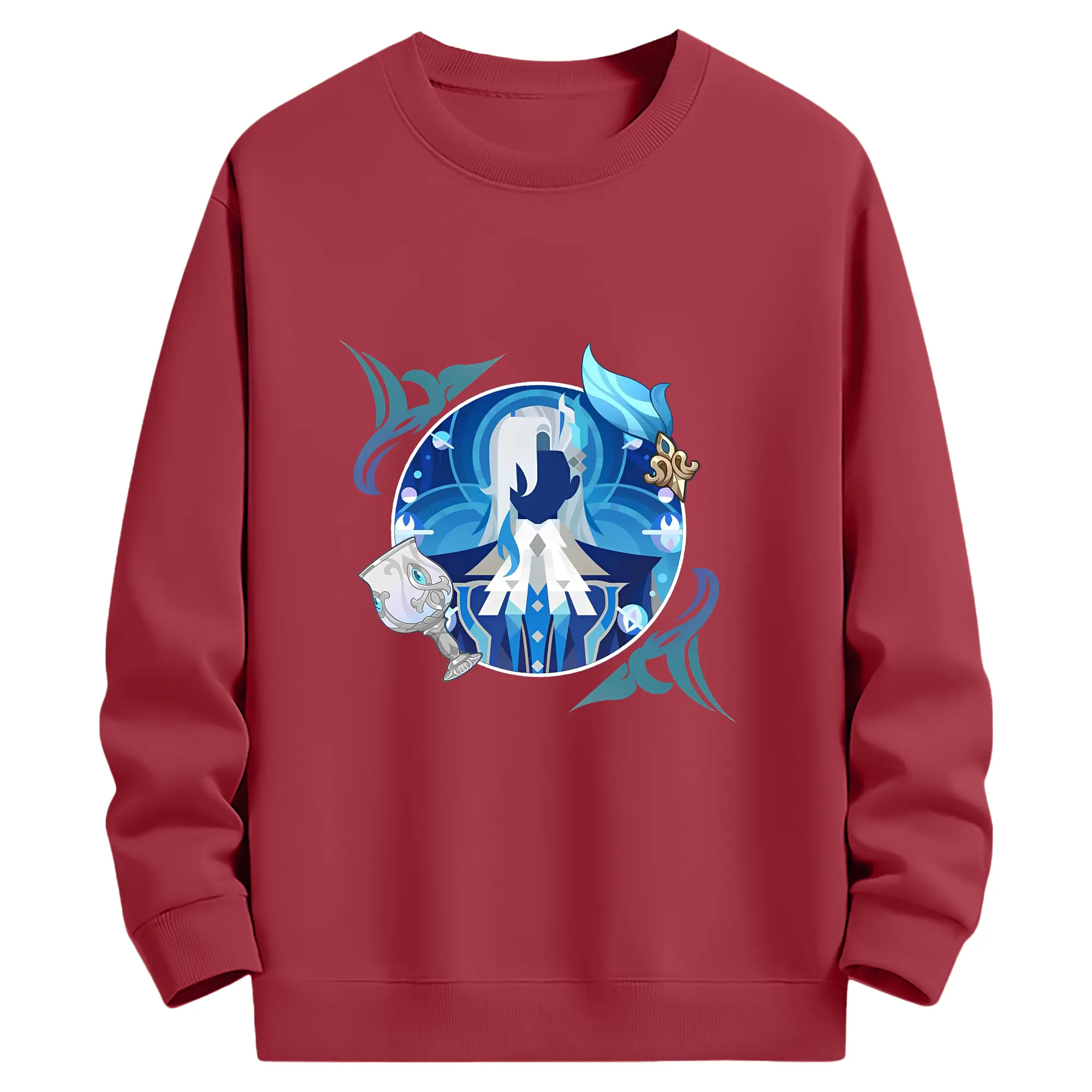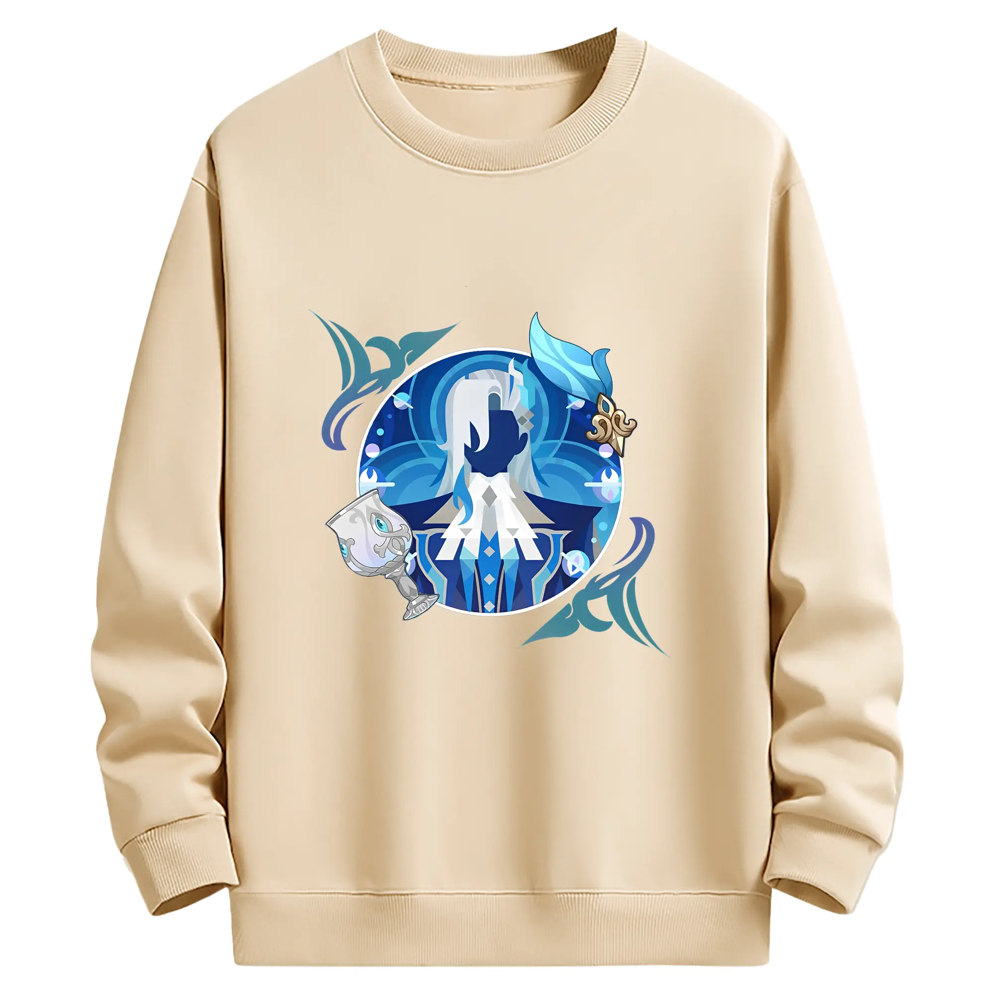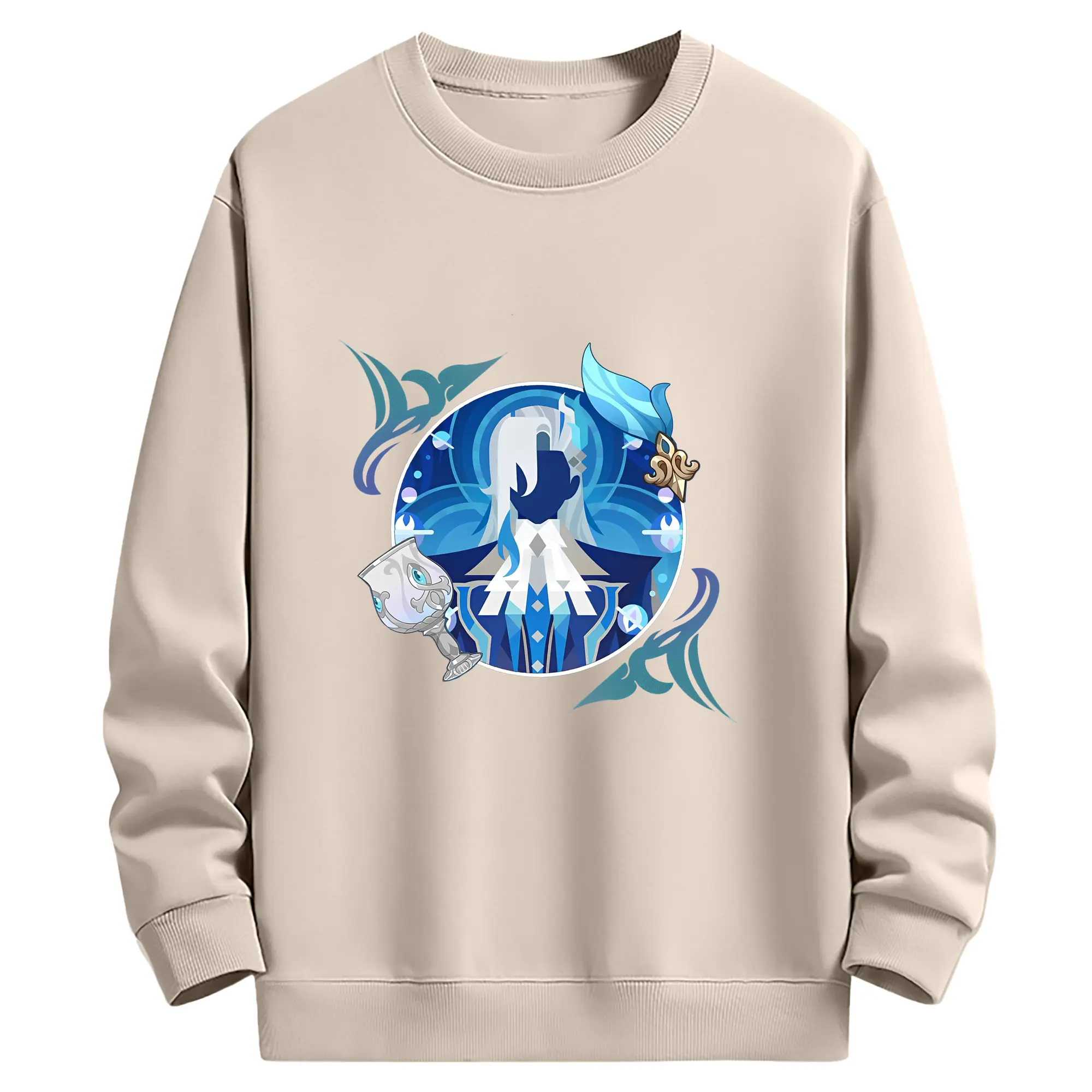 原神 ヌヴィレット アニメ風プリント 推し活グッズ - 綿100% 半袖Tシャツ ・ フロントプリント ・ 快適 通気性 ・ 日常使い 散歩 スポーツ用