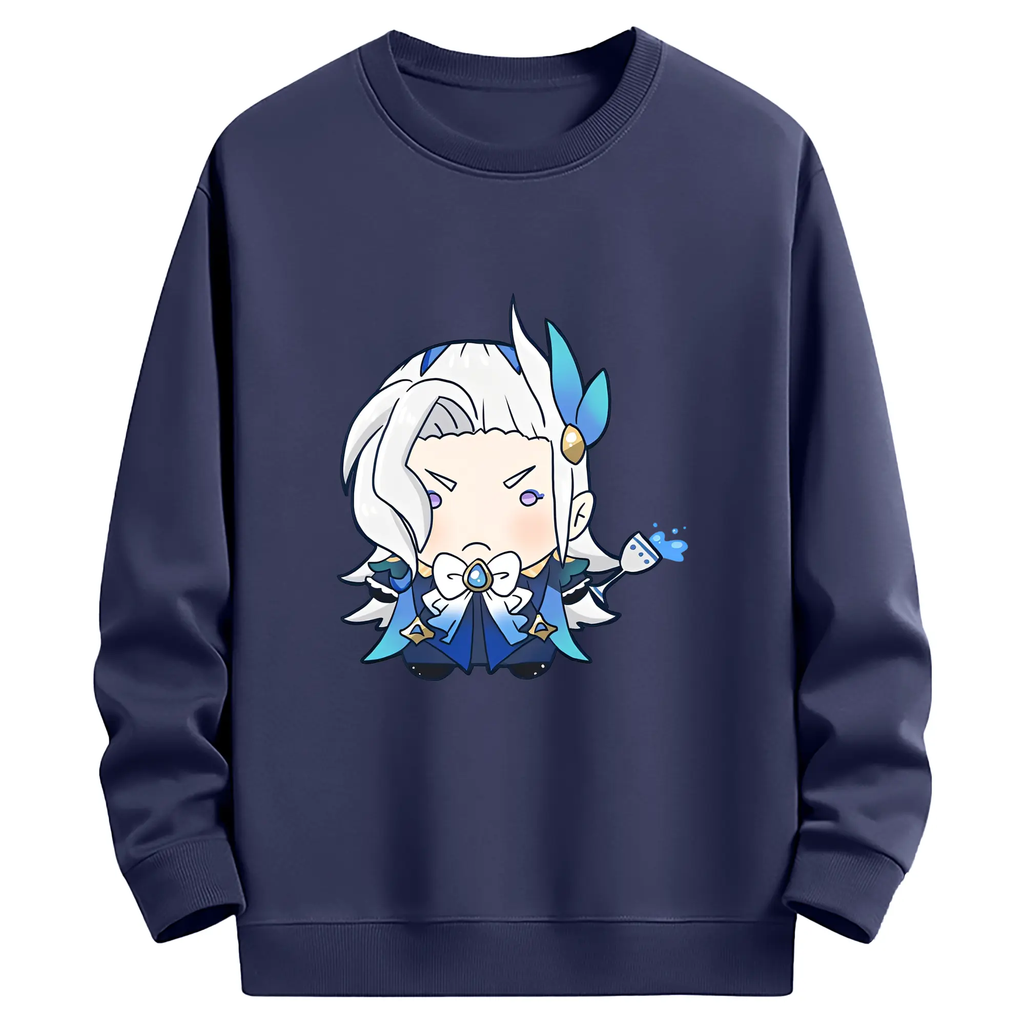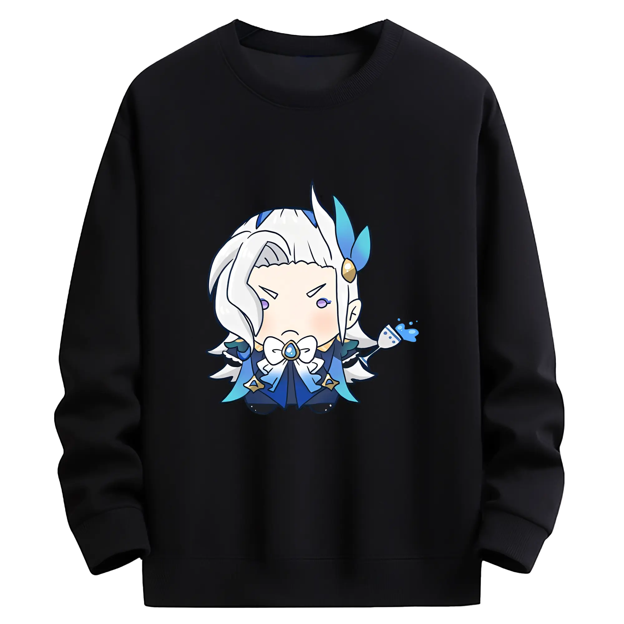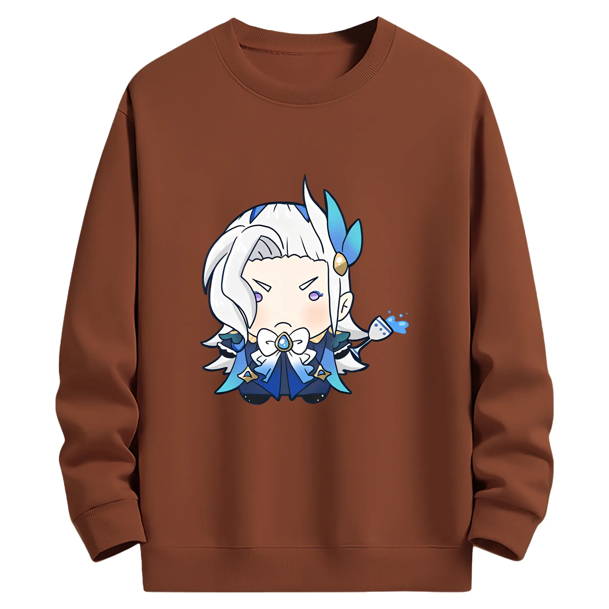 原神 Furina 限定デザイン キュートキャラクター - 高品質 クルーネック スウェット ・ コットン59% ポリエステル41% ・ ユニセックス 長袖 トレーナー ・ カジュアル デイリー スポーツ 散歩用