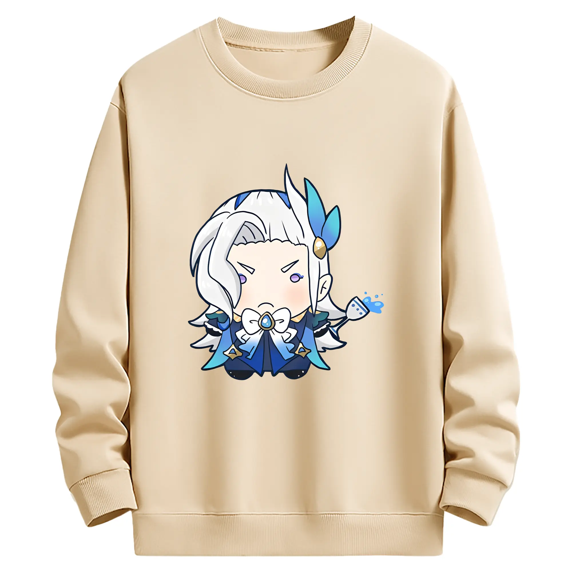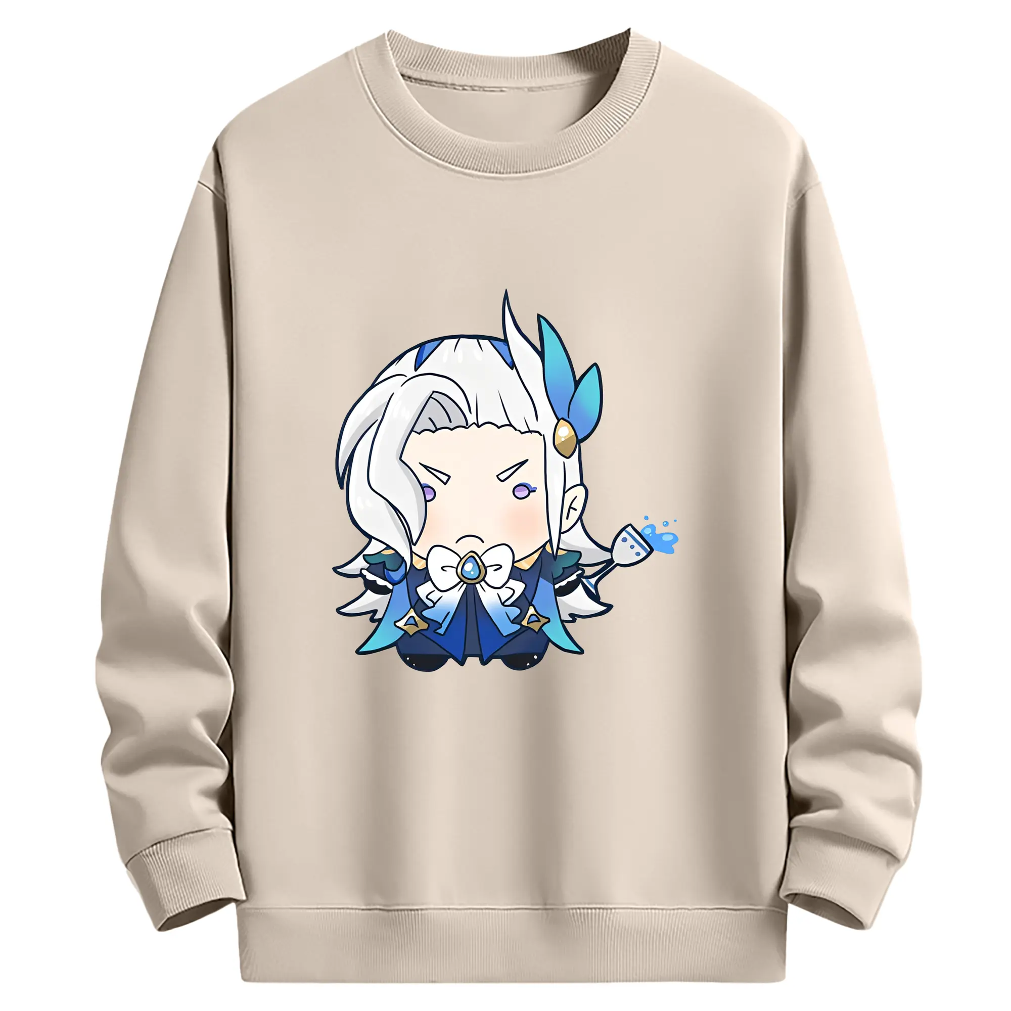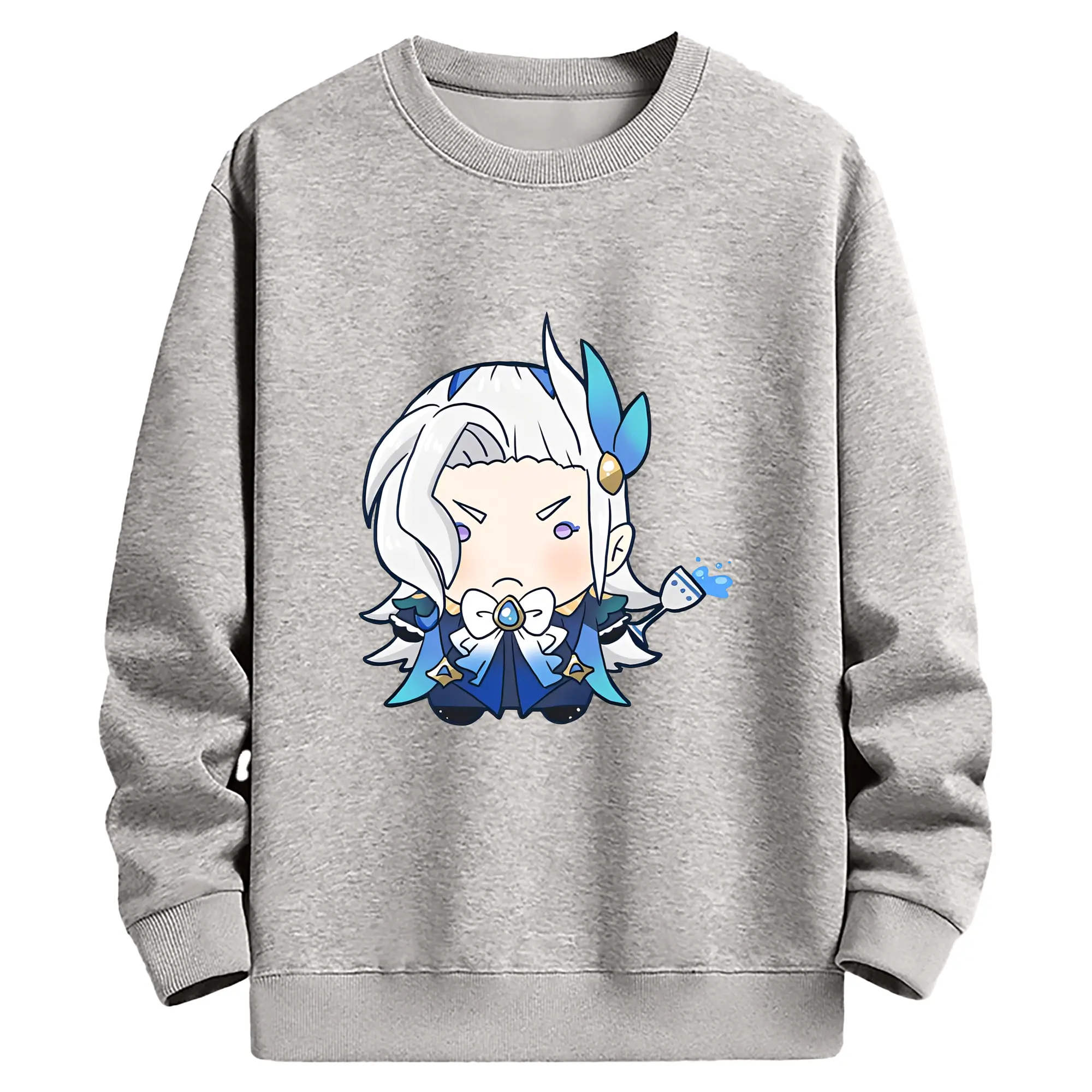 原神 Furina 限定デザイン キュートキャラクター - 高品質 クルーネック スウェット ・ コットン59% ポリエステル41% ・ ユニセックス 長袖 トレーナー ・ カジュアル デイリー スポーツ 散歩用