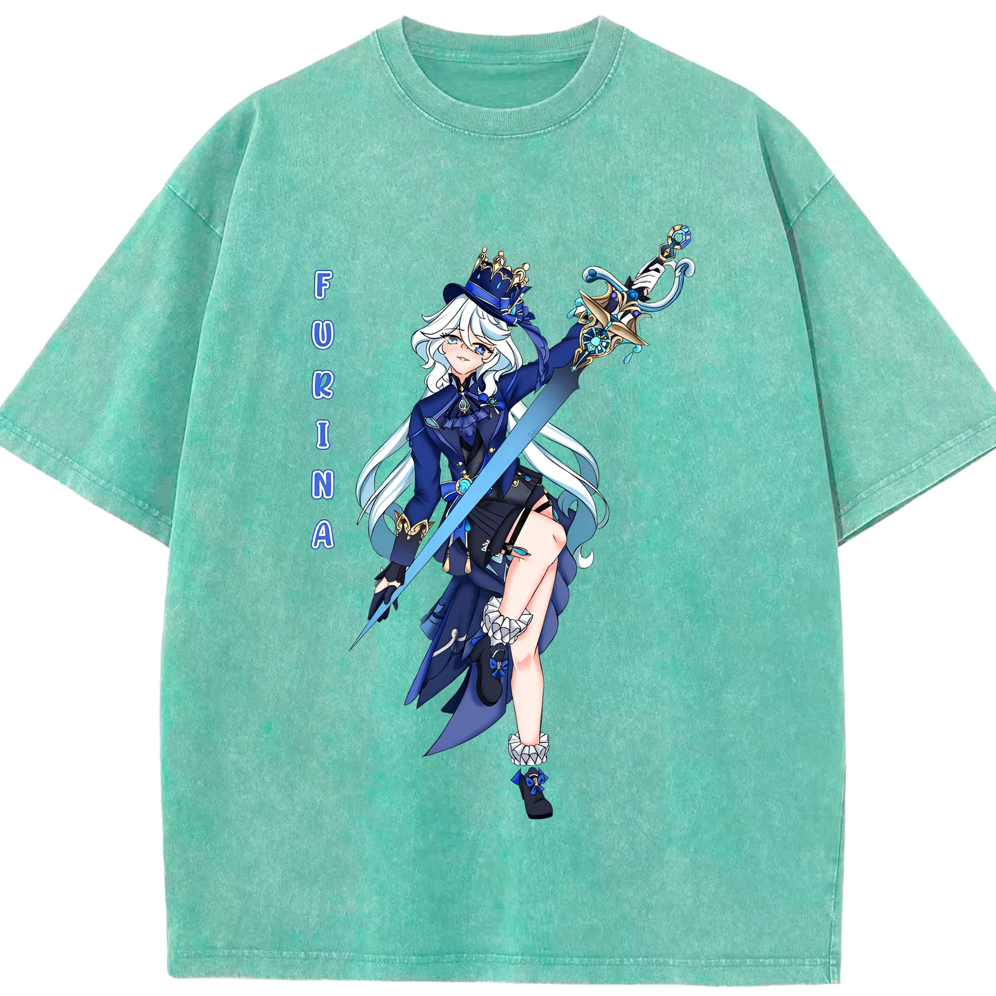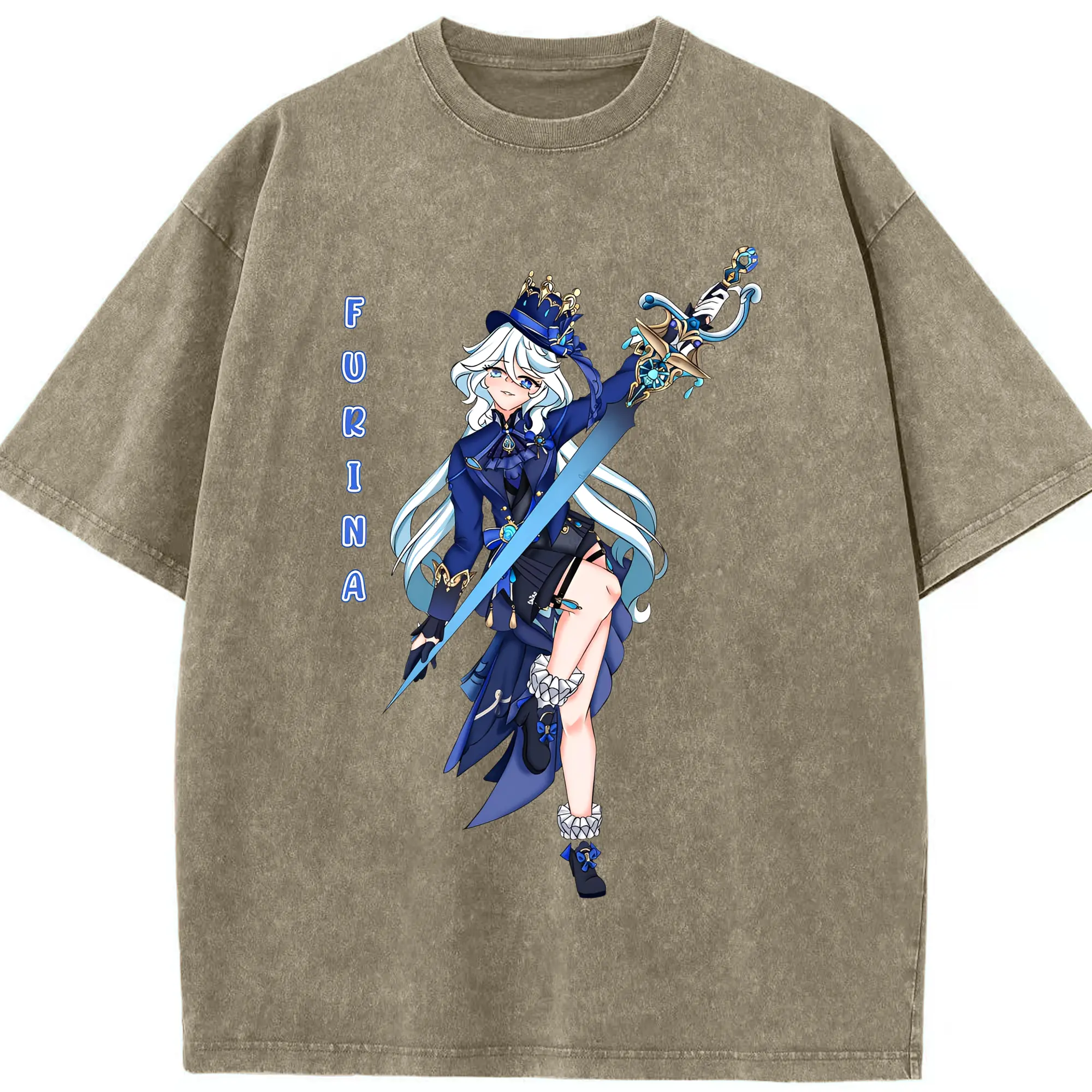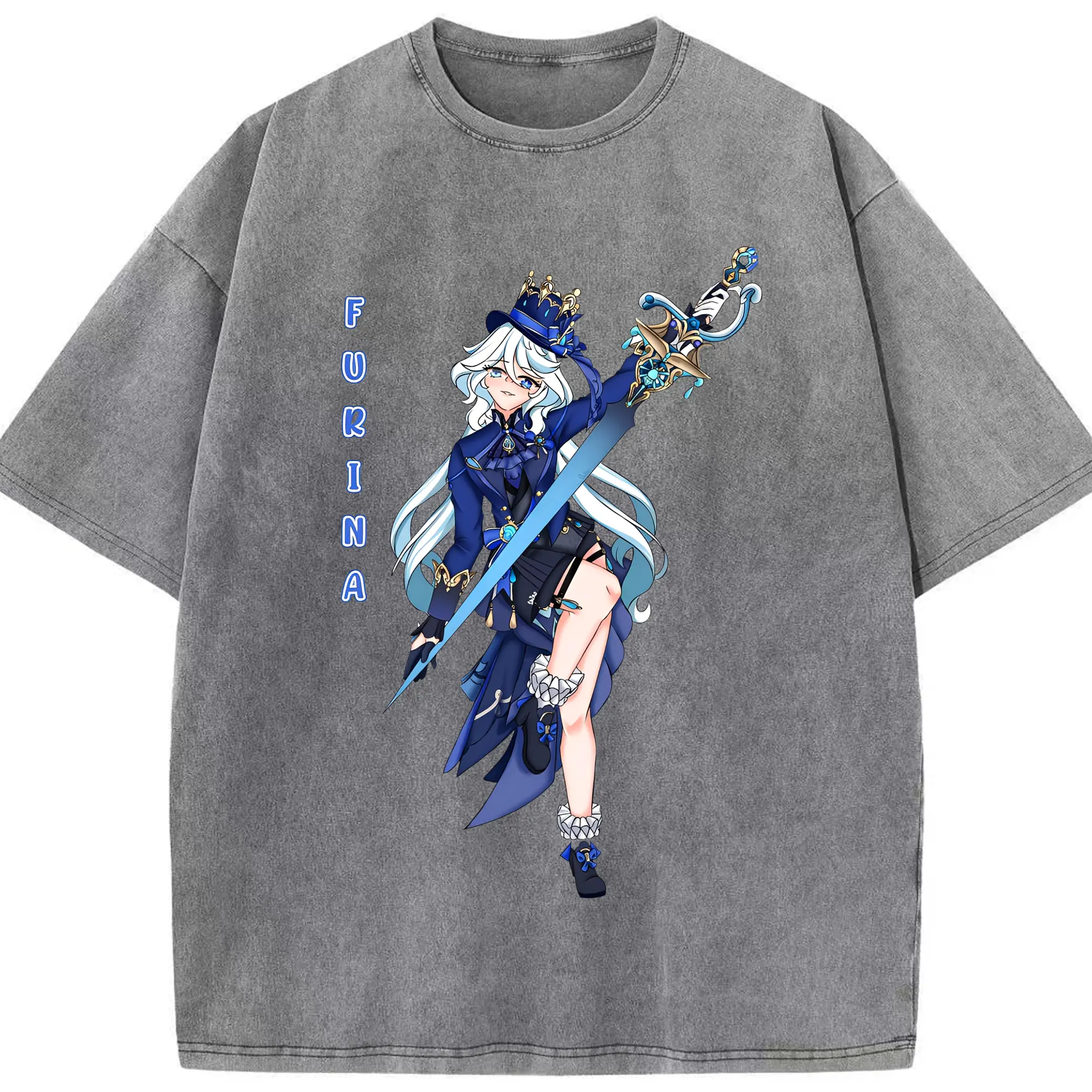 原神 フリナ(水神) ポップカルチャー風アニメプリント - 綿100% 半袖Tシャツ ・ フロントプリント ・ 快適 通気性 ・ 日常使い 散歩 スポーツ用