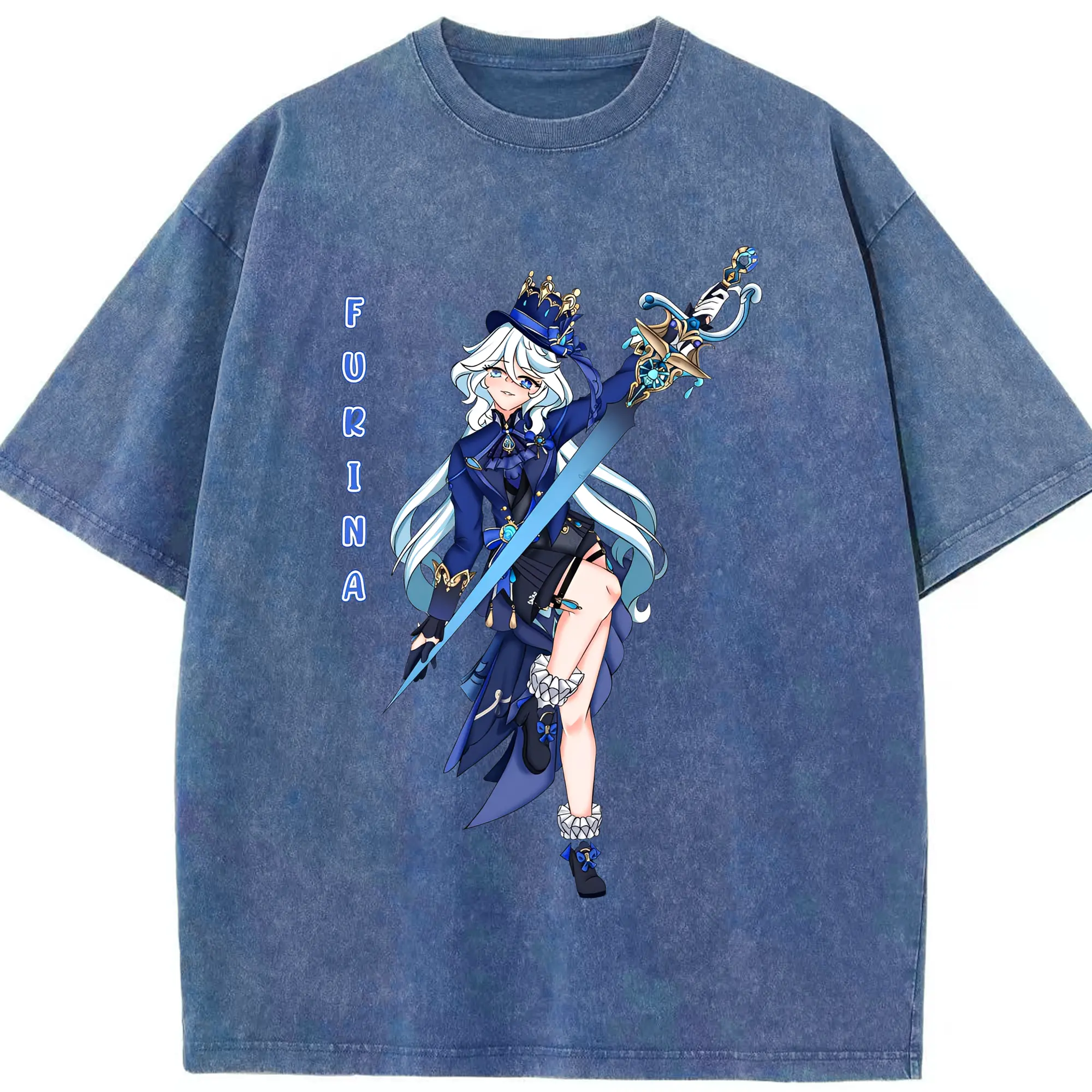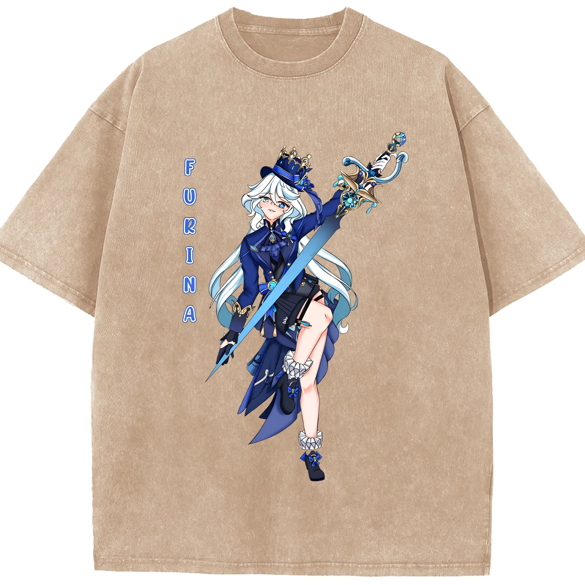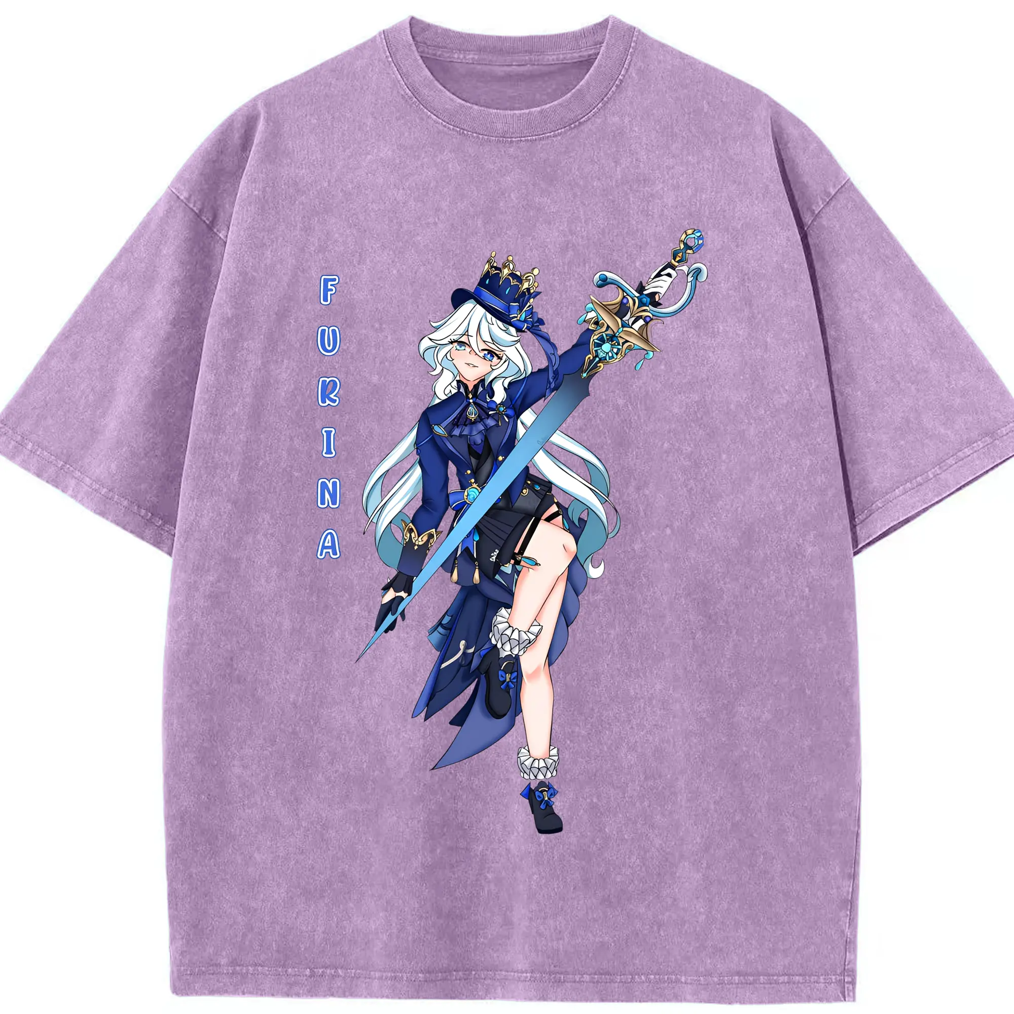原神 フリナ(水神) ポップカルチャー風アニメプリント - 綿100% 半袖Tシャツ ・ フロントプリント ・ 快適 通気性 ・ 日常使い 散歩 スポーツ用