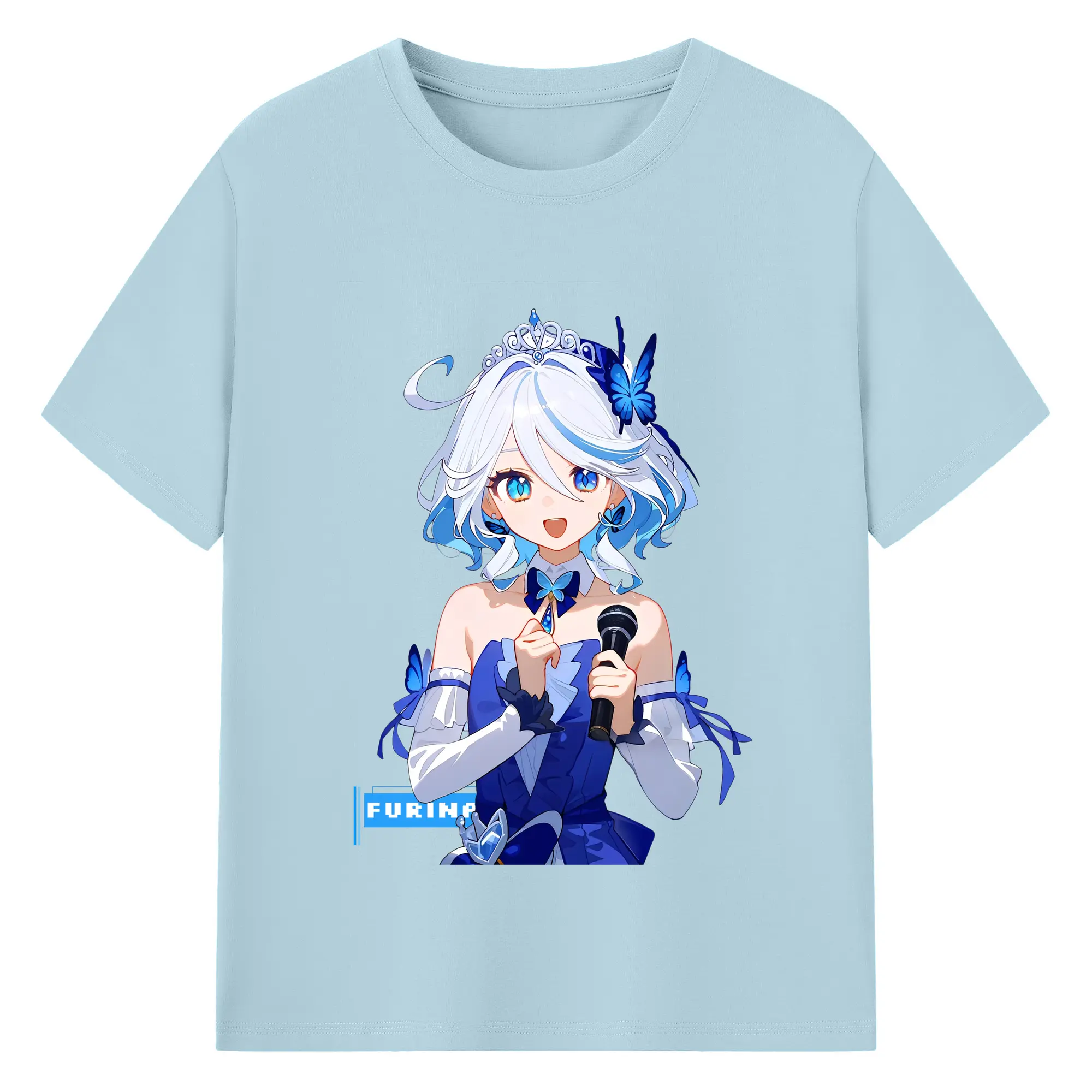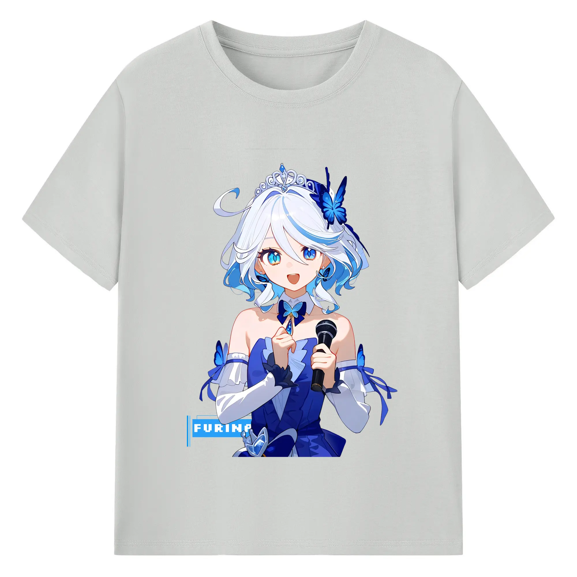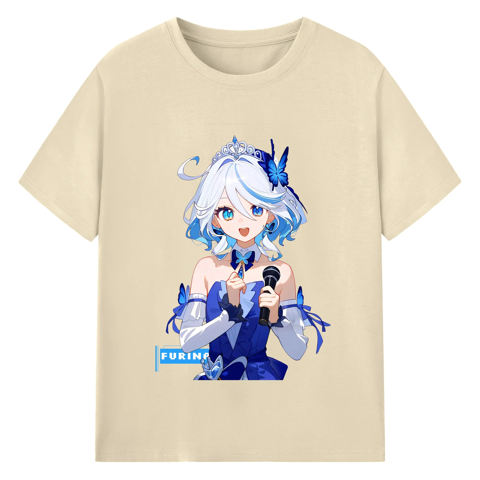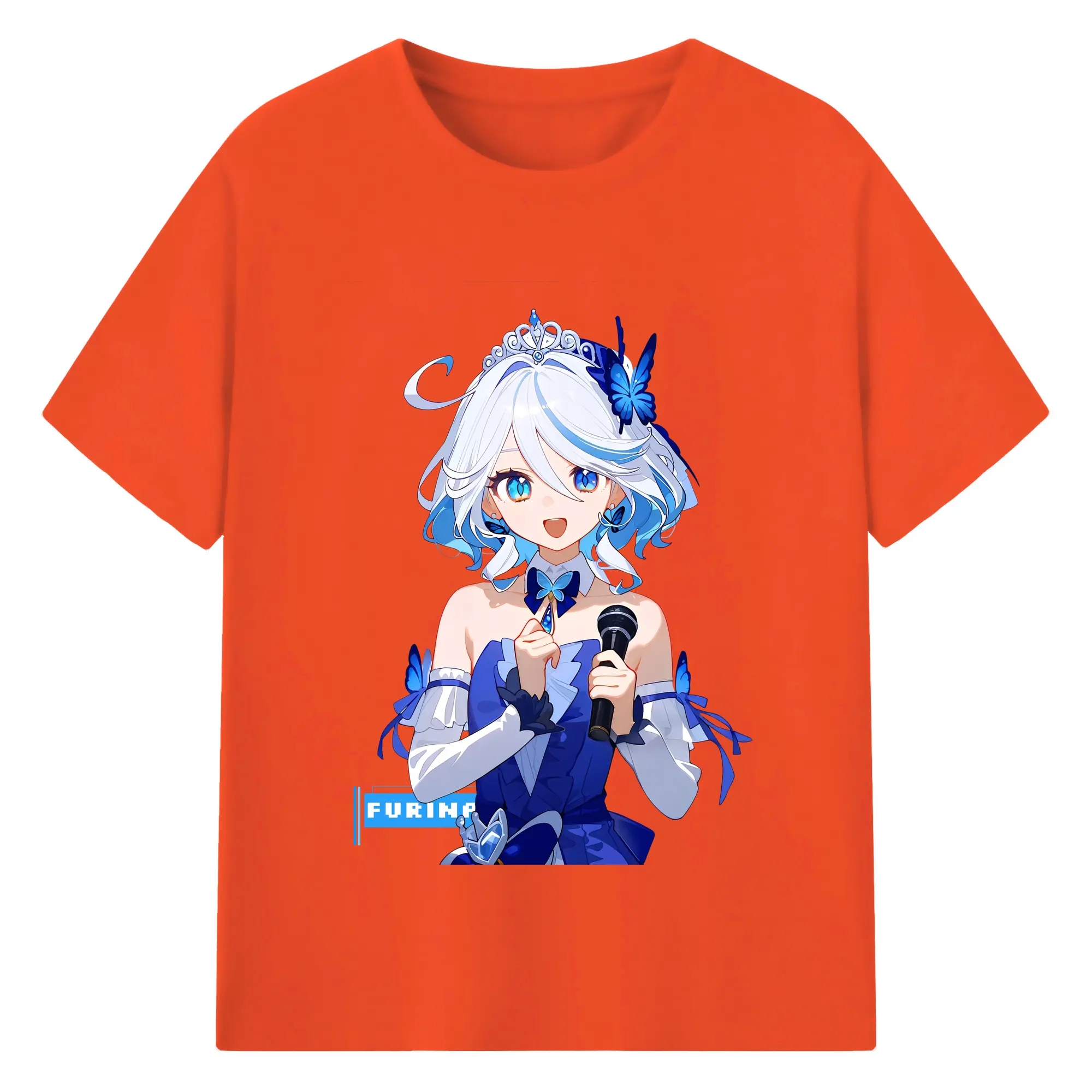原神 フリーナ キャラクターグッズ - 綿100% ヴィンテージ風 半袖Tシャツ ・ フロントプリント ・ 柔らか肌触り ・ 通気性 快適 ・ スポーツ カジュアル 外出用