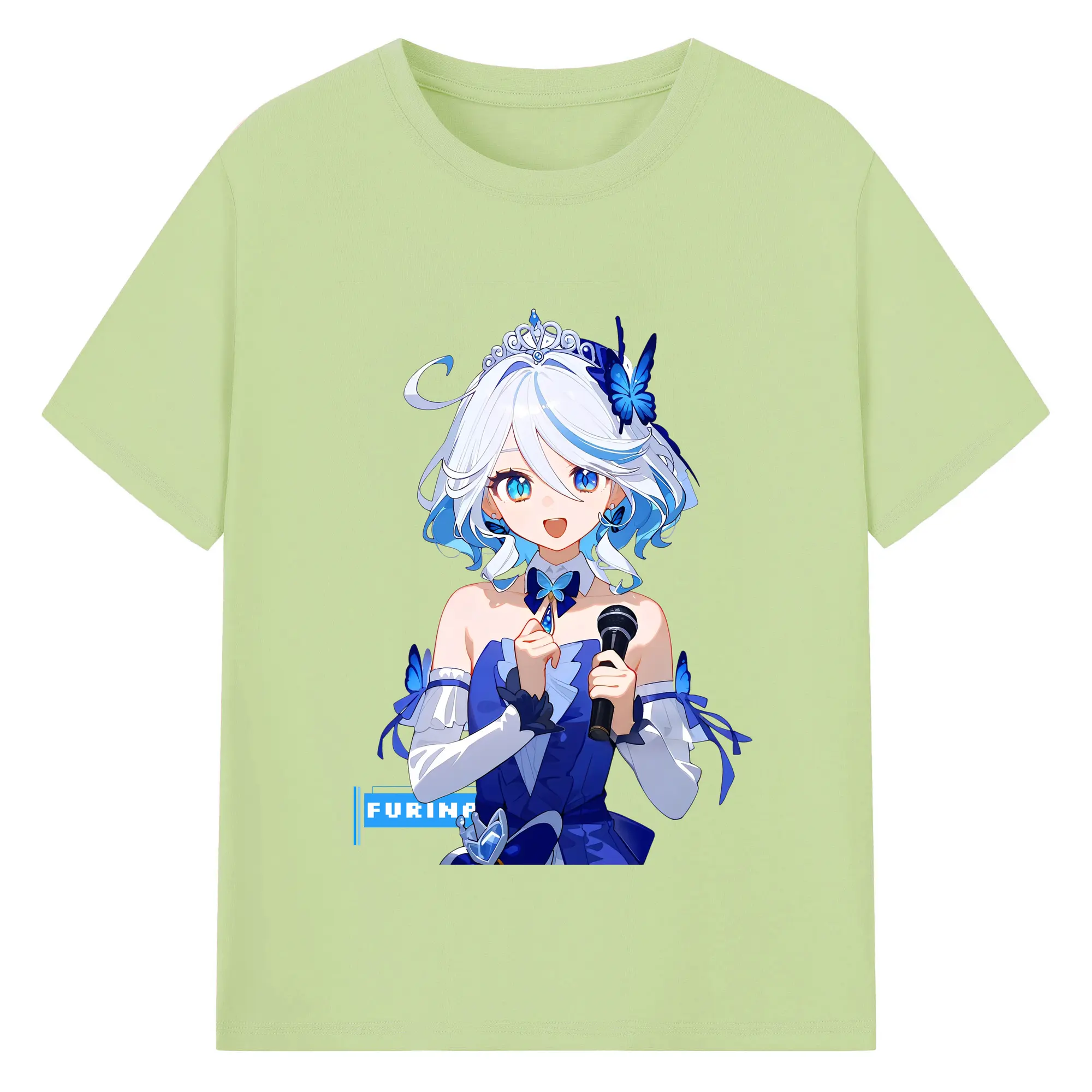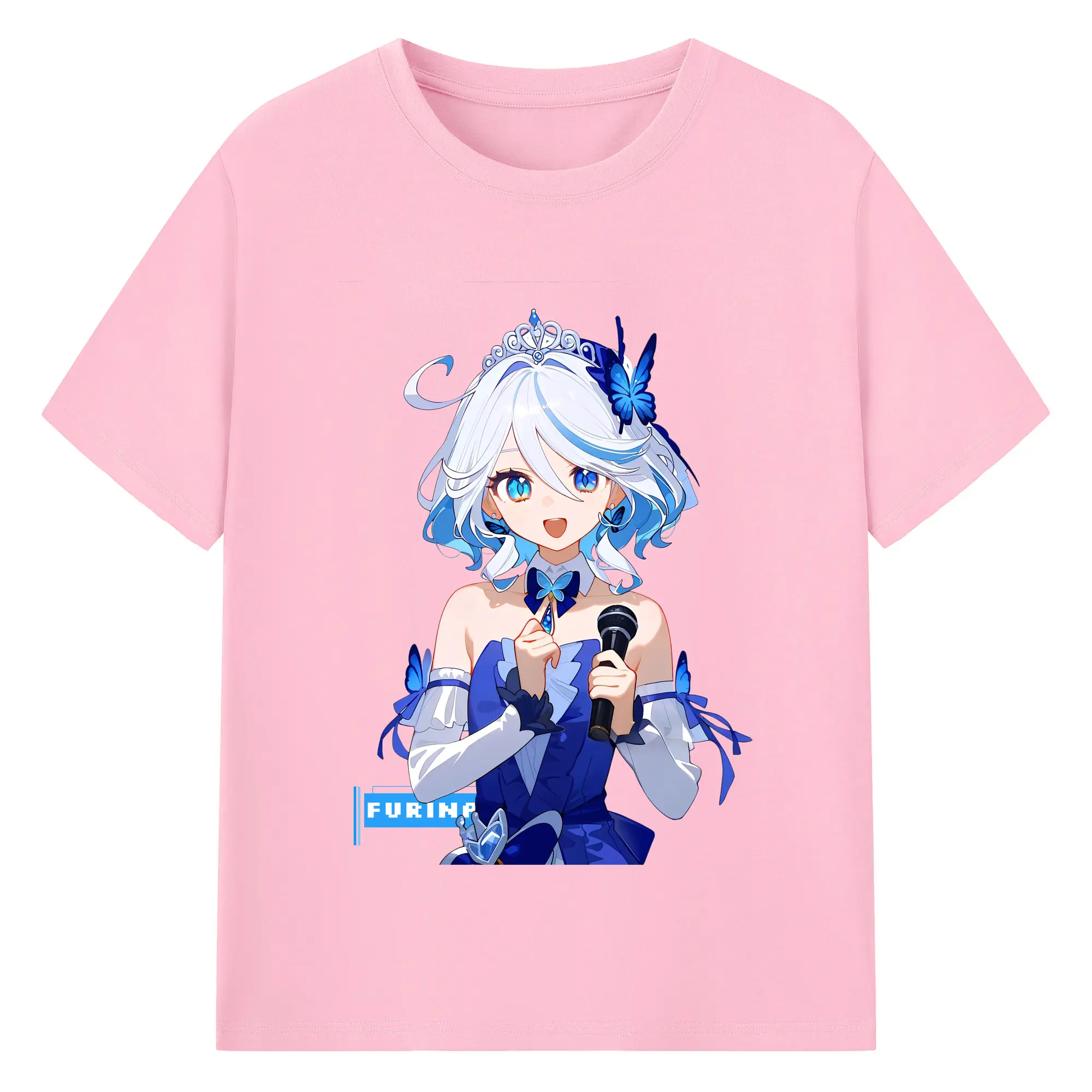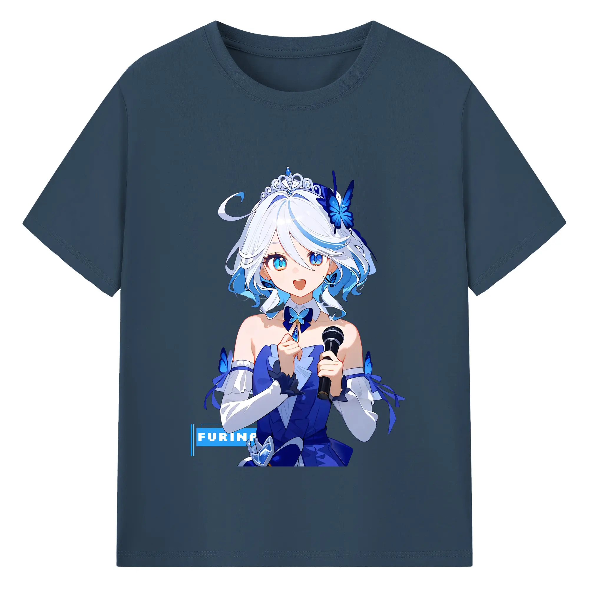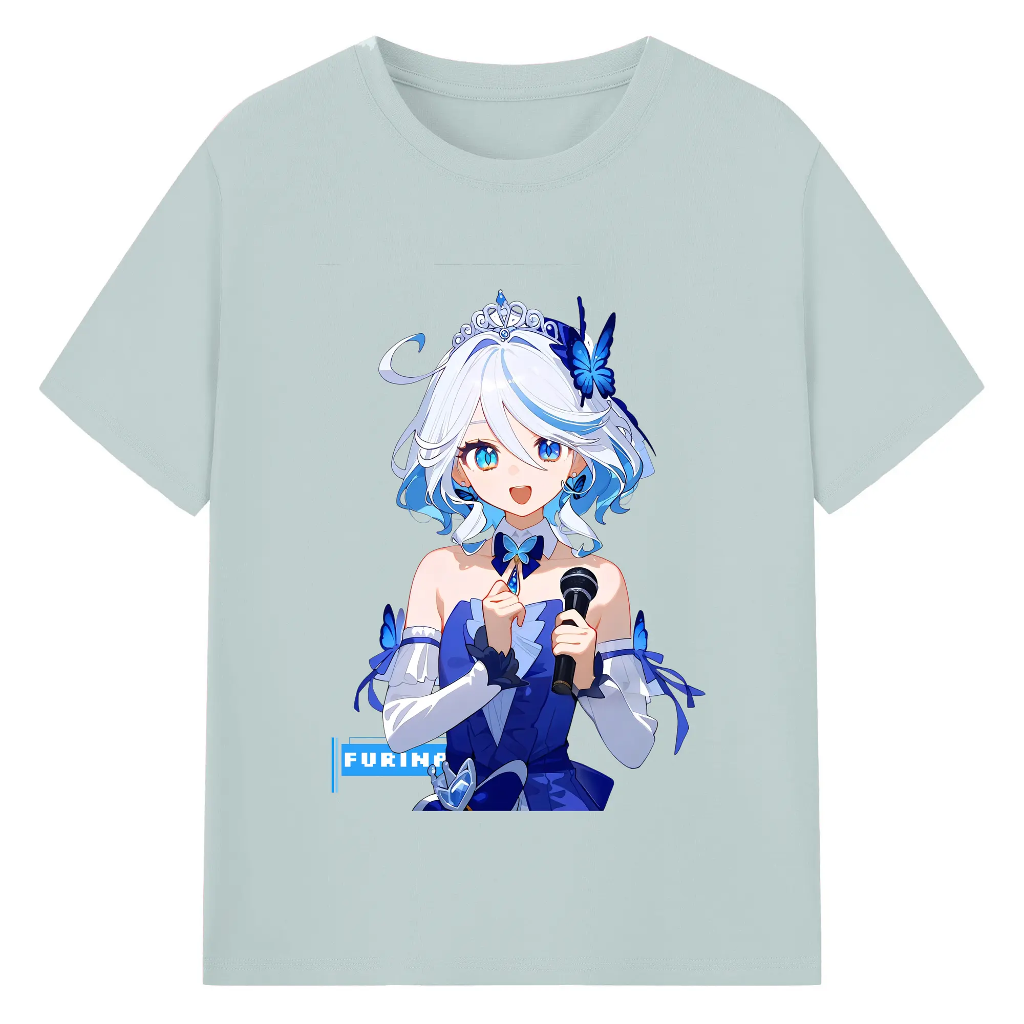 原神 フリーナ キャラクターグッズ - 綿100% ヴィンテージ風 半袖Tシャツ ・ フロントプリント ・ 柔らか肌触り ・ 通気性 快適 ・ スポーツ カジュアル 外出用