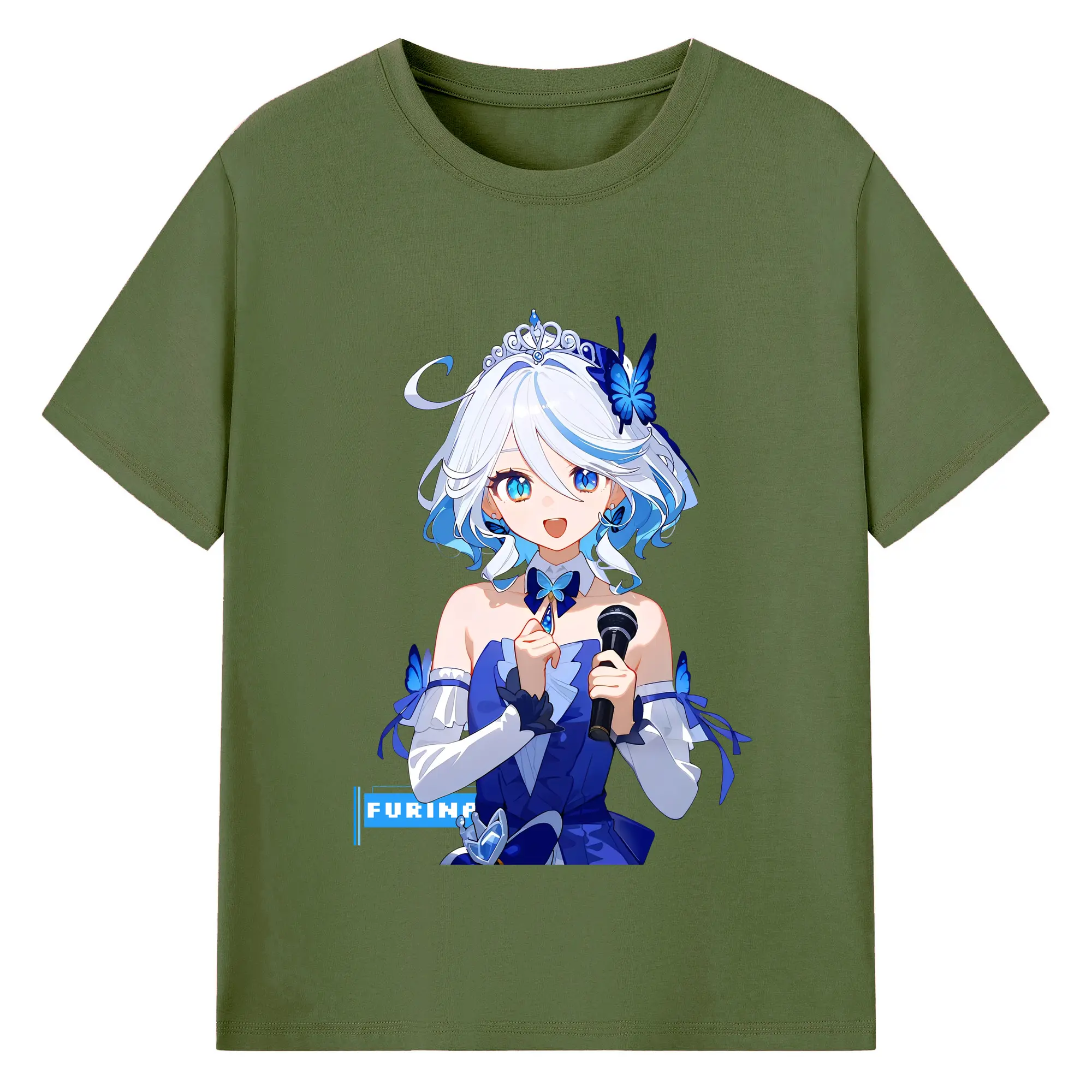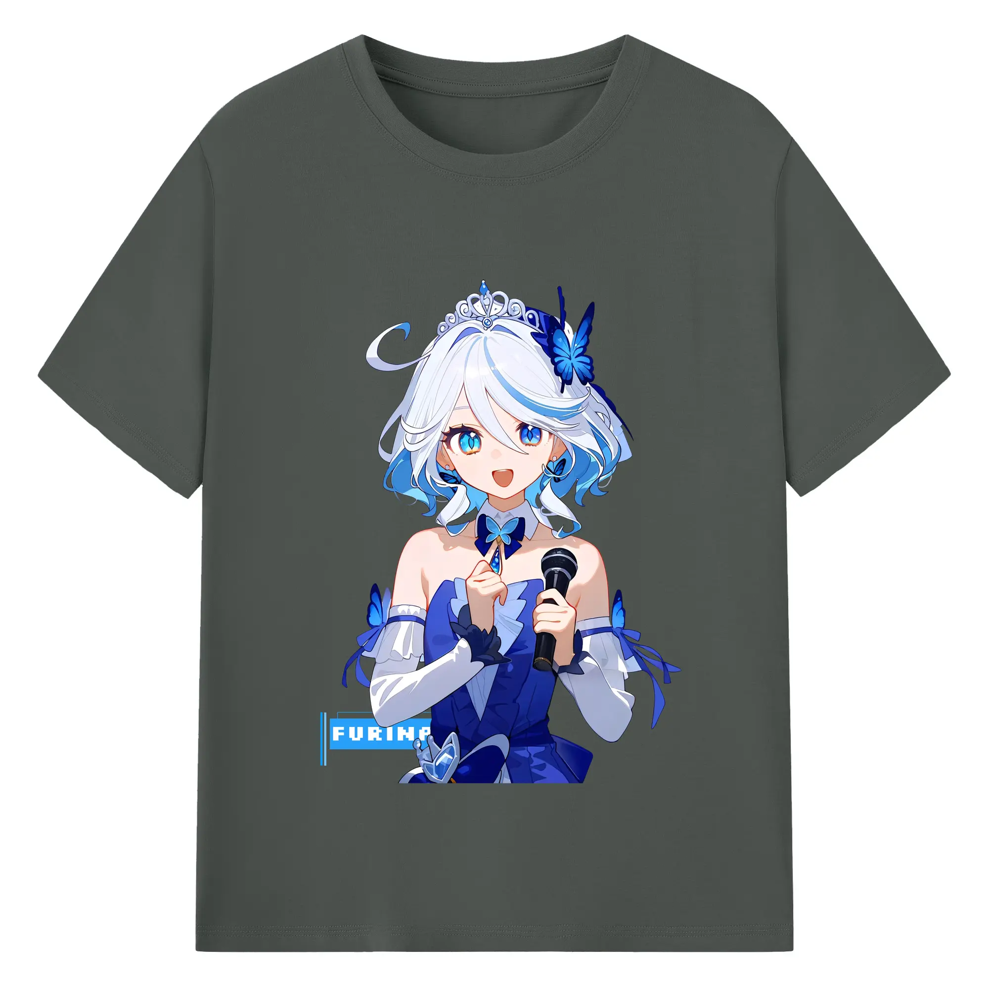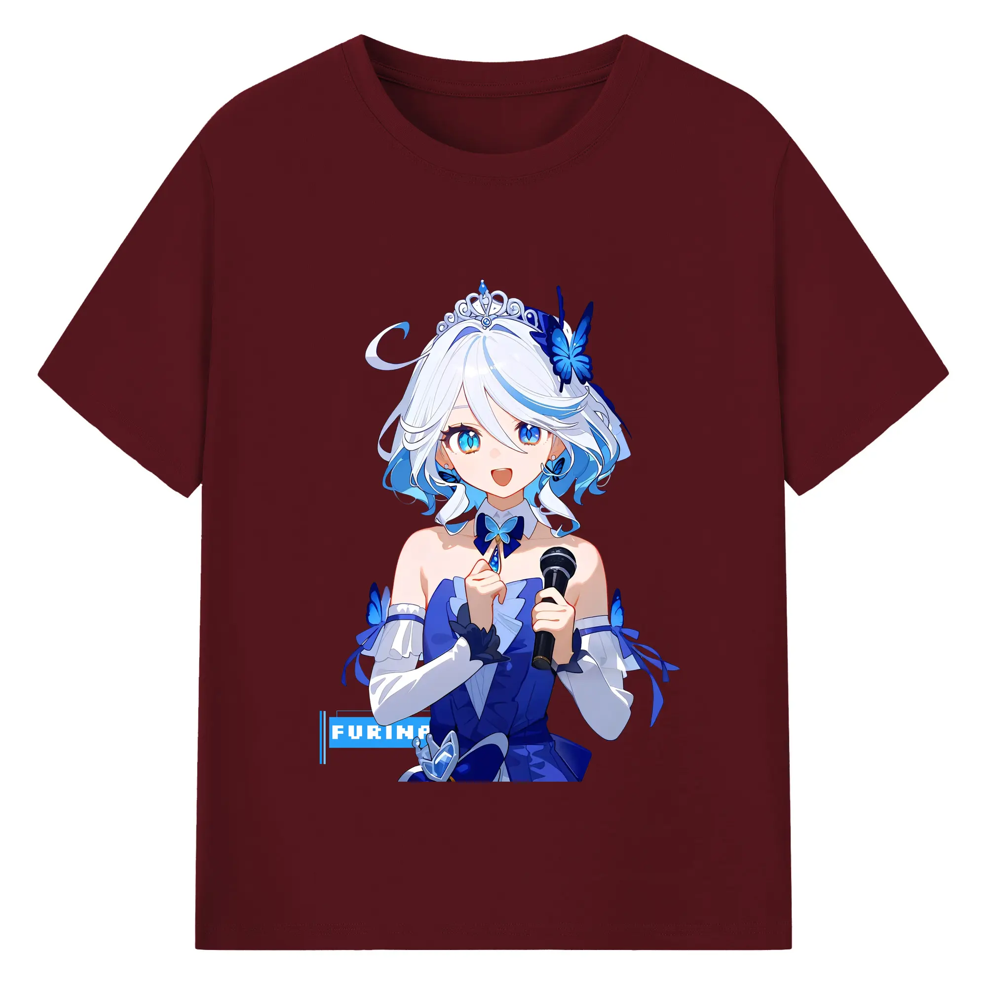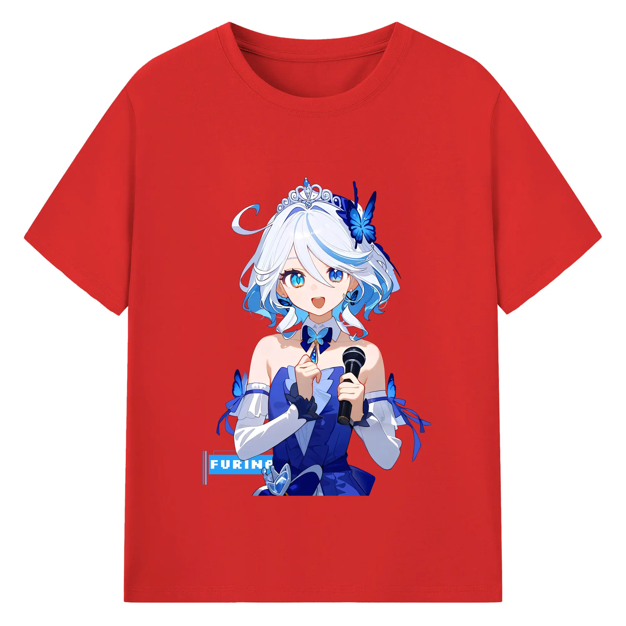 原神 フリーナ キャラクターグッズ - 綿100% ヴィンテージ風 半袖Tシャツ ・ フロントプリント ・ 柔らか肌触り ・ 通気性 快適 ・ スポーツ カジュアル 外出用