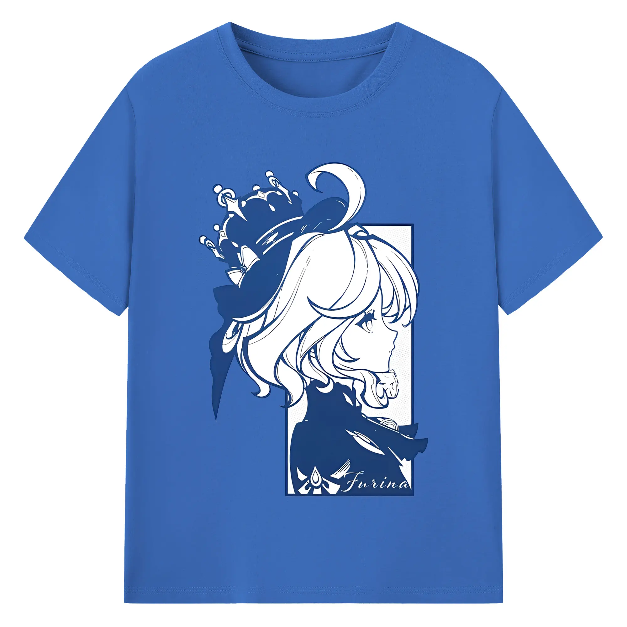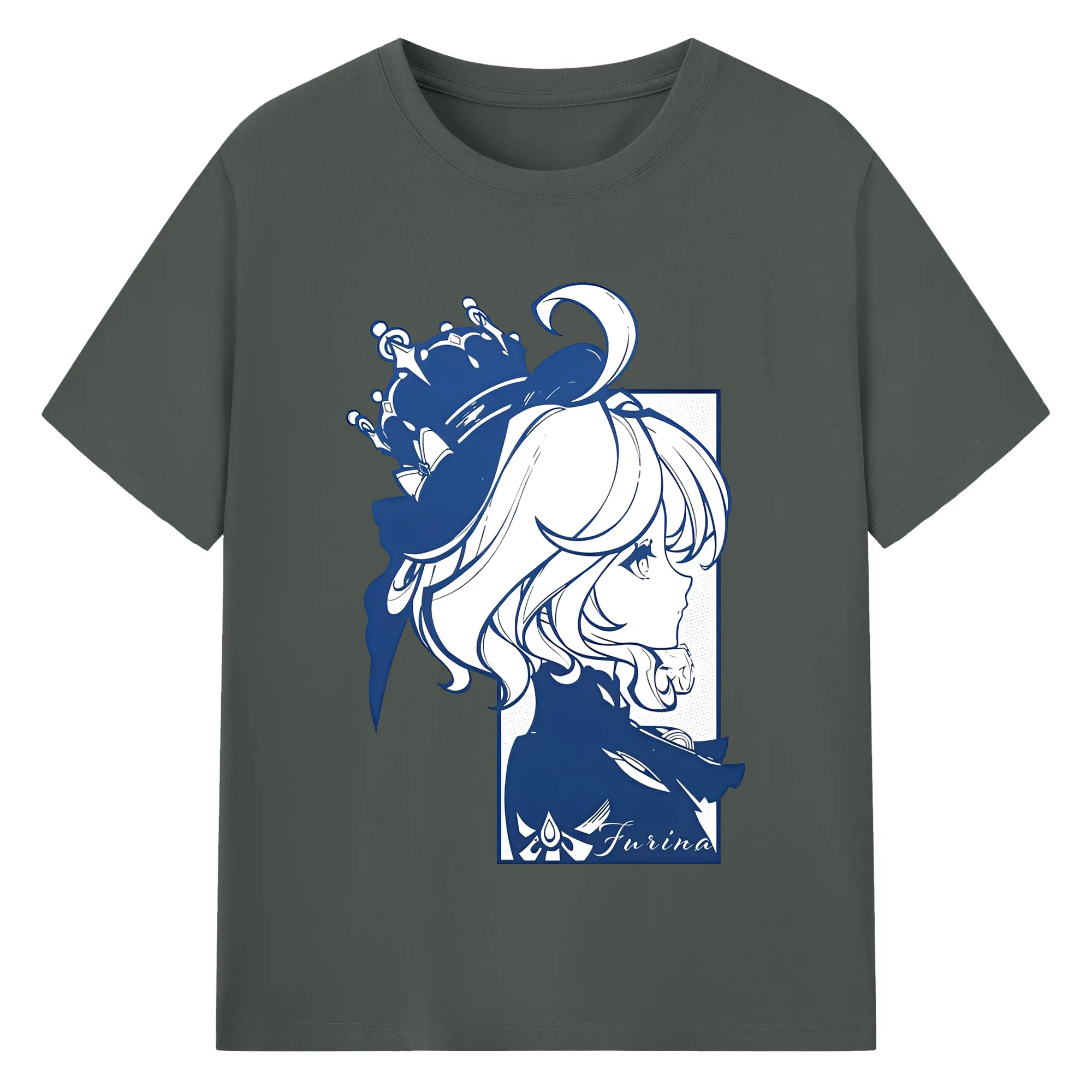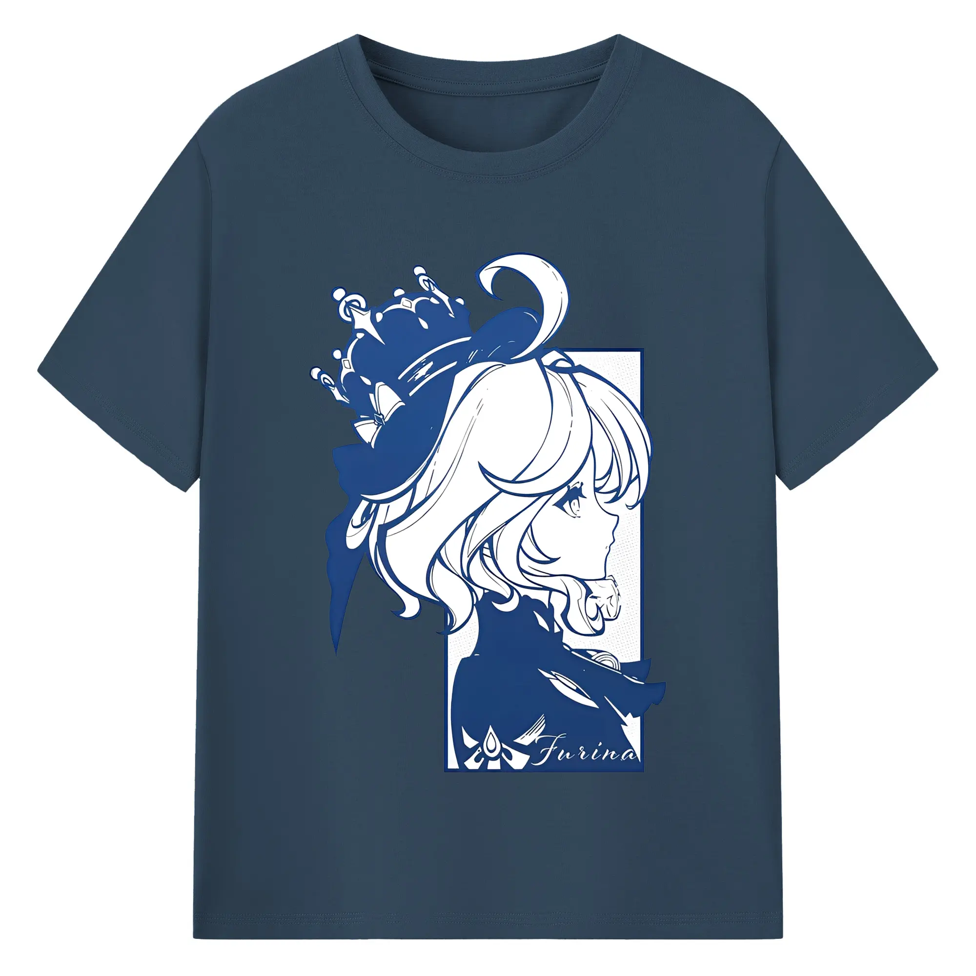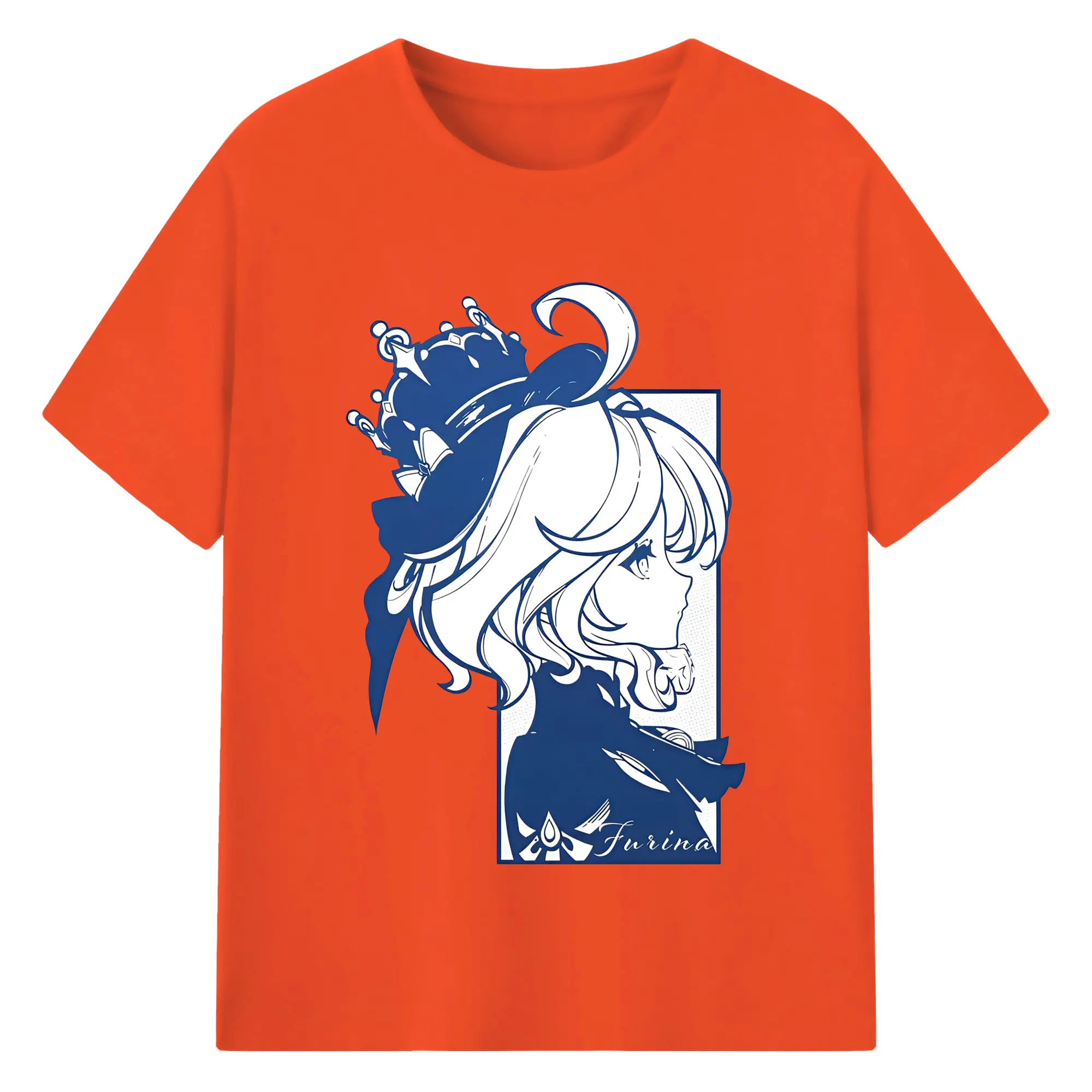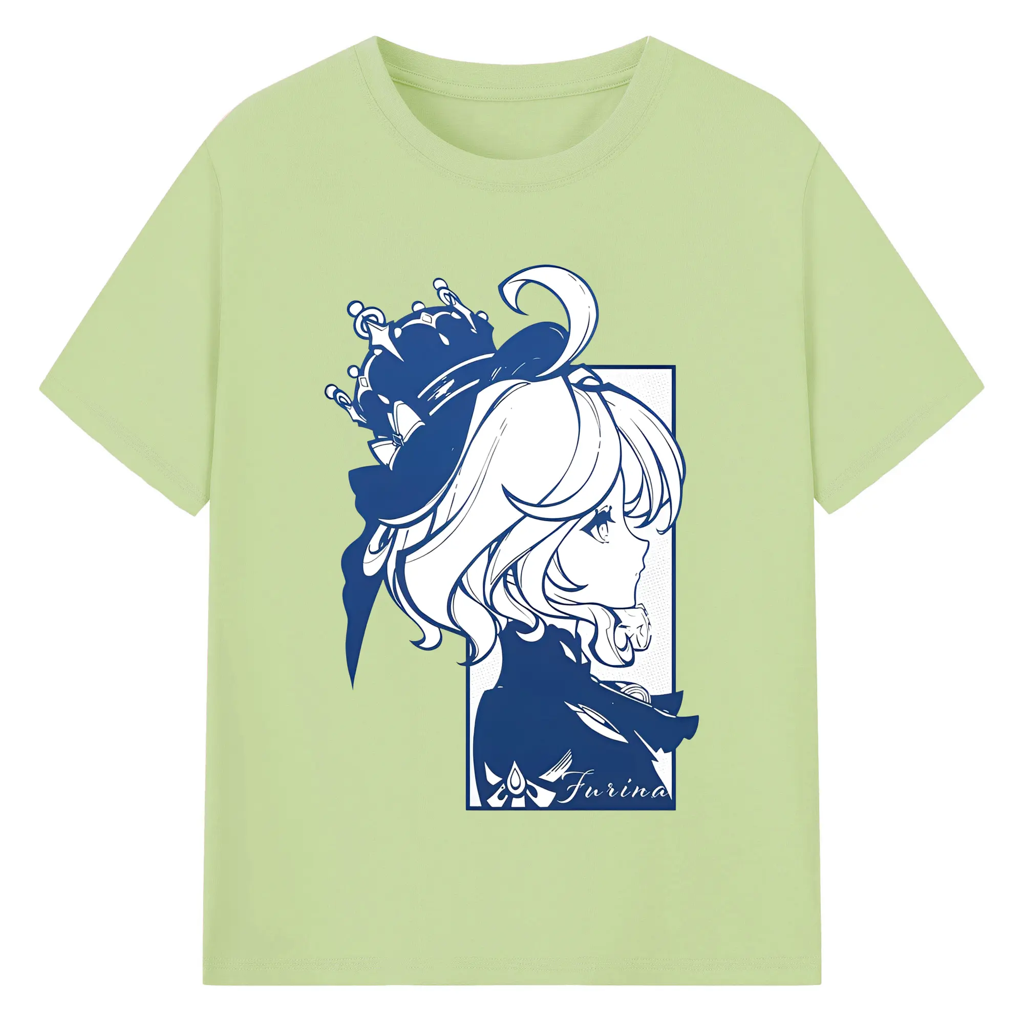 原神 フリーナ グラフィックアート - 綿100% ヴィンテージ風 半袖Tシャツ ・ フロントプリント ・ 柔らか肌触り ・ 通気性 快適 ・ スポーツ カジュアル 外出用