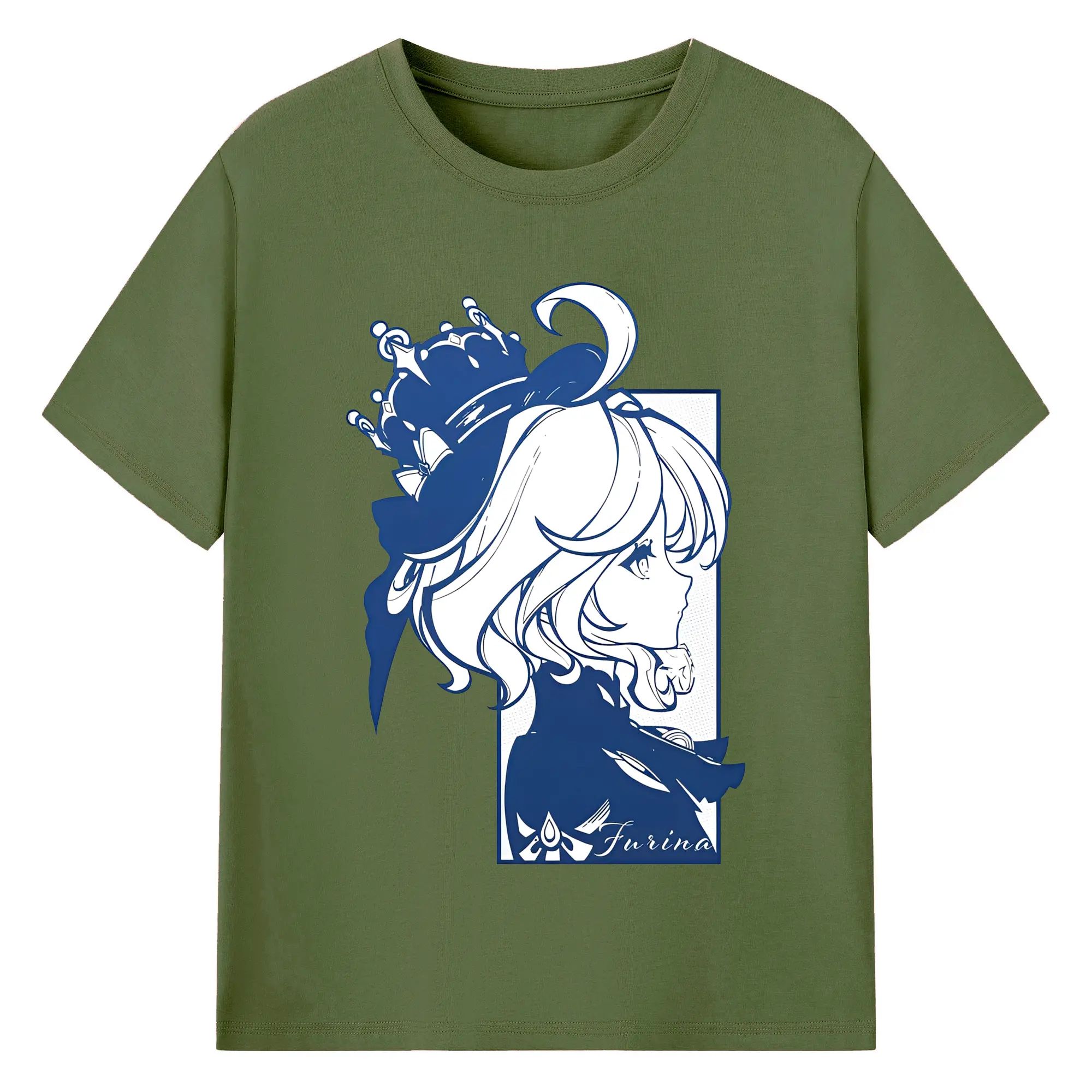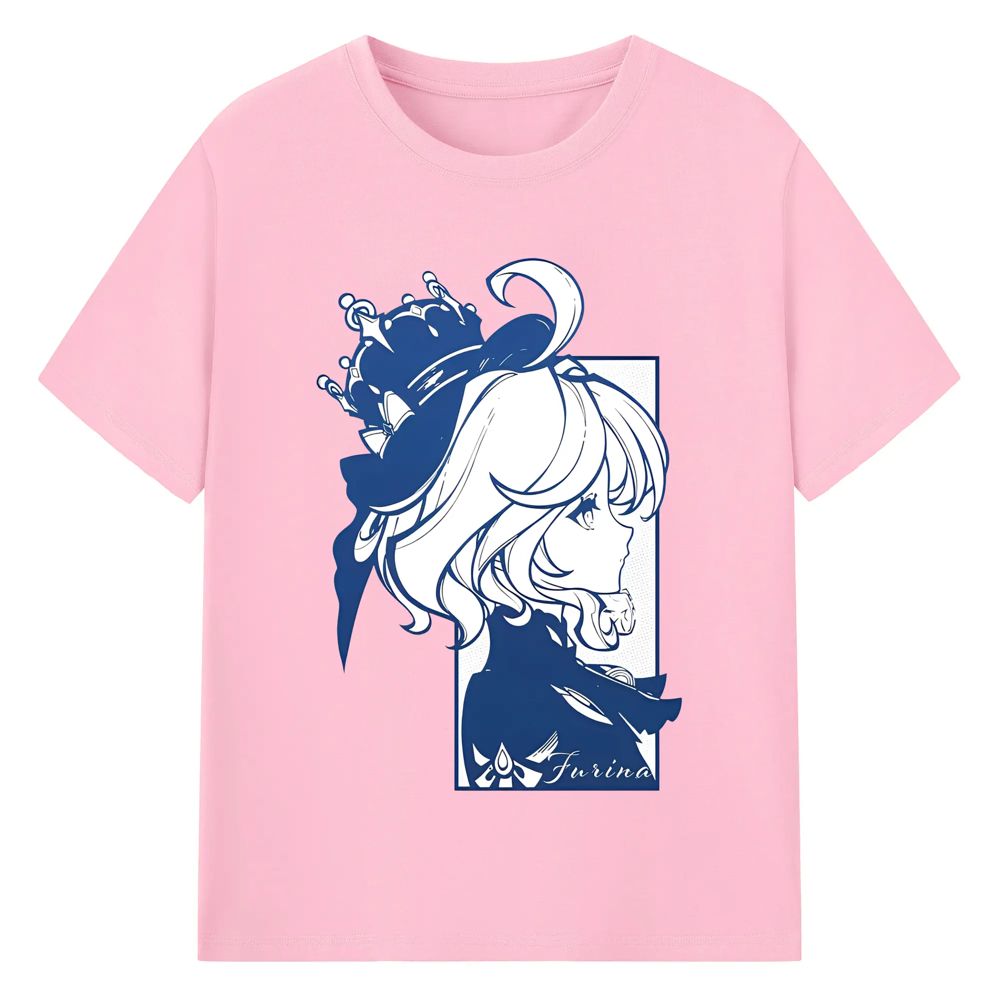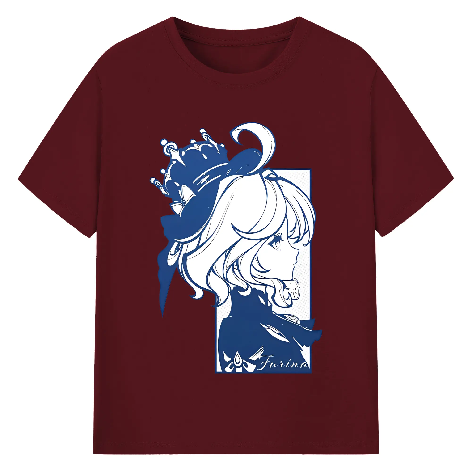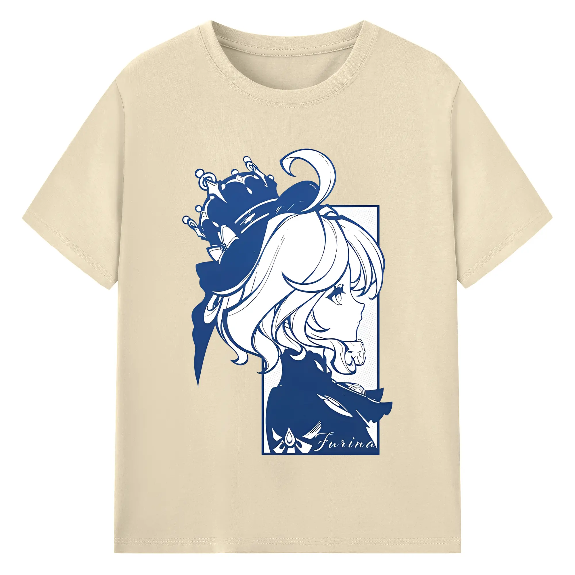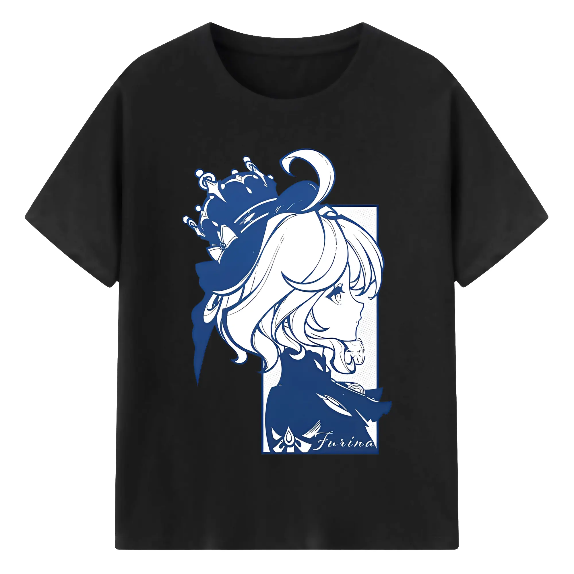 原神 フリーナ グラフィックアート - 綿100% ヴィンテージ風 半袖Tシャツ ・ フロントプリント ・ 柔らか肌触り ・ 通気性 快適 ・ スポーツ カジュアル 外出用