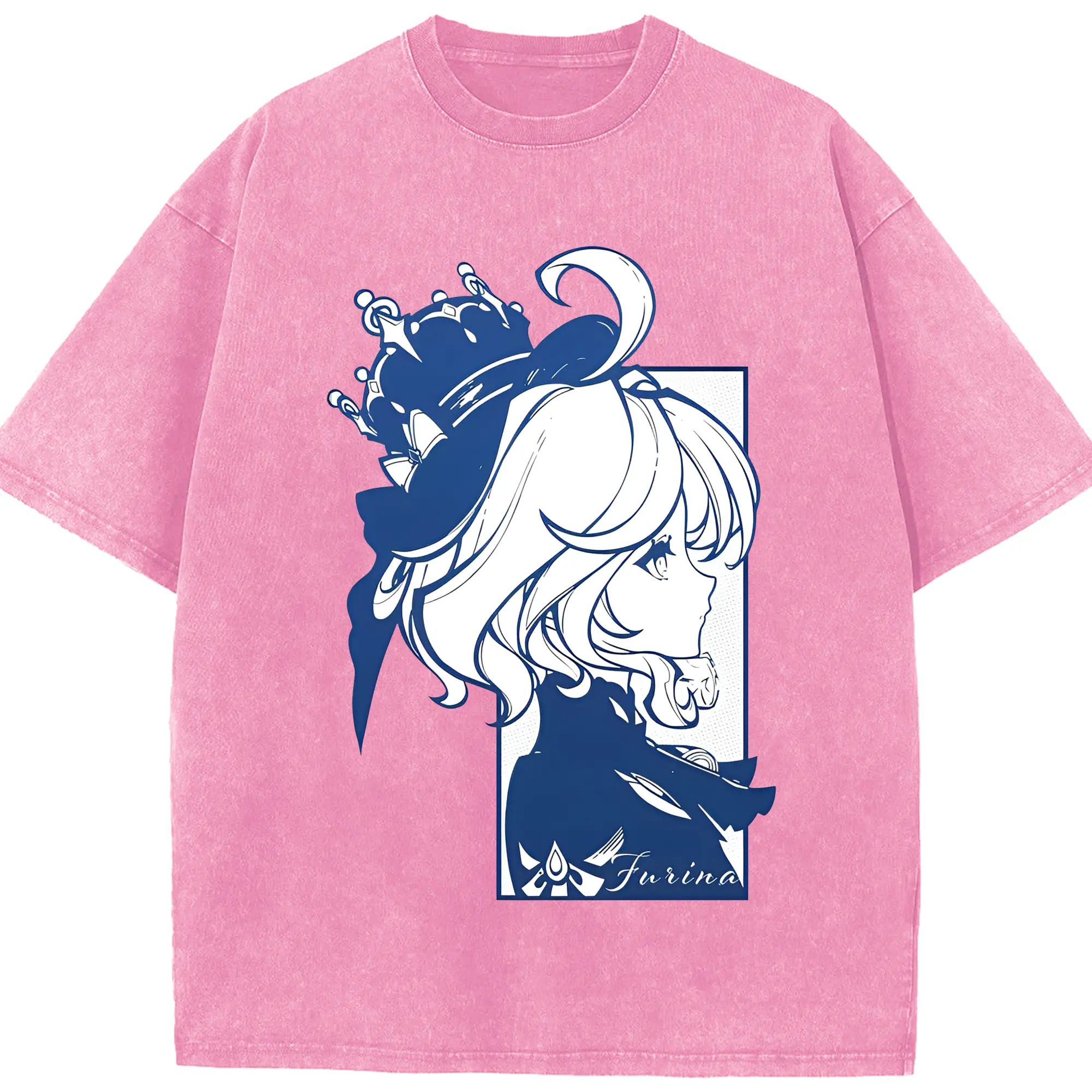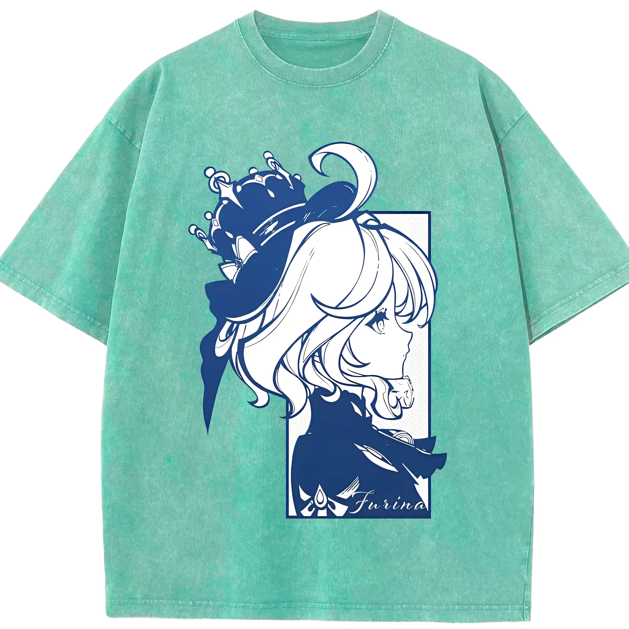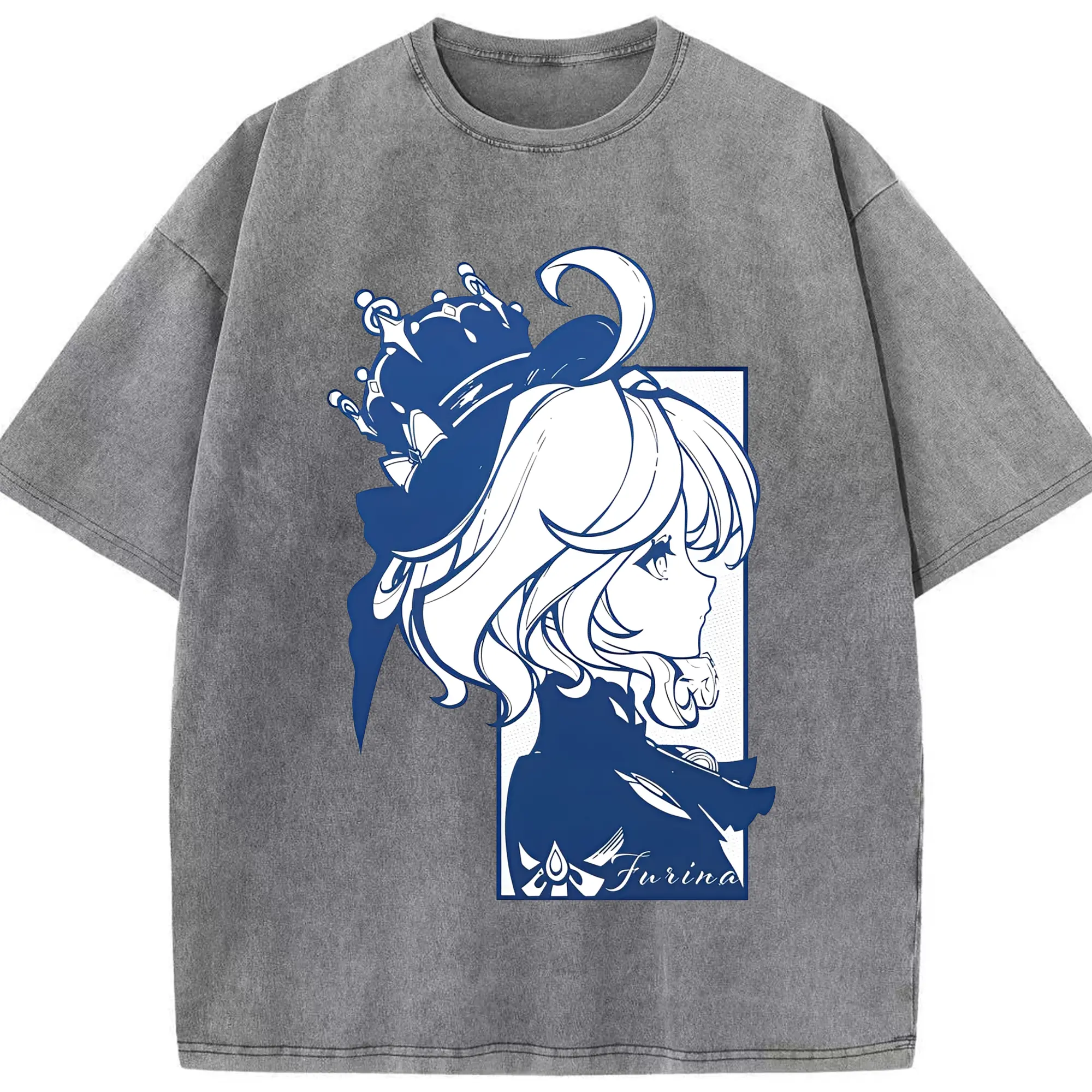 原神 フリーナ グラフィックアート - 綿100% 半袖Tシャツ ・ フロントプリント ・ 快適 通気性 ・ 日常使い 散歩 スポーツ用