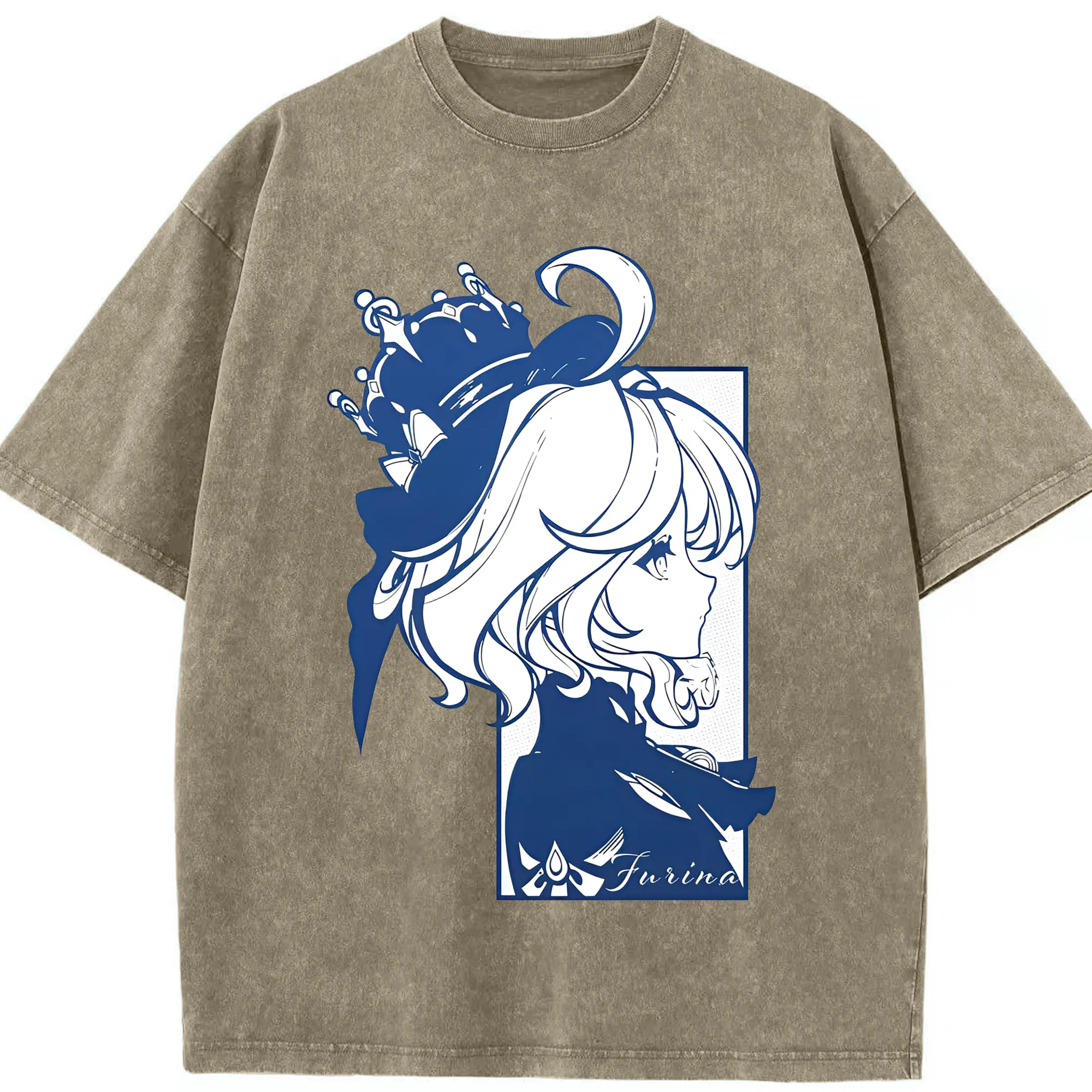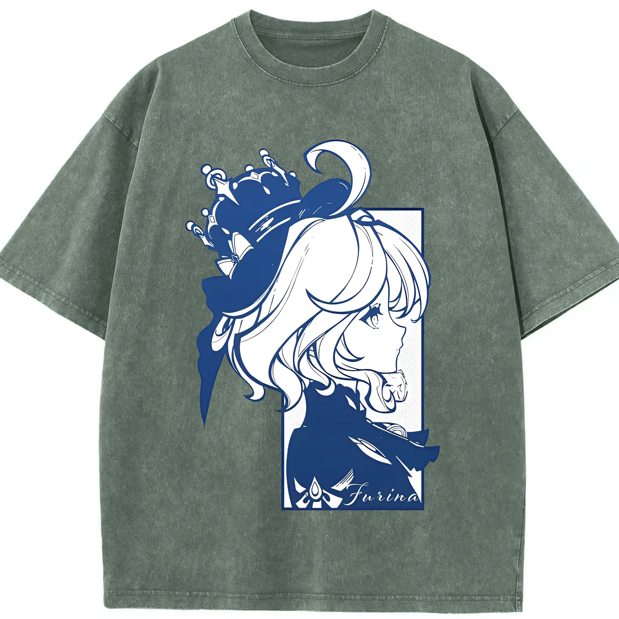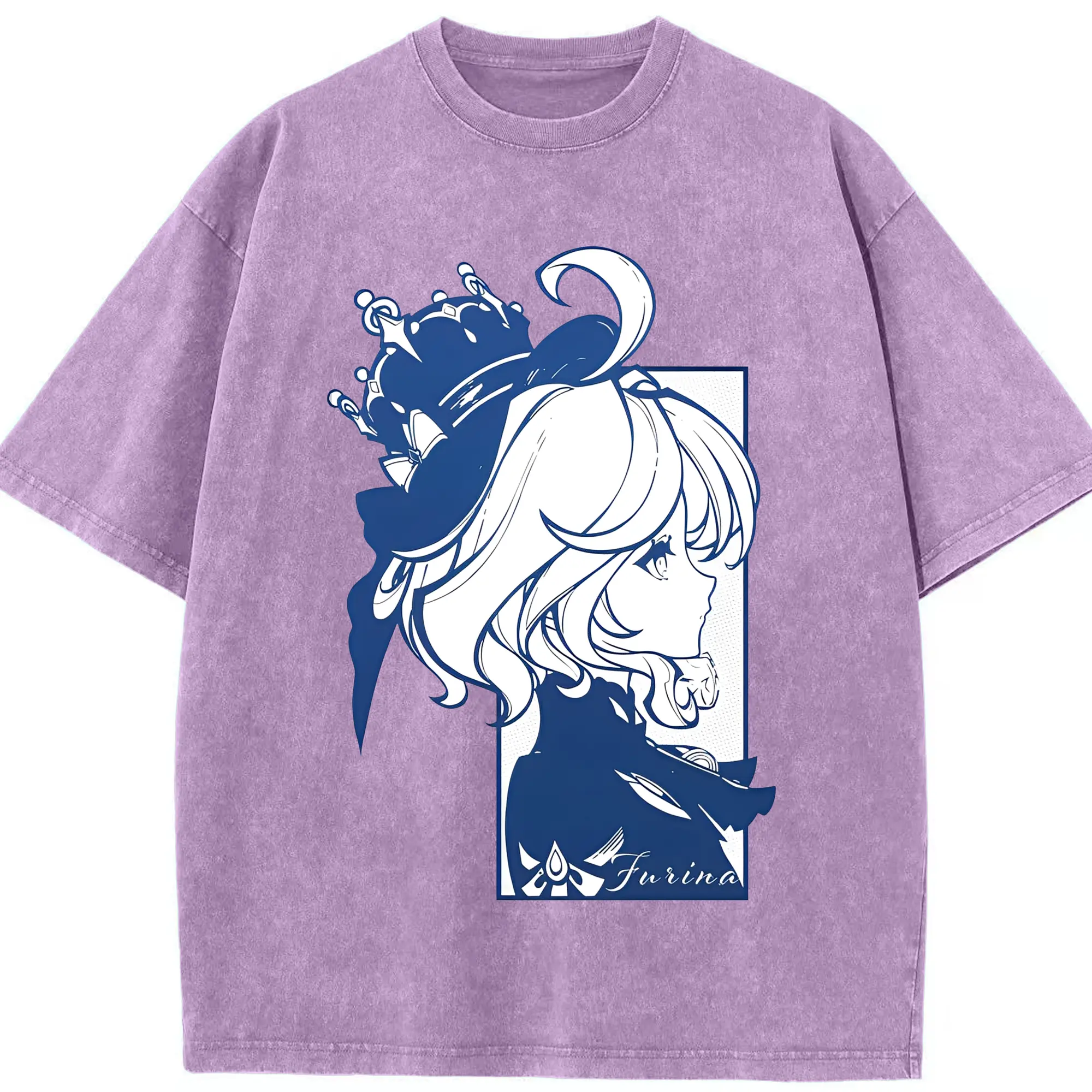 原神 フリーナ グラフィックアート - 綿100% 半袖Tシャツ ・ フロントプリント ・ 快適 通気性 ・ 日常使い 散歩 スポーツ用