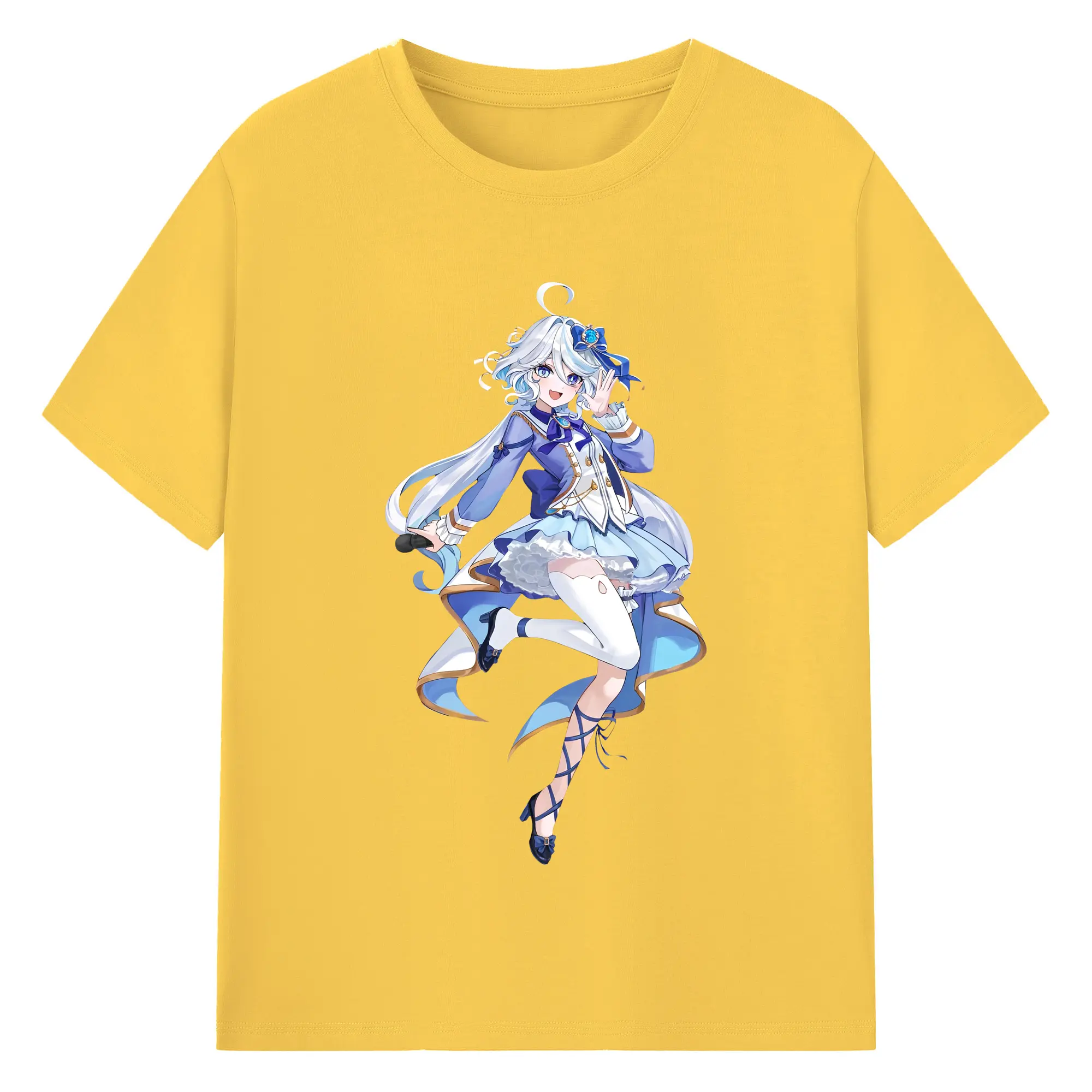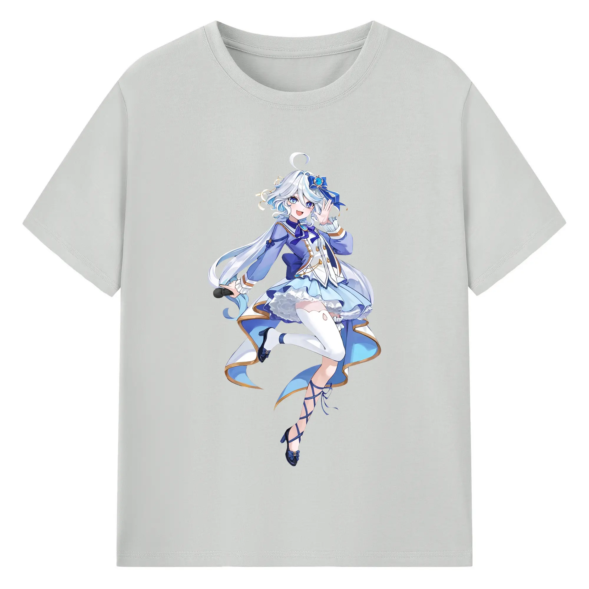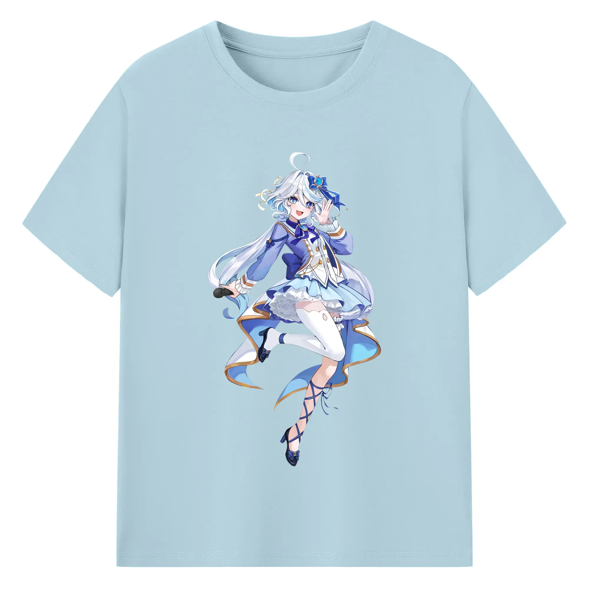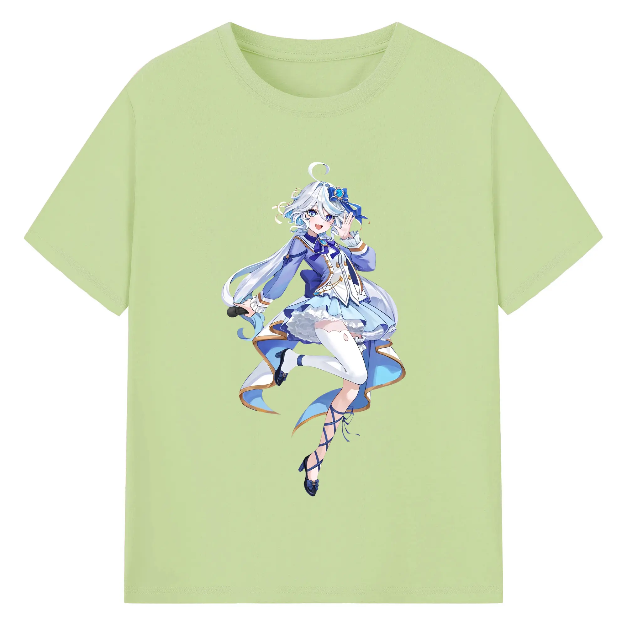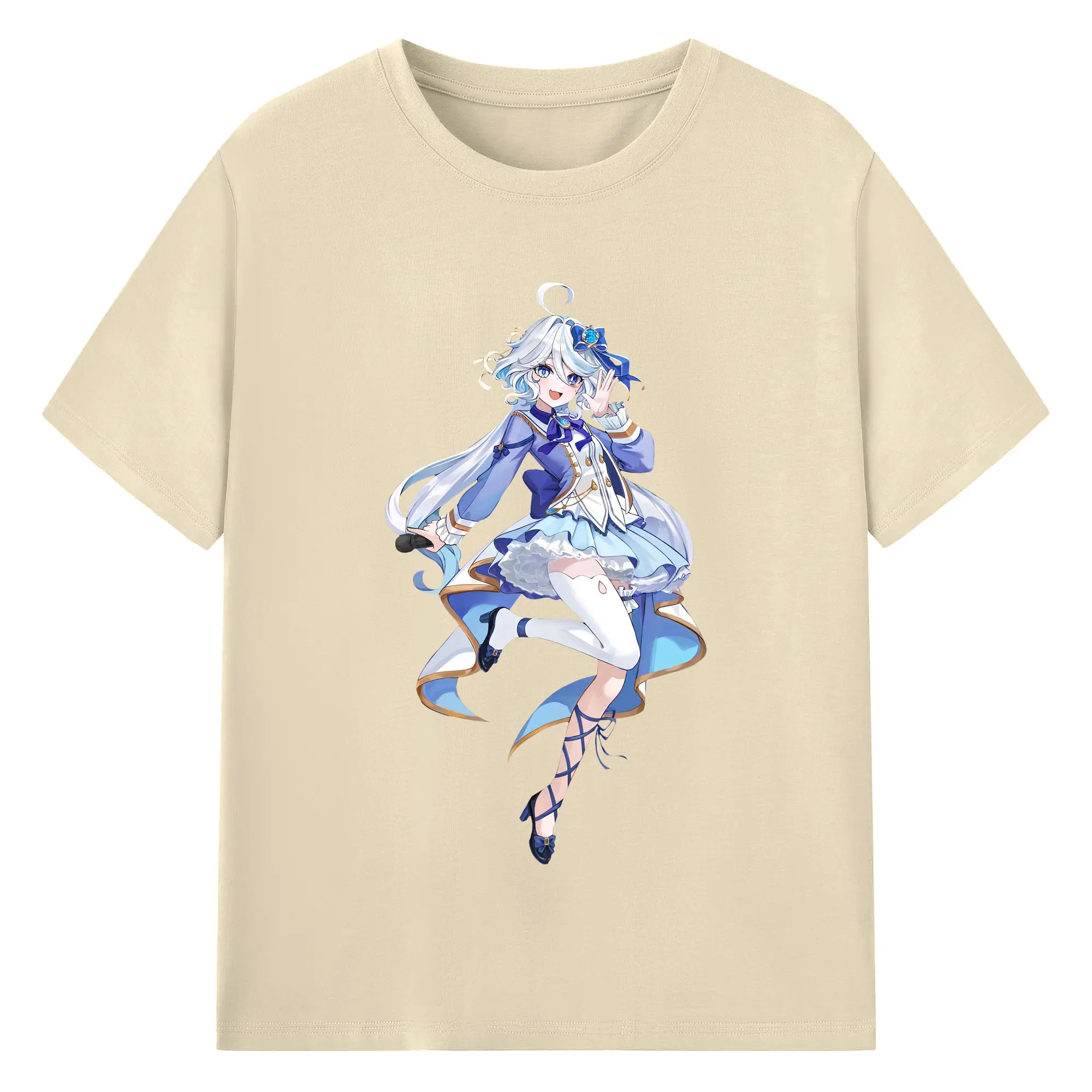 原神 フリーナ ポップカルチャー風プリント - 綿100% ヴィンテージ風 半袖Tシャツ ・ フロントプリント ・ 柔らか肌触り ・ 通気性 快適 ・ スポーツ カジュアル 外出用