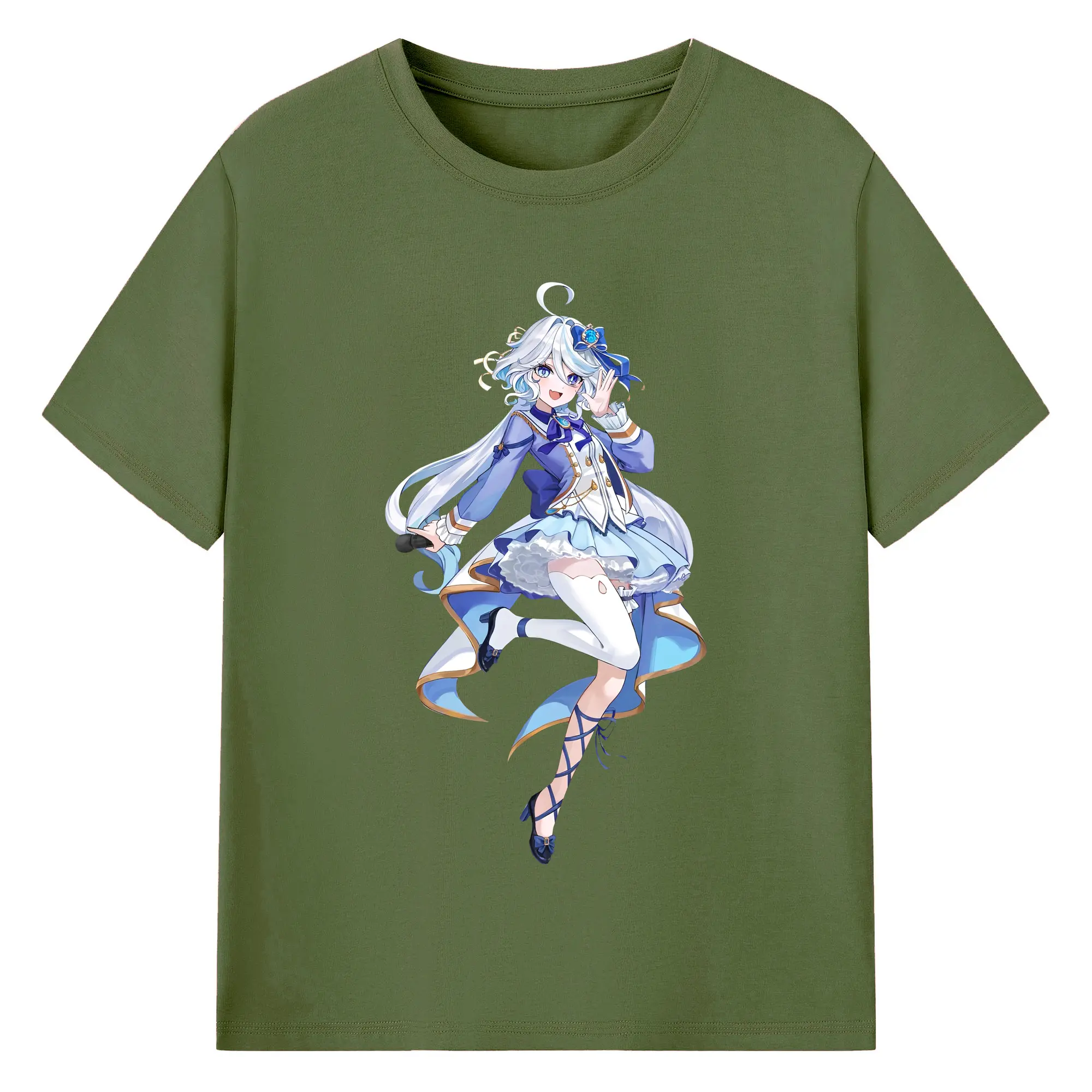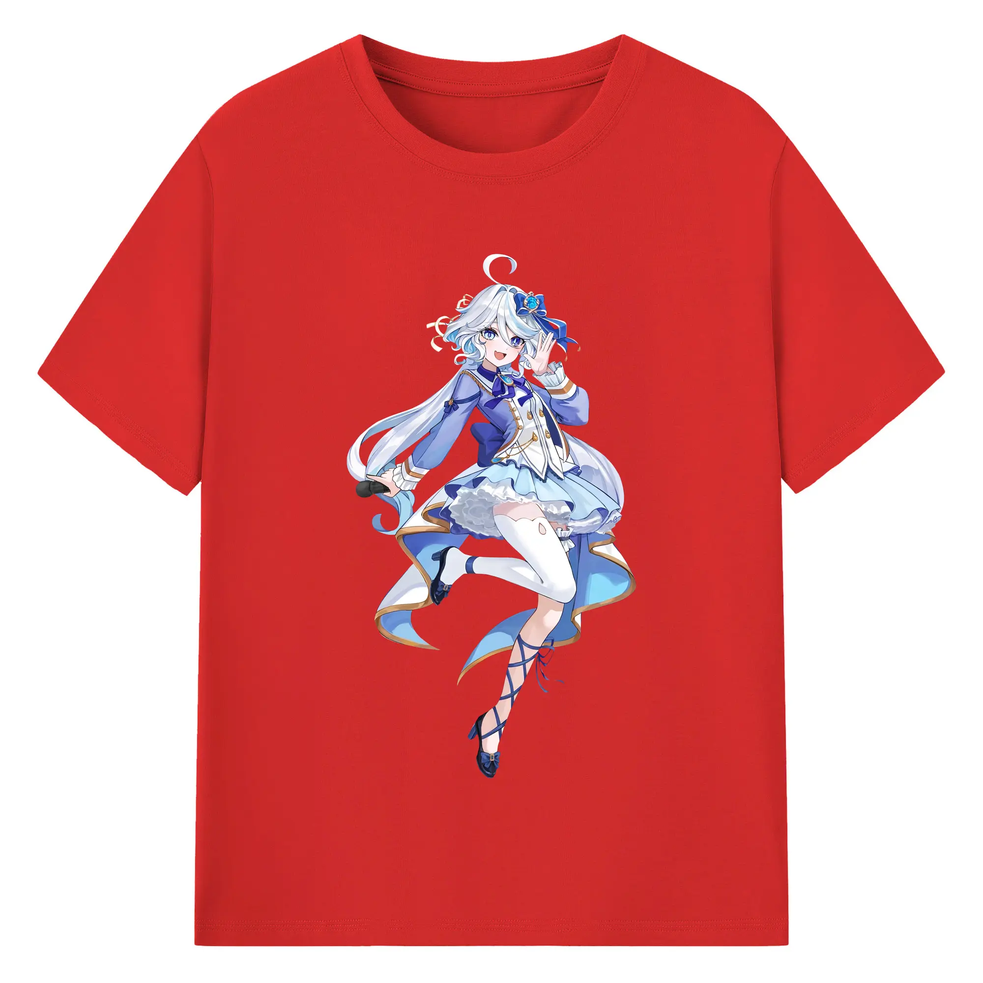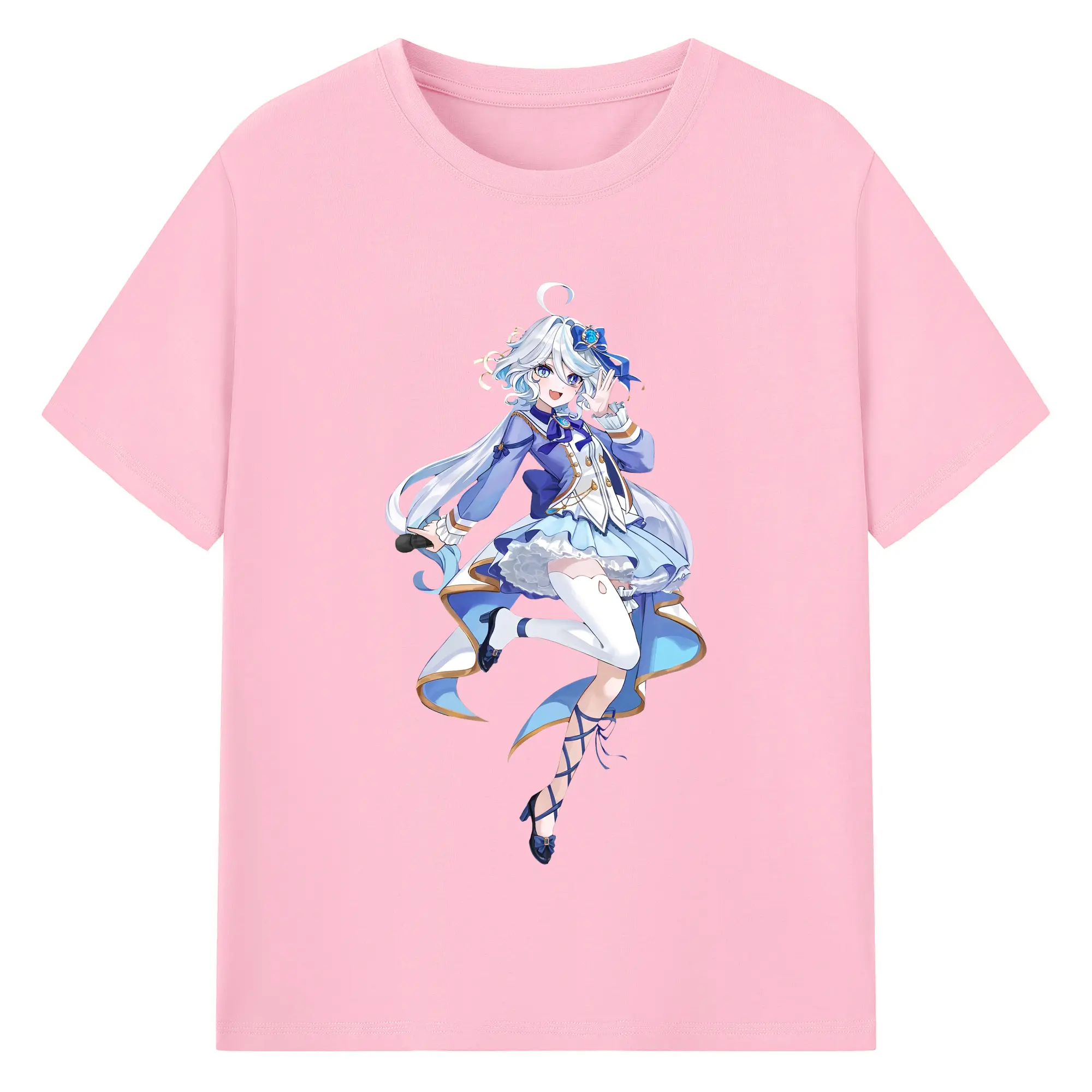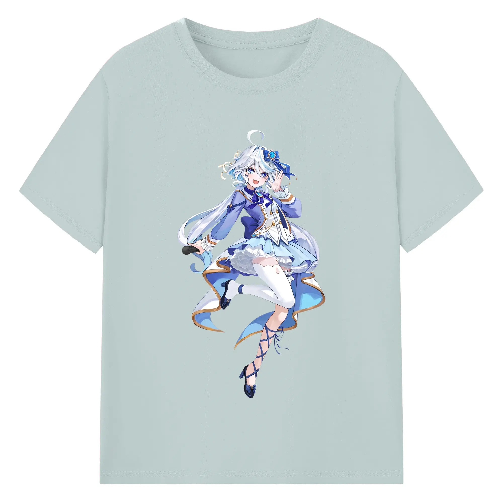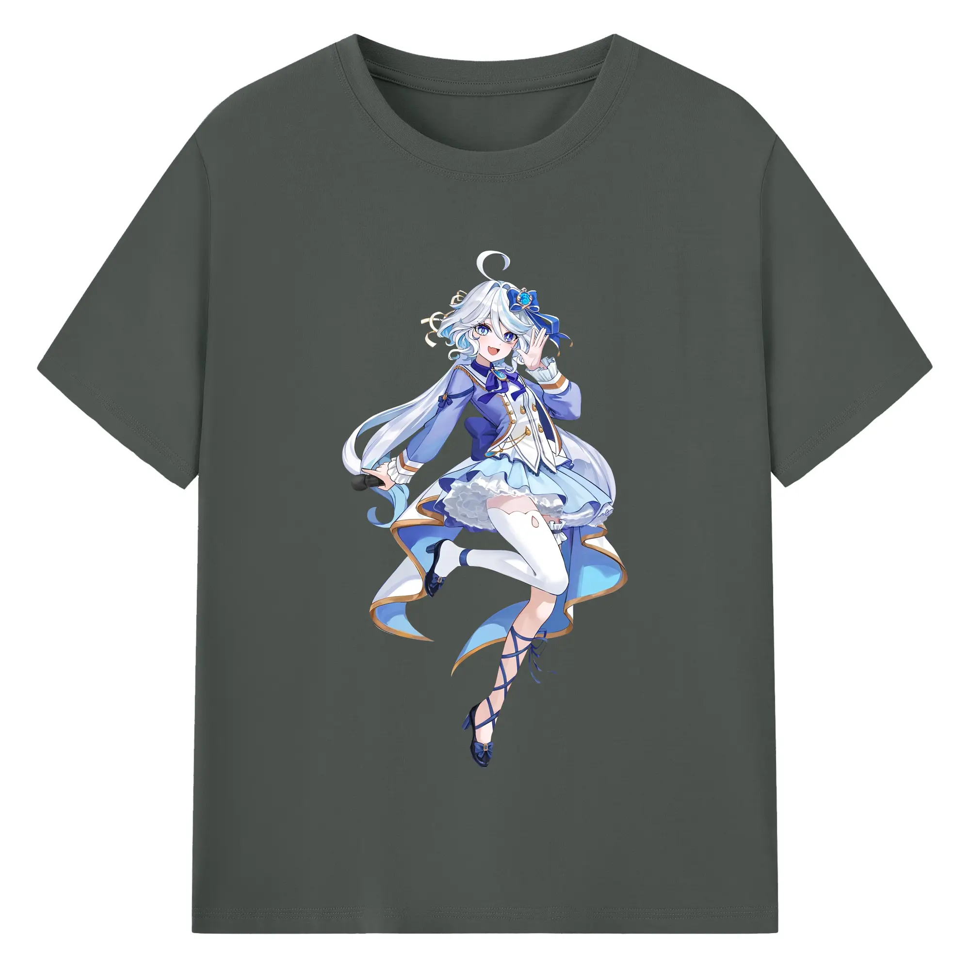 原神 フリーナ ポップカルチャー風プリント - 綿100% ヴィンテージ風 半袖Tシャツ ・ フロントプリント ・ 柔らか肌触り ・ 通気性 快適 ・ スポーツ カジュアル 外出用