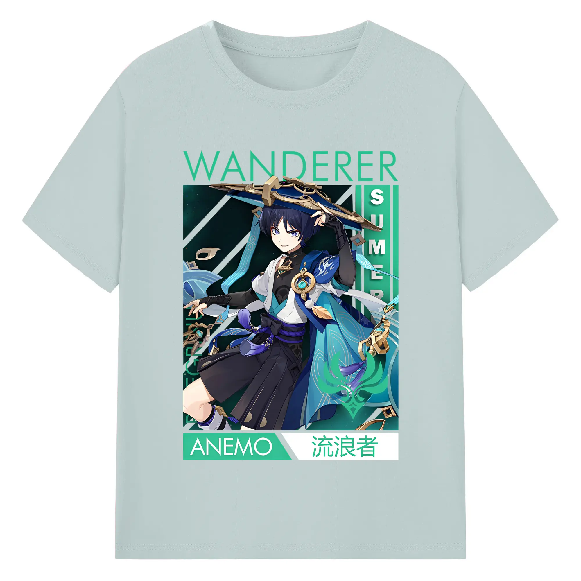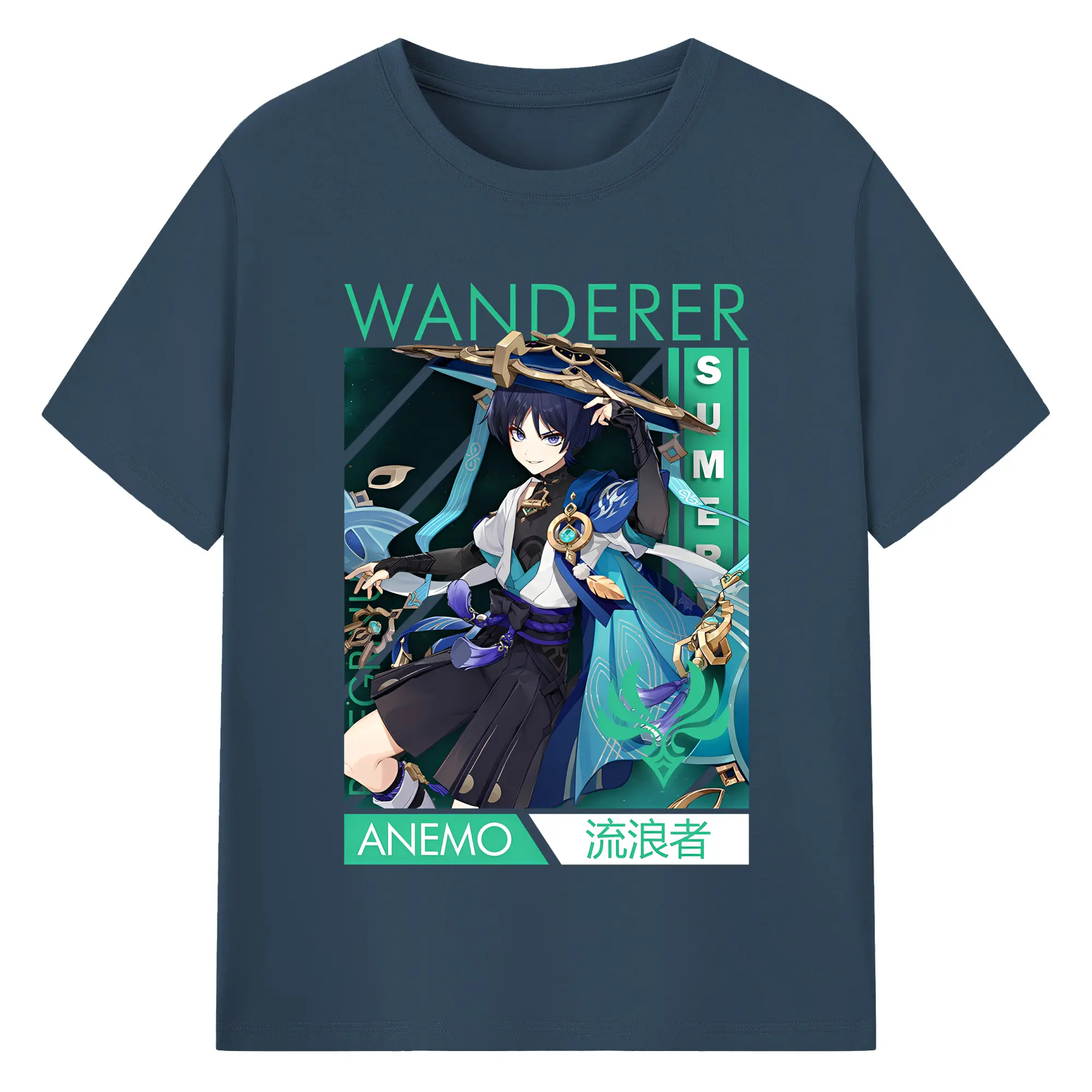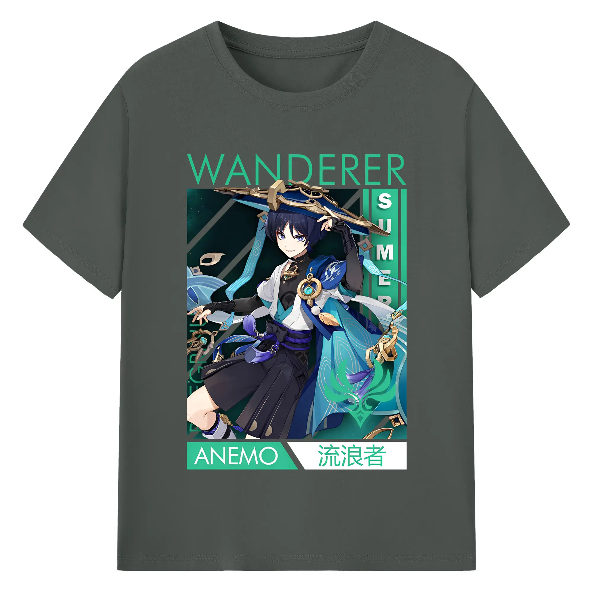 原神 放浪者 人気キャラクター 限定デザイン【2025新作】 - 綿100% ヴィンテージ風 半袖Tシャツ ・ フロントプリント ・ 柔らか肌触り ・ 通気性 快適 ・ スポーツ カジュアル 外出用