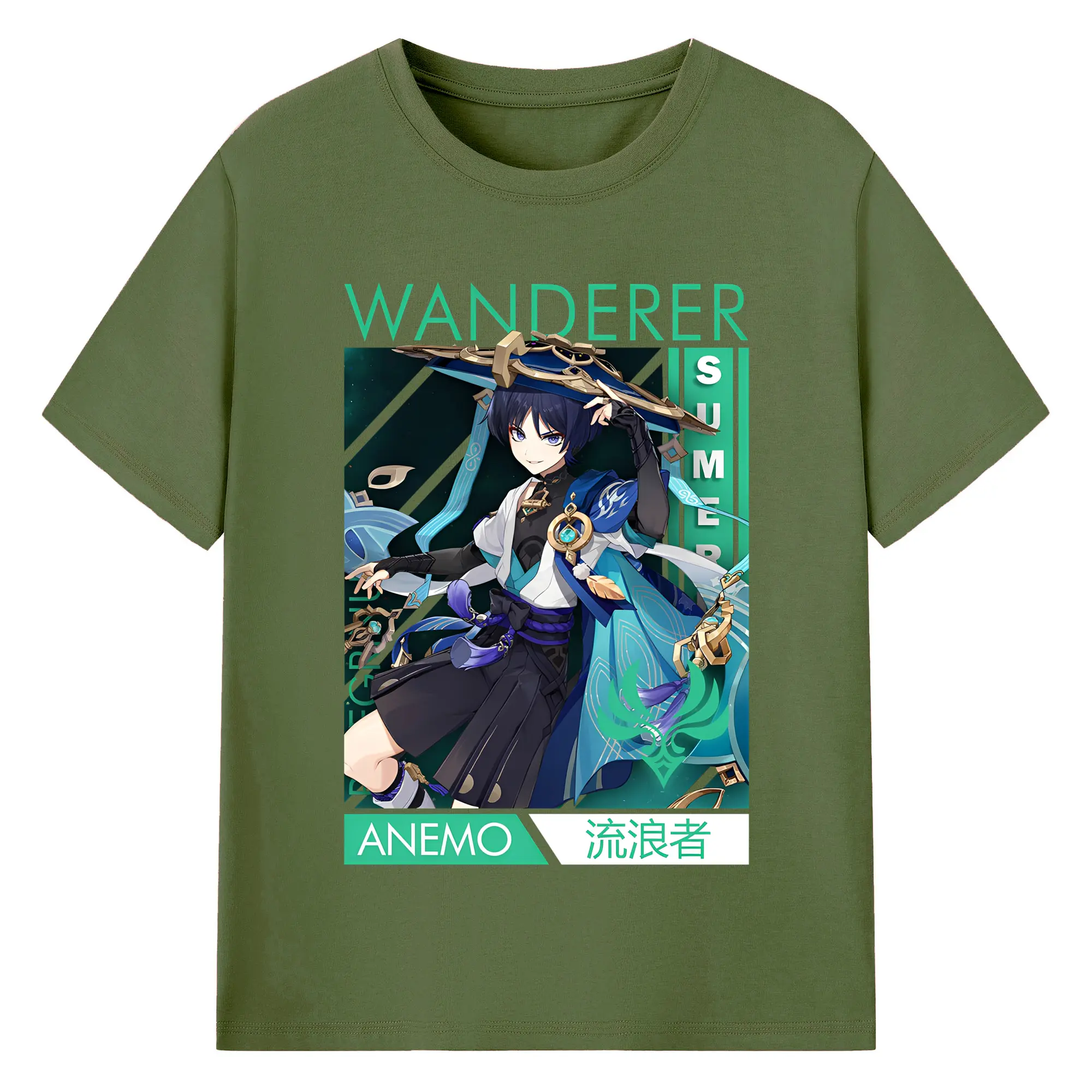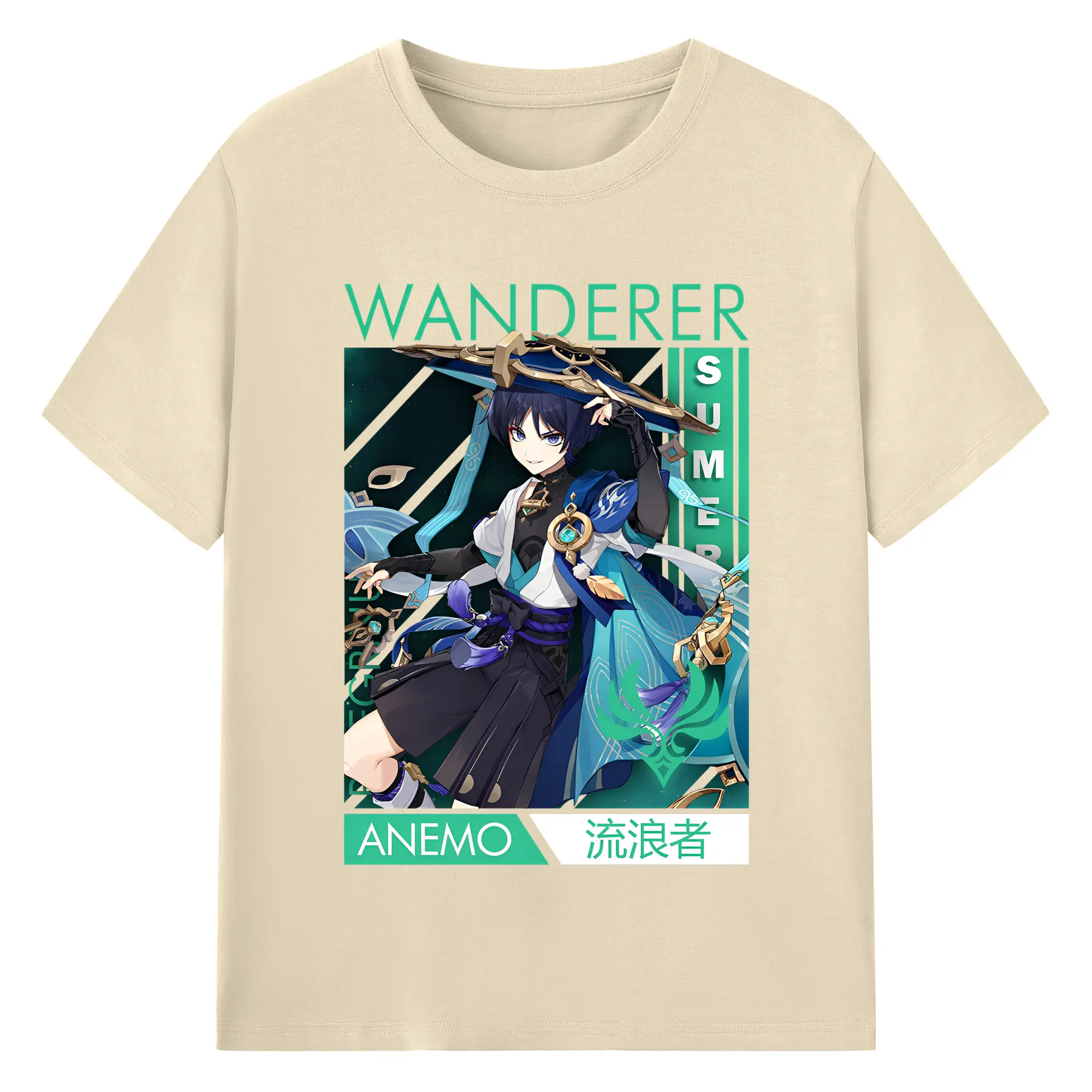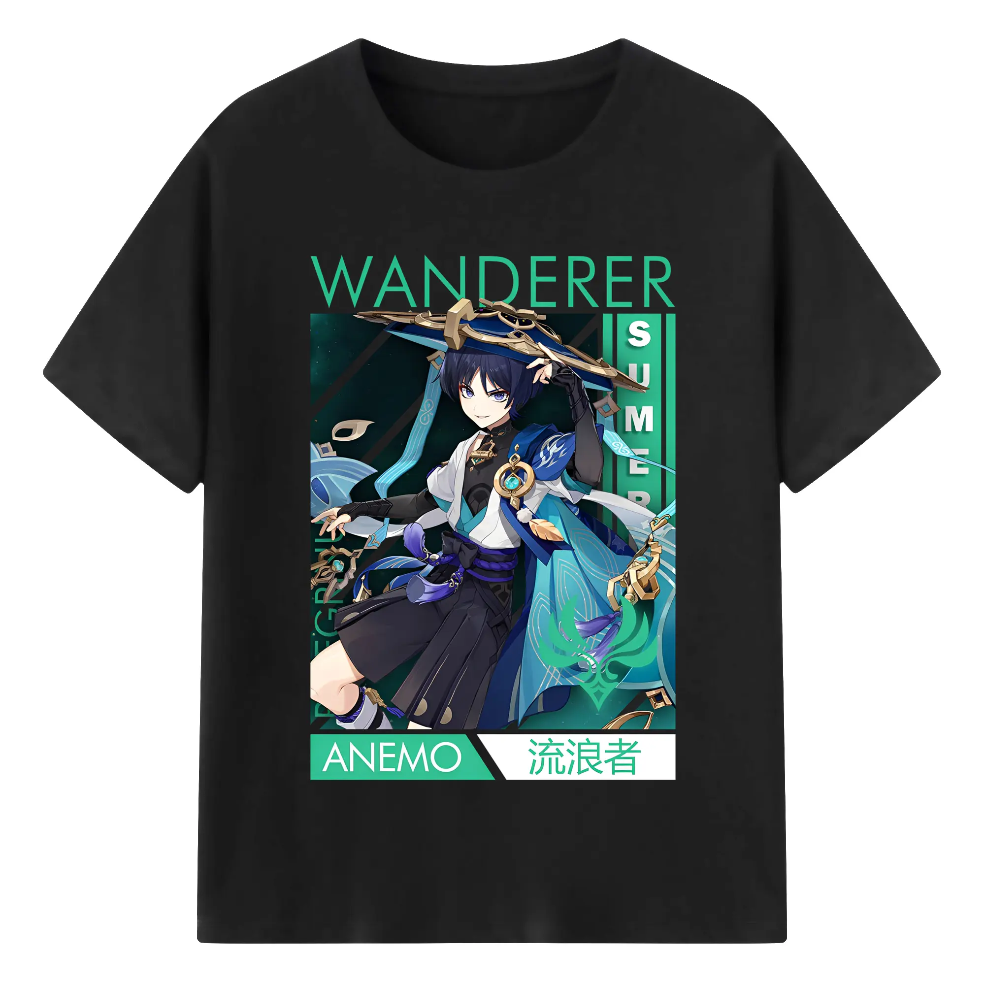 原神 放浪者 人気キャラクター 限定デザイン【2025新作】 - 綿100% ヴィンテージ風 半袖Tシャツ ・ フロントプリント ・ 柔らか肌触り ・ 通気性 快適 ・ スポーツ カジュアル 外出用