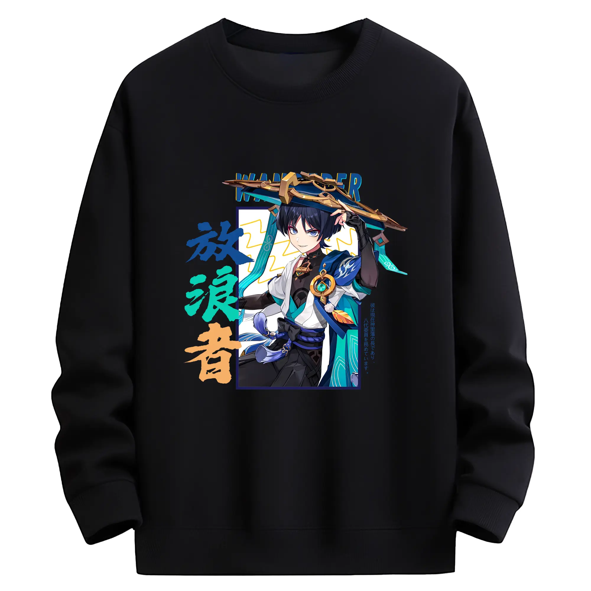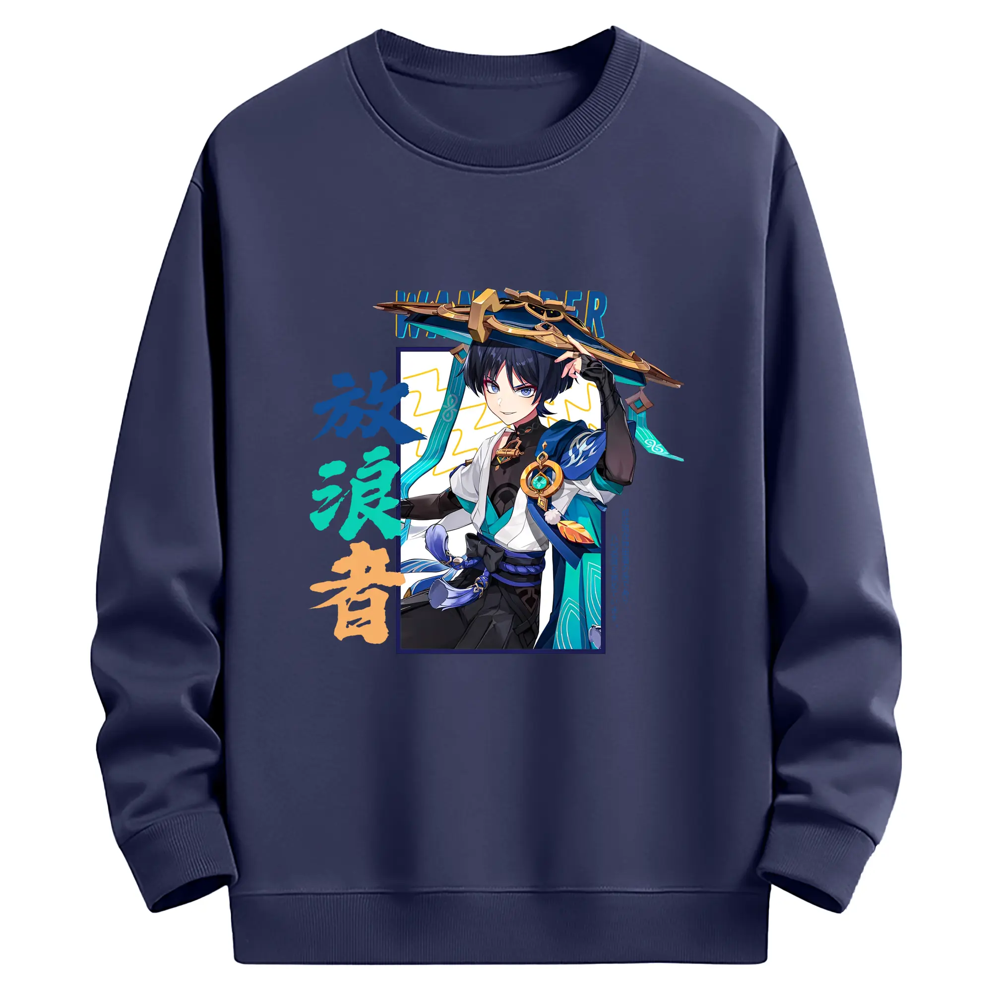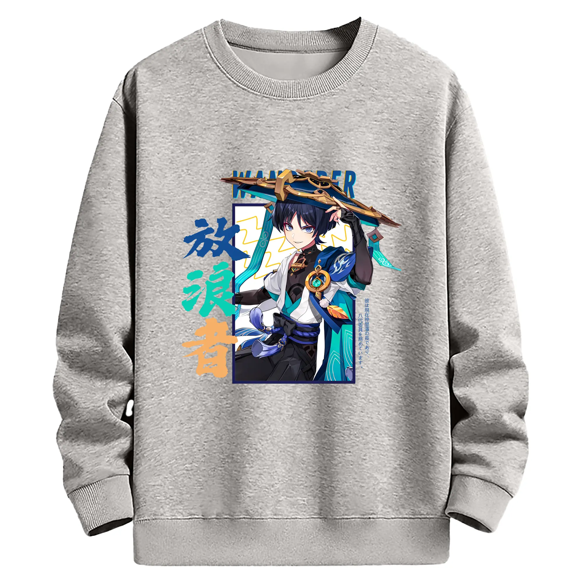 原神 フリーナ キャラクターグッズ - 高品質 クルーネック スウェット ・ コットン59% ポリエステル41% ・ ユニセックス 長袖 トレーナー ・ カジュアル デイリー スポーツ 散歩用