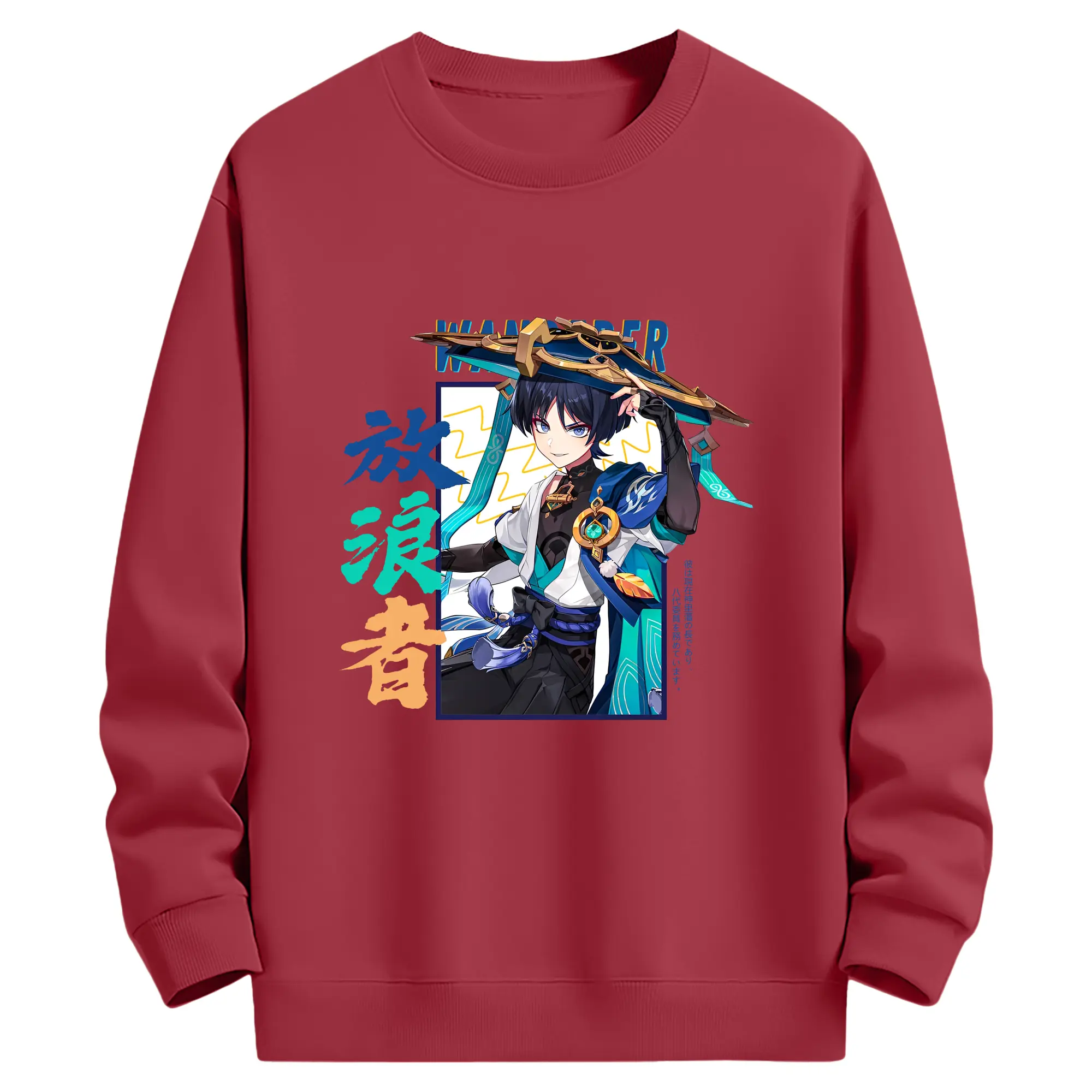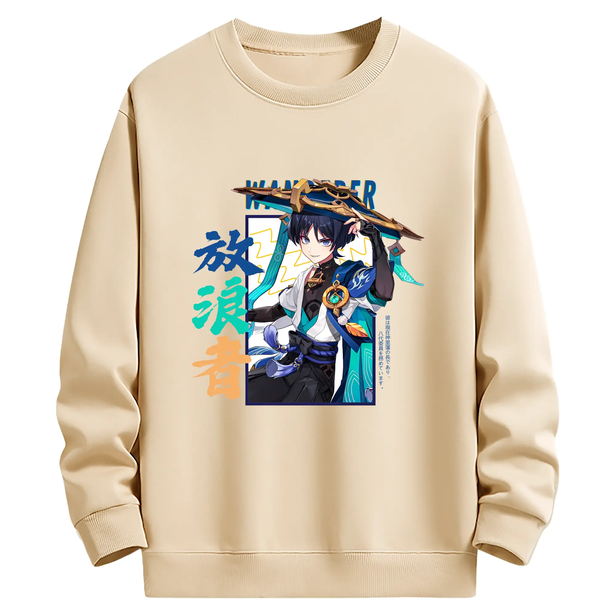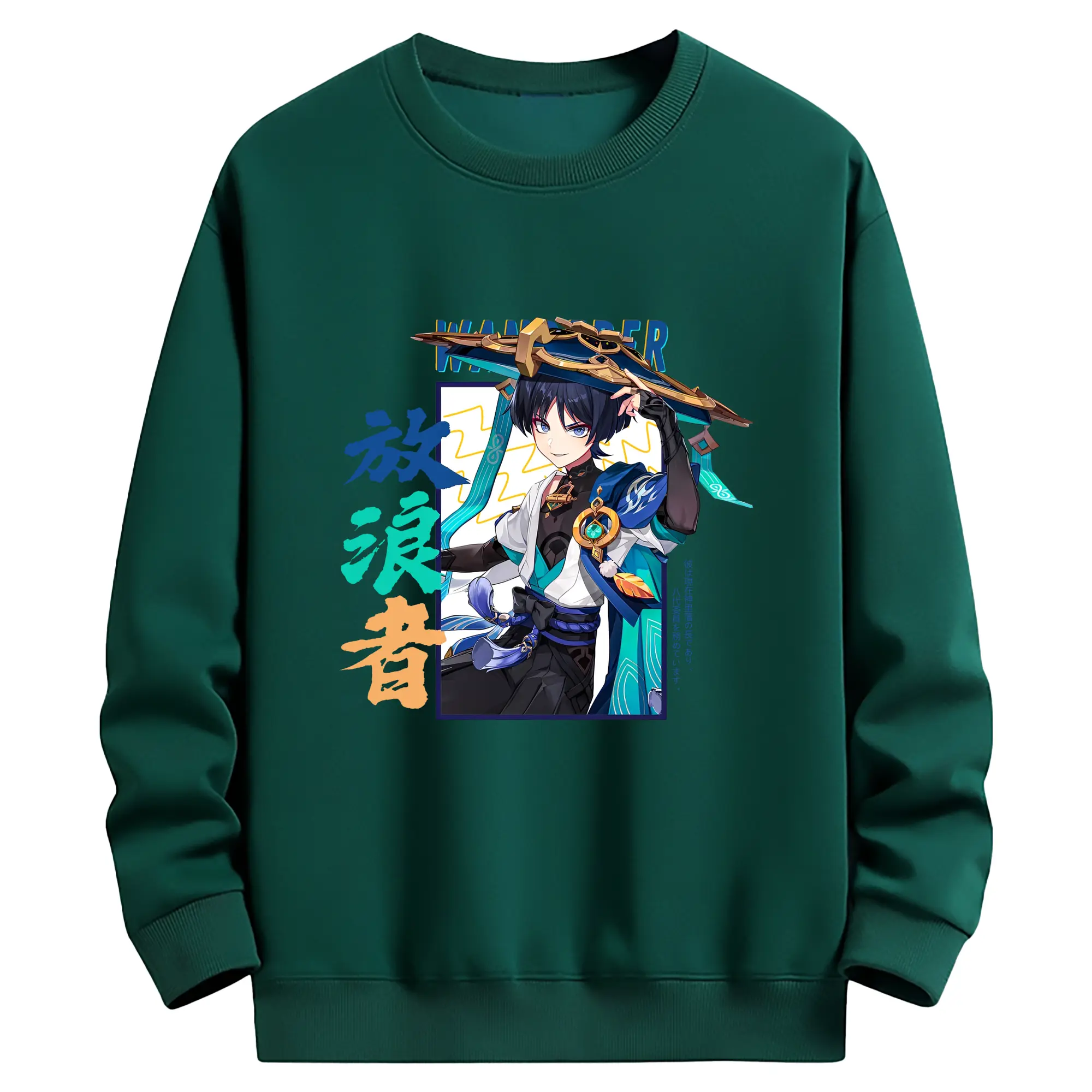 原神 フリーナ キャラクターグッズ - 高品質 クルーネック スウェット ・ コットン59% ポリエステル41% ・ ユニセックス 長袖 トレーナー ・ カジュアル デイリー スポーツ 散歩用