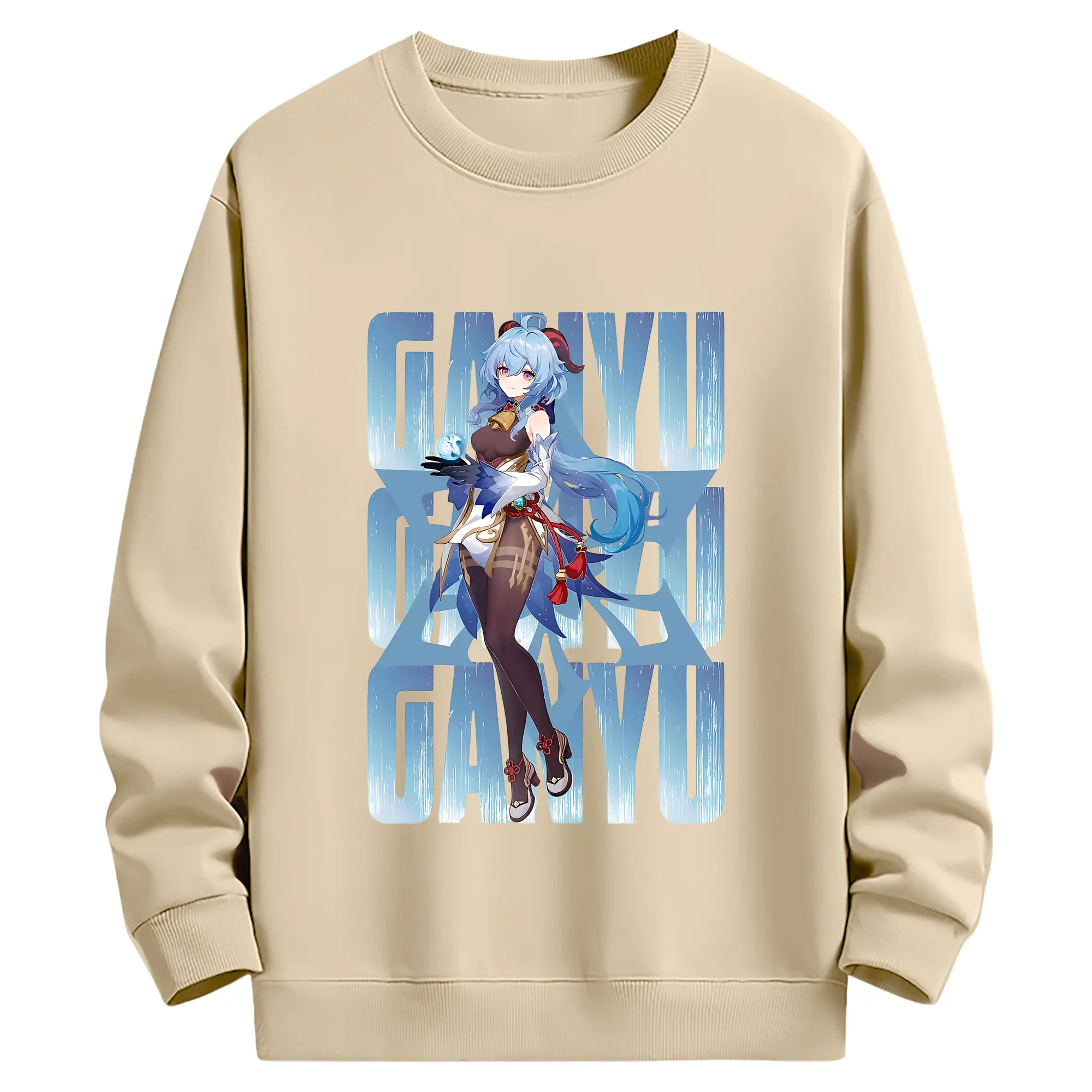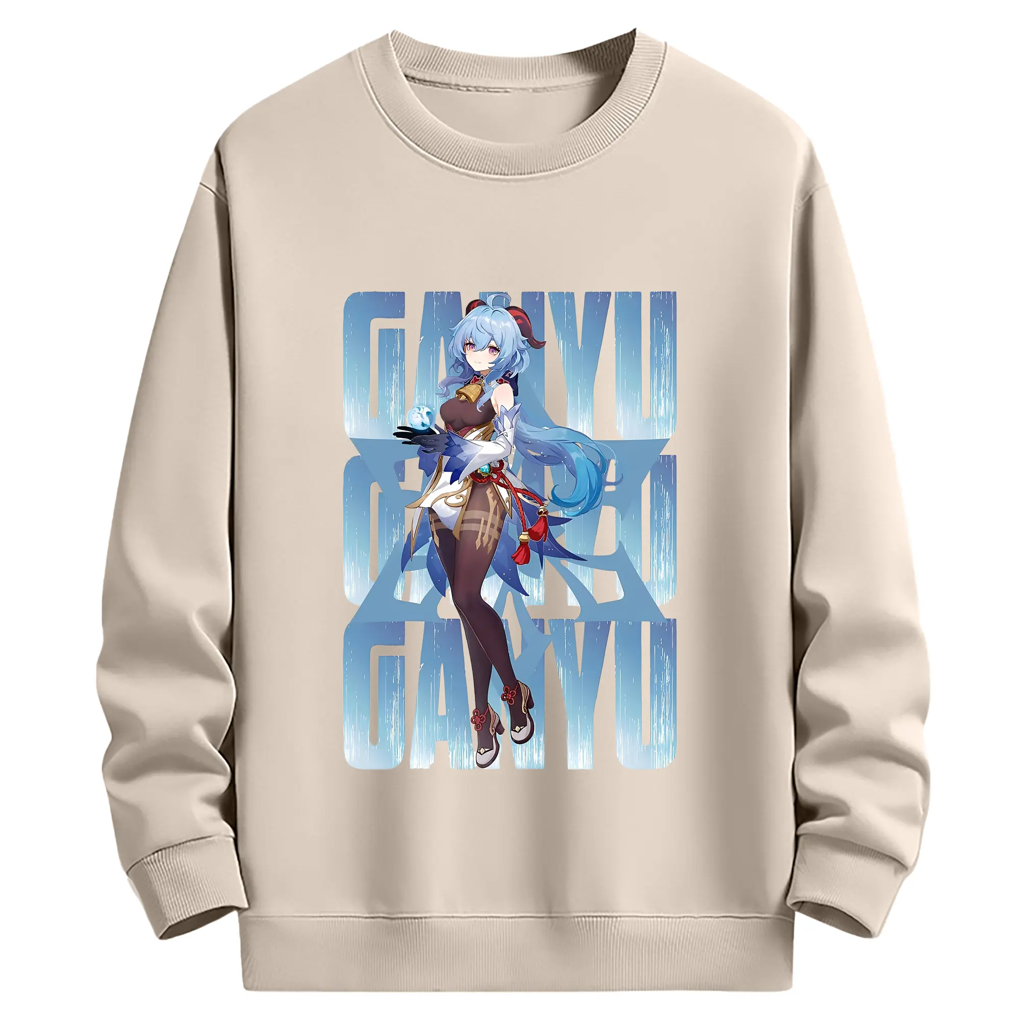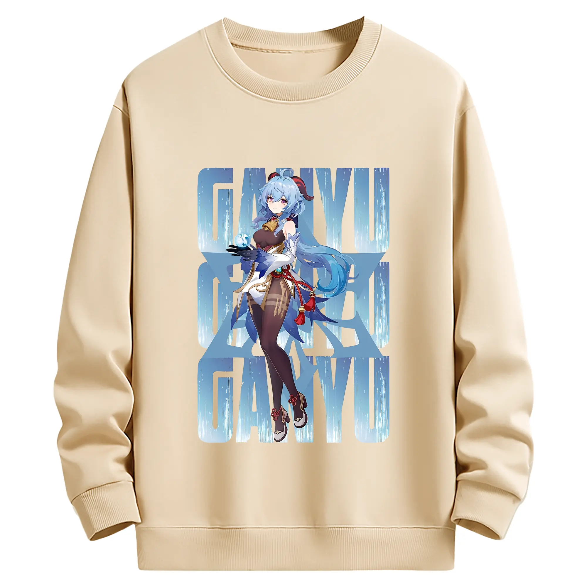 原神 甘雨 クリーンデザイン ファッション 原宿系 - 綿100% 半袖Tシャツ ・ フロントプリント ・ 快適 通気性 ・ 日常使い 散歩 スポーツ用